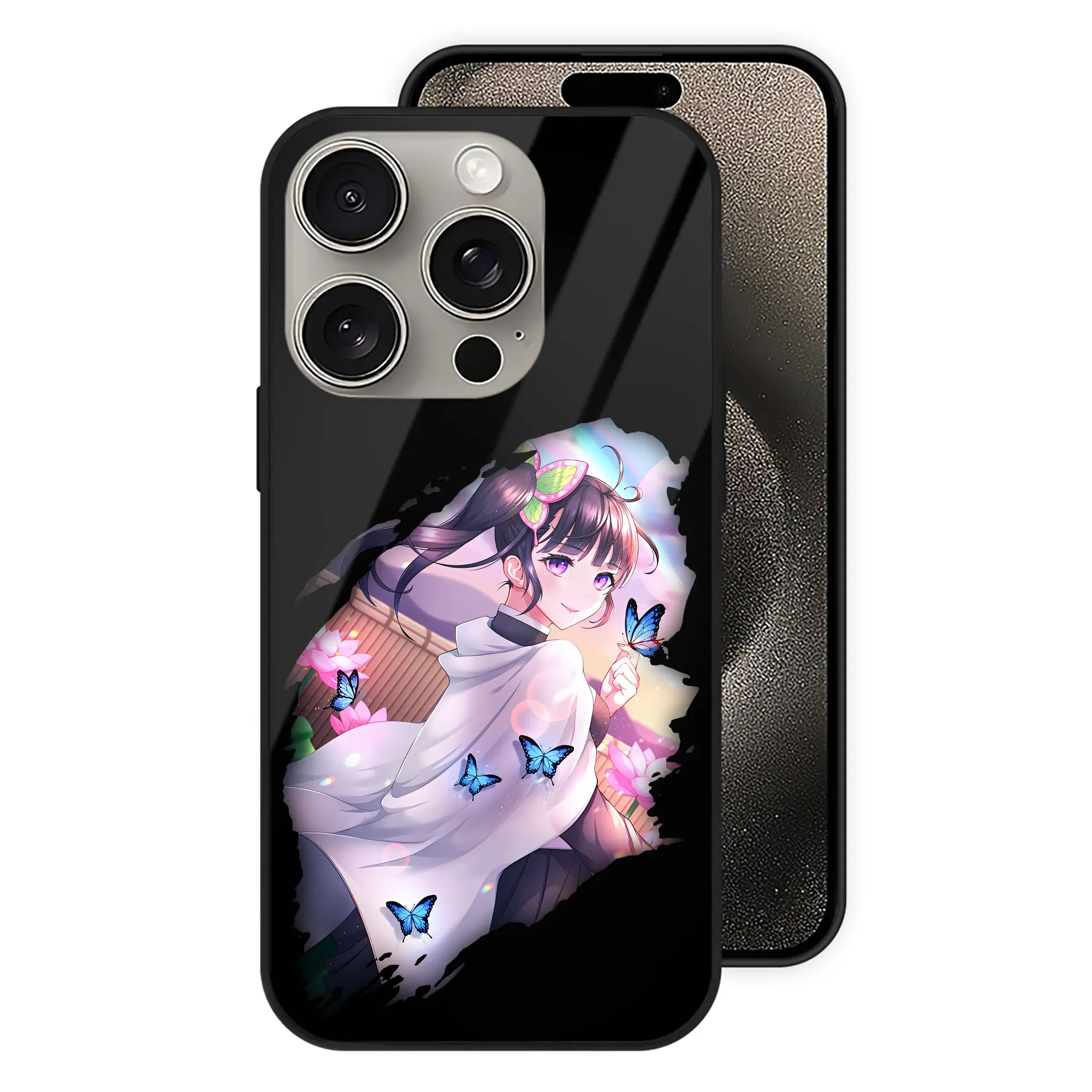 鬼滅の刃 グッズ,栗花落 カナヲ - IPhone15Pro対応 ・ スマホケース ・ 背面ガラス ・ TPU+強化ガラス ・ 耐衝撃 ・ 黄変防止 ・ ワイヤレス充電対応 ・ 3D立体ボタン