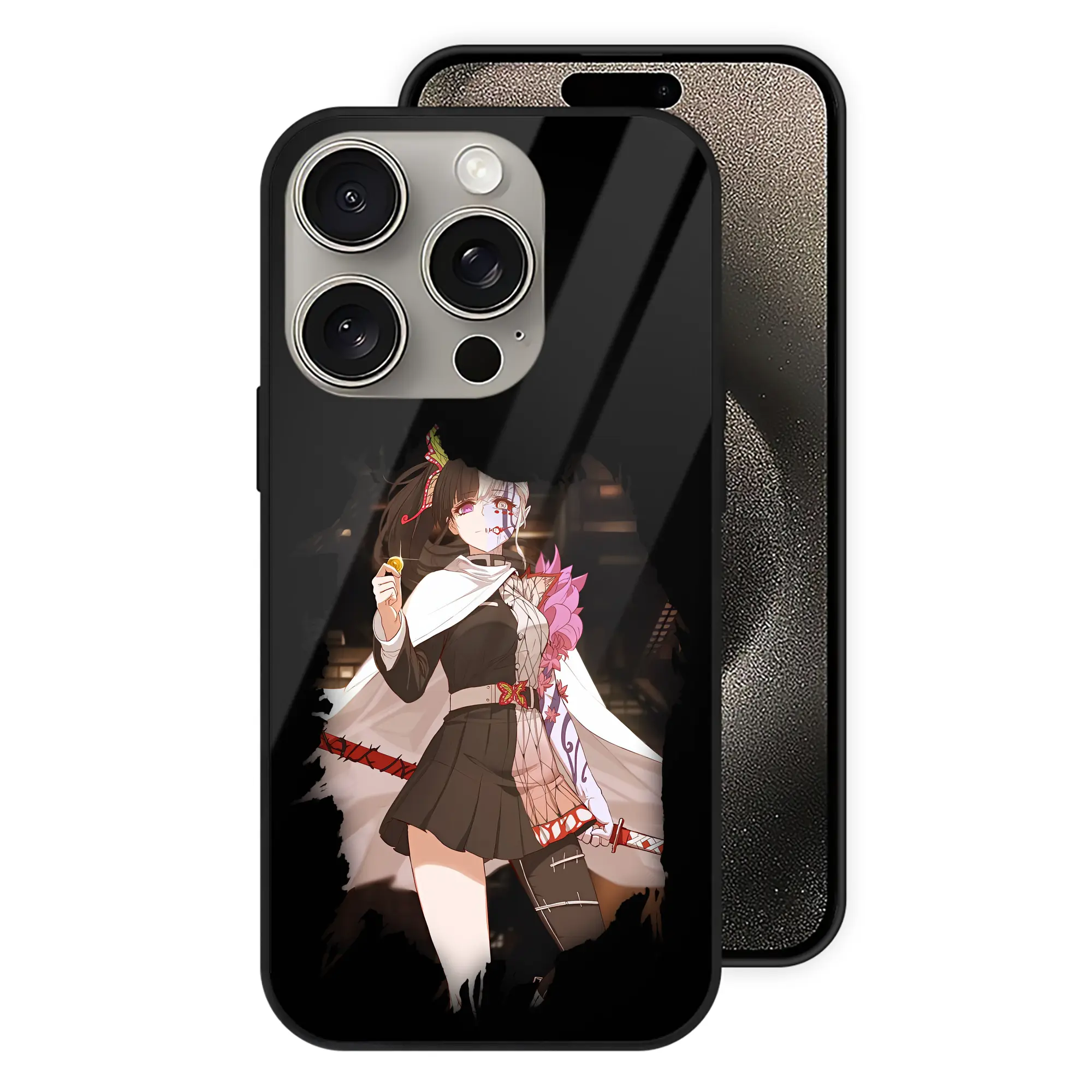 鬼滅の刃 グッズ,栗花落 カナヲ - IPhone15Pro対応 ・ スマホケース ・ 背面ガラス ・ TPU+強化ガラス ・ 耐衝撃 ・ 黄変防止 ・ ワイヤレス充電対応 ・ 3D立体ボタン