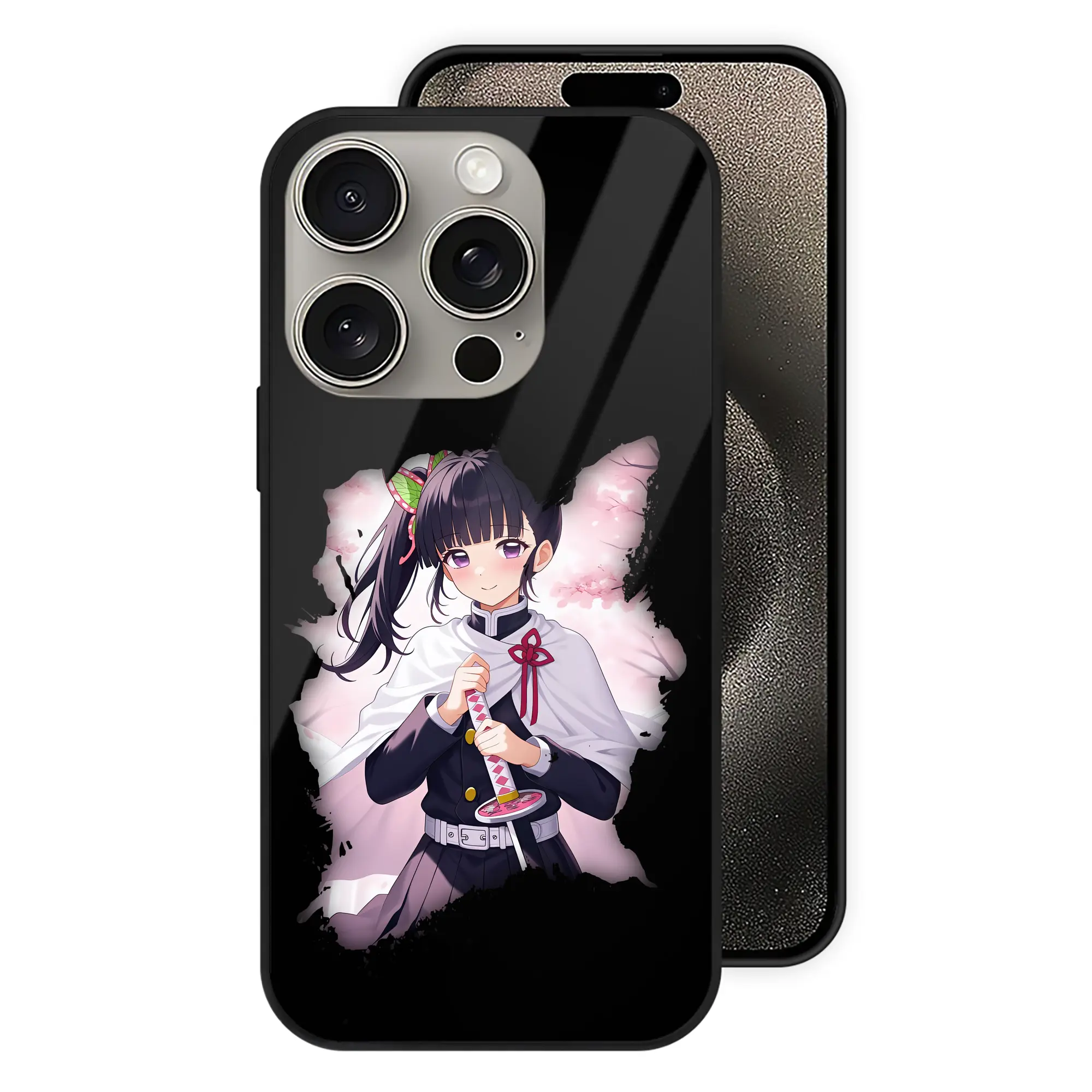 鬼滅の刃 グッズ,栗花落 カナヲ - IPhone15Pro対応 ・ スマホケース ・ 背面ガラス ・ TPU+強化ガラス ・ 耐衝撃 ・ 黄変防止 ・ ワイヤレス充電対応 ・ 3D立体ボタン