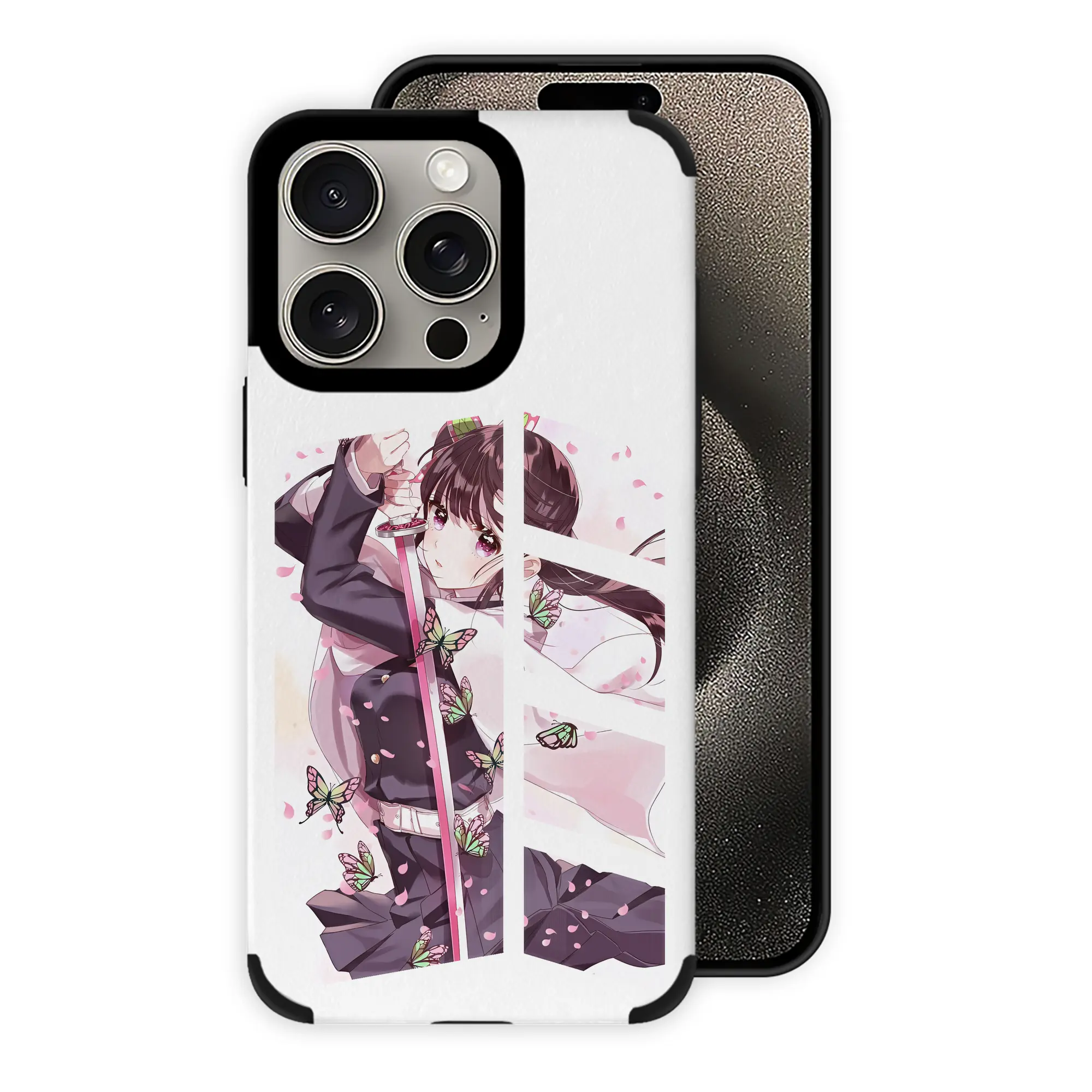 鬼滅の刃 グッズ,栗花落 カナヲ - IPhone15ProMax対応 ・ PUレザースマホケース ・ 耐衝撃 ・ 黄変防止 ・ 360度全面保護 ・ 柔らか手触り ・ 3D立体ボタン