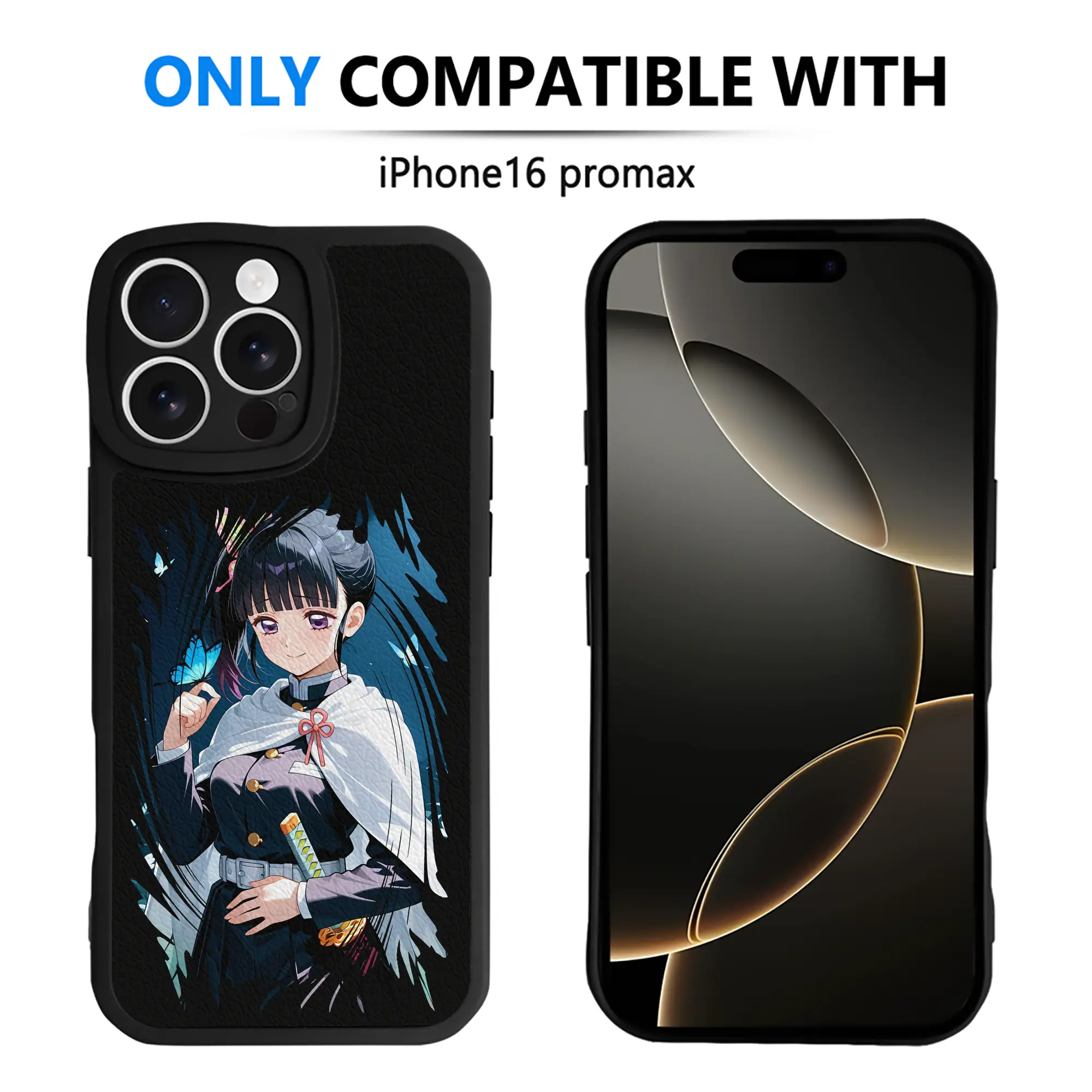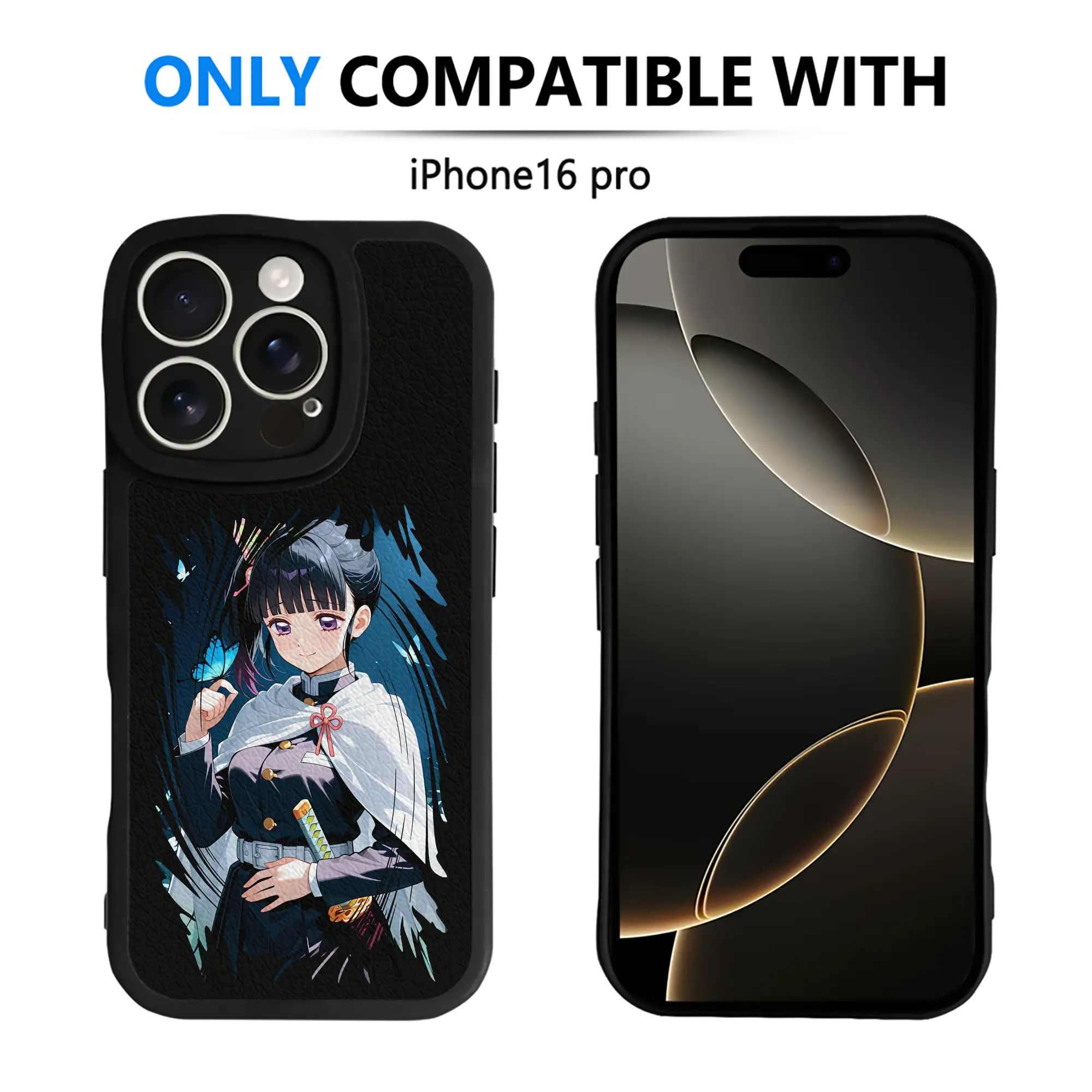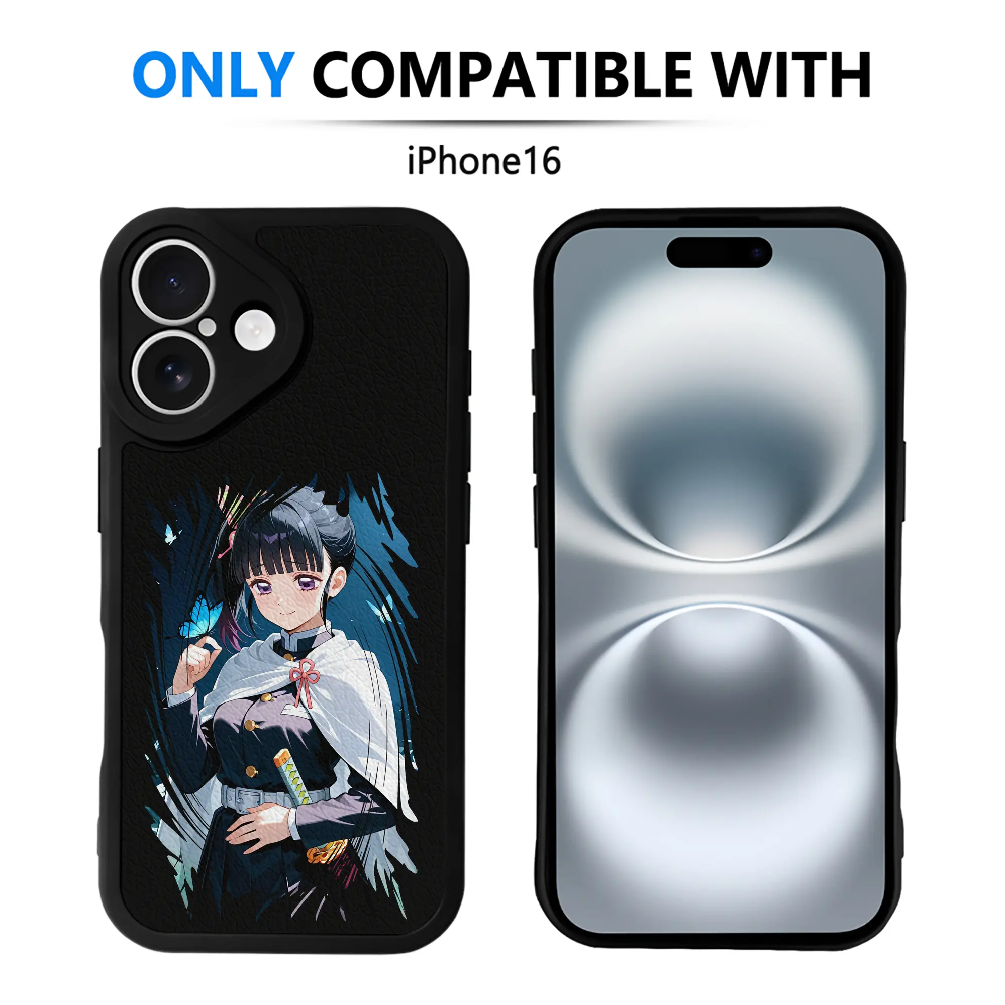 鬼滅の刃 グッズ,栗花落 カナヲ - IPhone 16シリーズ対応 ・ シリコンスマホケース ・ レザー調 ・ 高精度フィット ・ 耐衝撃 ・ ワイヤレス充電対応 ・ 精密カット