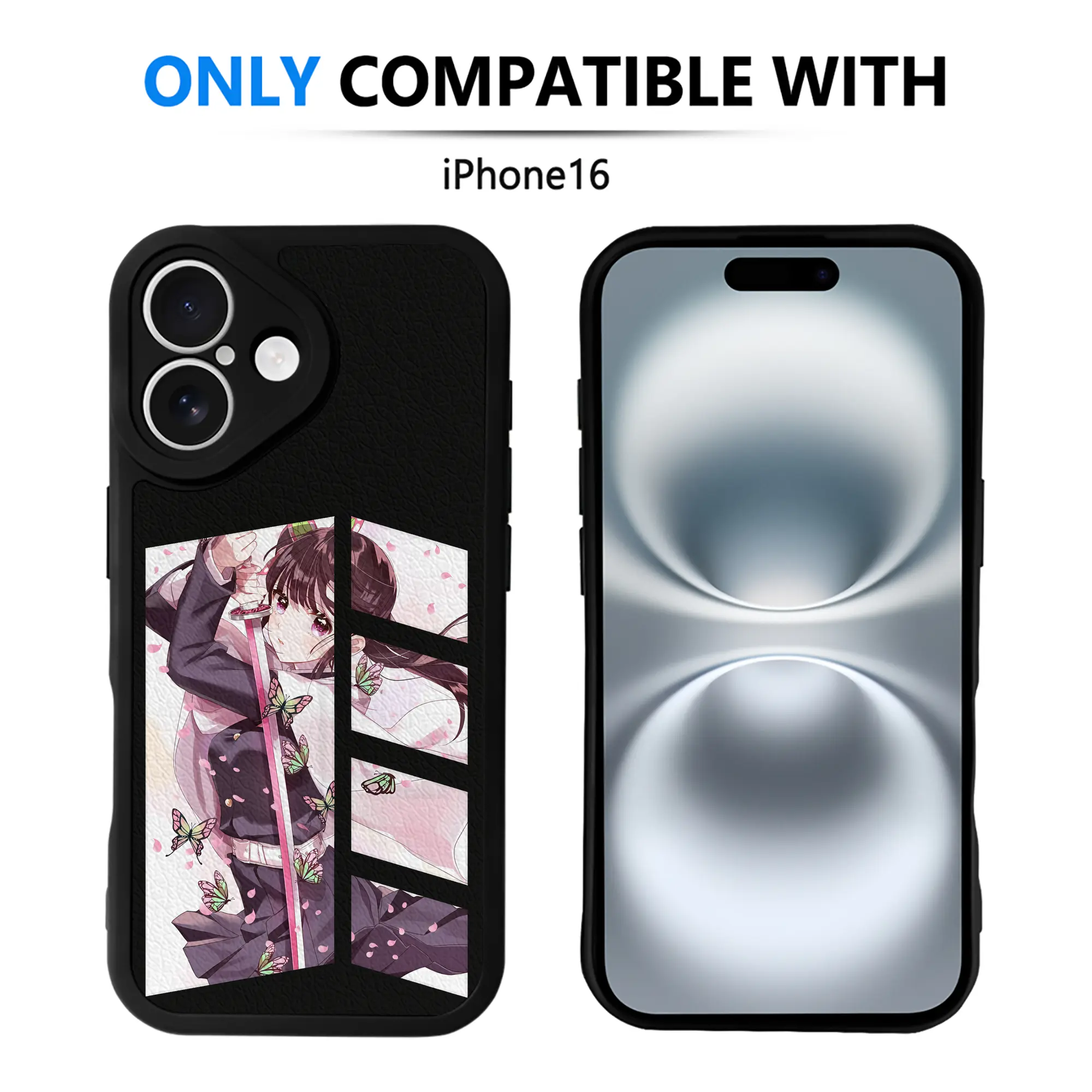 鬼滅の刃 グッズ,栗花落 カナヲ - IPhone 16シリーズ対応 ・ シリコンスマホケース ・ レザー調 ・ 高精度フィット ・ 耐衝撃 ・ ワイヤレス充電対応 ・ 精密カット