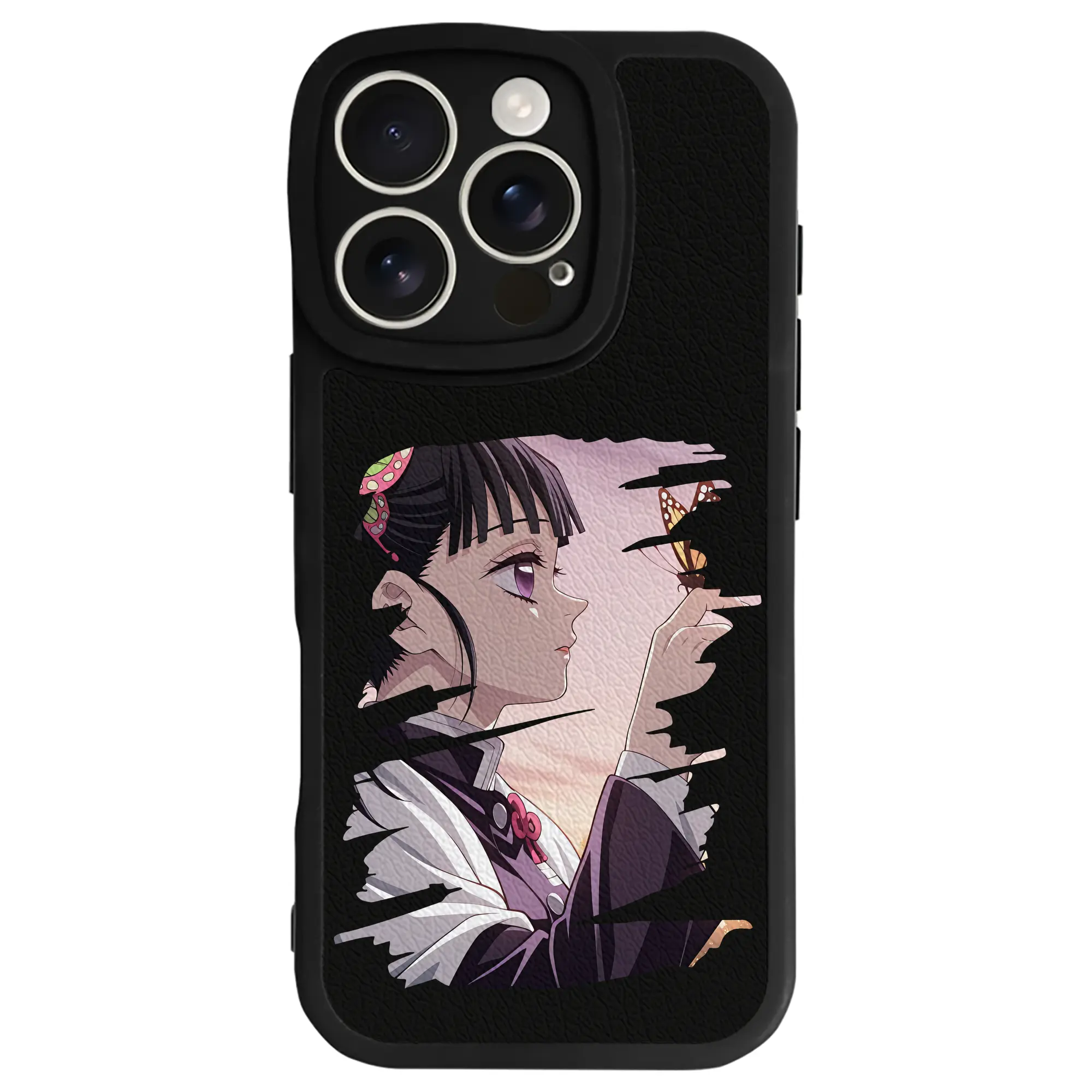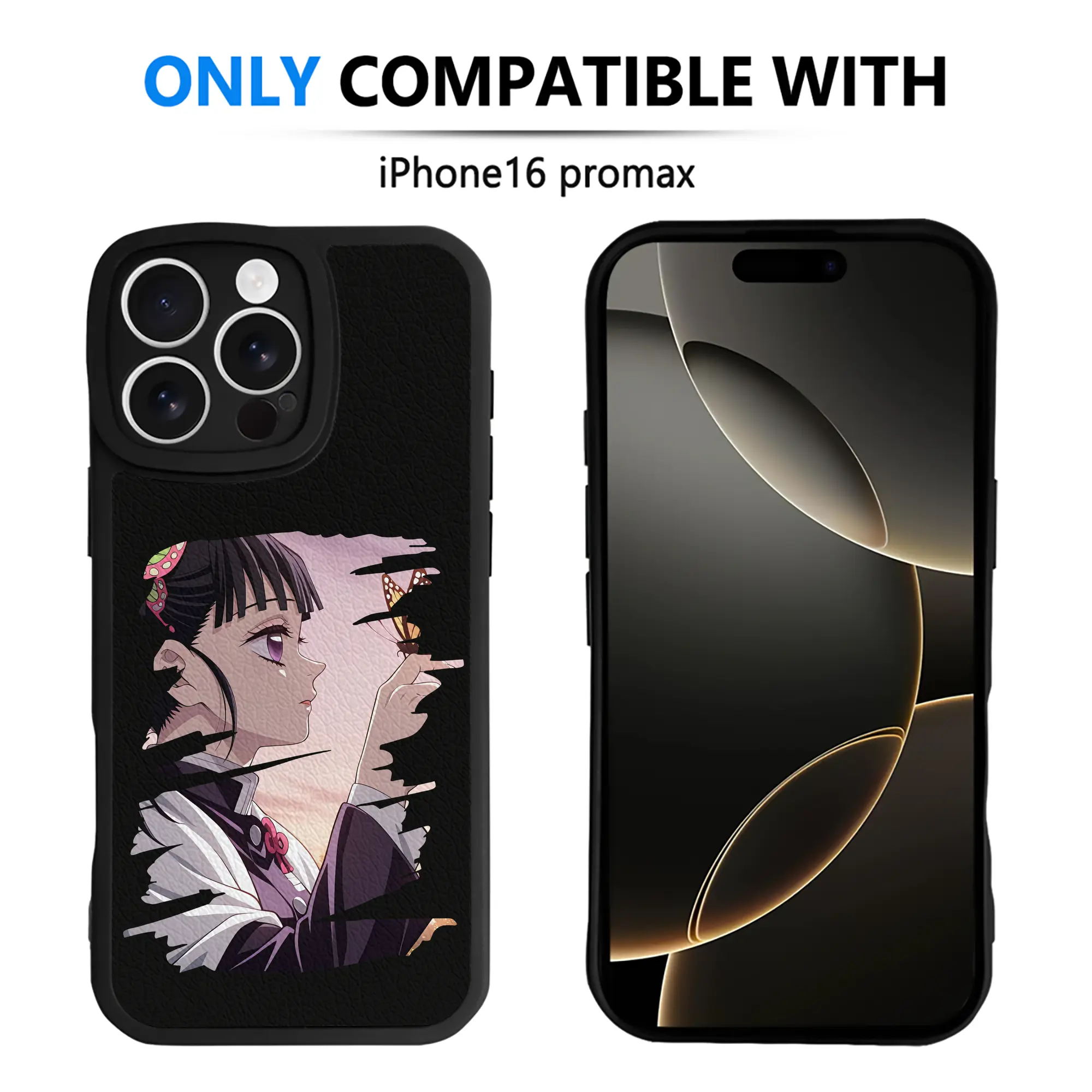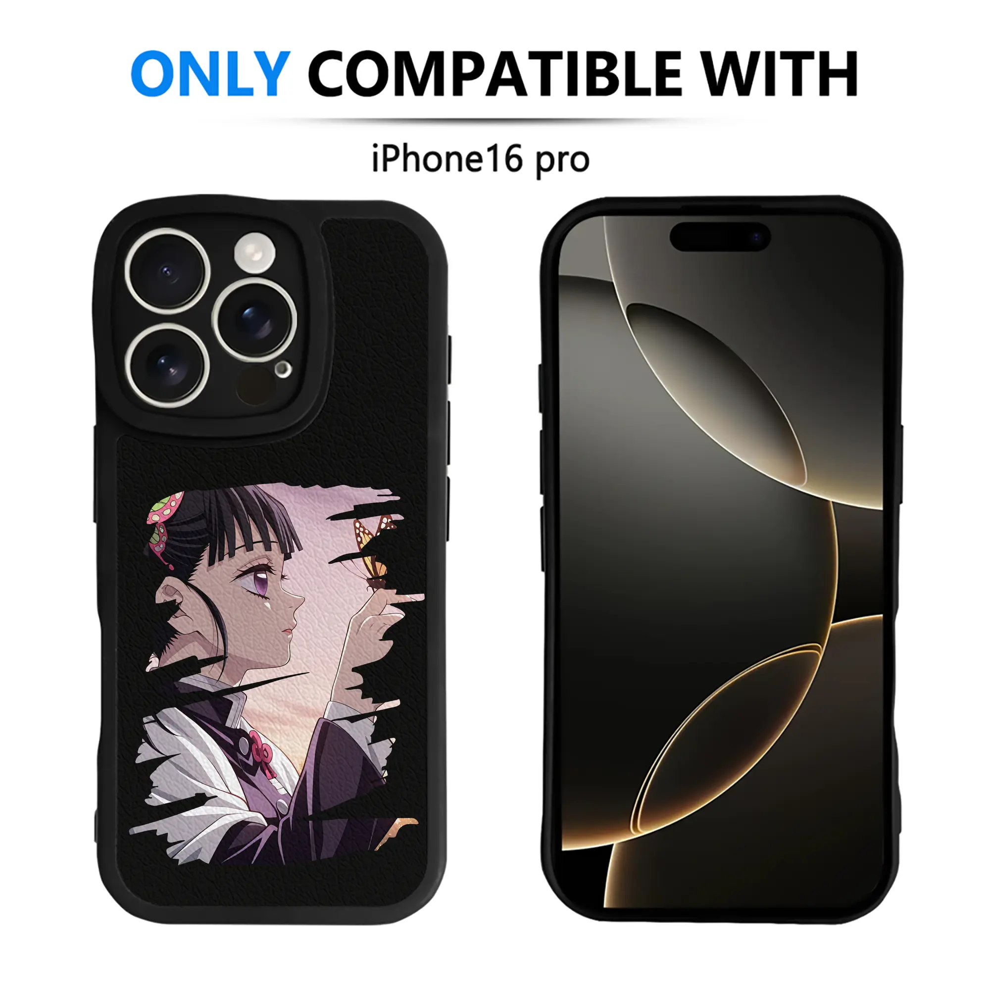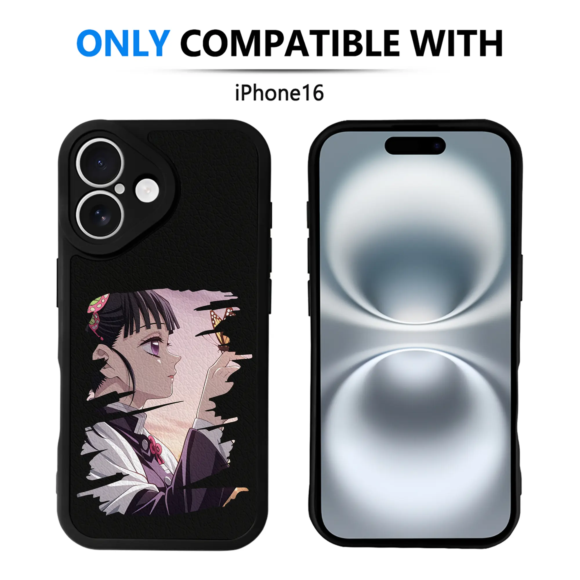 鬼滅の刃 グッズ,栗花落 カナヲ - IPhone 16シリーズ対応 ・ シリコンスマホケース ・ レザー調 ・ 高精度フィット ・ 耐衝撃 ・ ワイヤレス充電対応 ・ 精密カット