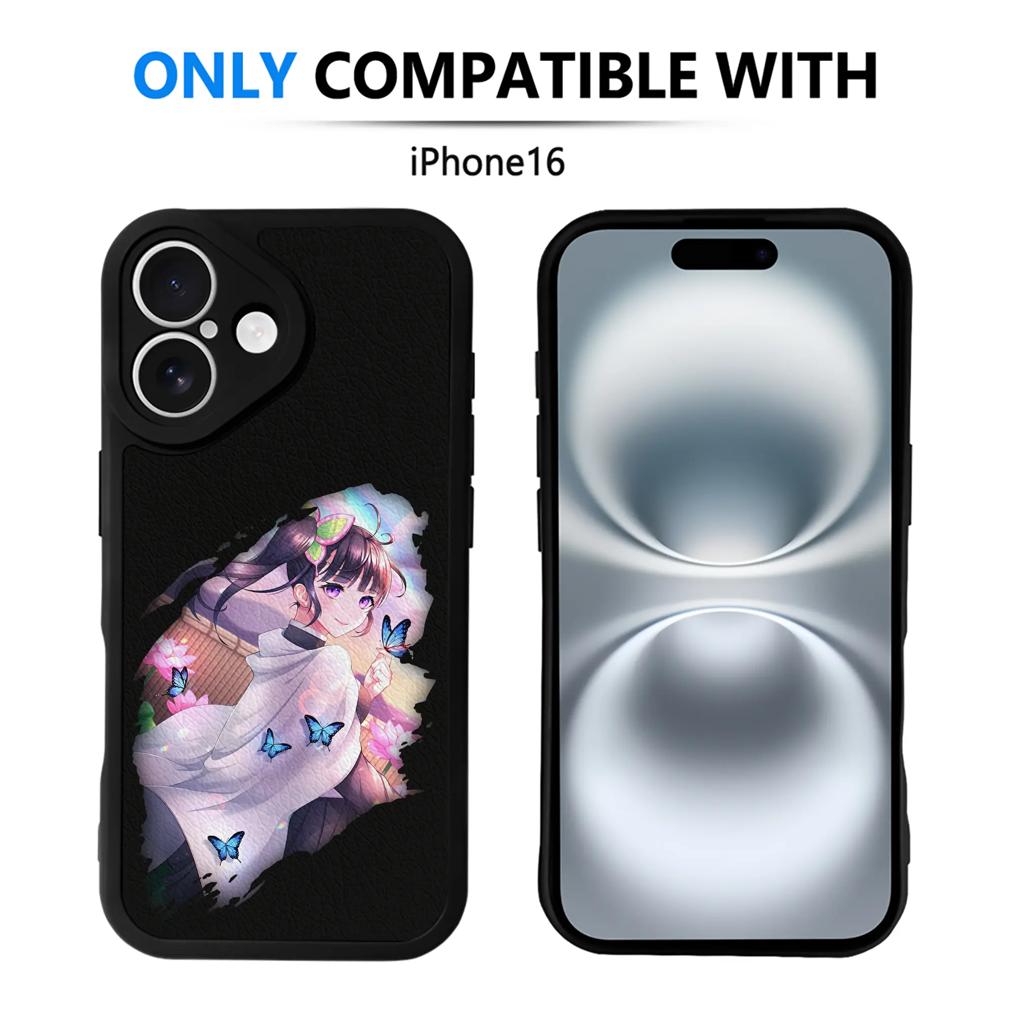 鬼滅の刃 グッズ,栗花落 カナヲ - IPhone 16シリーズ対応 ・ シリコンスマホケース ・ レザー調 ・ 高精度フィット ・ 耐衝撃 ・ ワイヤレス充電対応 ・ 精密カット