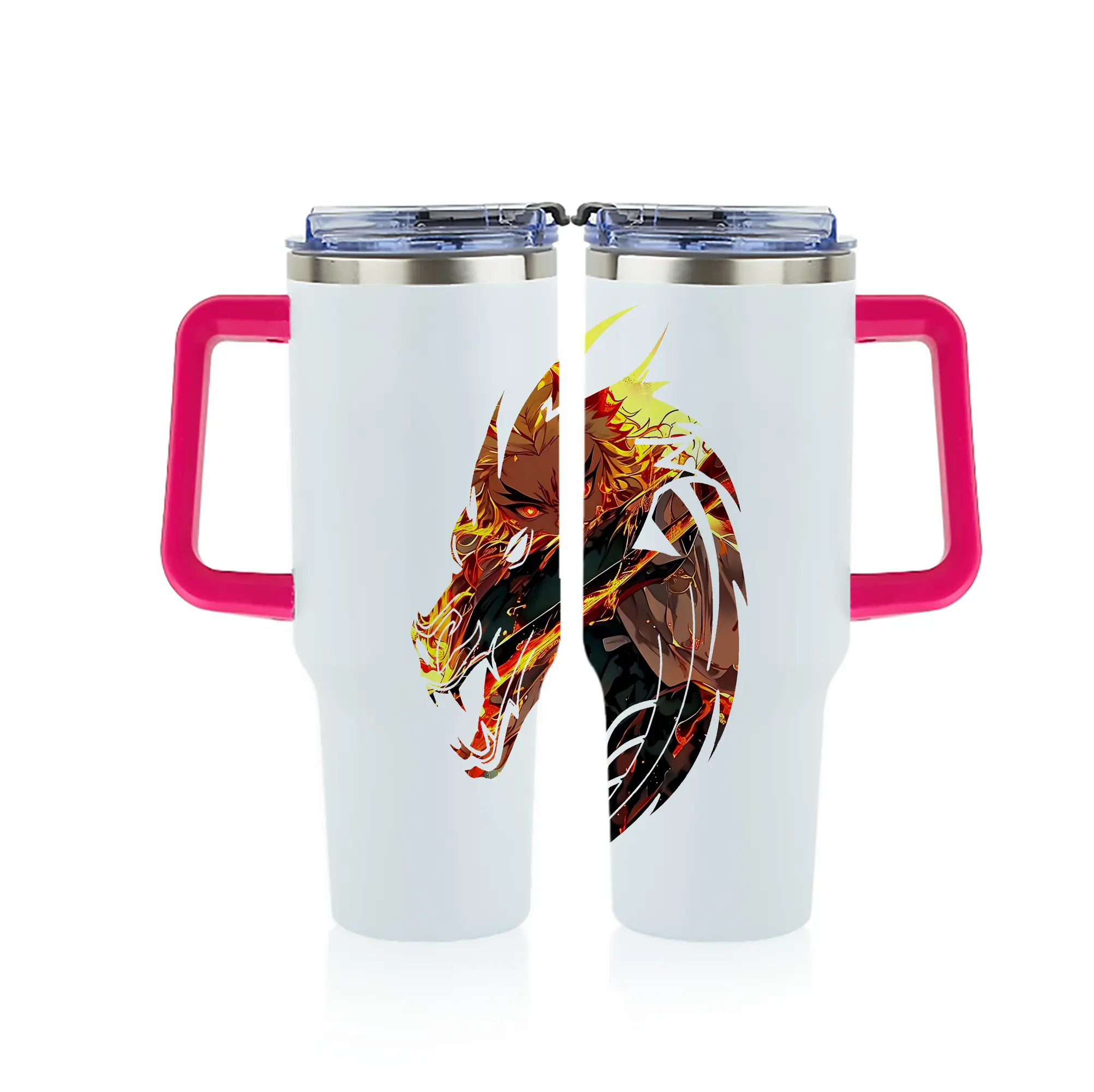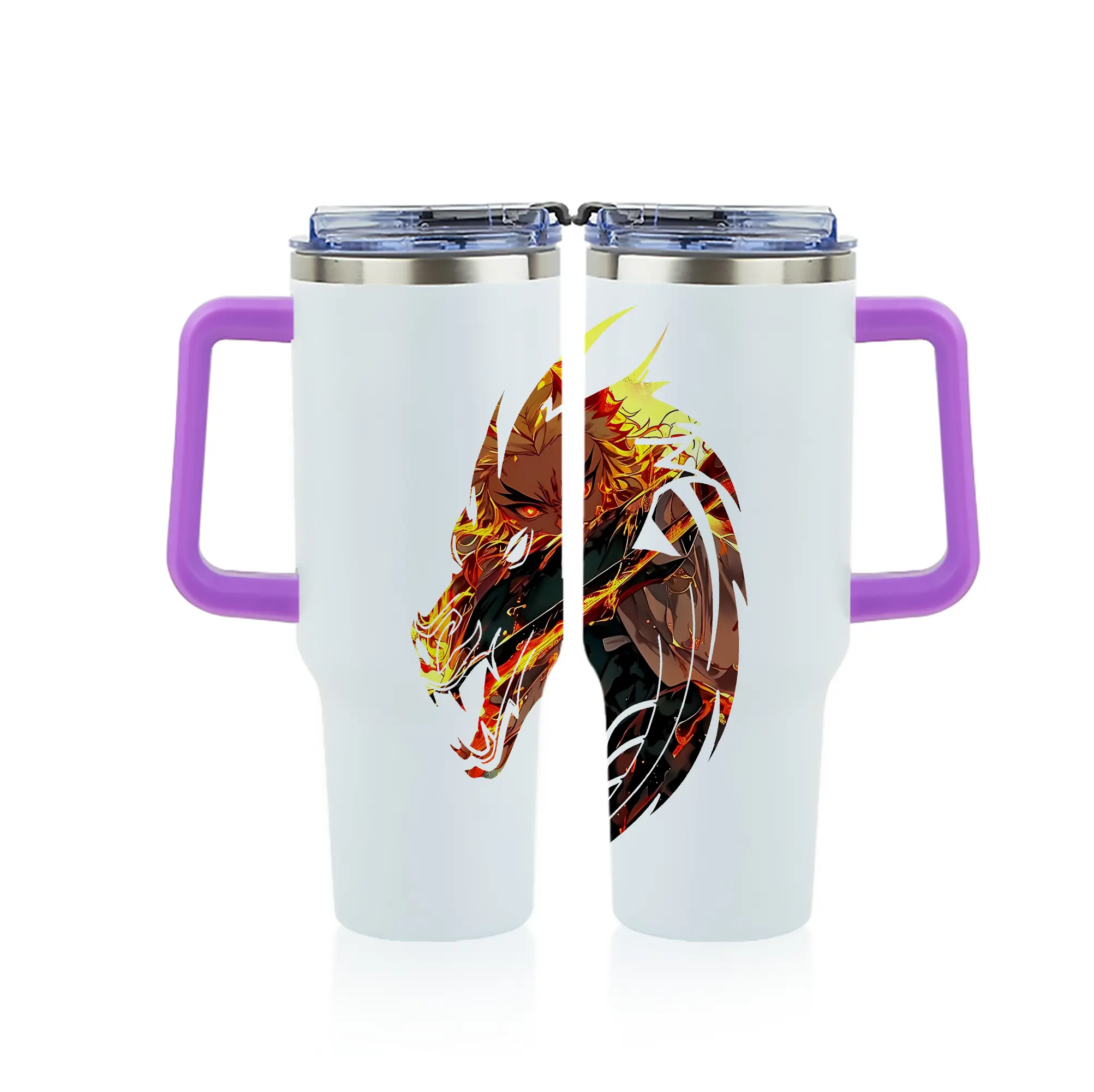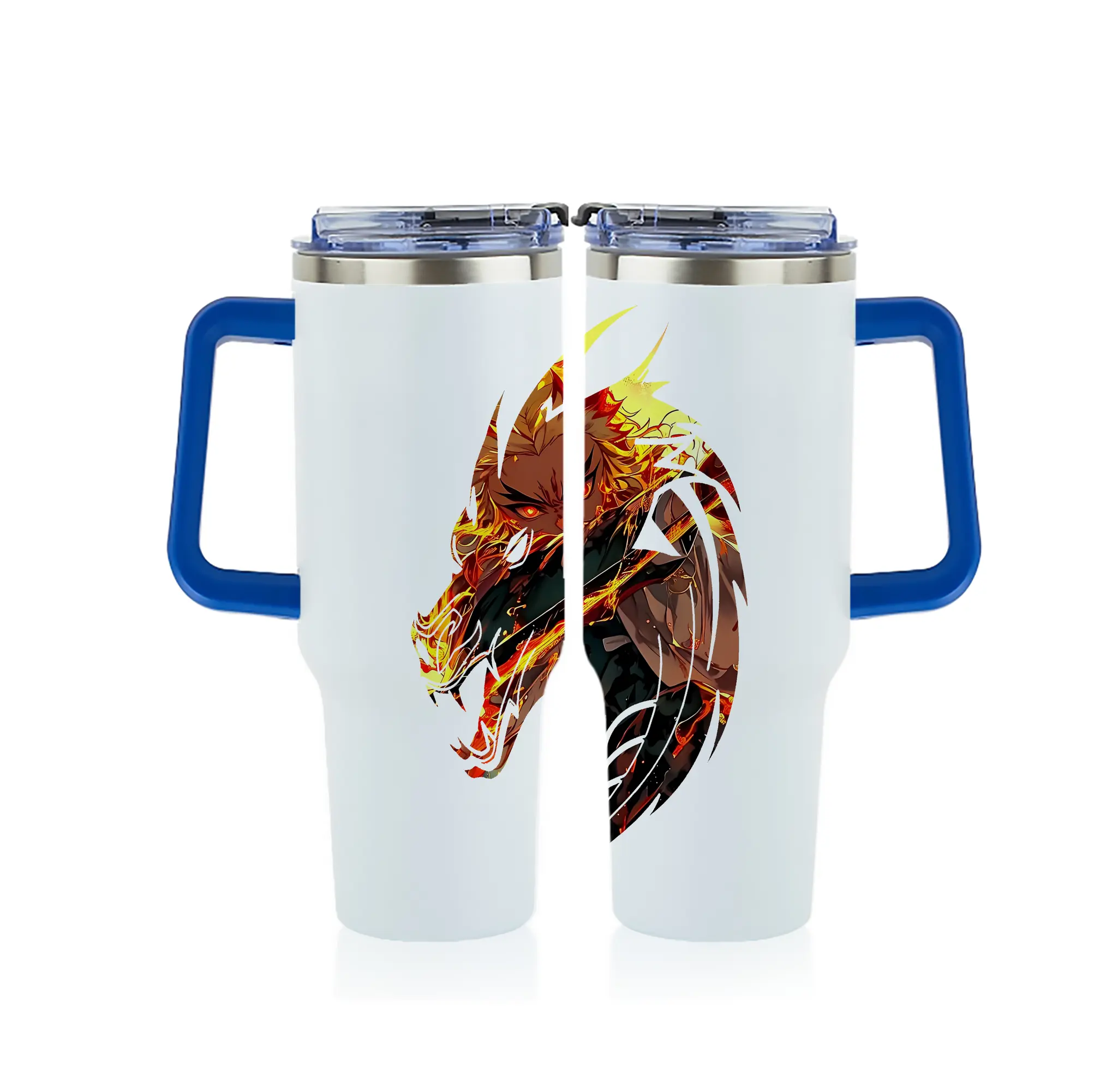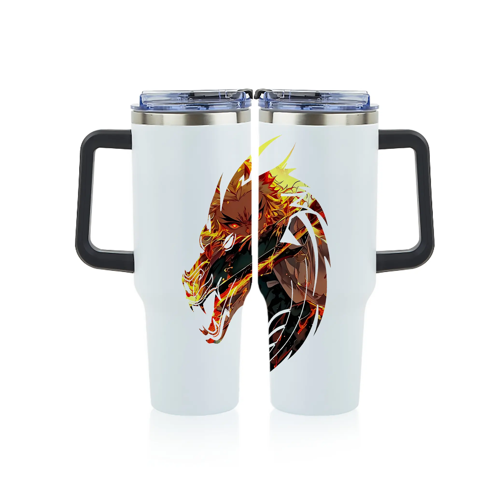 鬼滅の刃 グッズ,煉獄 杏寿郎 - 1200mL フルプリント車用タンブラー ・ 304ステンレス 内側 ・ 201ステンレス 外側 ・ 保温 保冷 ・ 通勤 ドライブ アウトドア用