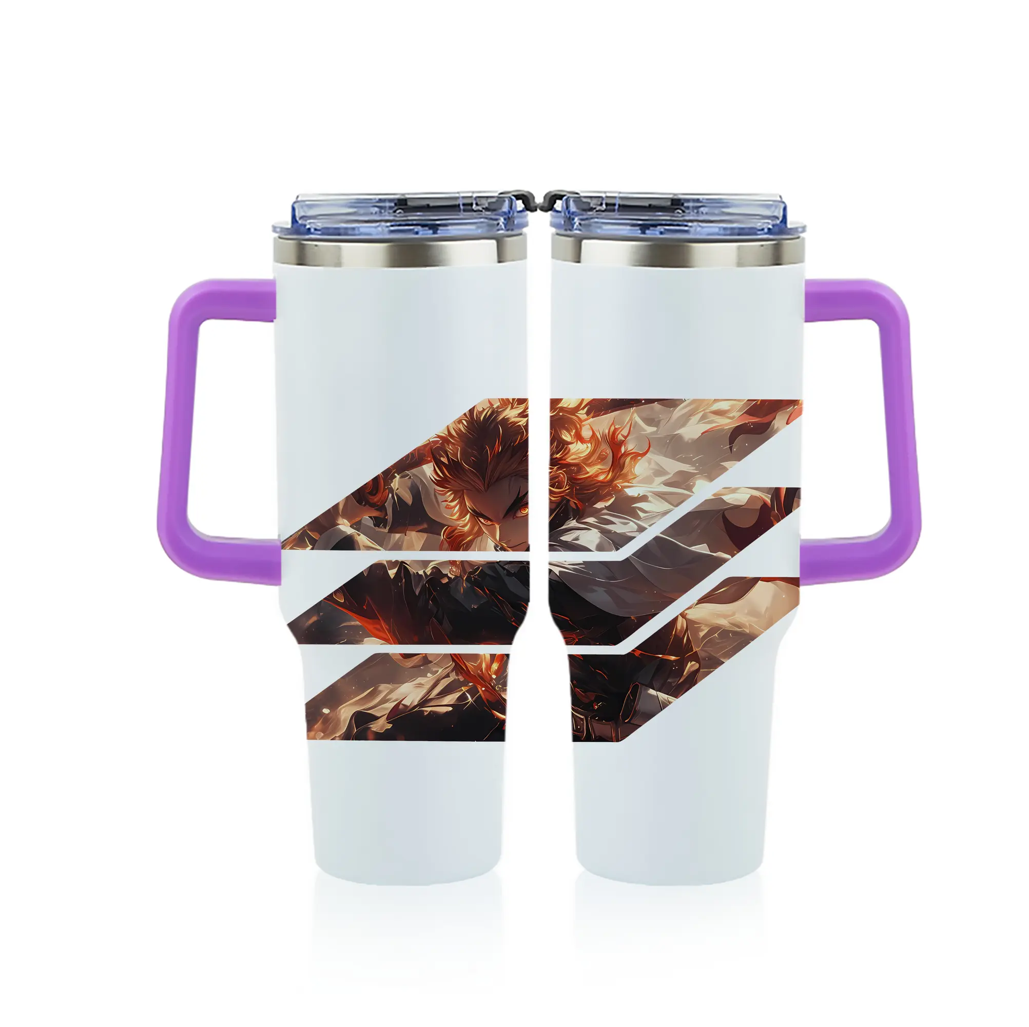 鬼滅の刃 グッズ,煉獄 杏寿郎 - 1200mL フルプリント車用タンブラー ・ 304ステンレス 内側 ・ 201ステンレス 外側 ・ 保温 保冷 ・ 通勤 ドライブ アウトドア用