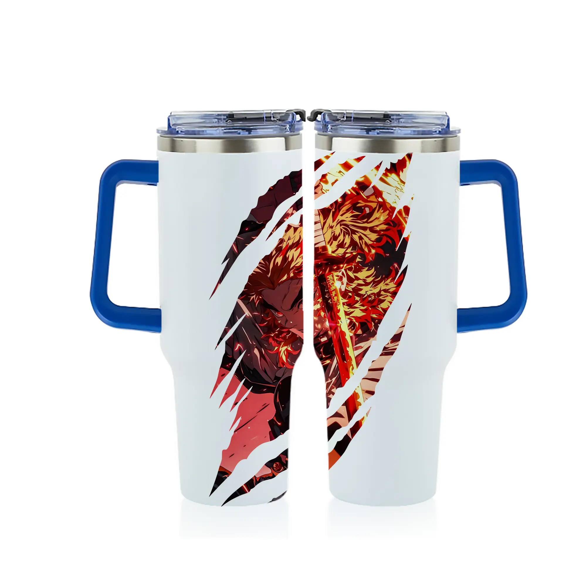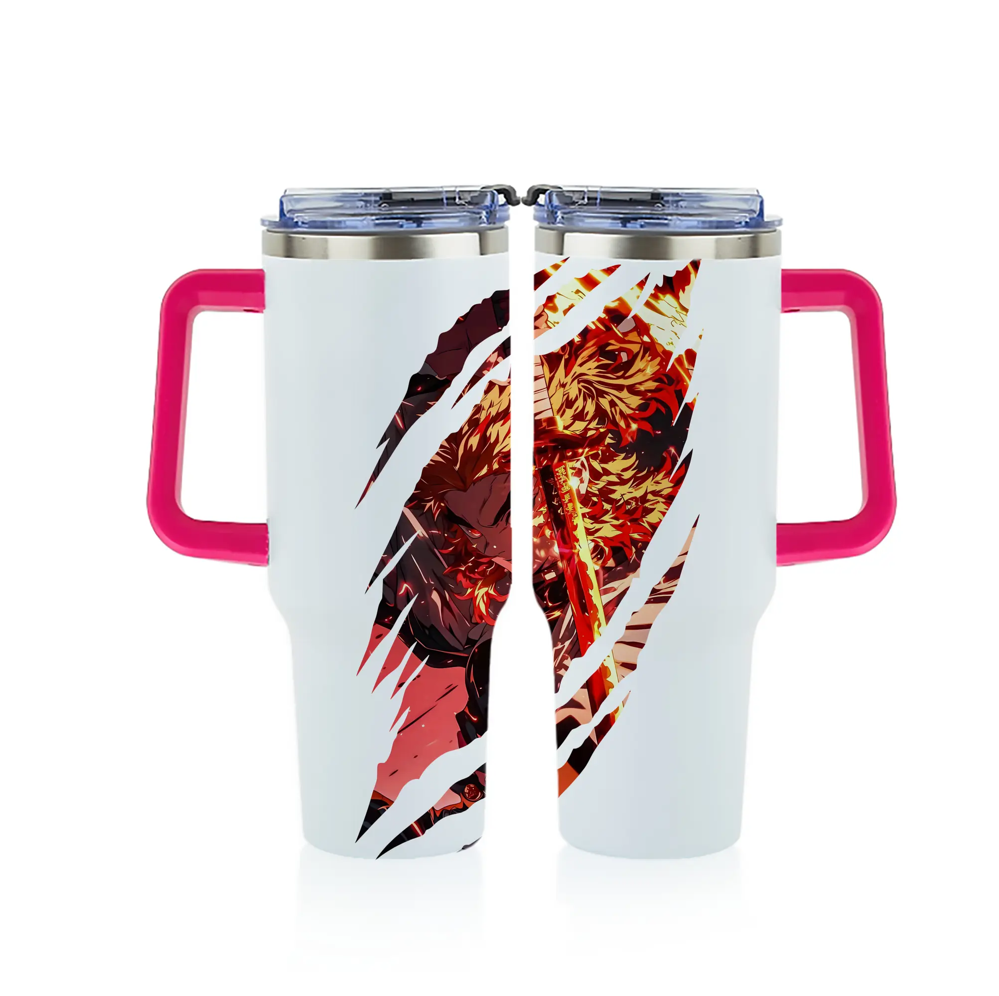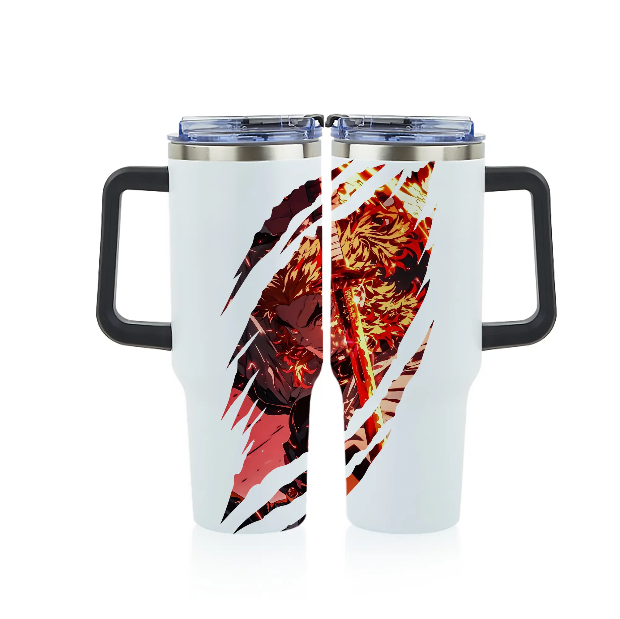 鬼滅の刃 グッズ,煉獄 杏寿郎 - 1200mL フルプリント車用タンブラー ・ 304ステンレス 内側 ・ 201ステンレス 外側 ・ 保温 保冷 ・ 通勤 ドライブ アウトドア用