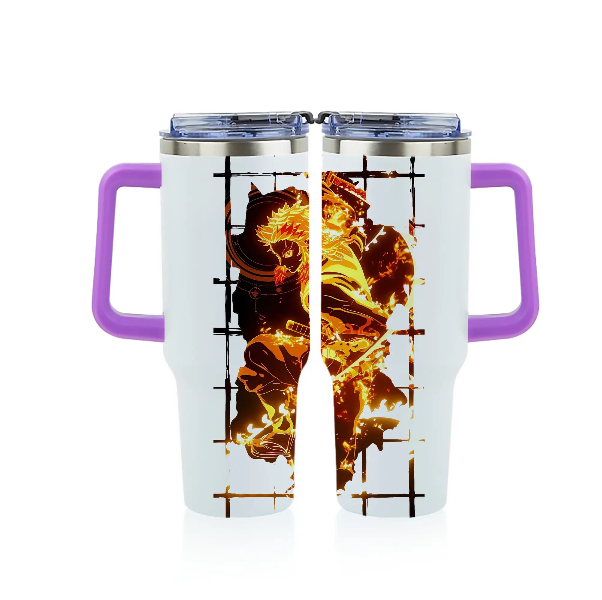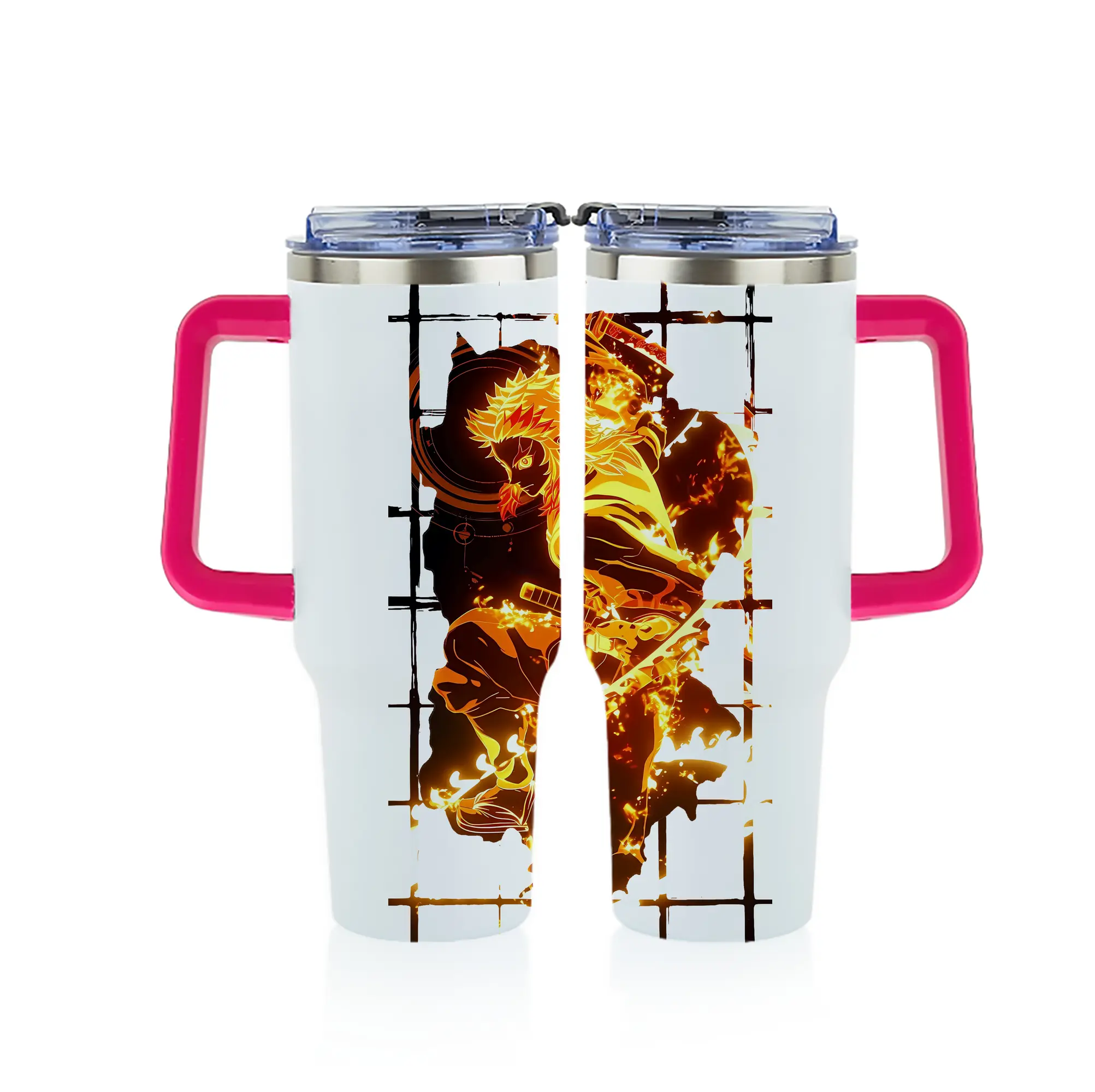 鬼滅の刃 グッズ,煉獄 杏寿郎 - 1200mL フルプリント車用タンブラー ・ 304ステンレス 内側 ・ 201ステンレス 外側 ・ 保温 保冷 ・ 通勤 ドライブ アウトドア用