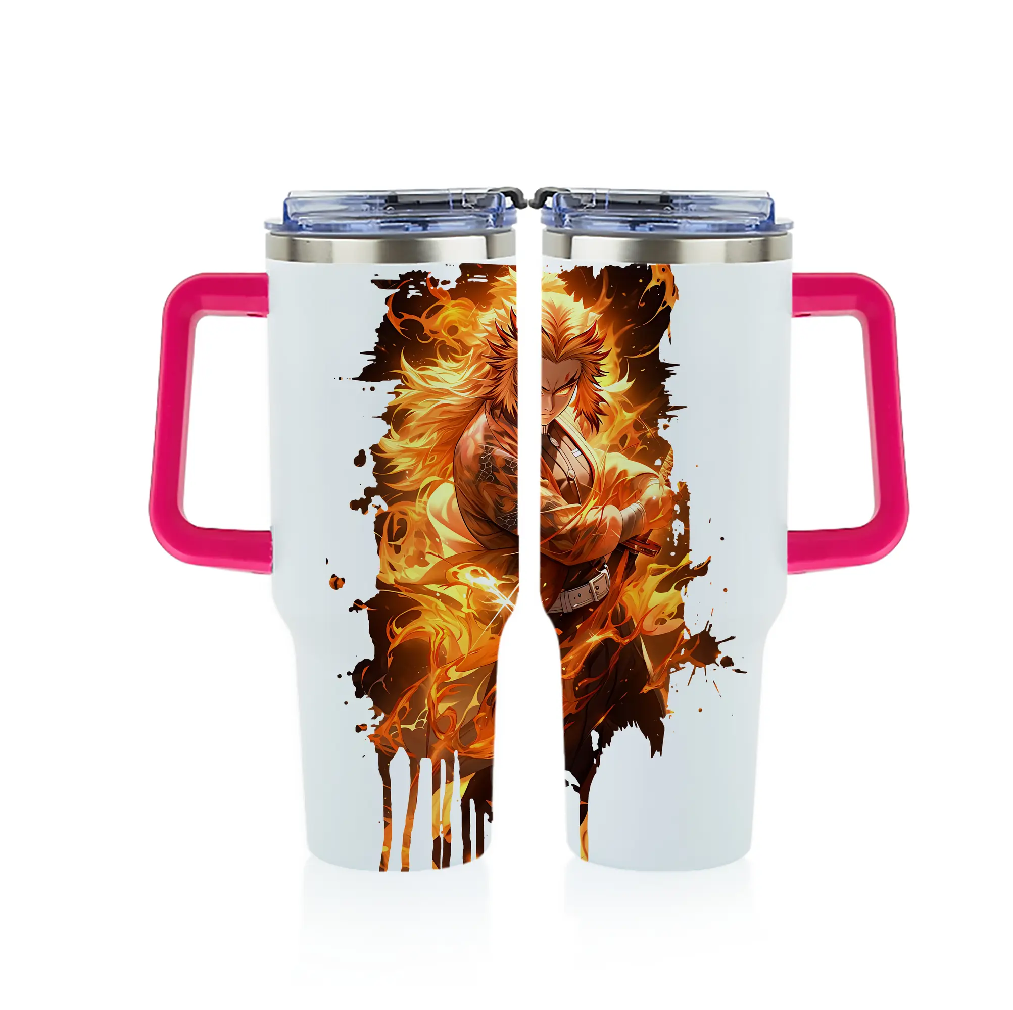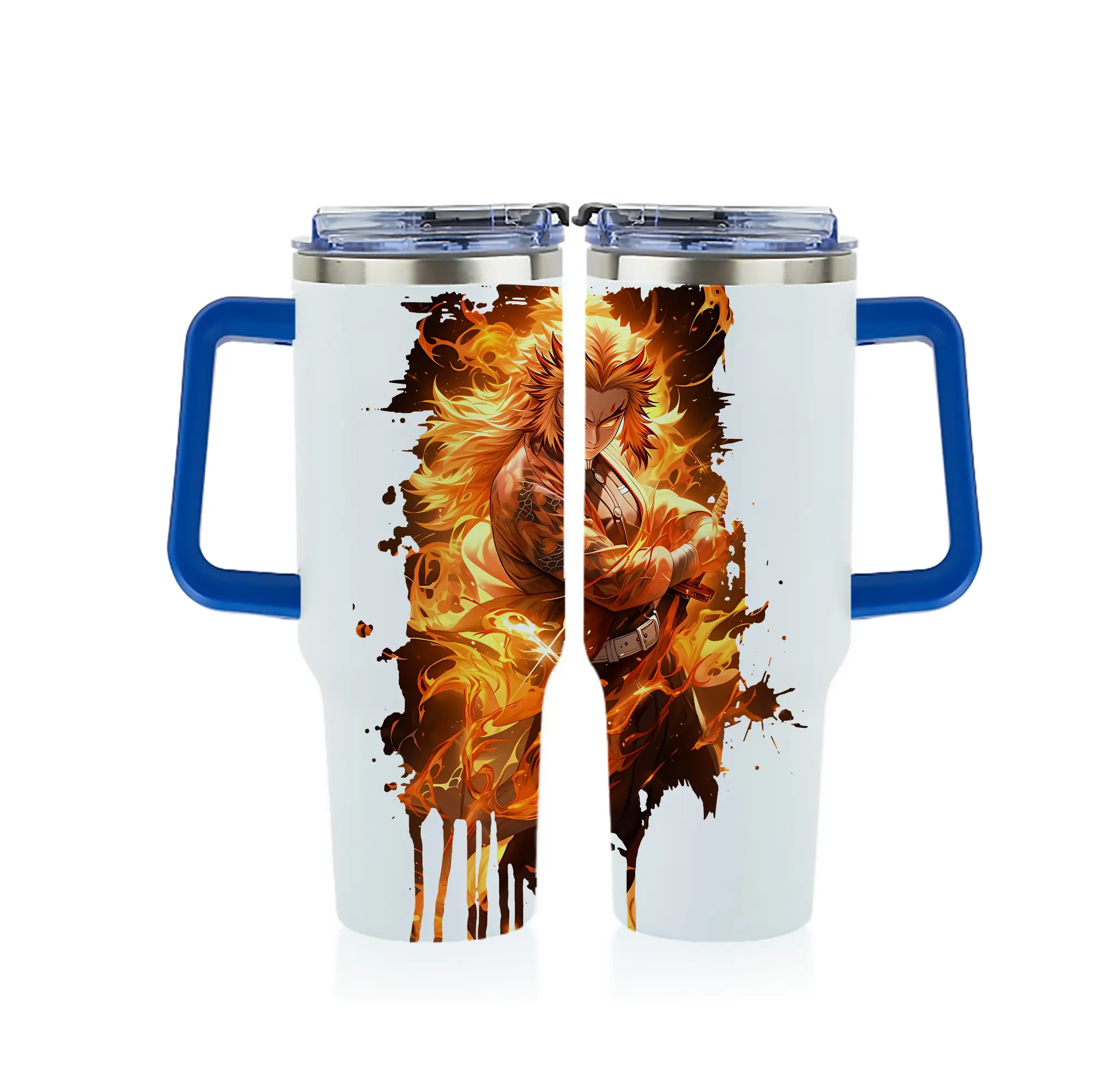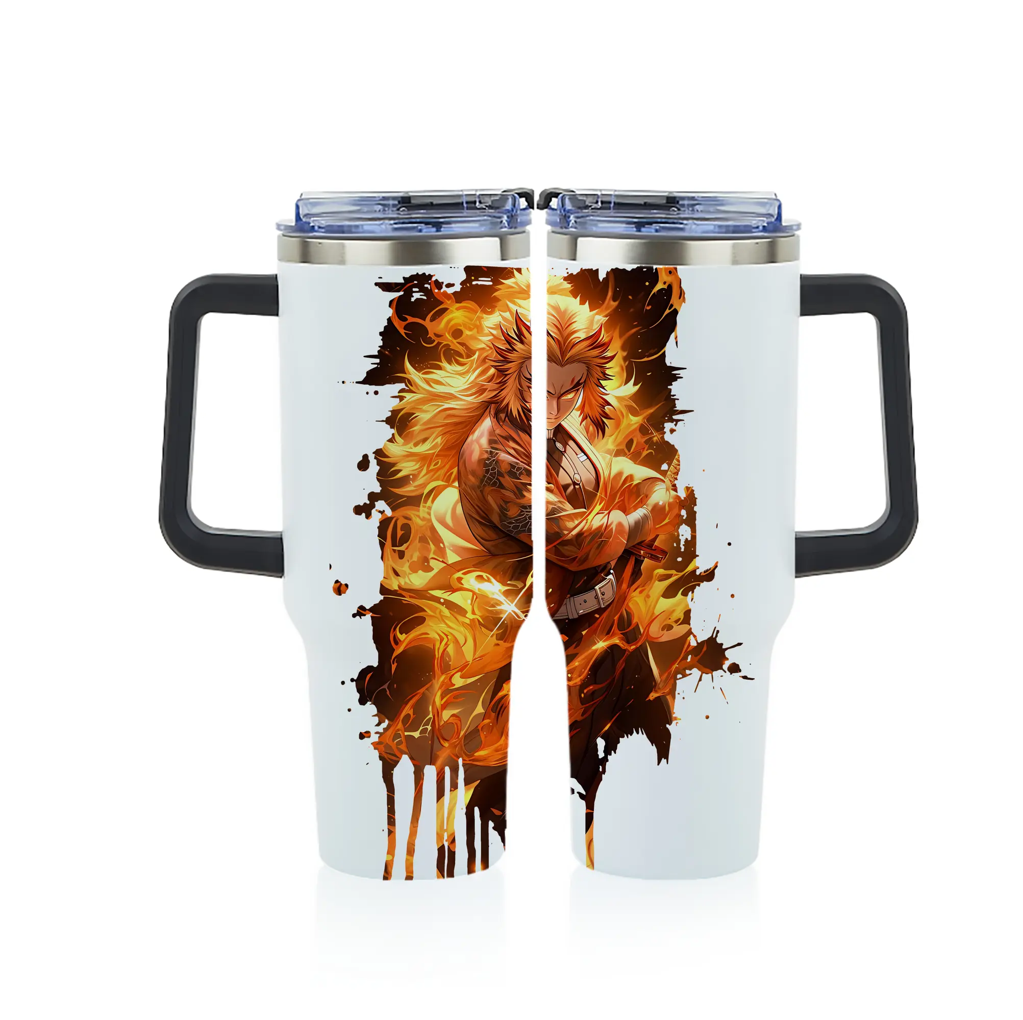 鬼滅の刃 グッズ,煉獄 杏寿郎 - 1200mL フルプリント車用タンブラー ・ 304ステンレス 内側 ・ 201ステンレス 外側 ・ 保温 保冷 ・ 通勤 ドライブ アウトドア用