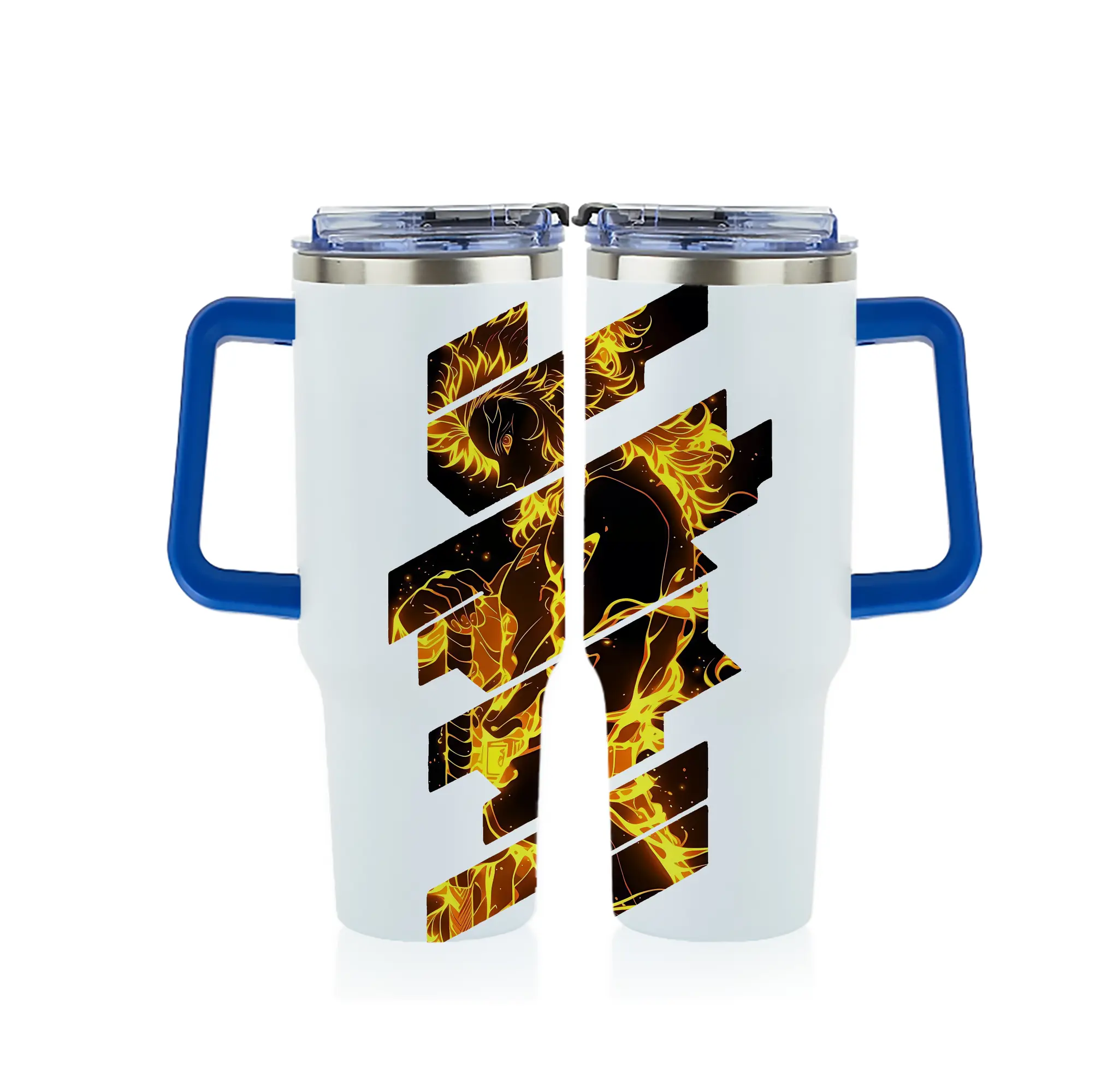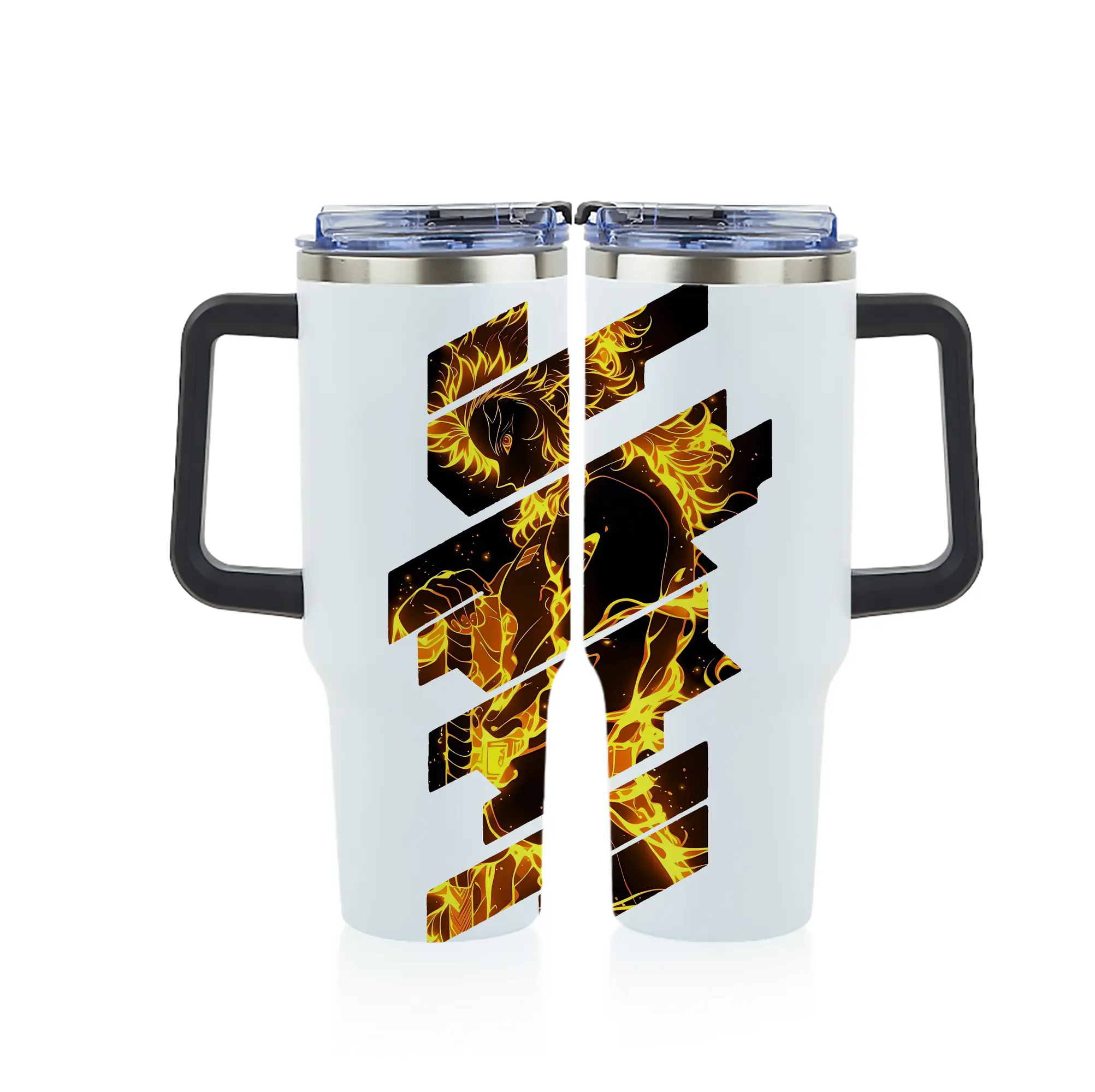 鬼滅の刃 グッズ,煉獄 杏寿郎 - 1200mL フルプリント車用タンブラー ・ 304ステンレス 内側 ・ 201ステンレス 外側 ・ 保温 保冷 ・ 通勤 ドライブ アウトドア用