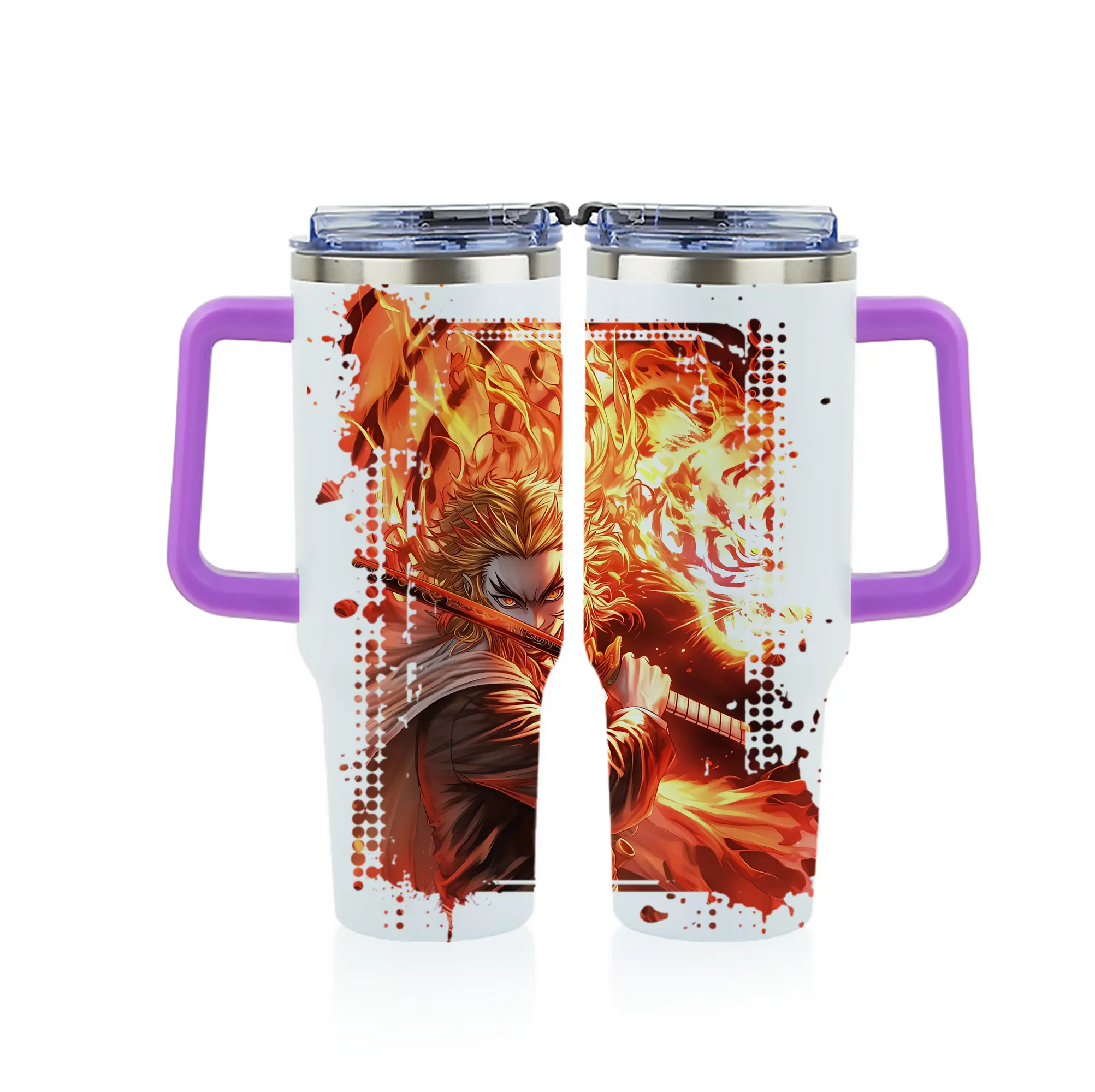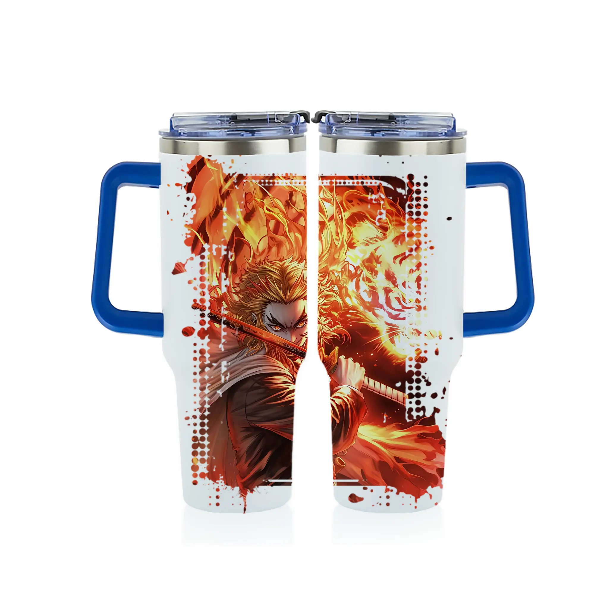 鬼滅の刃 グッズ,煉獄 杏寿郎 - 1200mL フルプリント車用タンブラー ・ 304ステンレス 内側 ・ 201ステンレス 外側 ・ 保温 保冷 ・ 通勤 ドライブ アウトドア用