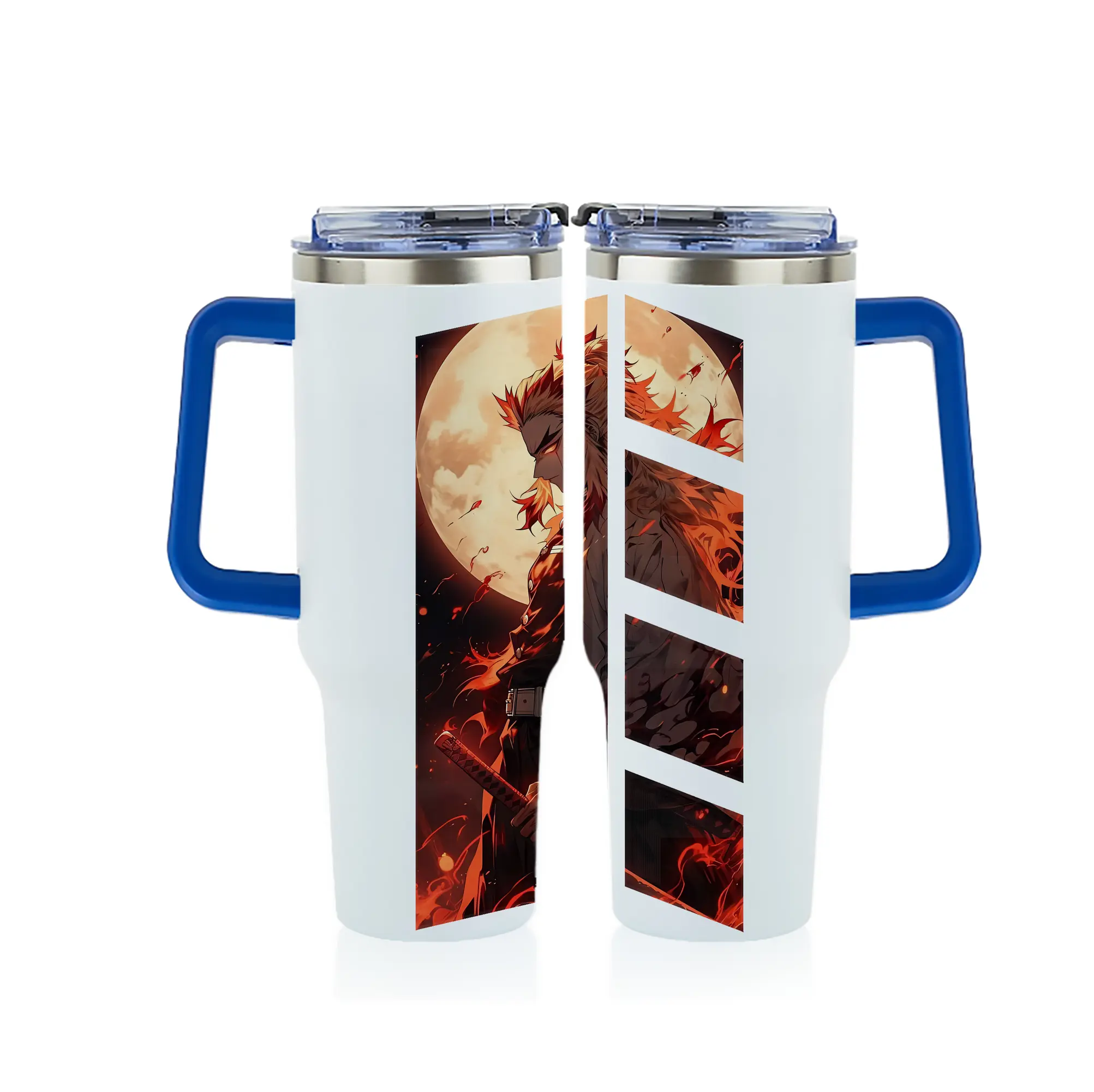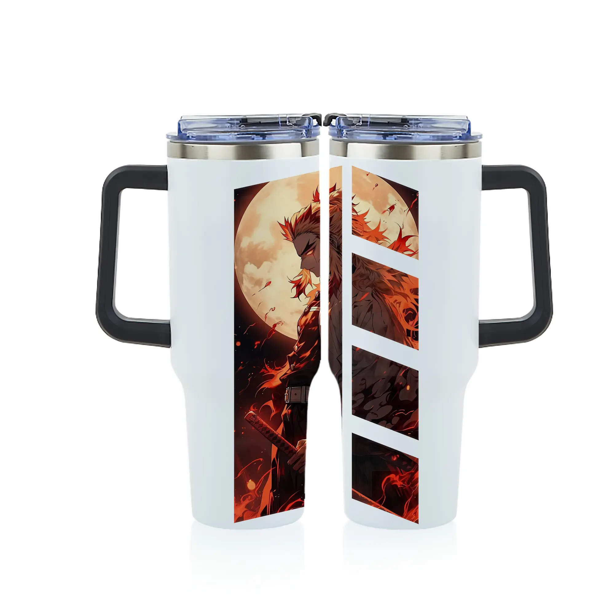 鬼滅の刃 グッズ,煉獄 杏寿郎 - 1200mL フルプリント車用タンブラー ・ 304ステンレス 内側 ・ 201ステンレス 外側 ・ 保温 保冷 ・ 通勤 ドライブ アウトドア用