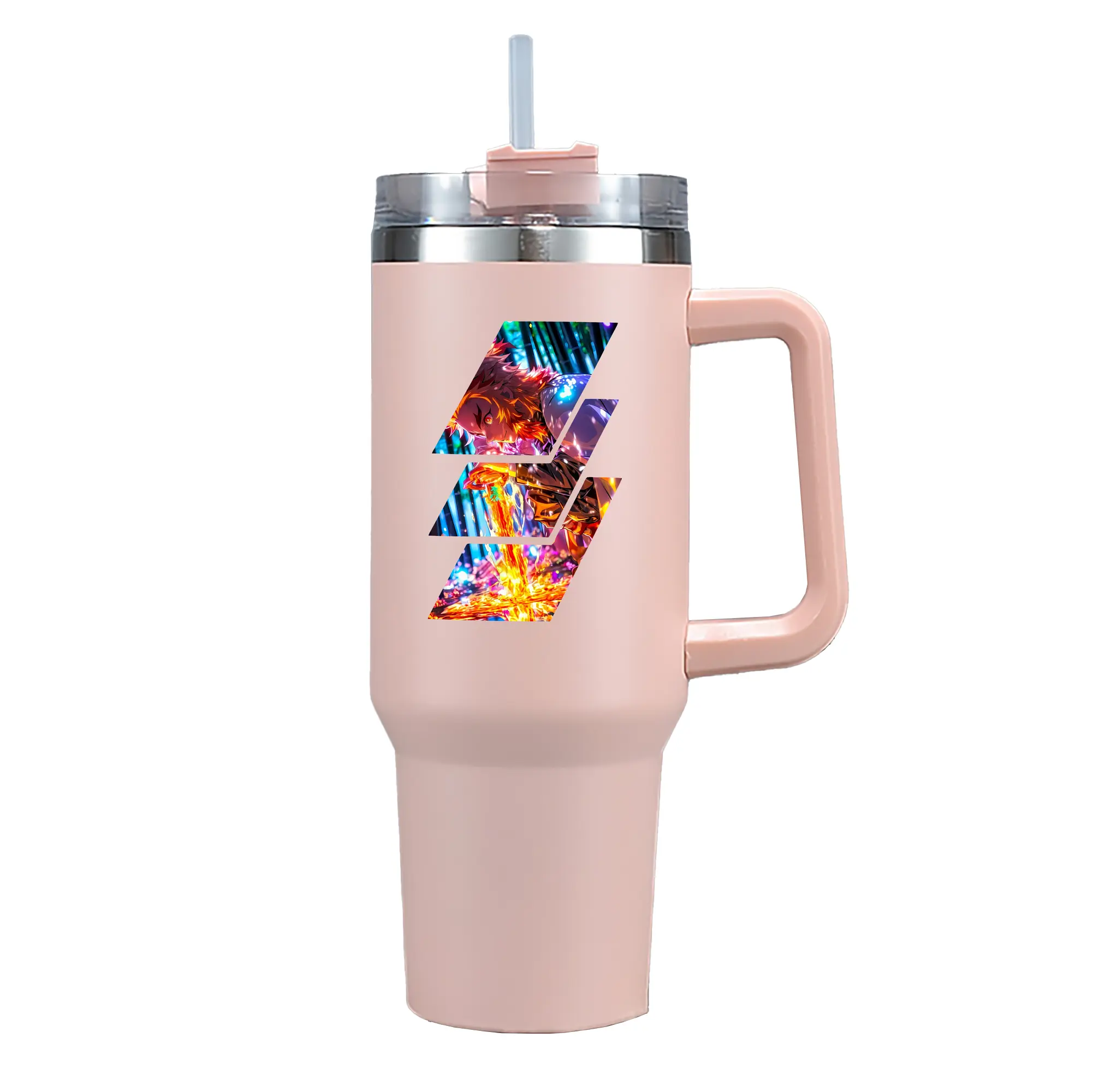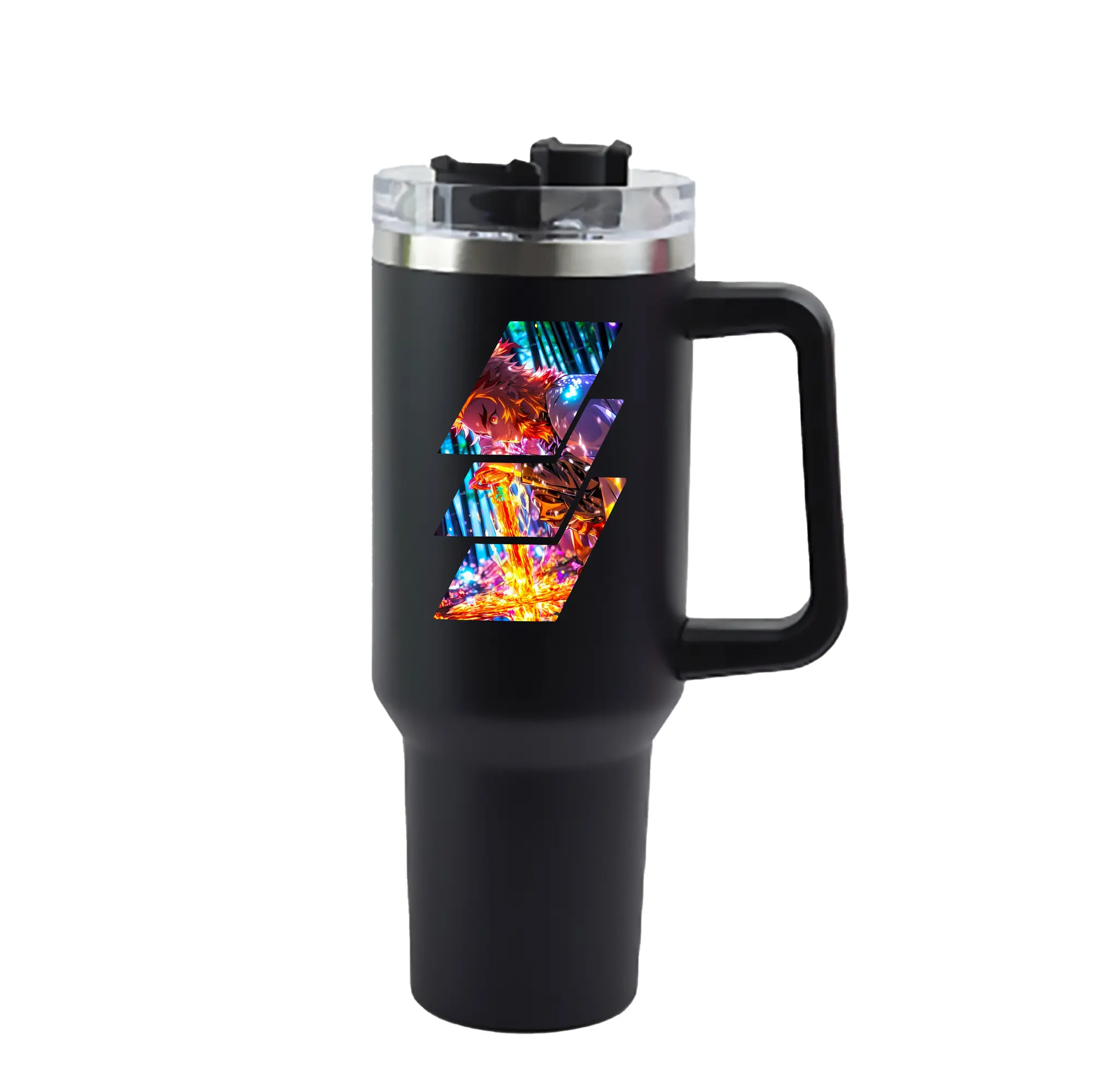 鬼滅の刃 グッズ,煉獄 杏寿郎 - 1200mL 車用タンブラー ・ クリスタルステッカー ・ 304ステンレス 内側 ・ 201ステンレス 外側 ・ 保温 保冷 ・ ハンドル&ストロー付き ・ 通勤 ドライブ アウトドア用