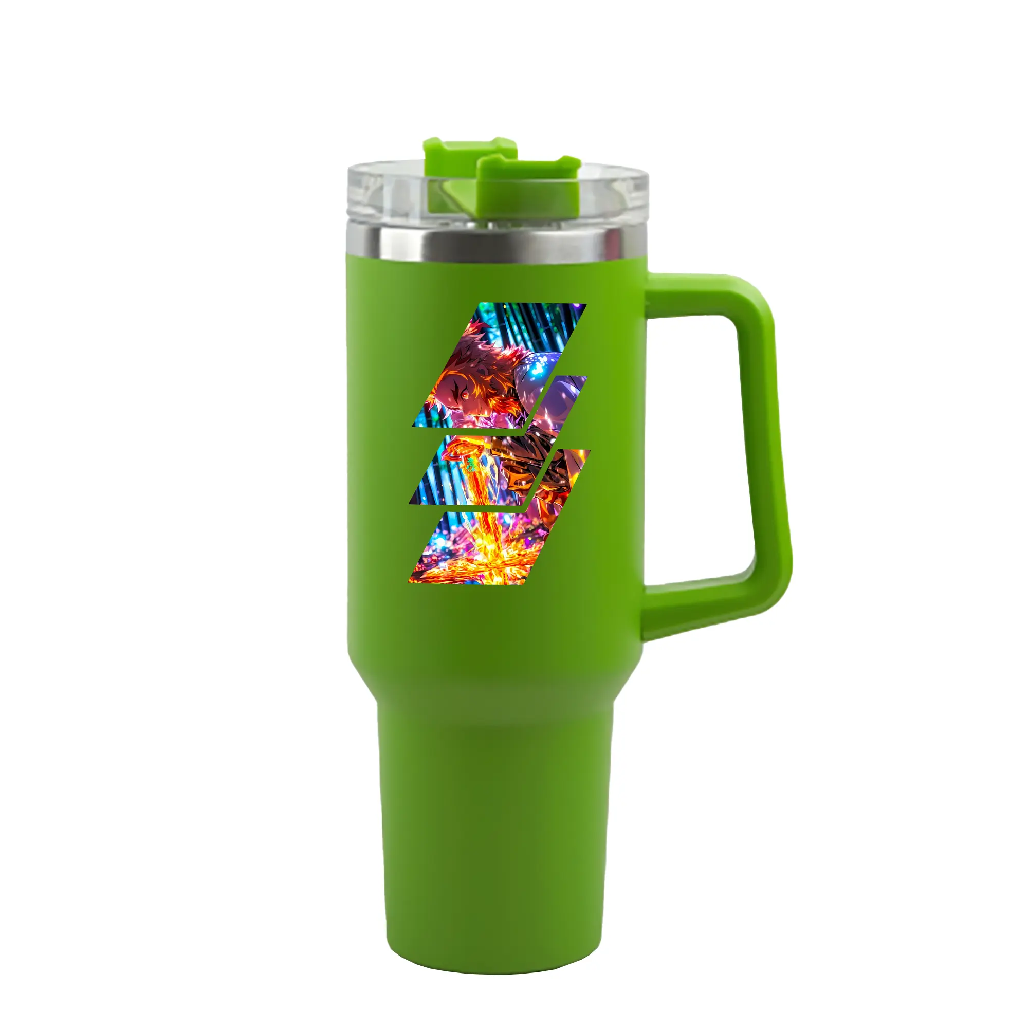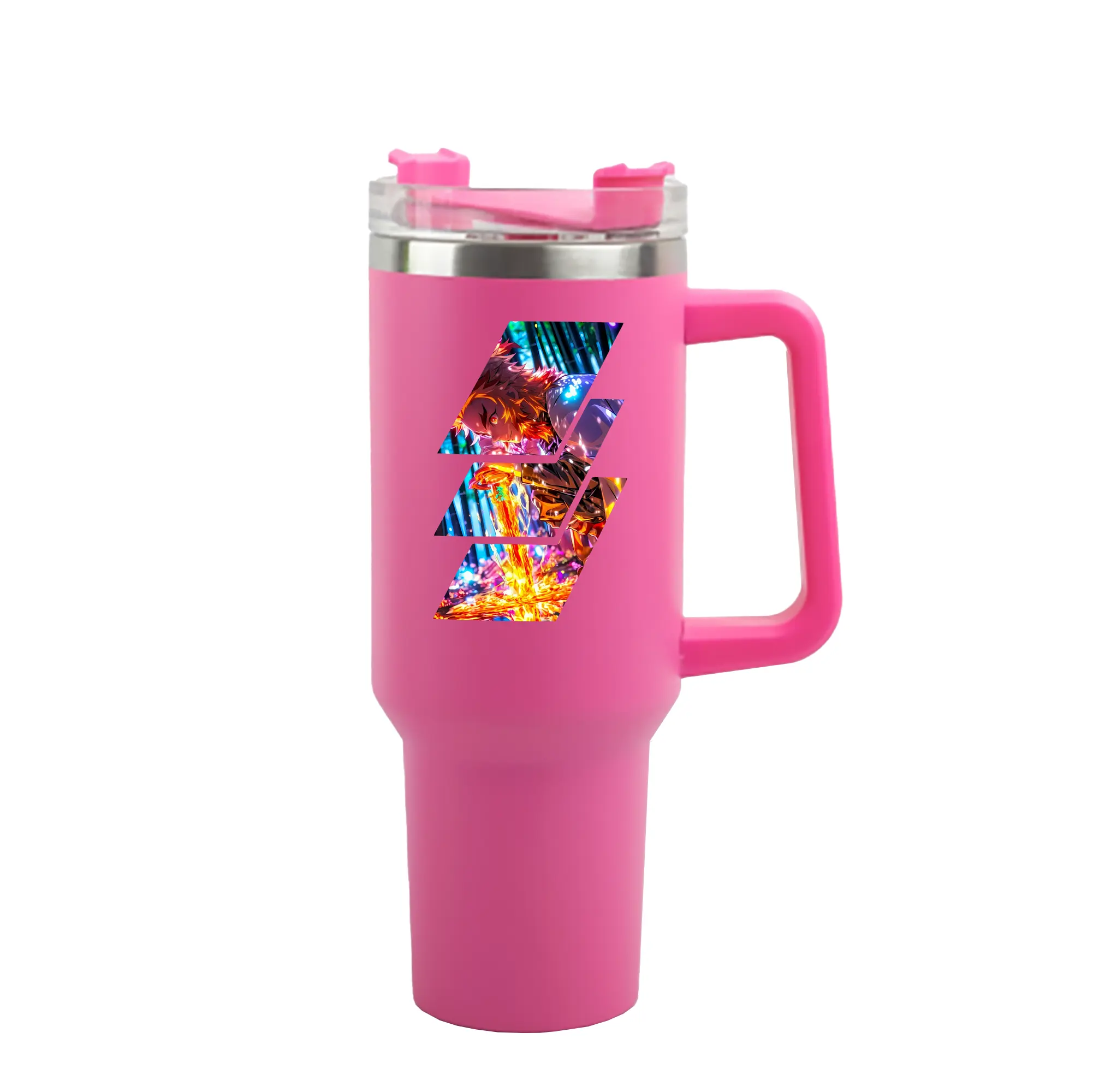 1200mL(40オンス)の大容量ハンドル付きカータンブラー。キラキラと輝くクリスタルステッカーデザインが、毎日の使用に華やかさをプラスします。食品グレード304ステンレスの内側と頑丈な201ステンレスの外側を採用し、耐久性・耐腐食性・安全性を兼ね備えています。