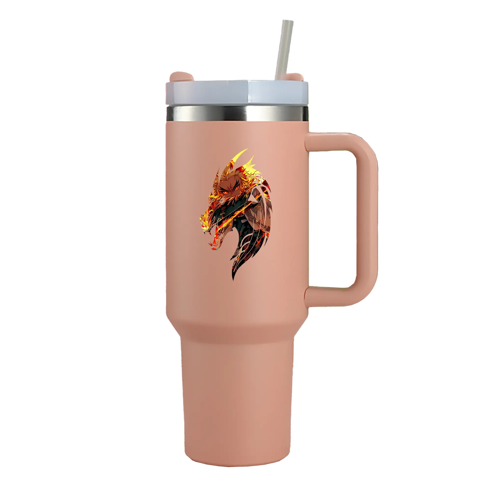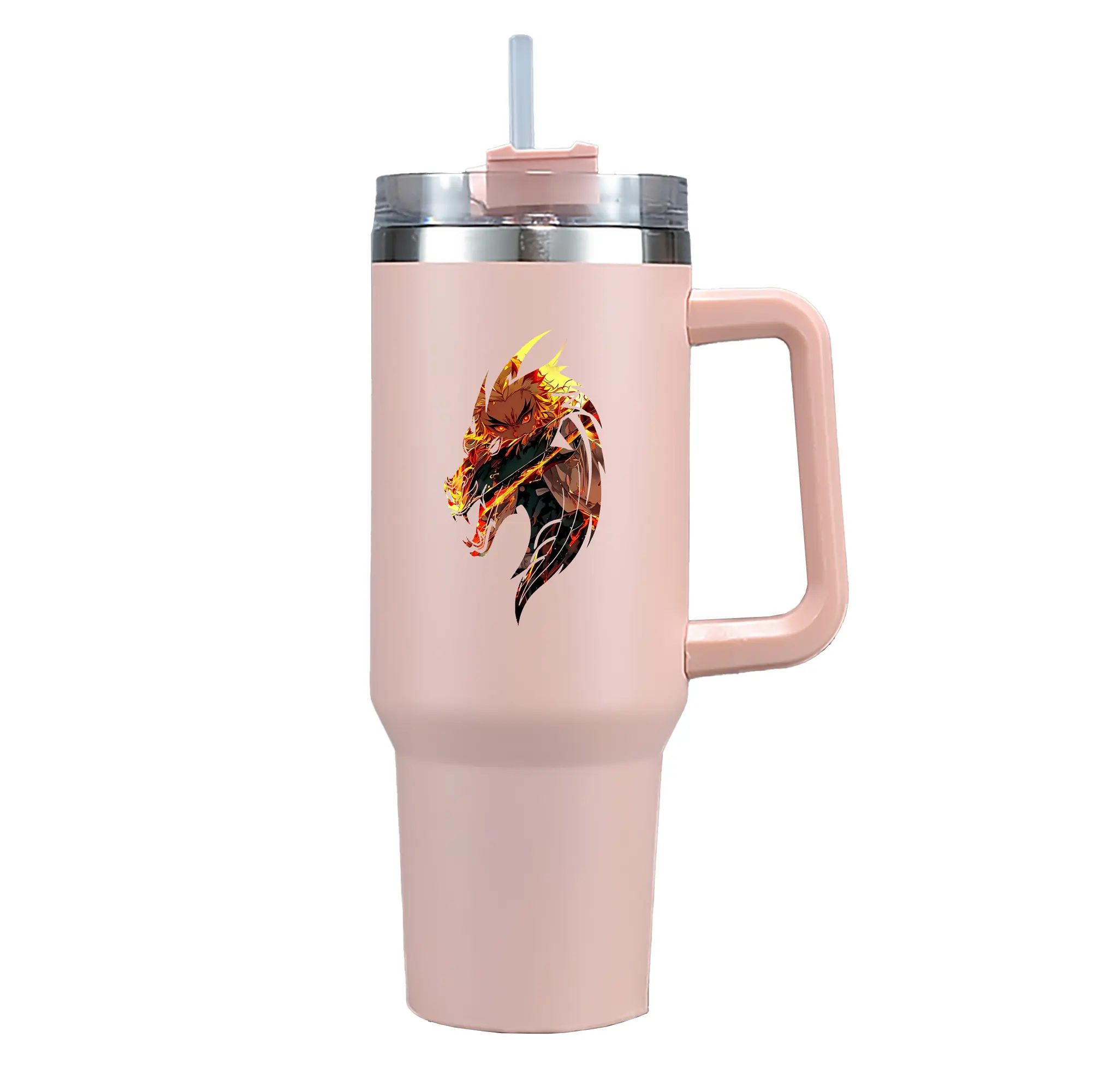 鬼滅の刃 グッズ,煉獄 杏寿郎 - 1200mL 車用タンブラー ・ クリスタルステッカー ・ 304ステンレス 内側 ・ 201ステンレス 外側 ・ 保温 保冷 ・ ハンドル&ストロー付き ・ 通勤 ドライブ アウトドア用