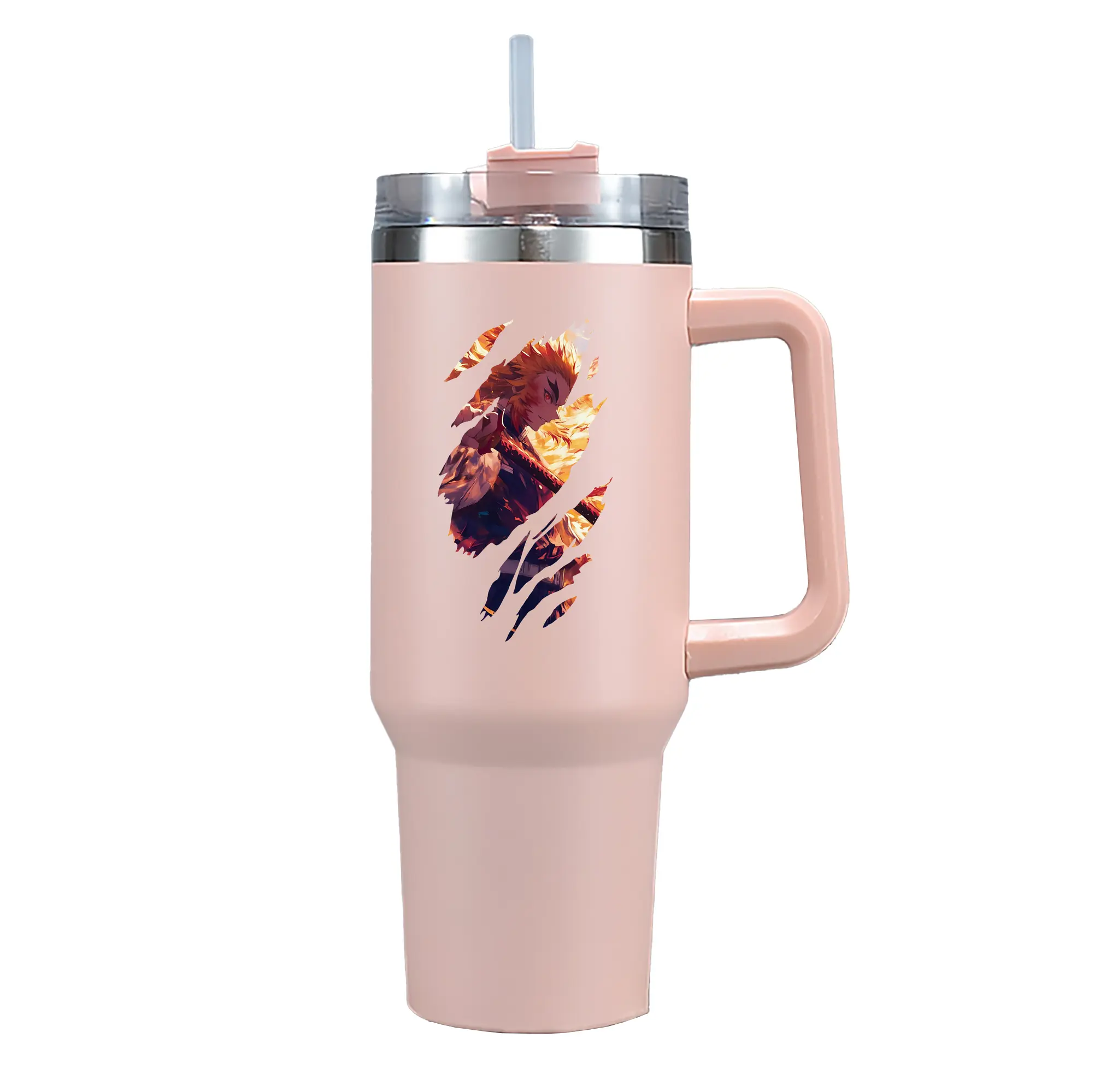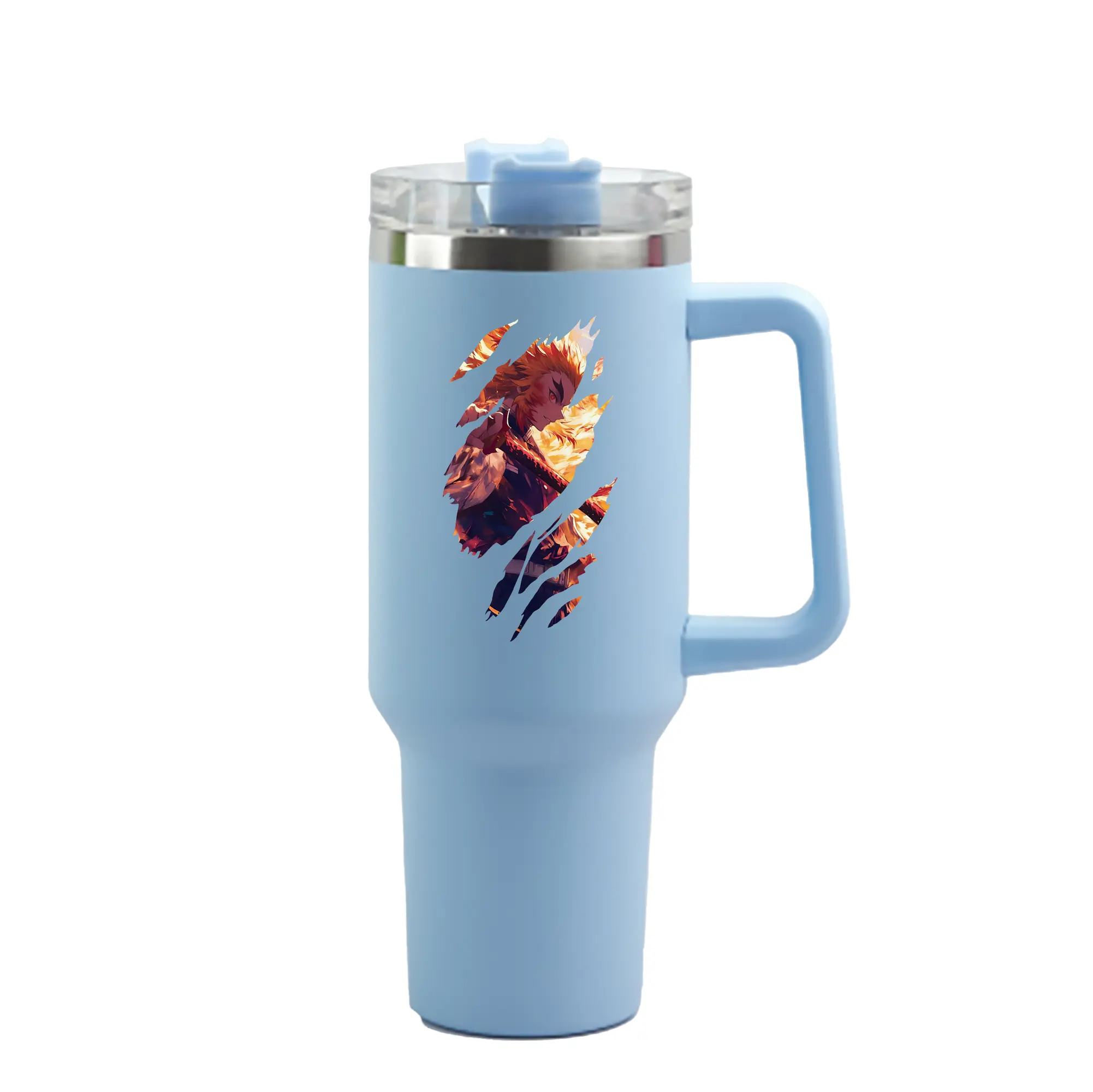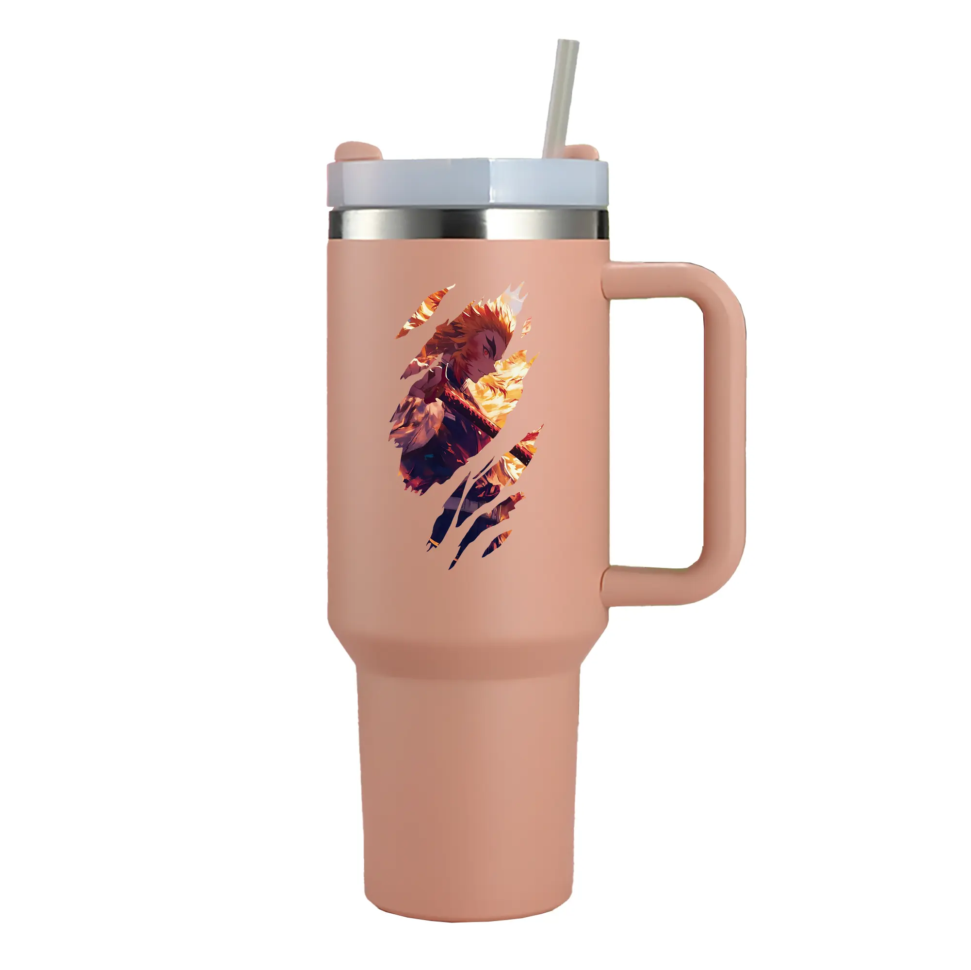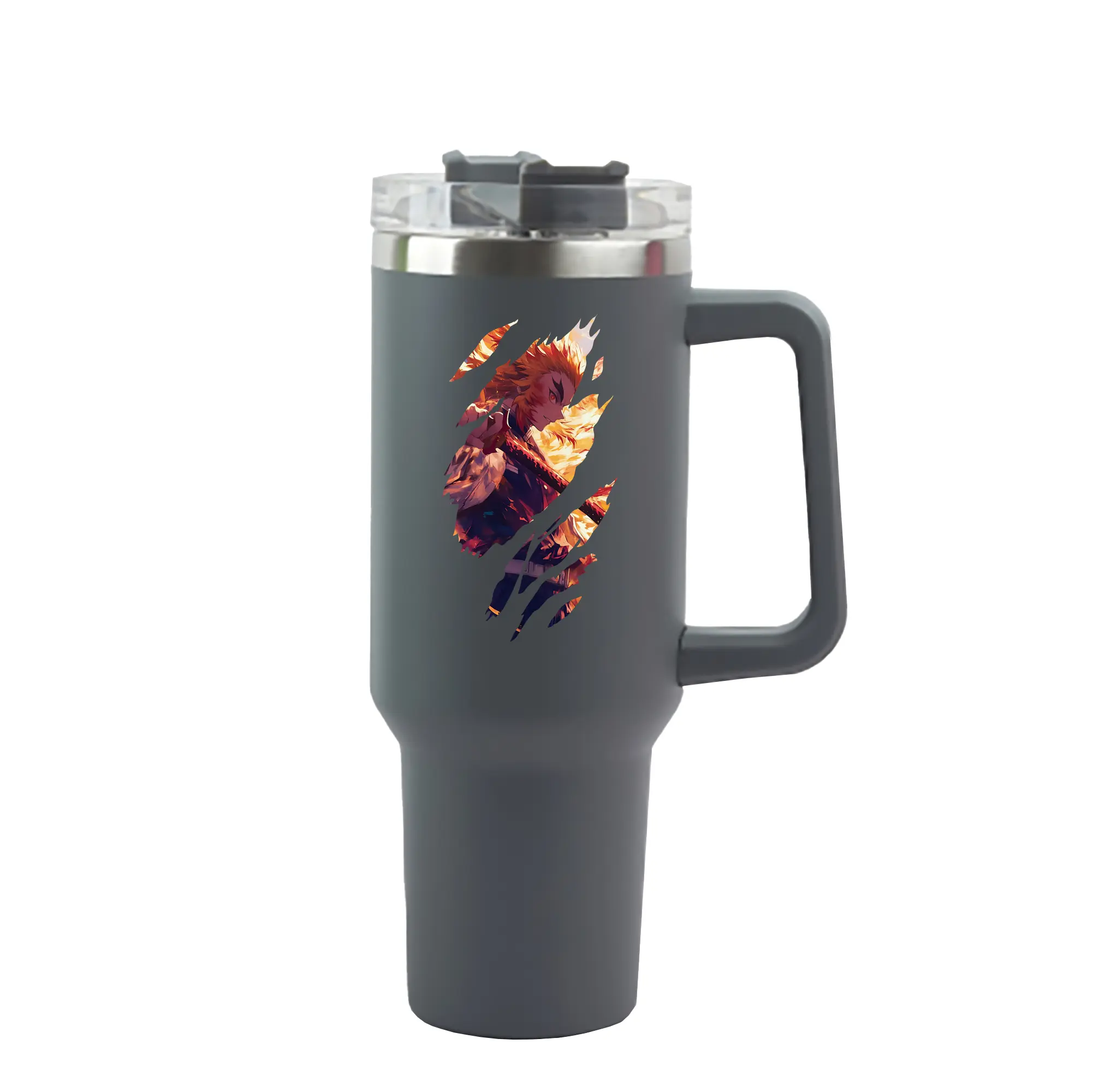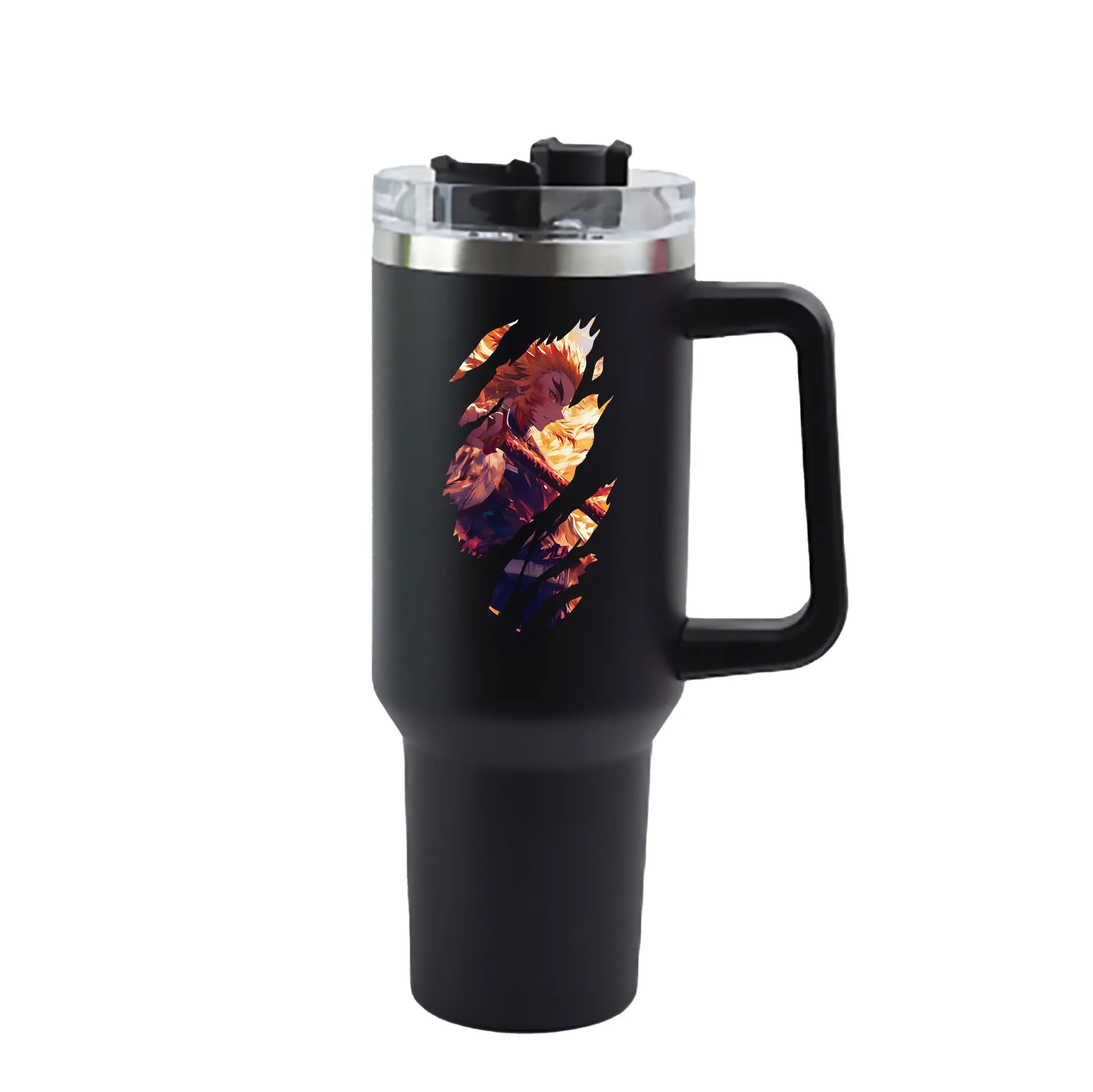 鬼滅の刃 グッズ,煉獄 杏寿郎 - 1200mL 車用タンブラー ・ クリスタルステッカー ・ 304ステンレス 内側 ・ 201ステンレス 外側 ・ 保温 保冷 ・ ハンドル&ストロー付き ・ 通勤 ドライブ アウトドア用