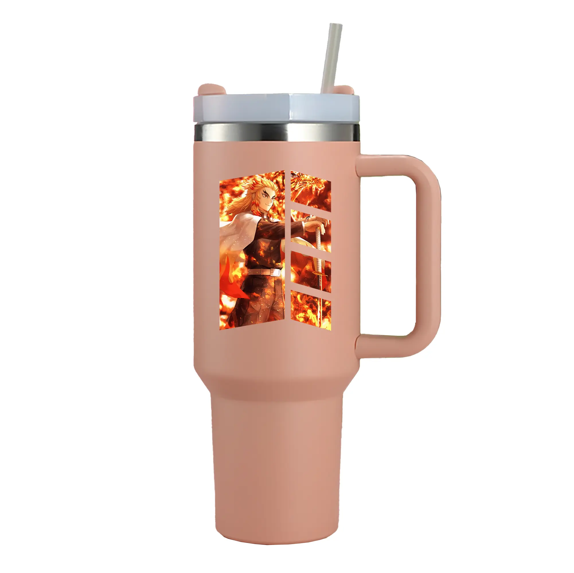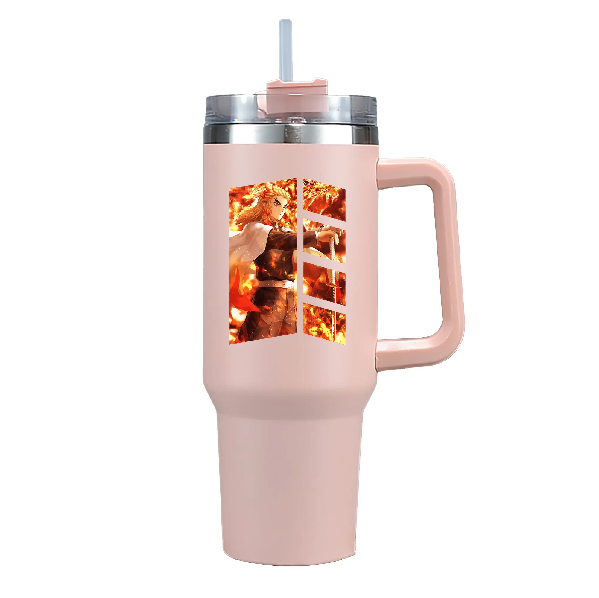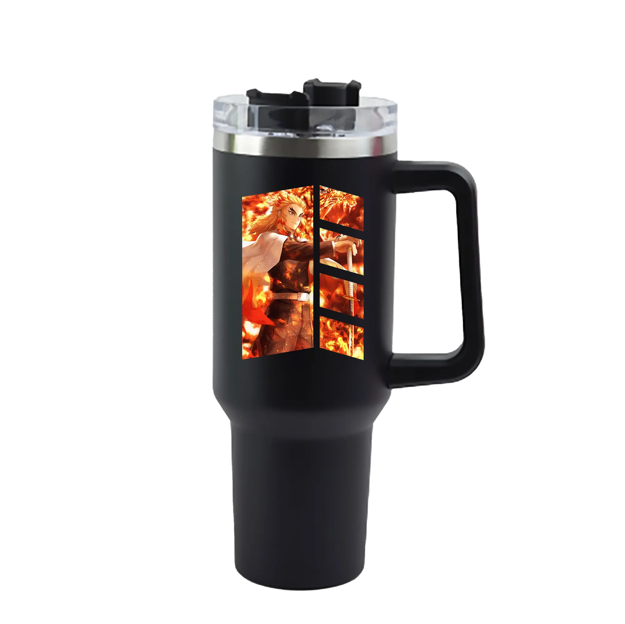 鬼滅の刃 グッズ,煉獄 杏寿郎 - 1200mL 車用タンブラー ・ クリスタルステッカー ・ 304ステンレス 内側 ・ 201ステンレス 外側 ・ 保温 保冷 ・ ハンドル&ストロー付き ・ 通勤 ドライブ アウトドア用