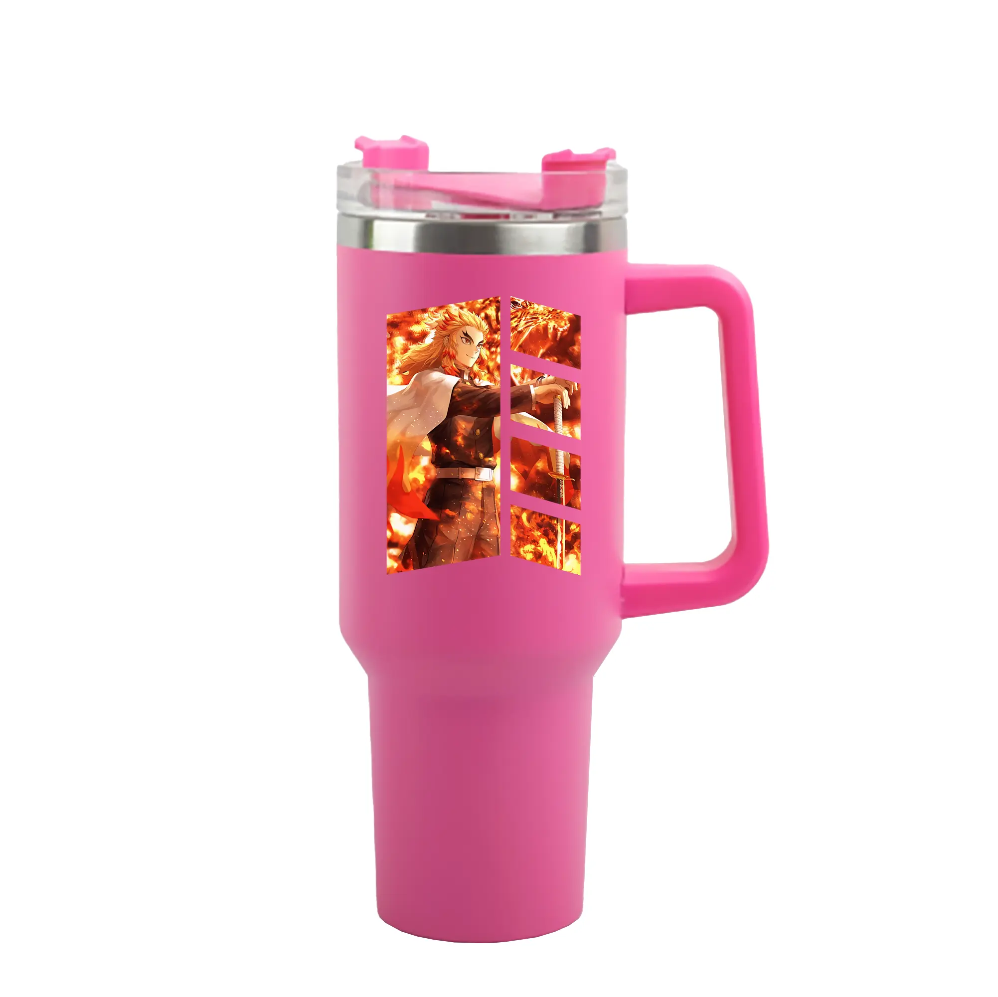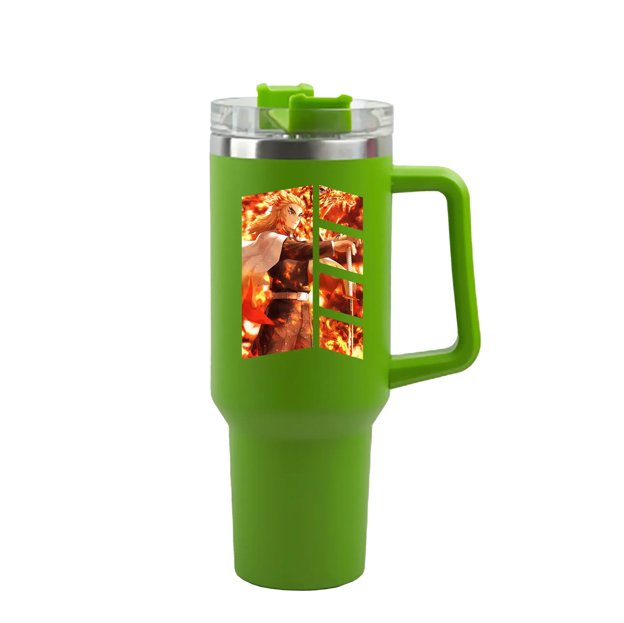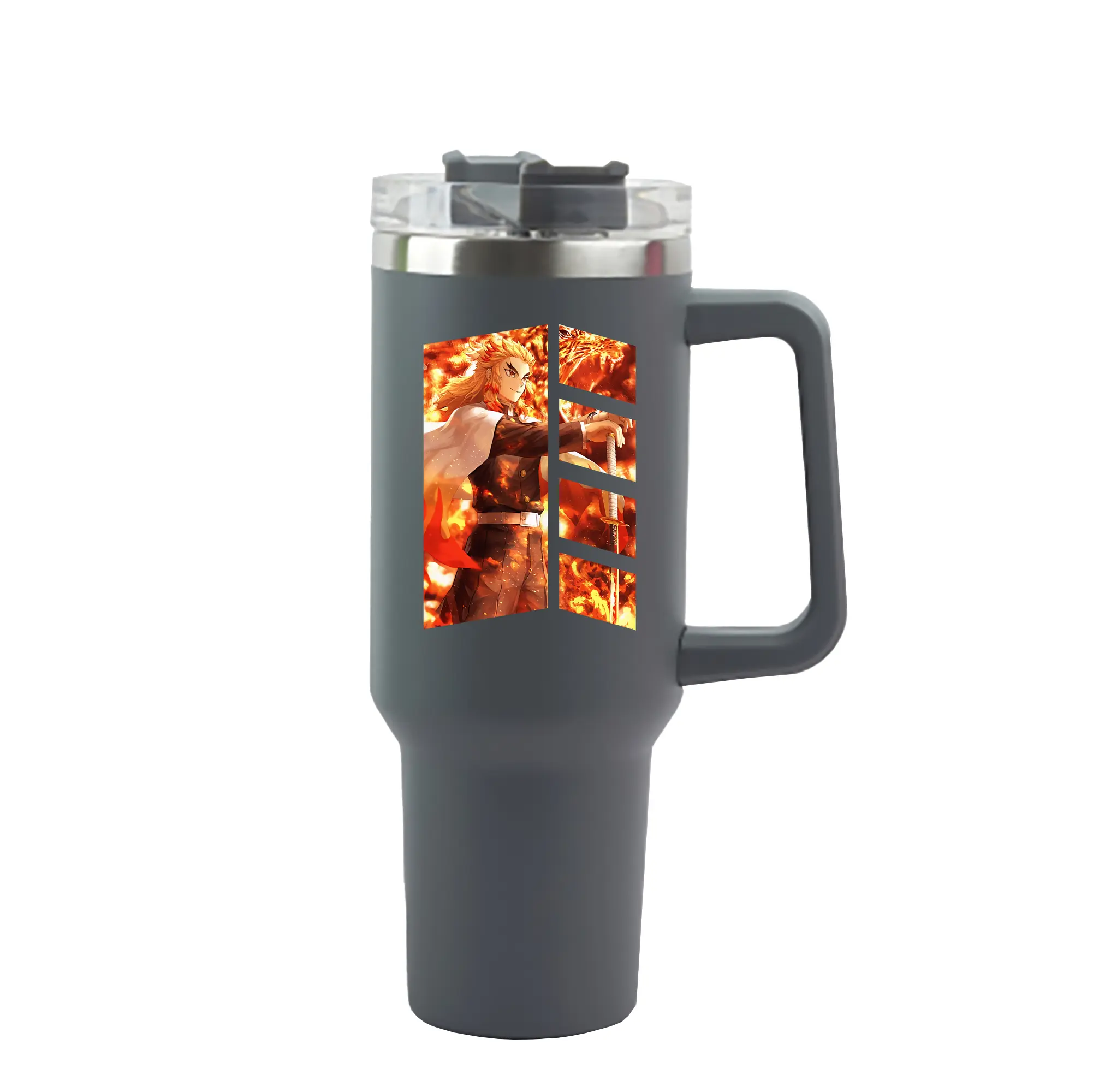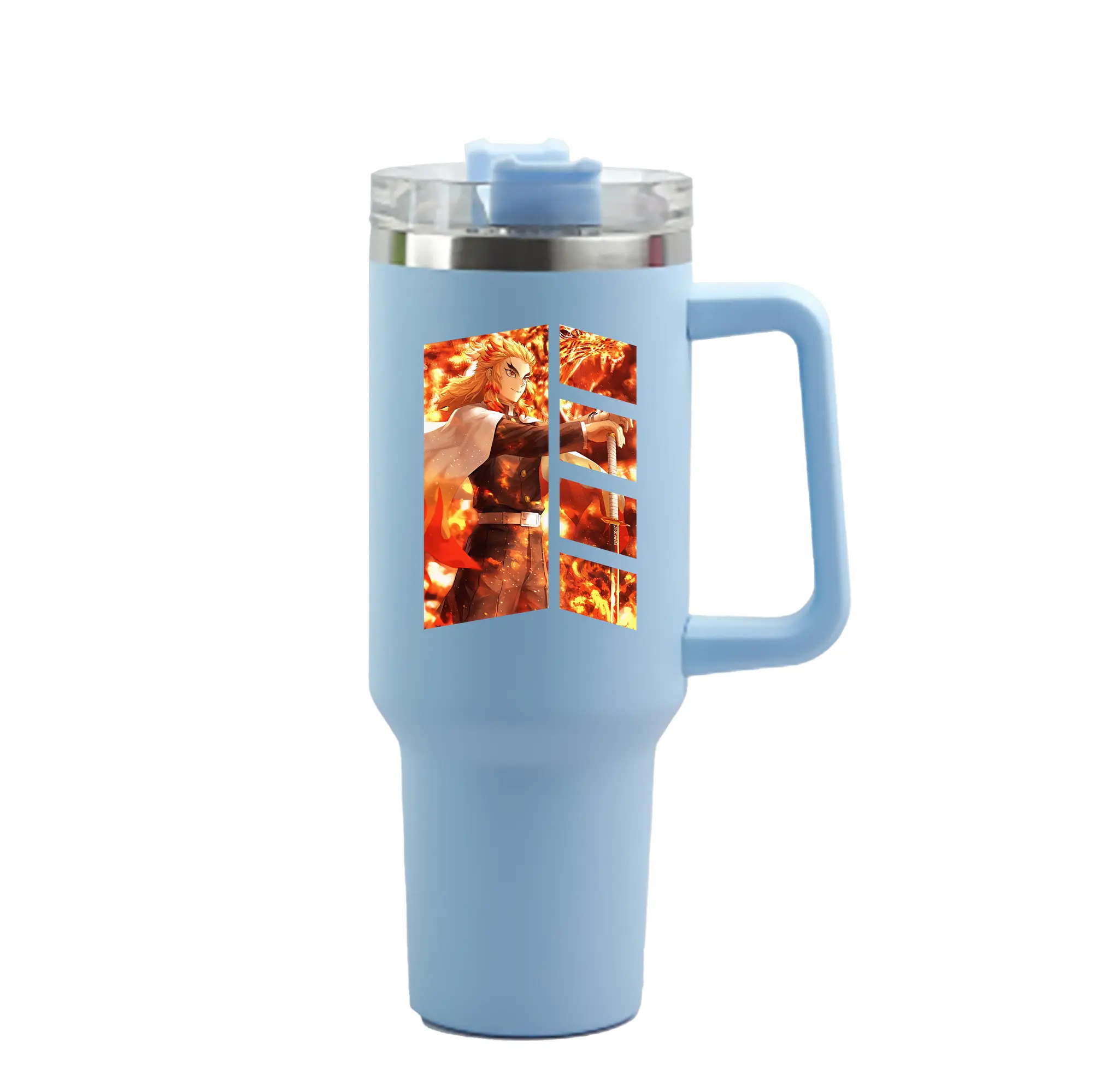 鬼滅の刃 グッズ,煉獄 杏寿郎 - 1200mL 車用タンブラー ・ クリスタルステッカー ・ 304ステンレス 内側 ・ 201ステンレス 外側 ・ 保温 保冷 ・ ハンドル&ストロー付き ・ 通勤 ドライブ アウトドア用