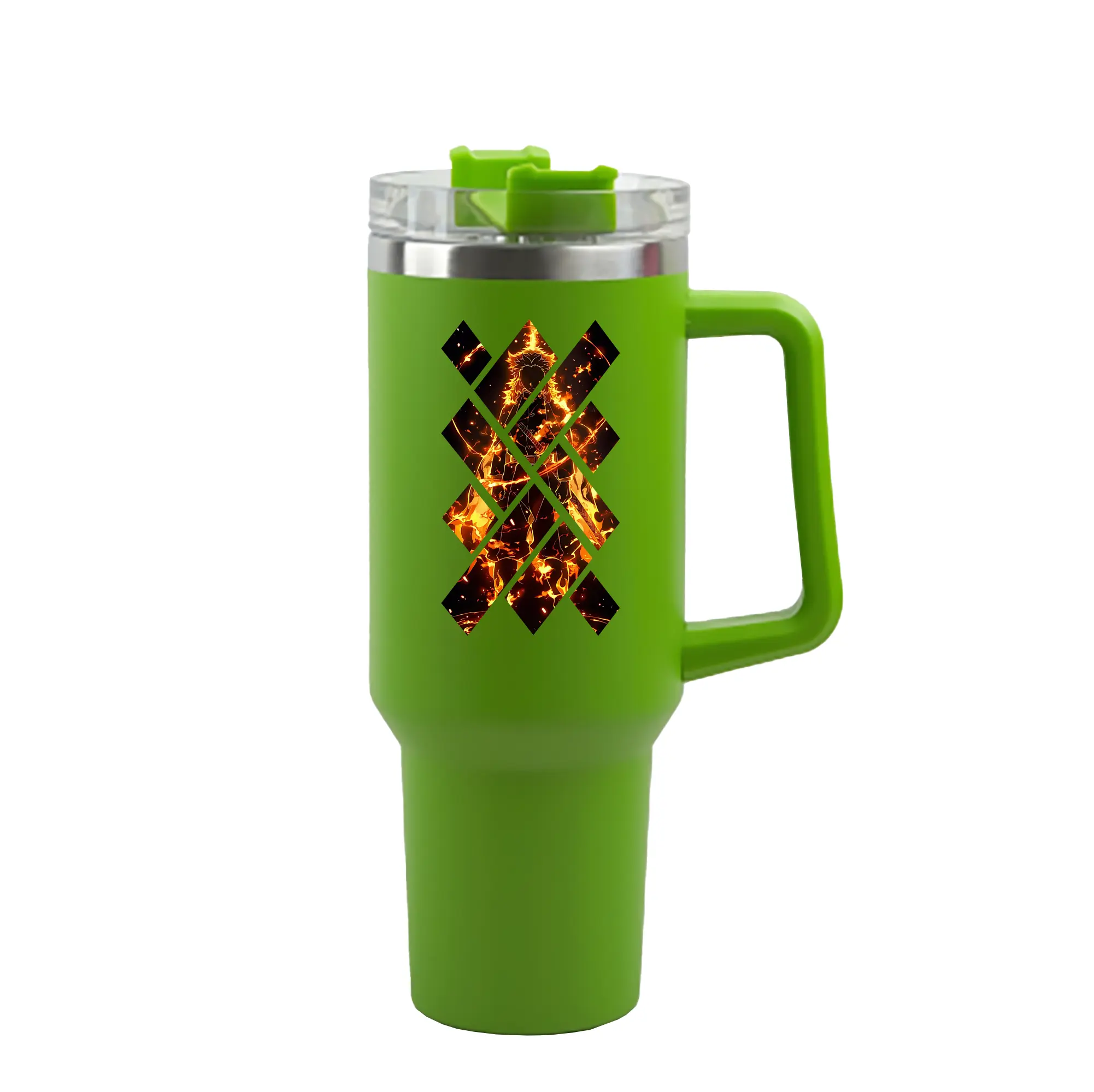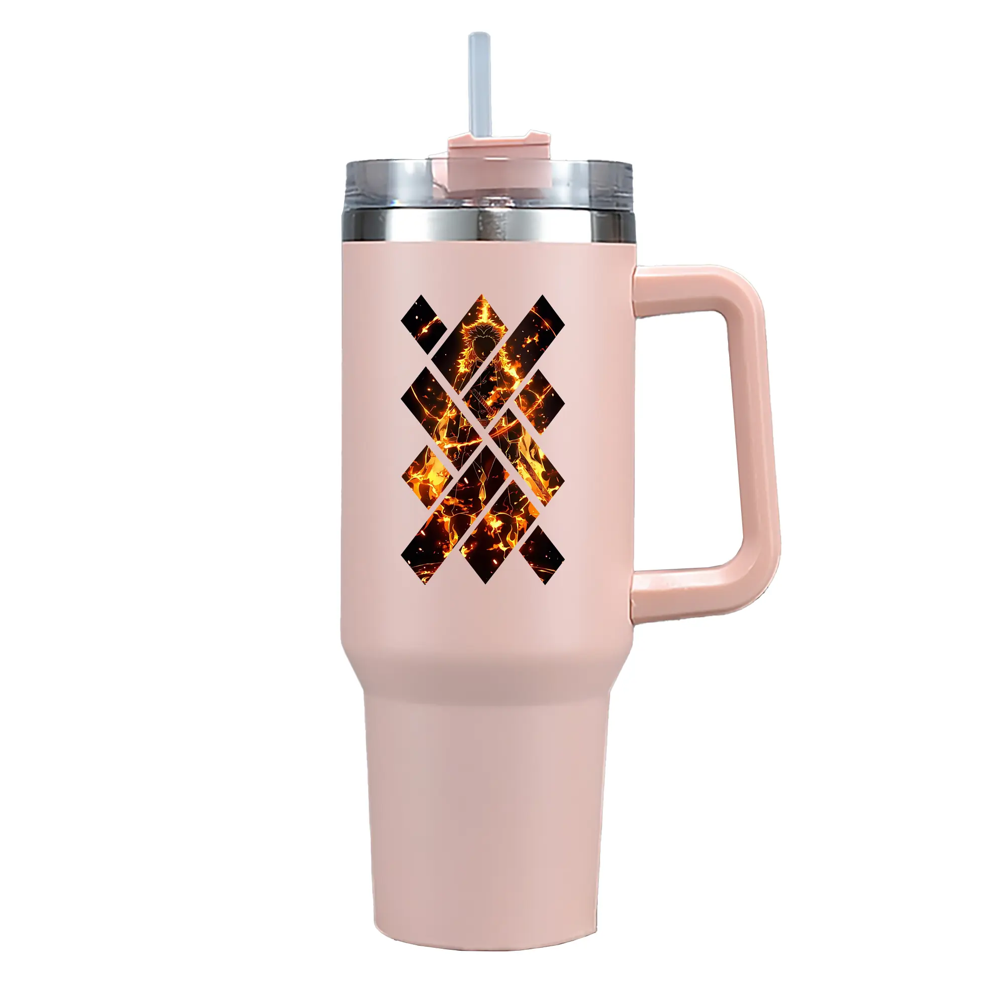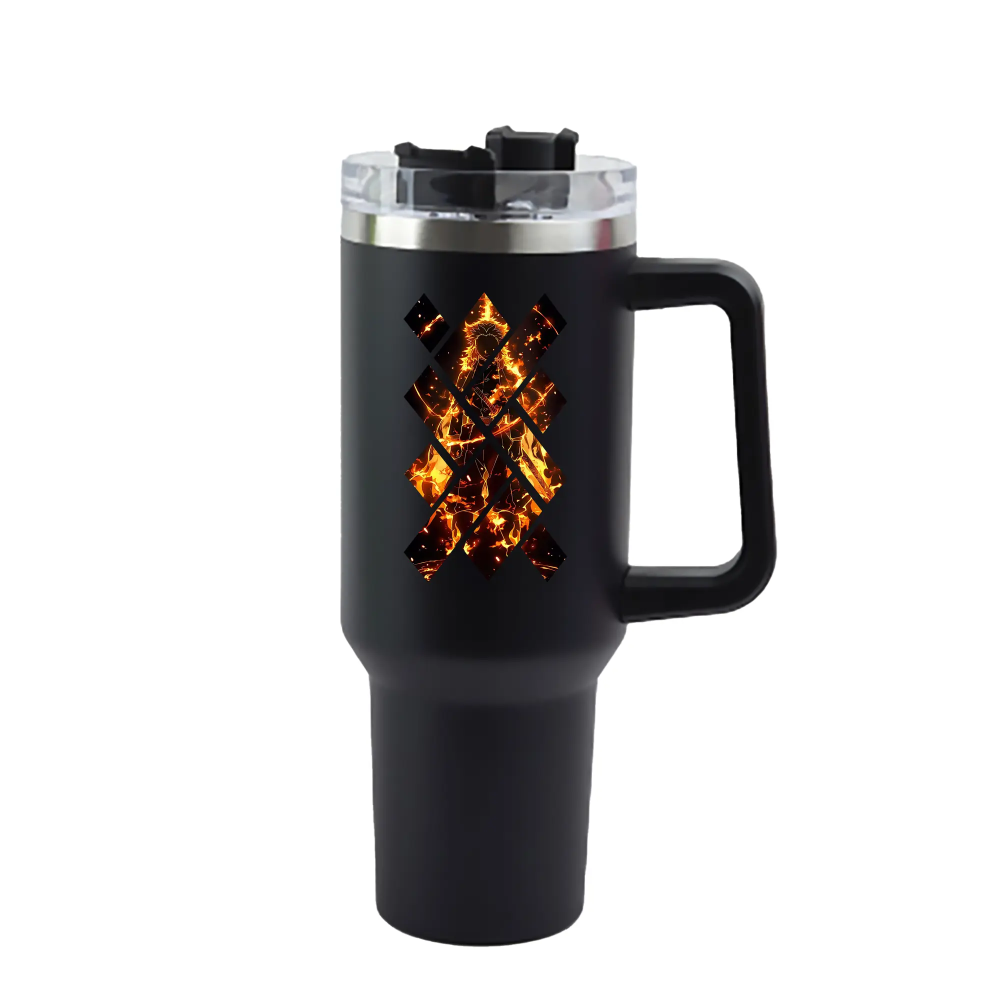 鬼滅の刃 グッズ,煉獄 杏寿郎 - 1200mL 車用タンブラー ・ クリスタルステッカー ・ 304ステンレス 内側 ・ 201ステンレス 外側 ・ 保温 保冷 ・ ハンドル&ストロー付き ・ 通勤 ドライブ アウトドア用