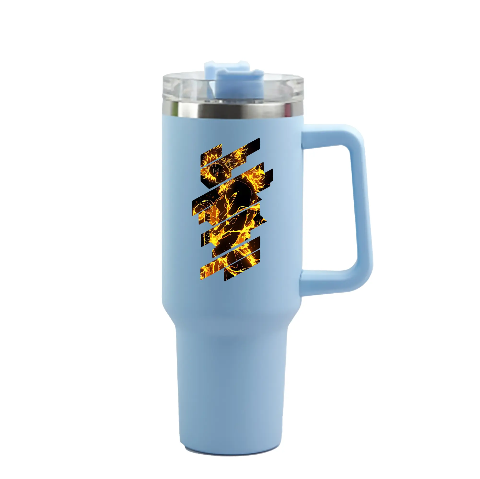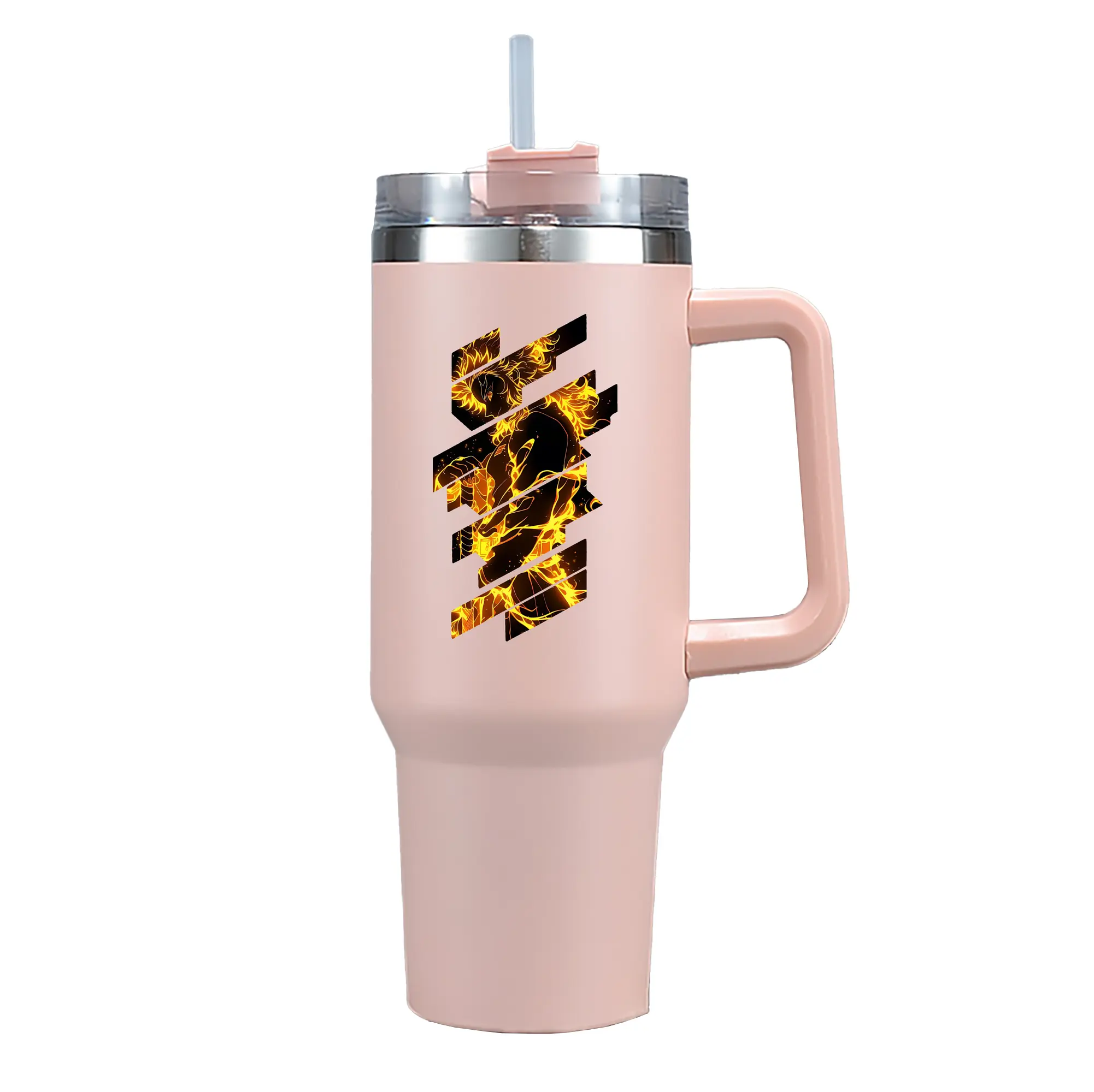 鬼滅の刃 グッズ,煉獄 杏寿郎 - 1200mL 車用タンブラー ・ クリスタルステッカー ・ 304ステンレス 内側 ・ 201ステンレス 外側 ・ 保温 保冷 ・ ハンドル&ストロー付き ・ 通勤 ドライブ アウトドア用