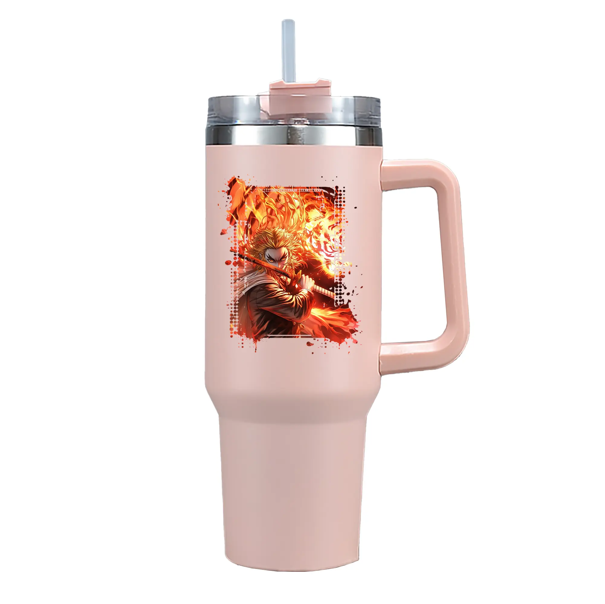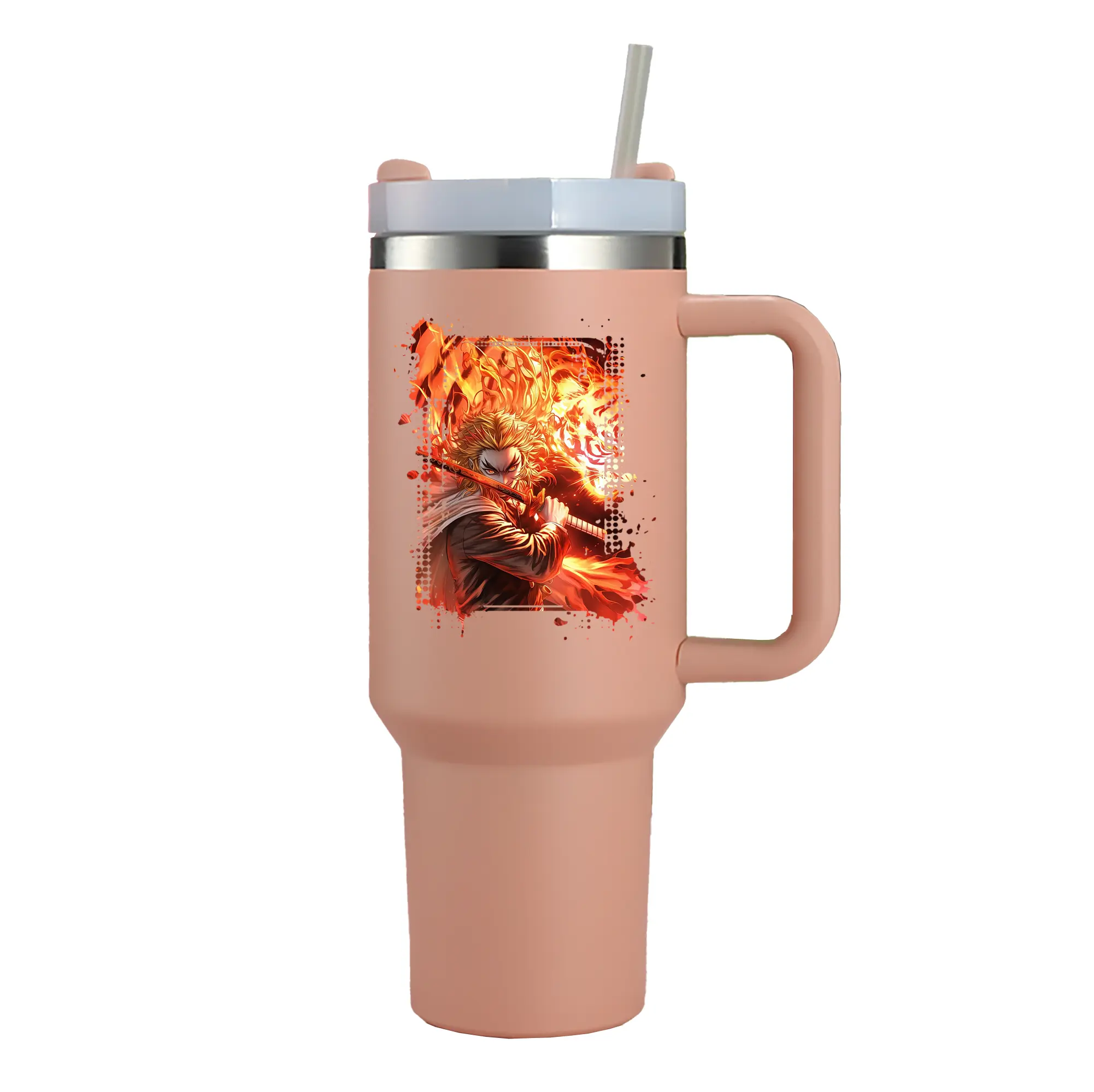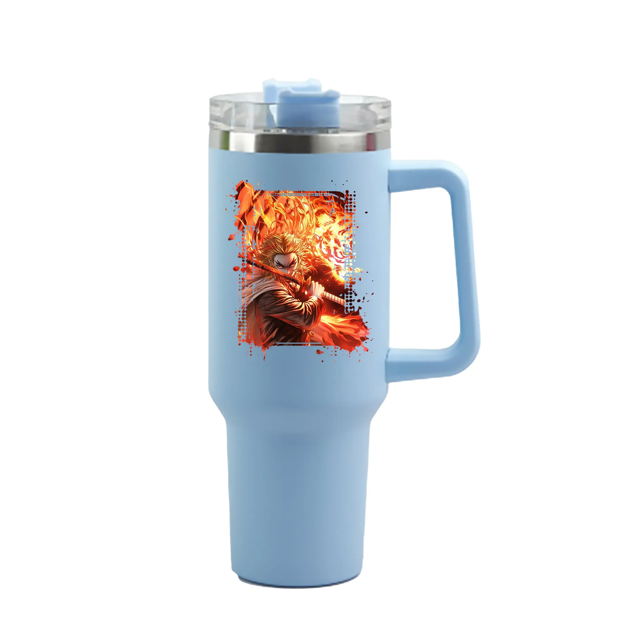 鬼滅の刃 グッズ,煉獄 杏寿郎 - 1200mL 車用タンブラー ・ クリスタルステッカー ・ 304ステンレス 内側 ・ 201ステンレス 外側 ・ 保温 保冷 ・ ハンドル&ストロー付き ・ 通勤 ドライブ アウトドア用