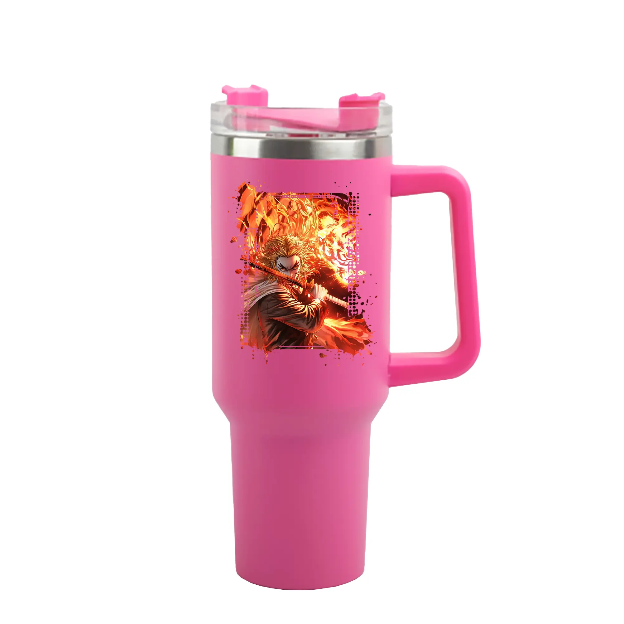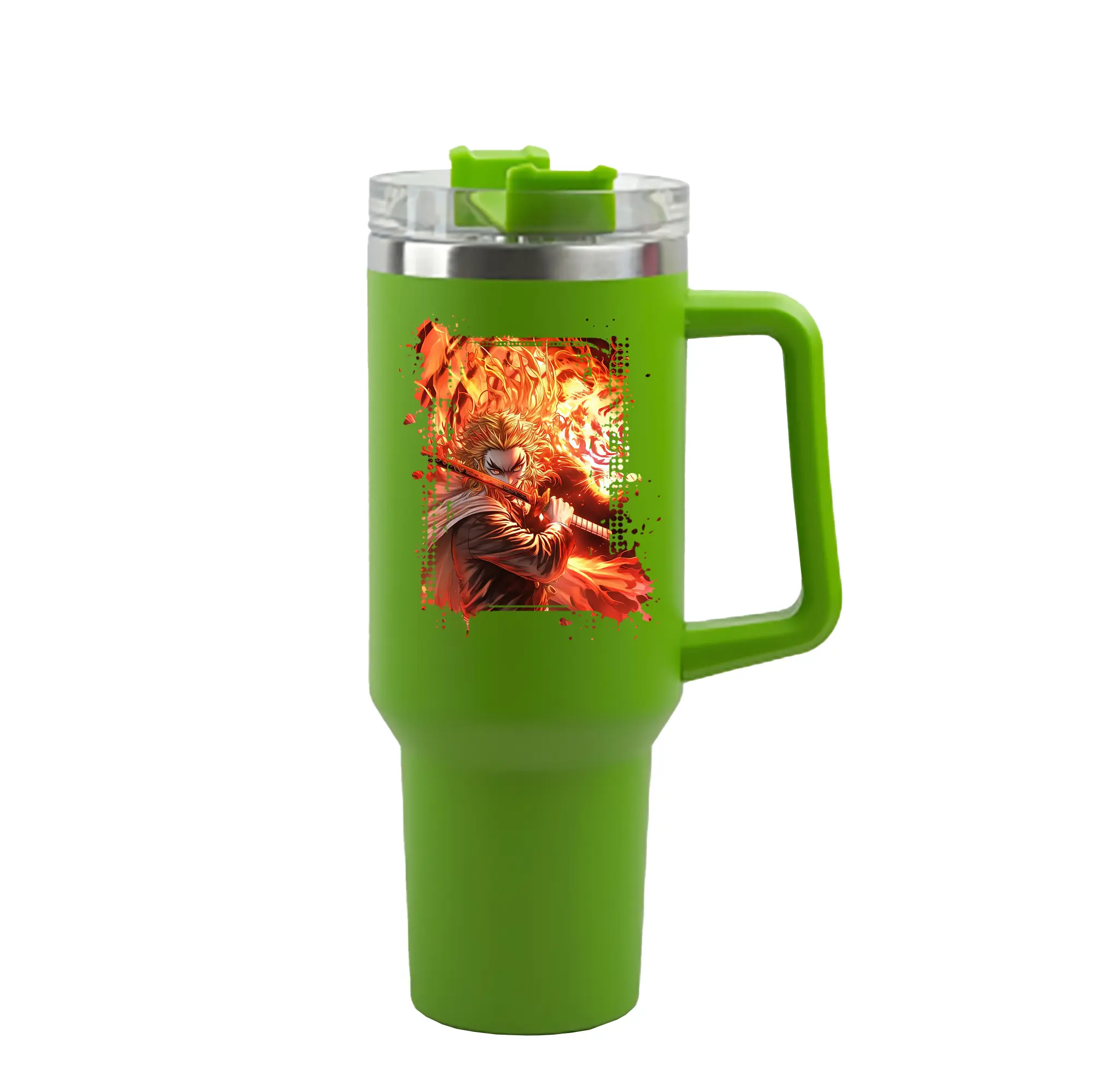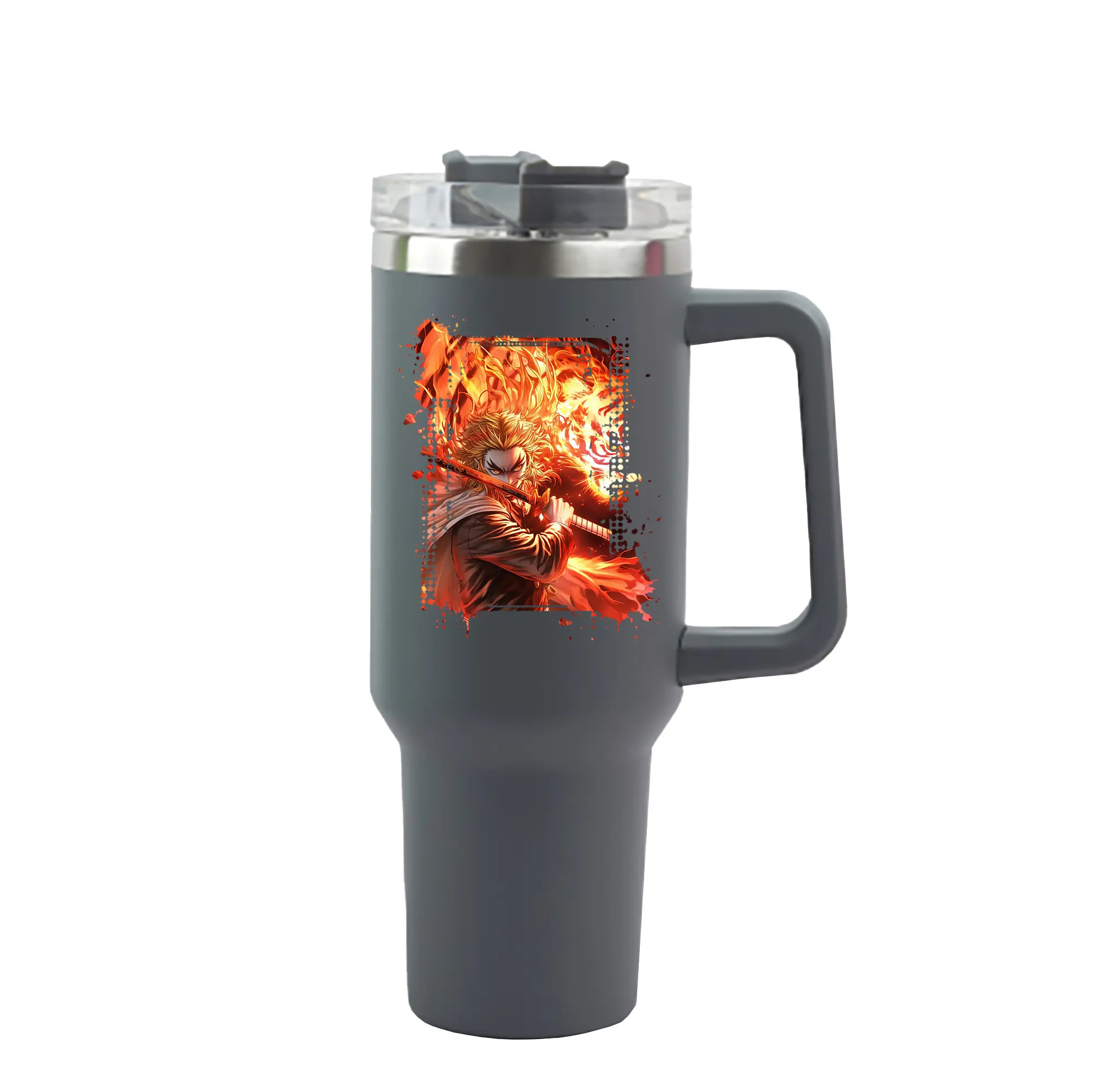 鬼滅の刃 グッズ,煉獄 杏寿郎 - 1200mL 車用タンブラー ・ クリスタルステッカー ・ 304ステンレス 内側 ・ 201ステンレス 外側 ・ 保温 保冷 ・ ハンドル&ストロー付き ・ 通勤 ドライブ アウトドア用