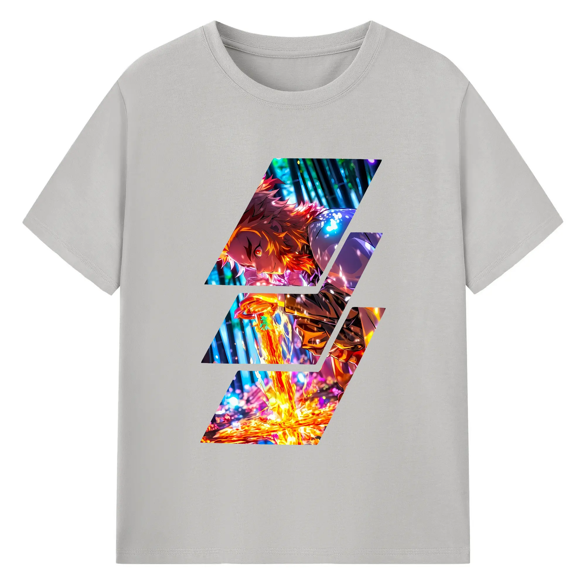 鬼滅の刃 グッズ,煉獄 杏寿郎 - 綿100% 半袖Tシャツ ・ バックプリント ・ 快適 通気性 ・ 日常使い 散歩 スポーツ用