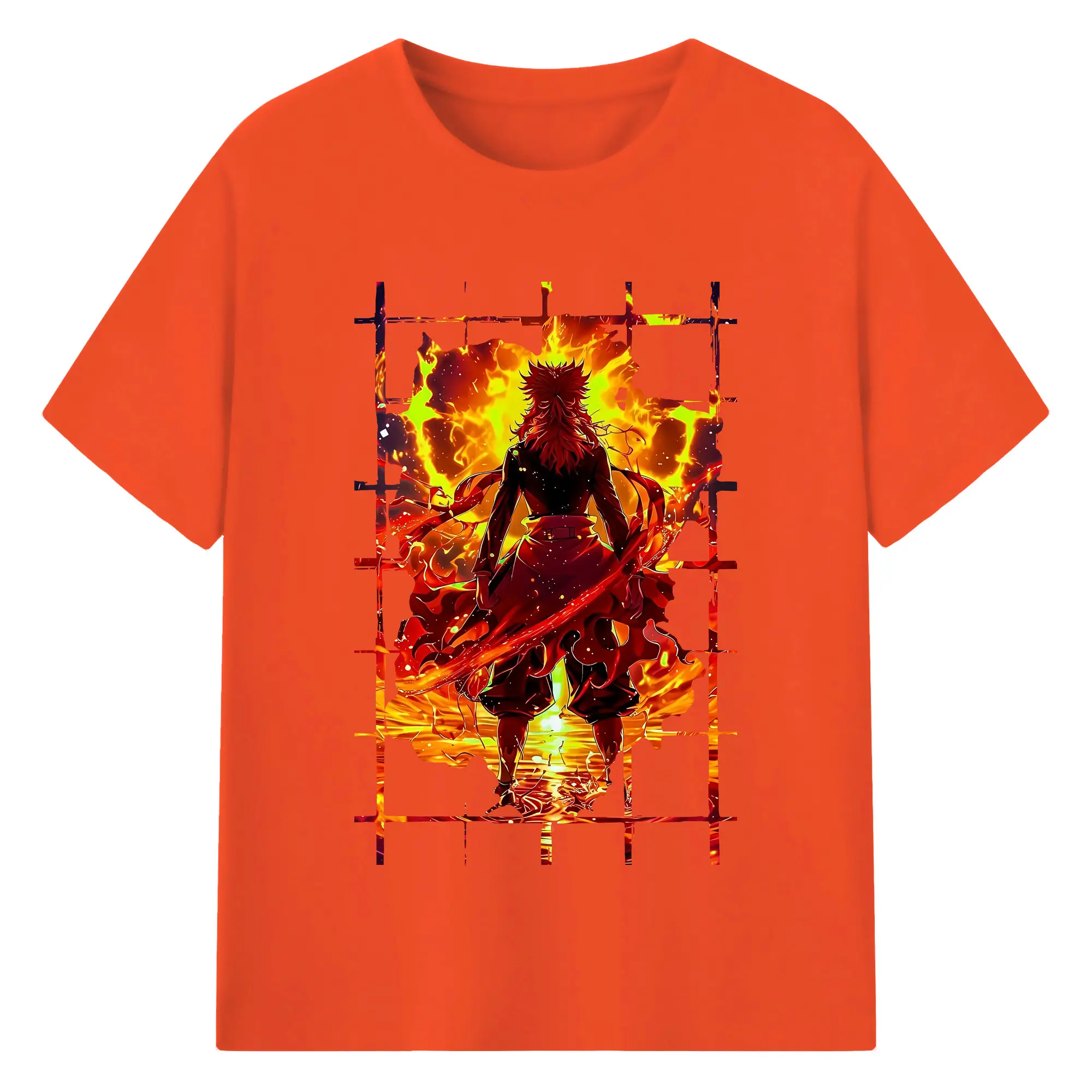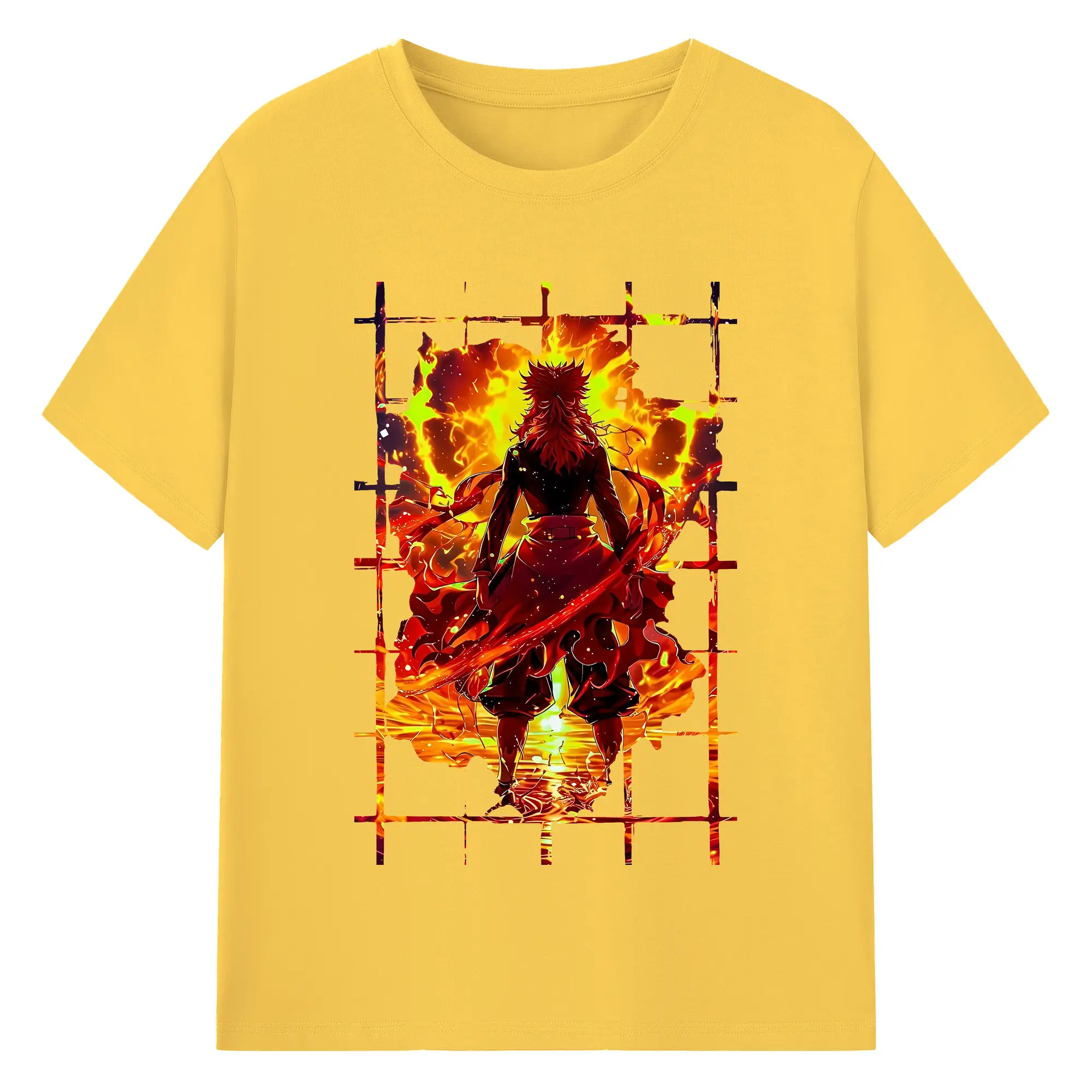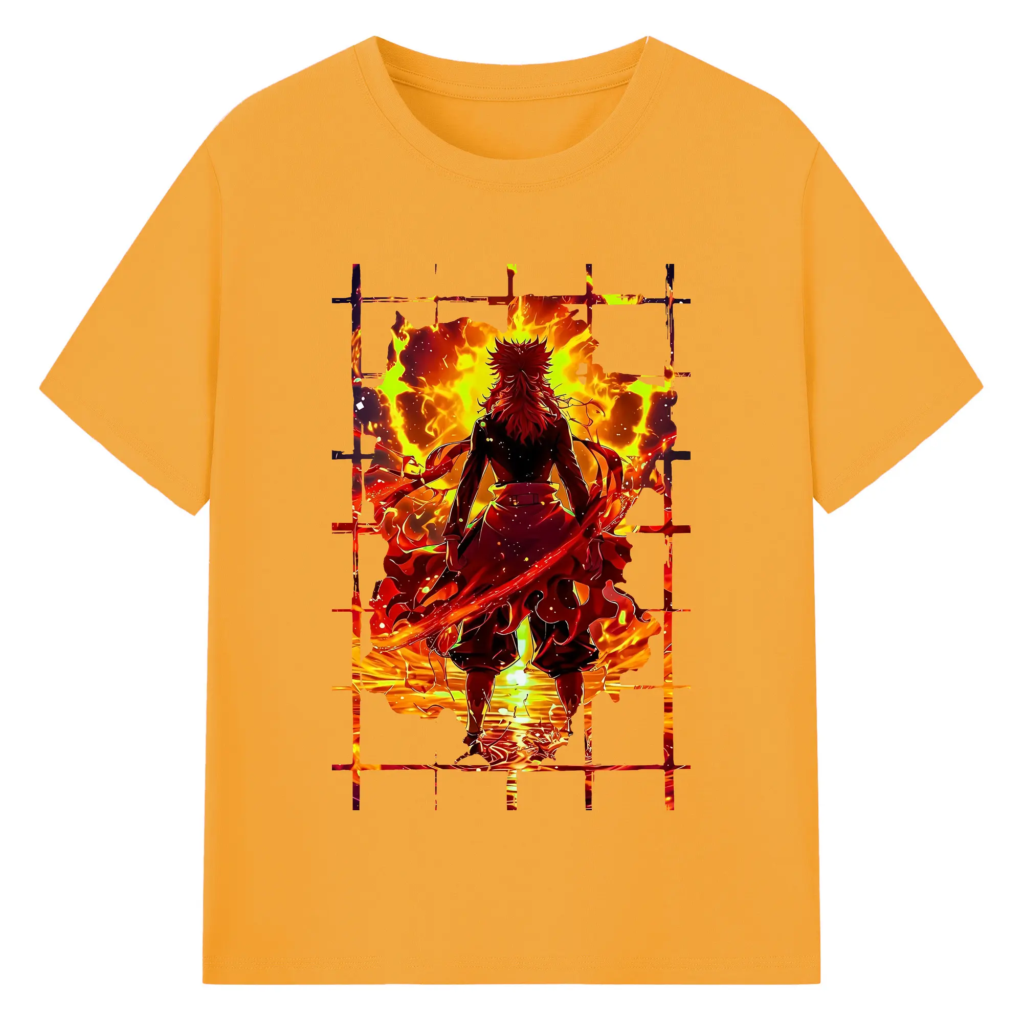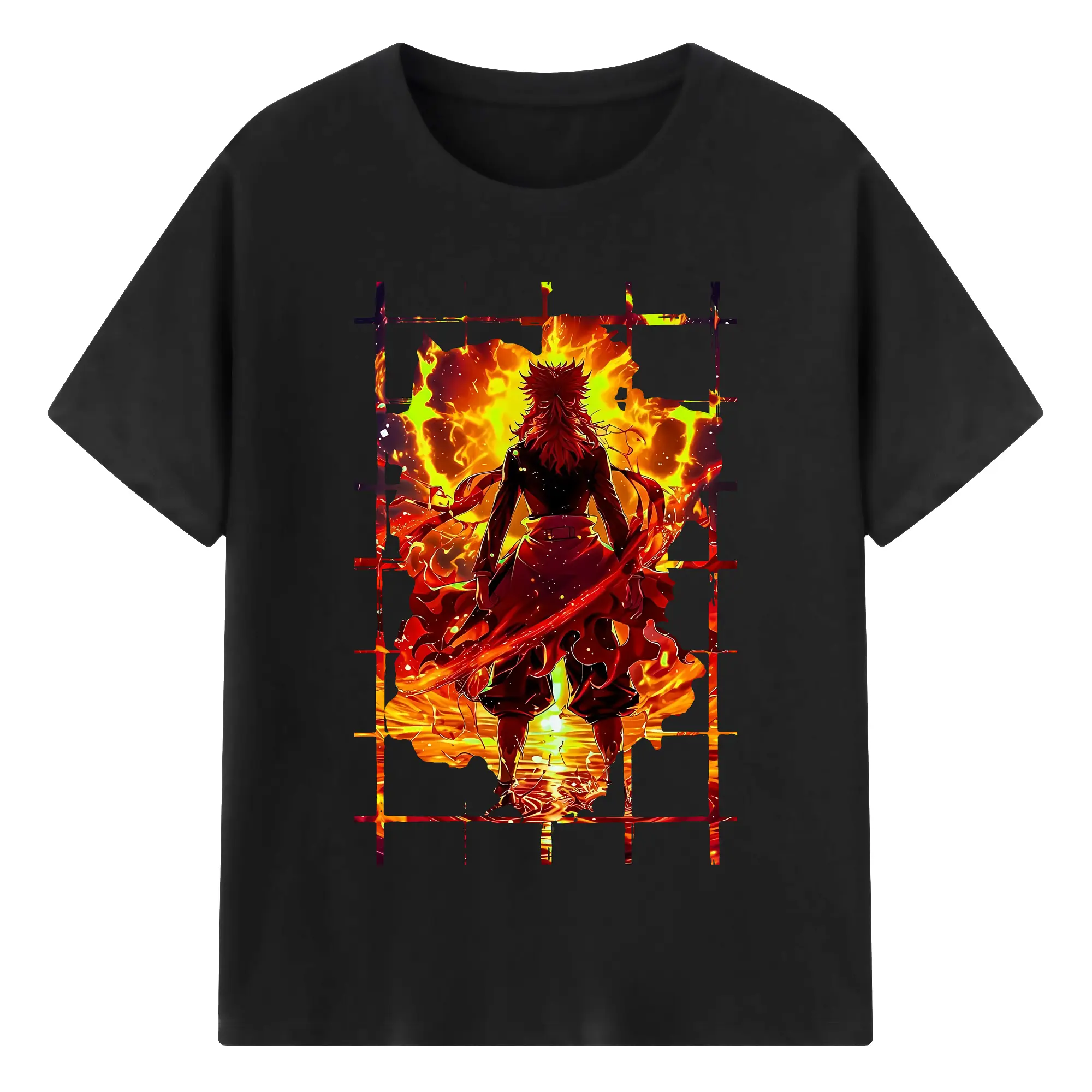 鬼滅の刃 グッズ,煉獄 杏寿郎 - 綿100% 半袖Tシャツ ・ バックプリント ・ 快適 通気性 ・ 日常使い 散歩 スポーツ用