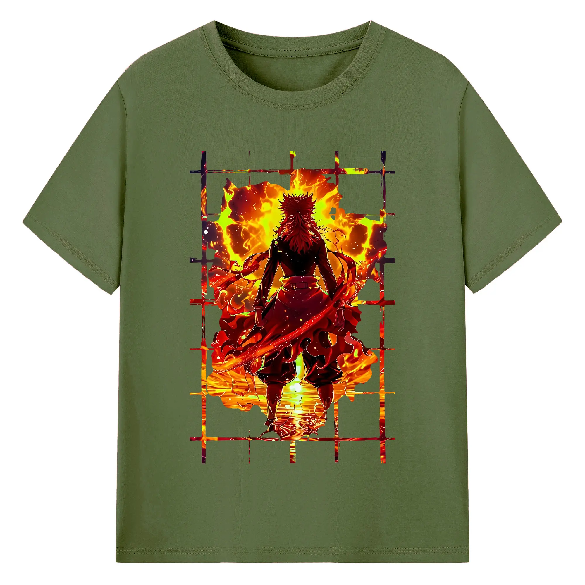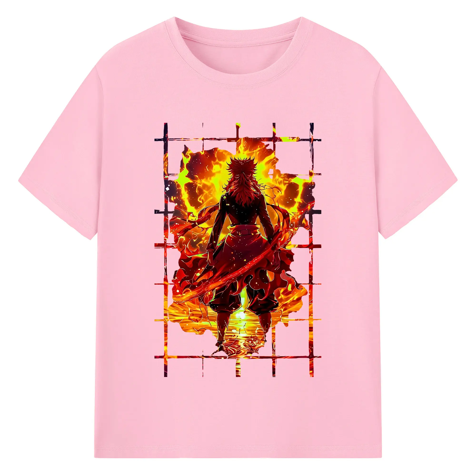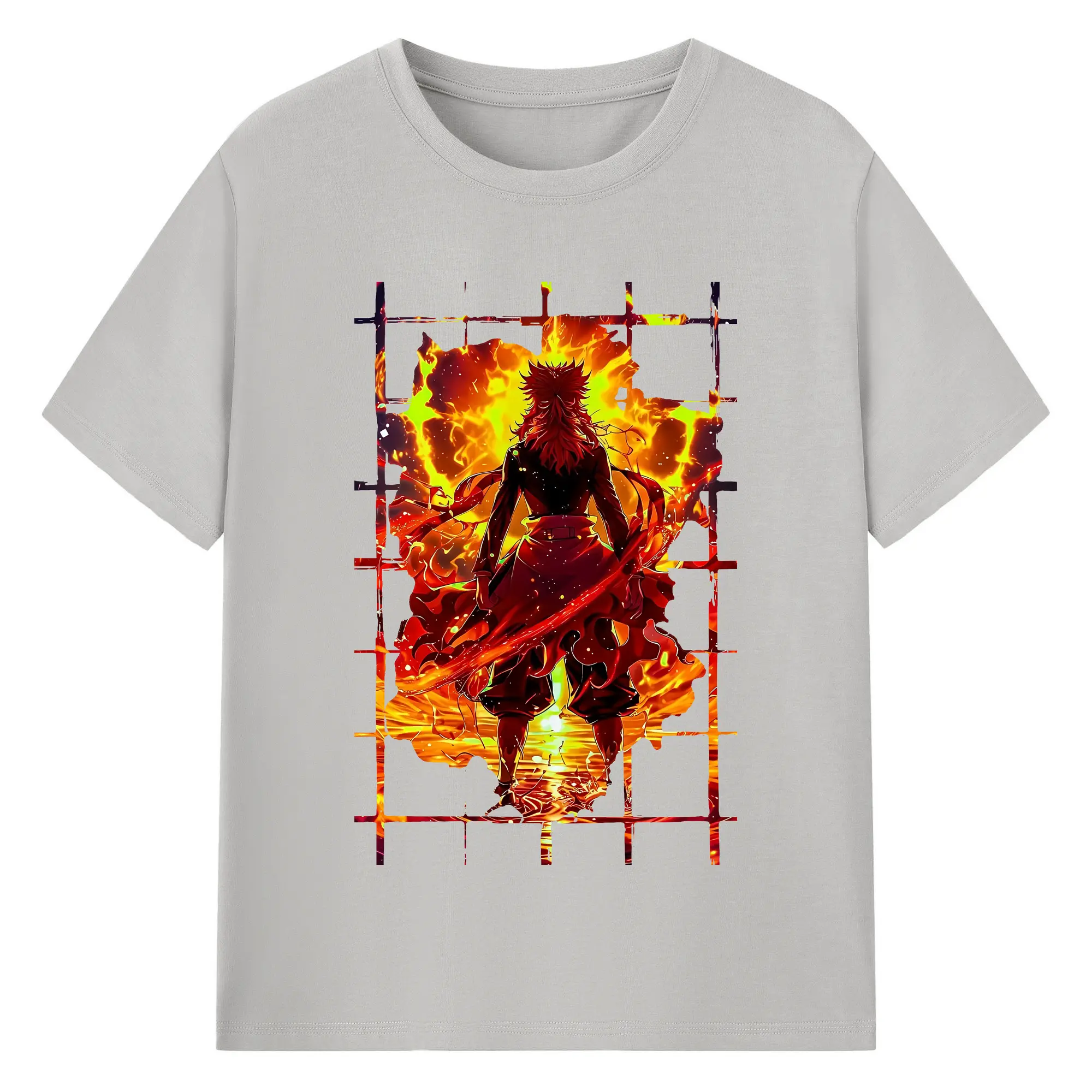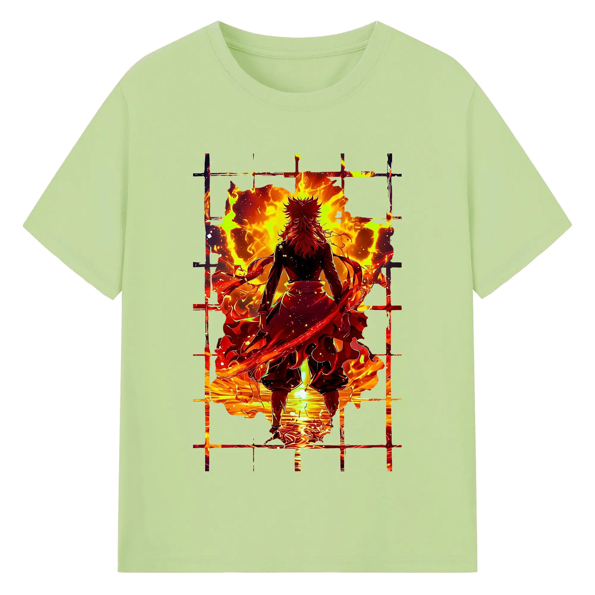 鬼滅の刃 グッズ,煉獄 杏寿郎 - 綿100% 半袖Tシャツ ・ バックプリント ・ 快適 通気性 ・ 日常使い 散歩 スポーツ用