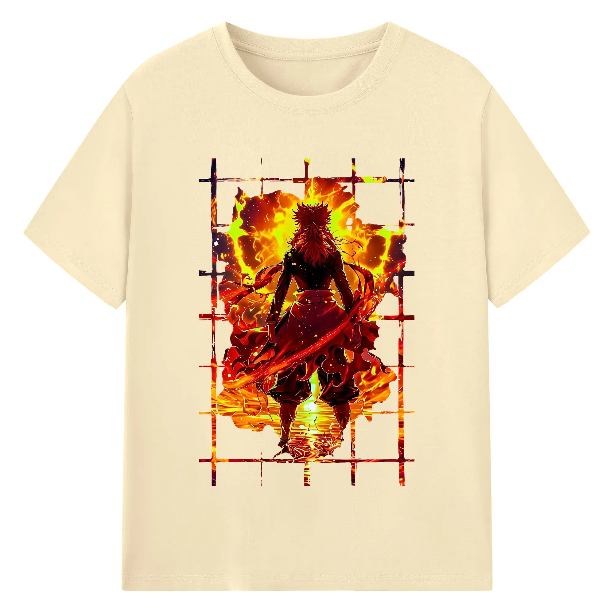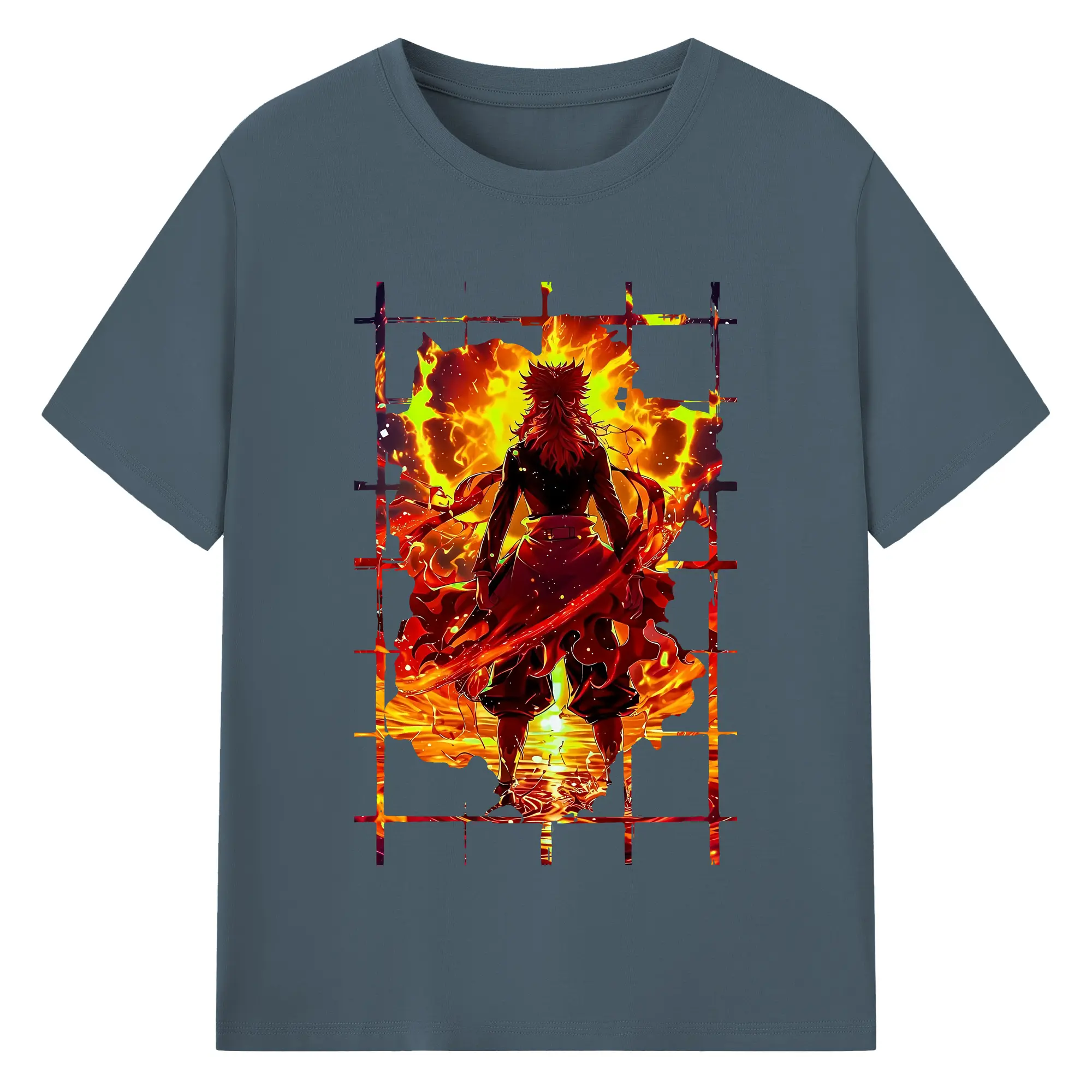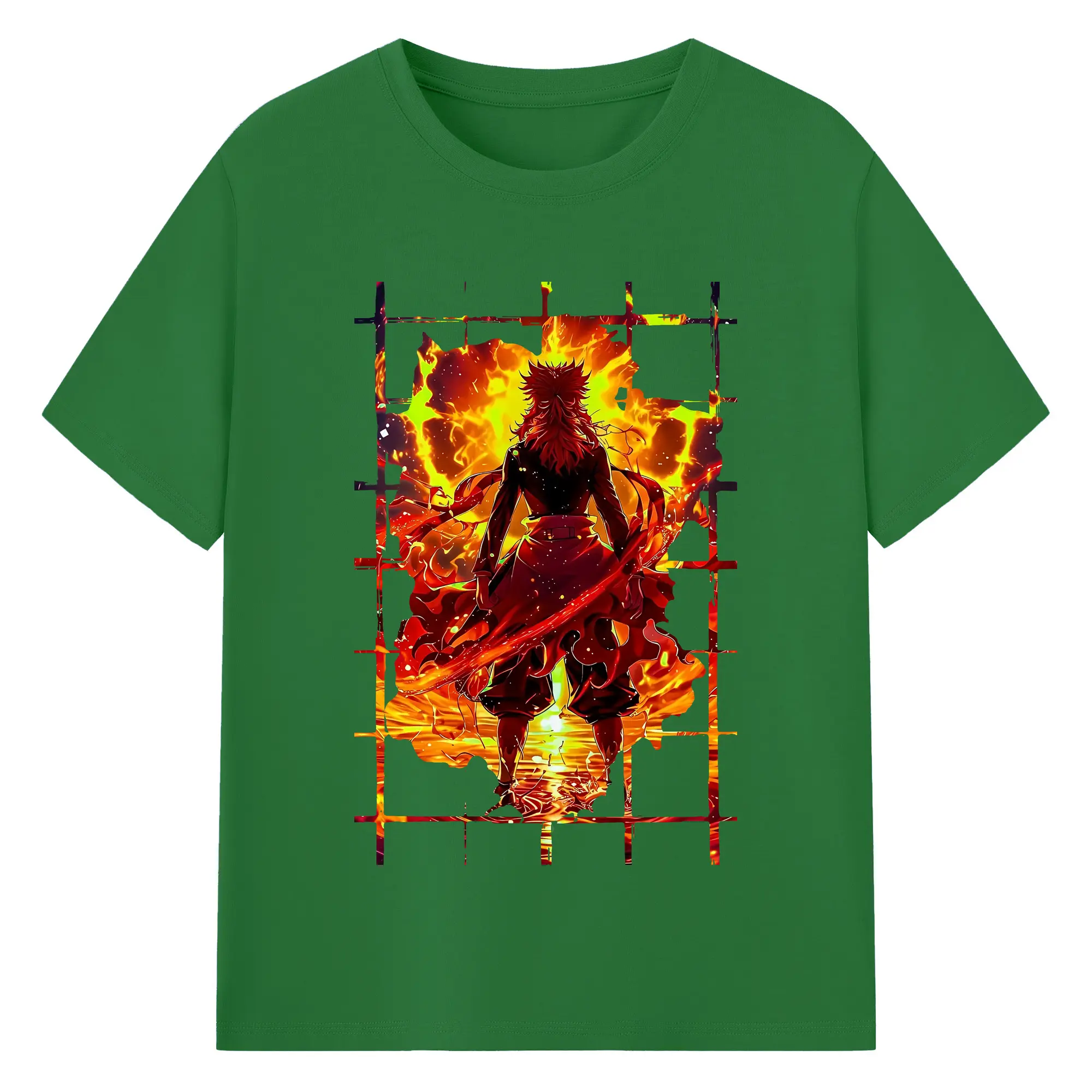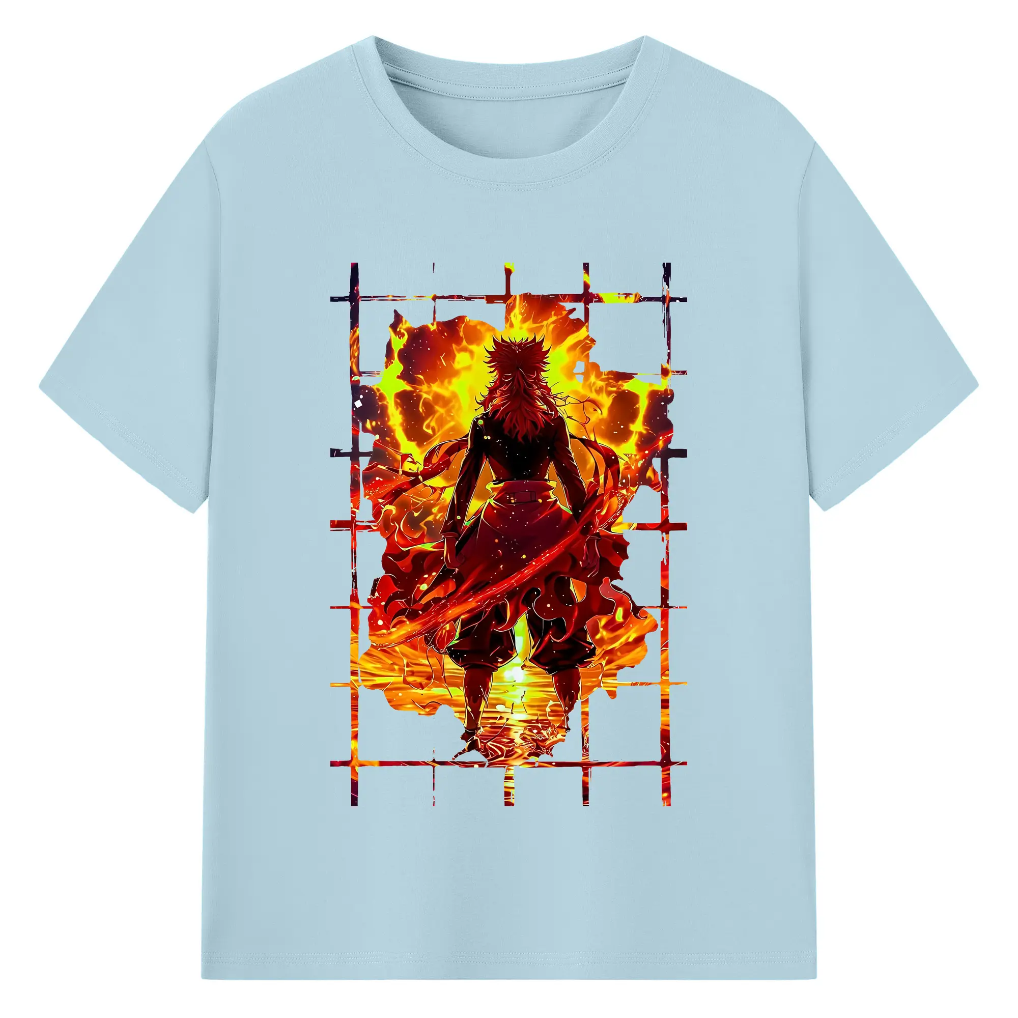鬼滅の刃 グッズ,煉獄 杏寿郎 - 綿100% 半袖Tシャツ ・ バックプリント ・ 快適 通気性 ・ 日常使い 散歩 スポーツ用