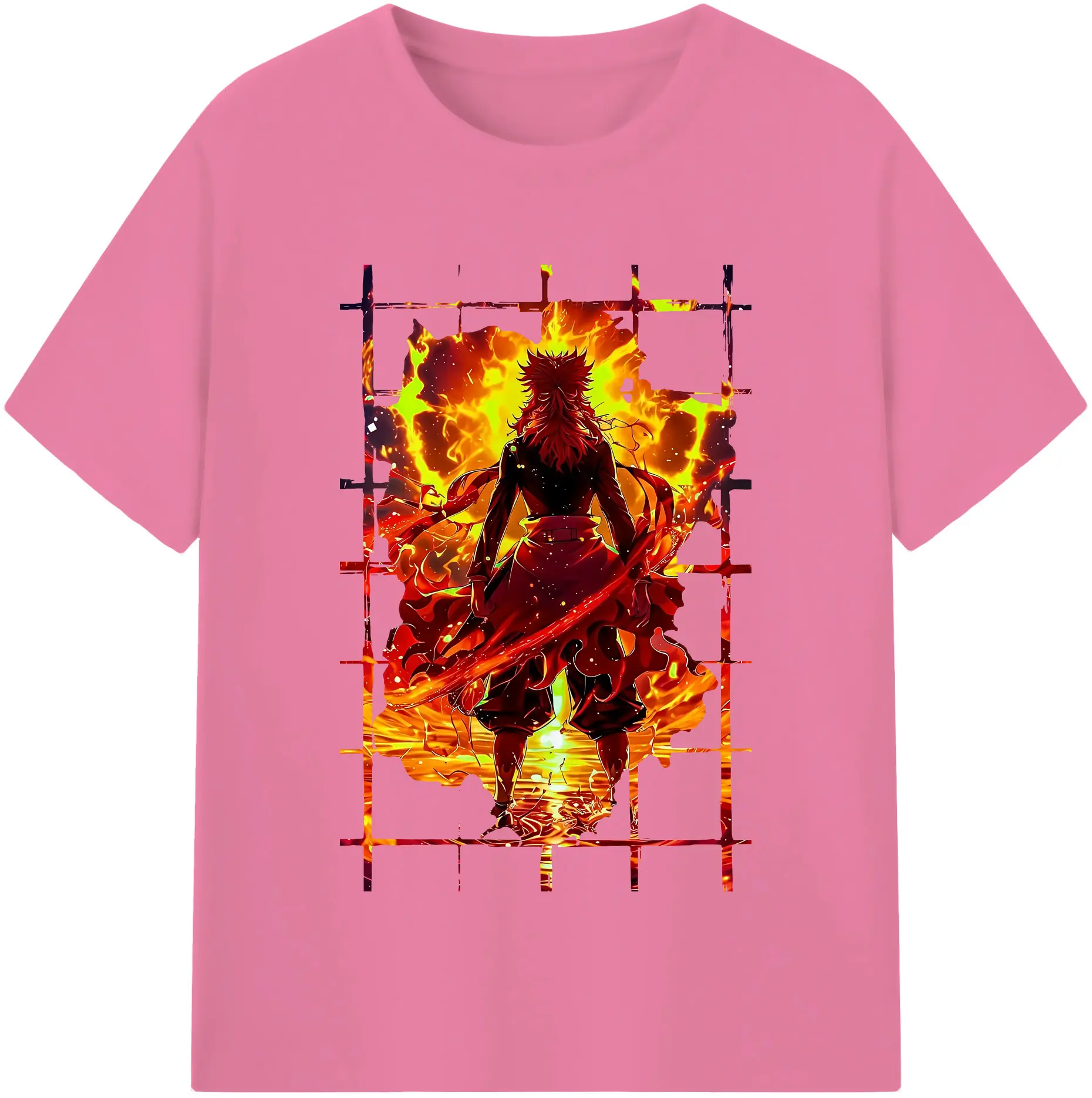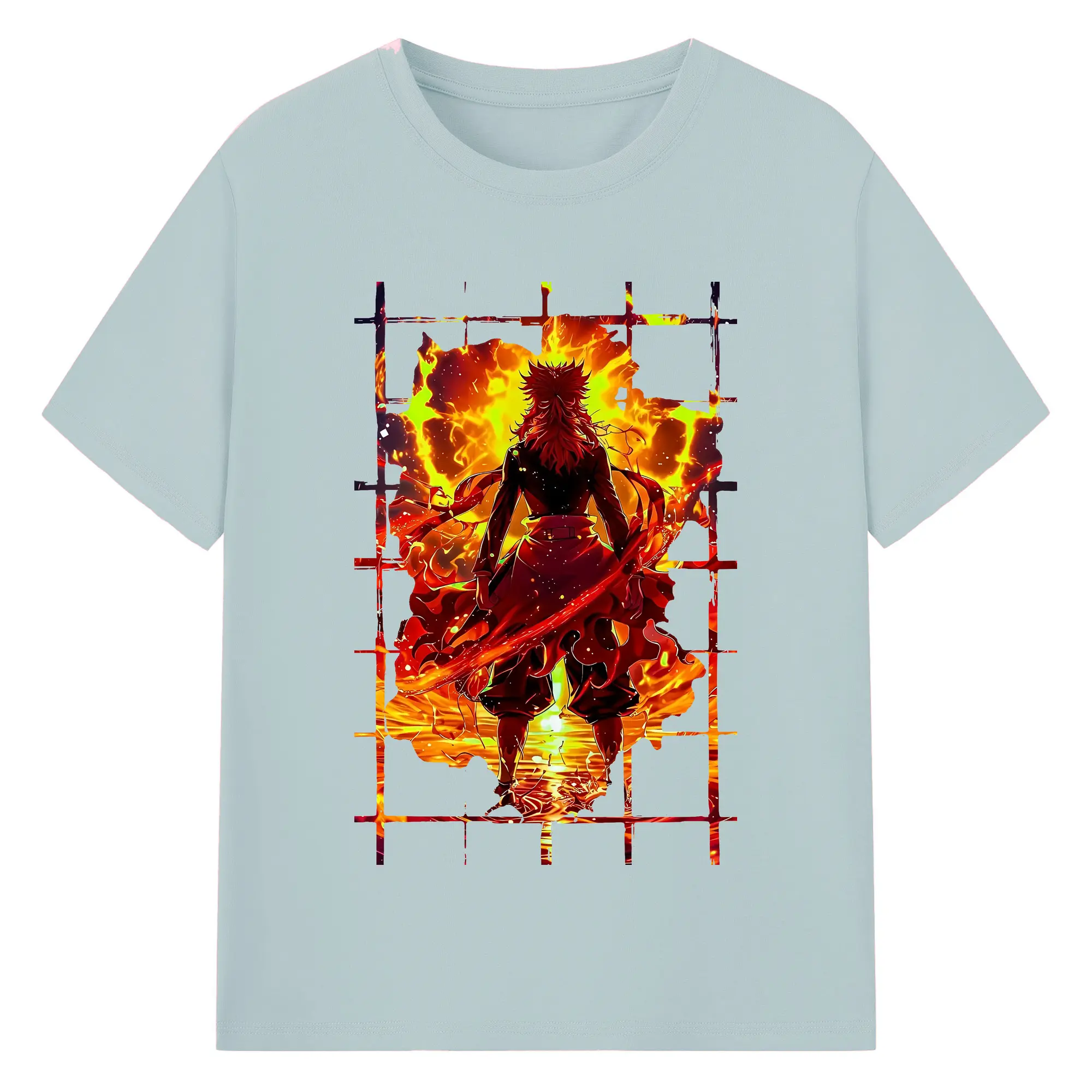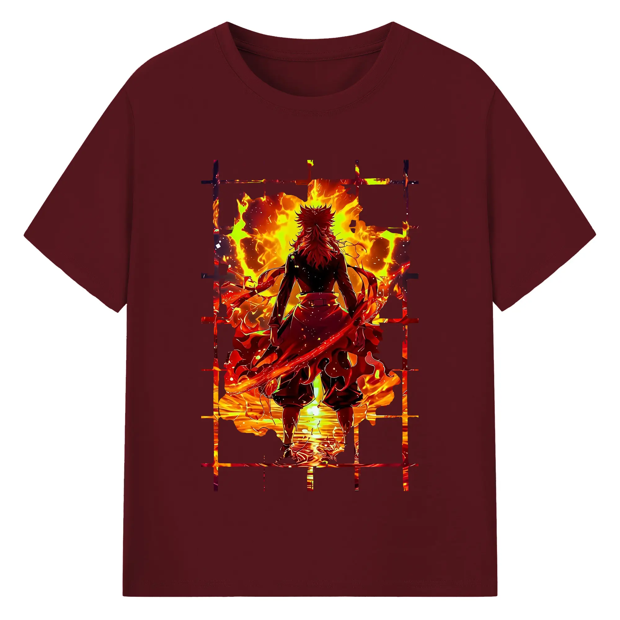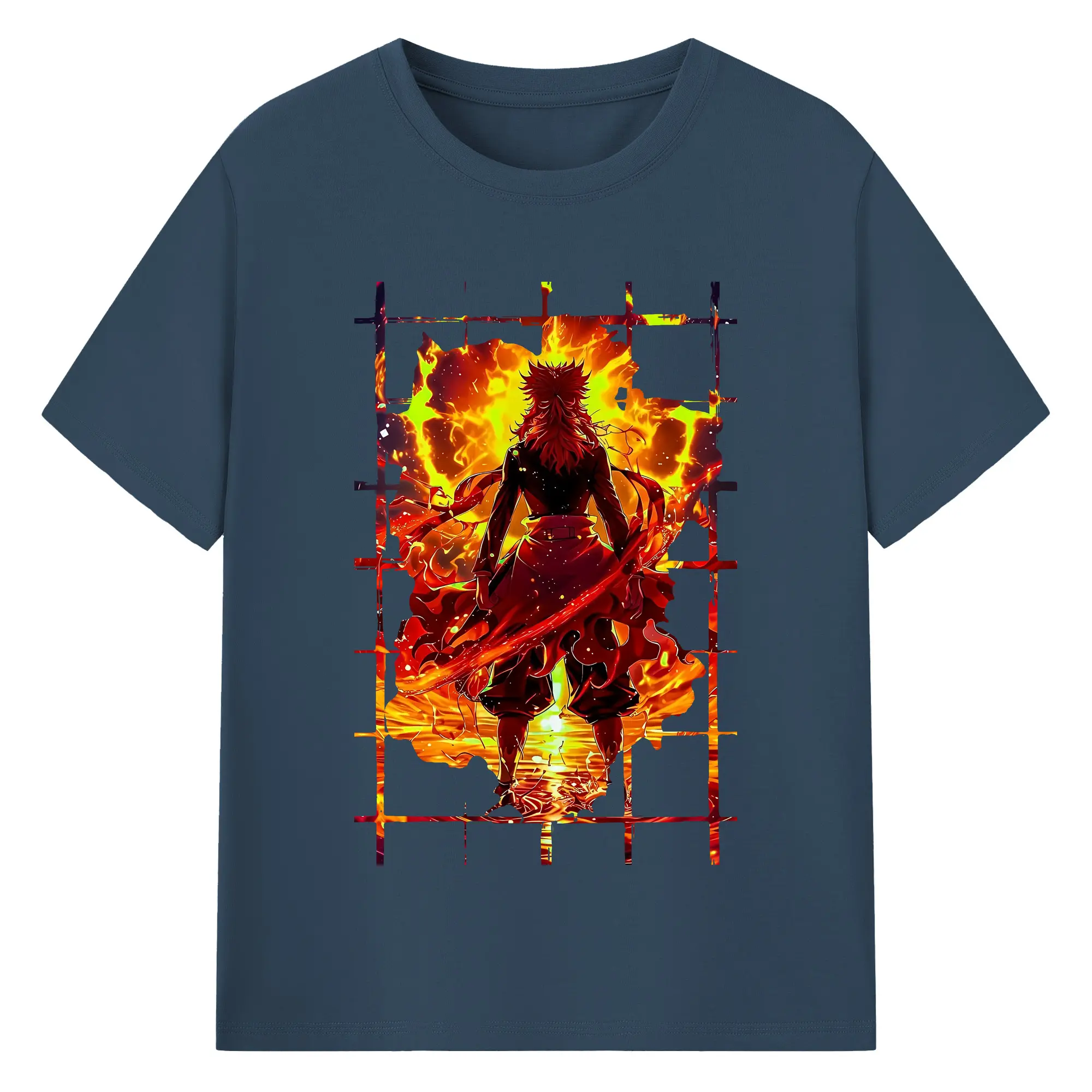 鬼滅の刃 グッズ,煉獄 杏寿郎 - 綿100% 半袖Tシャツ ・ バックプリント ・ 快適 通気性 ・ 日常使い 散歩 スポーツ用