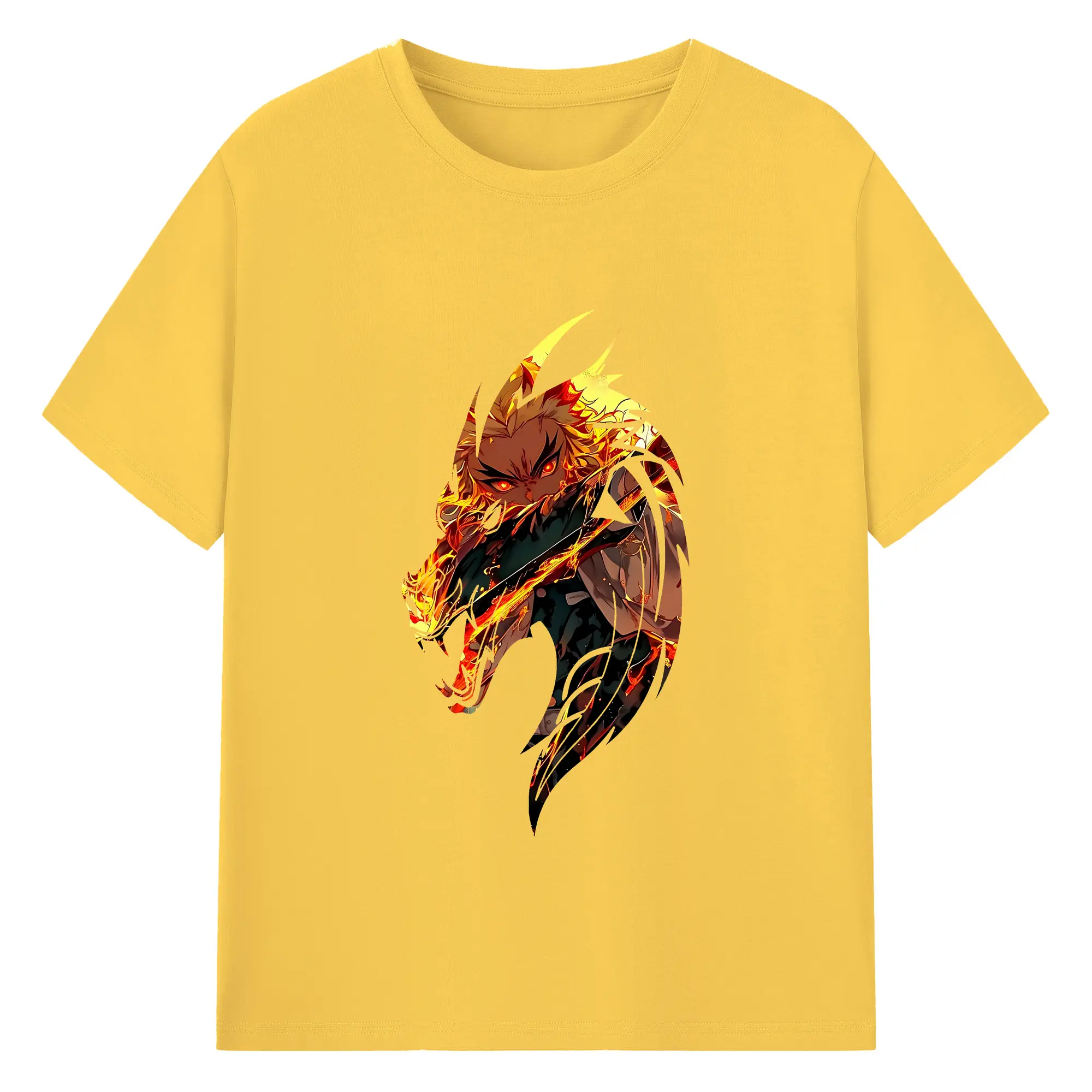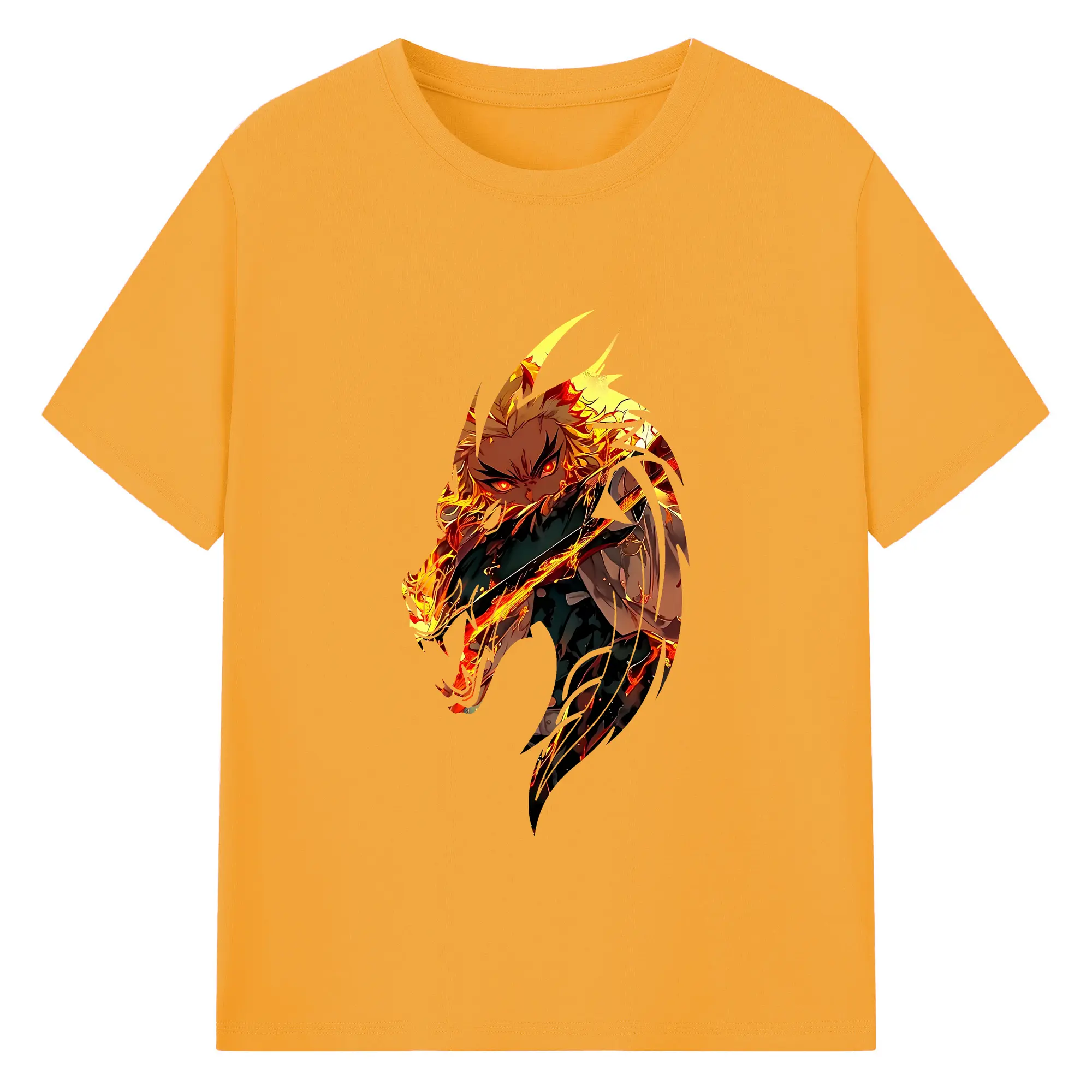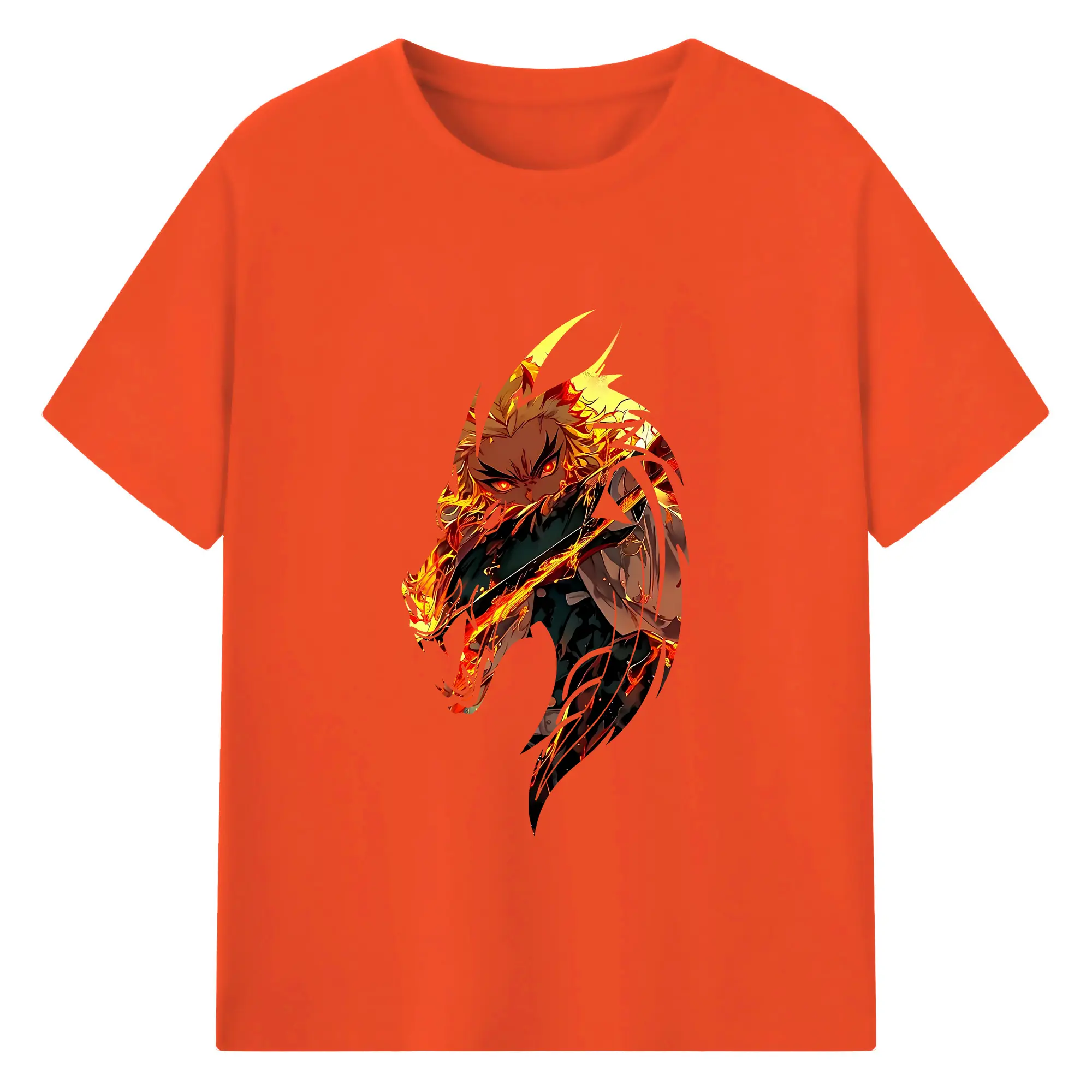 鬼滅の刃 グッズ,煉獄 杏寿郎 - 綿100% キッズTシャツ ・ フロントプリント ・ 快適 通気性 ・ スポーツ カジュアル 散歩用