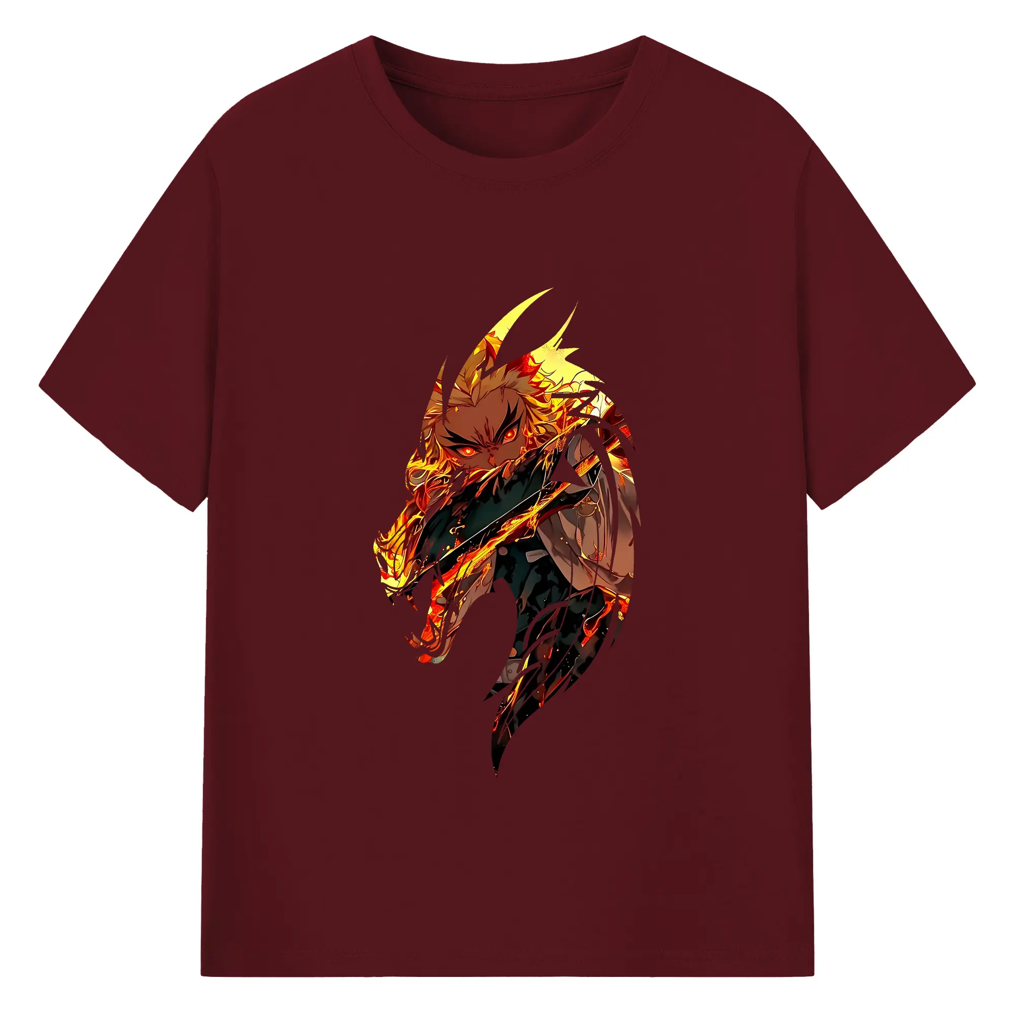 鬼滅の刃 グッズ,煉獄 杏寿郎 - 綿100% 半袖Tシャツ ・ バックプリント ・ 快適 通気性 ・ 日常使い 散歩 スポーツ用