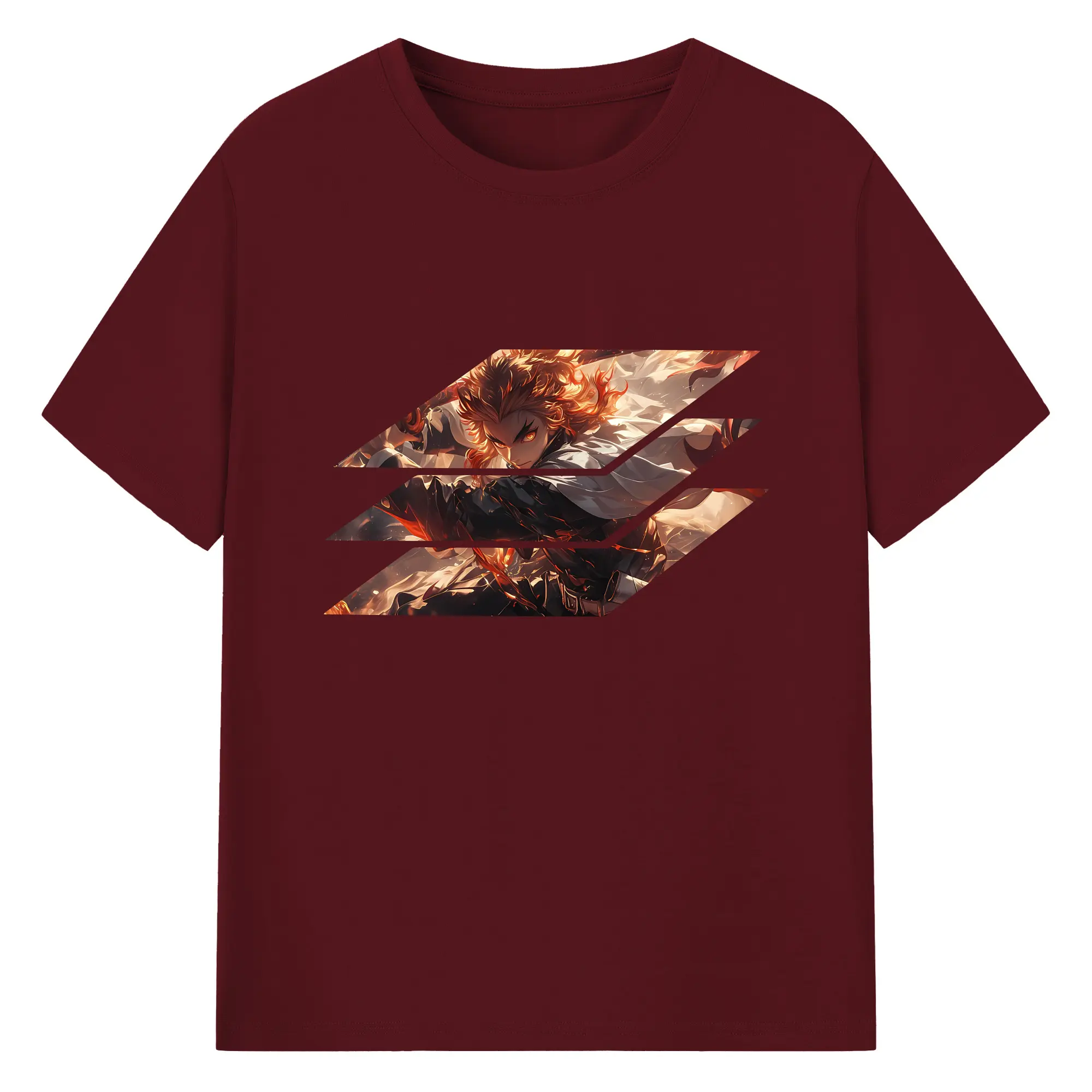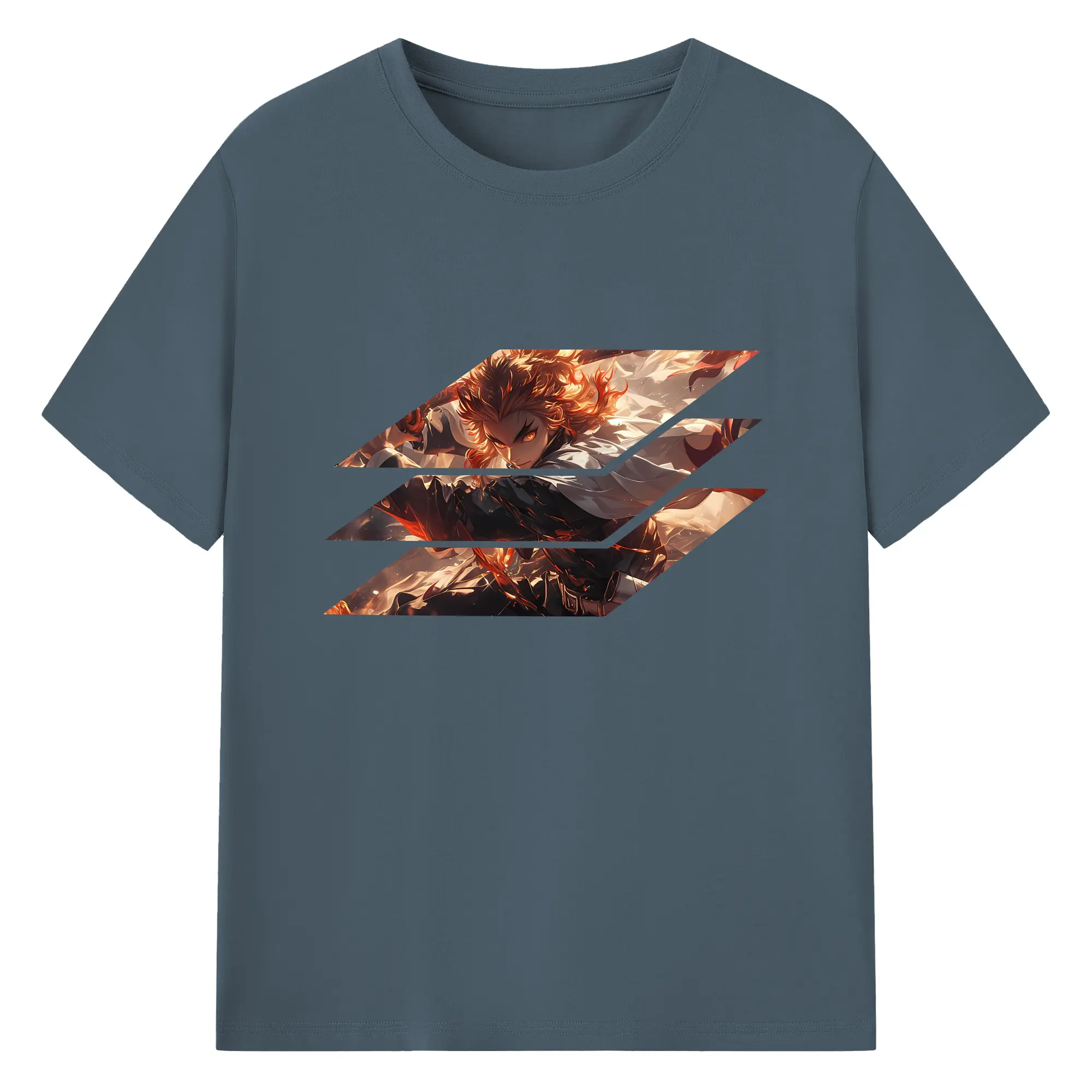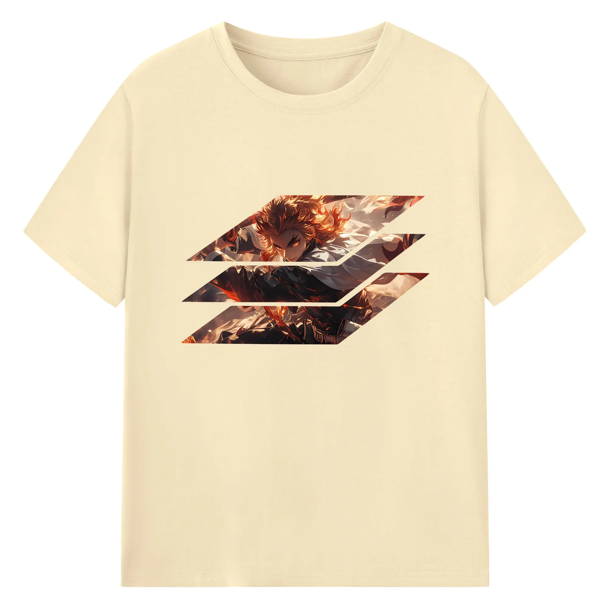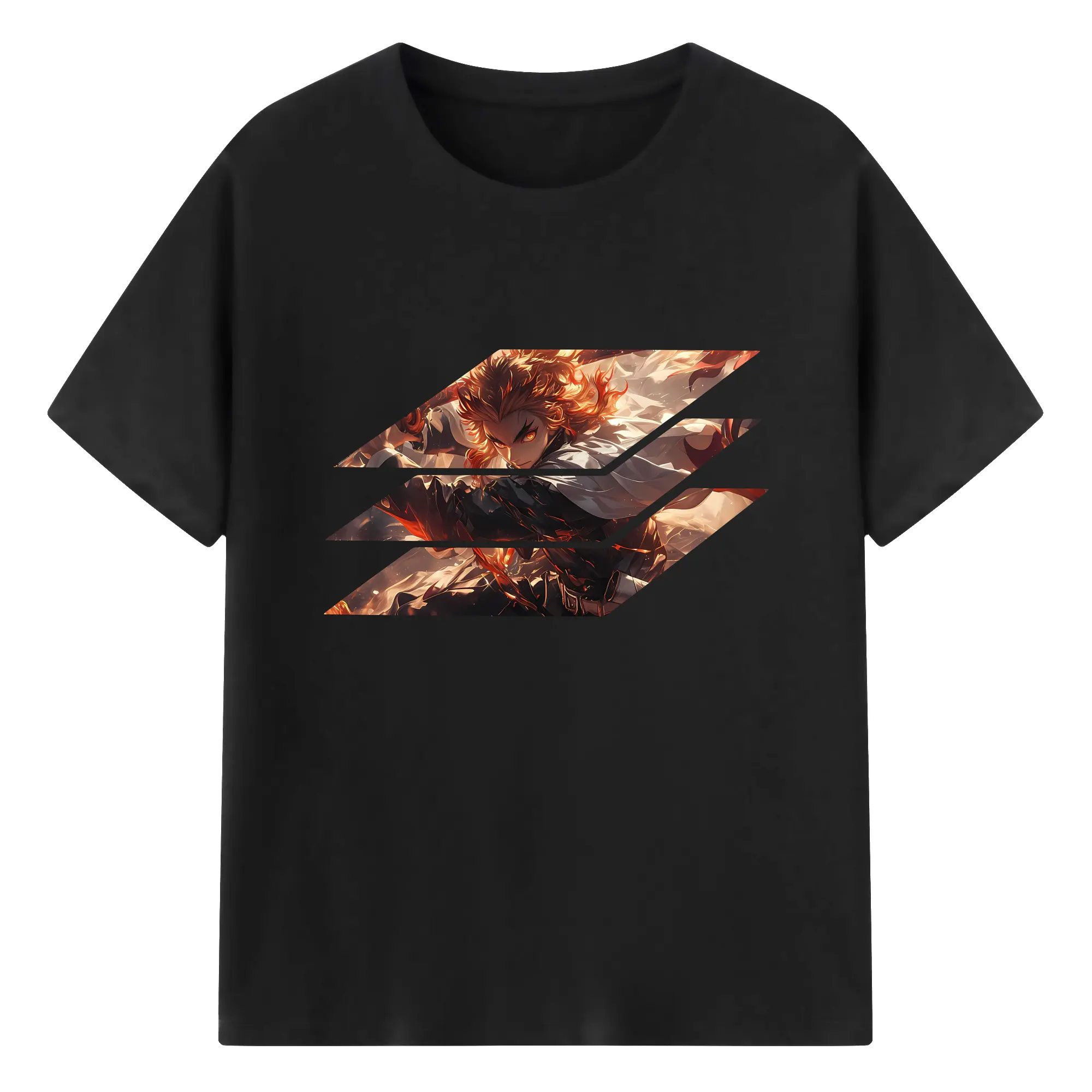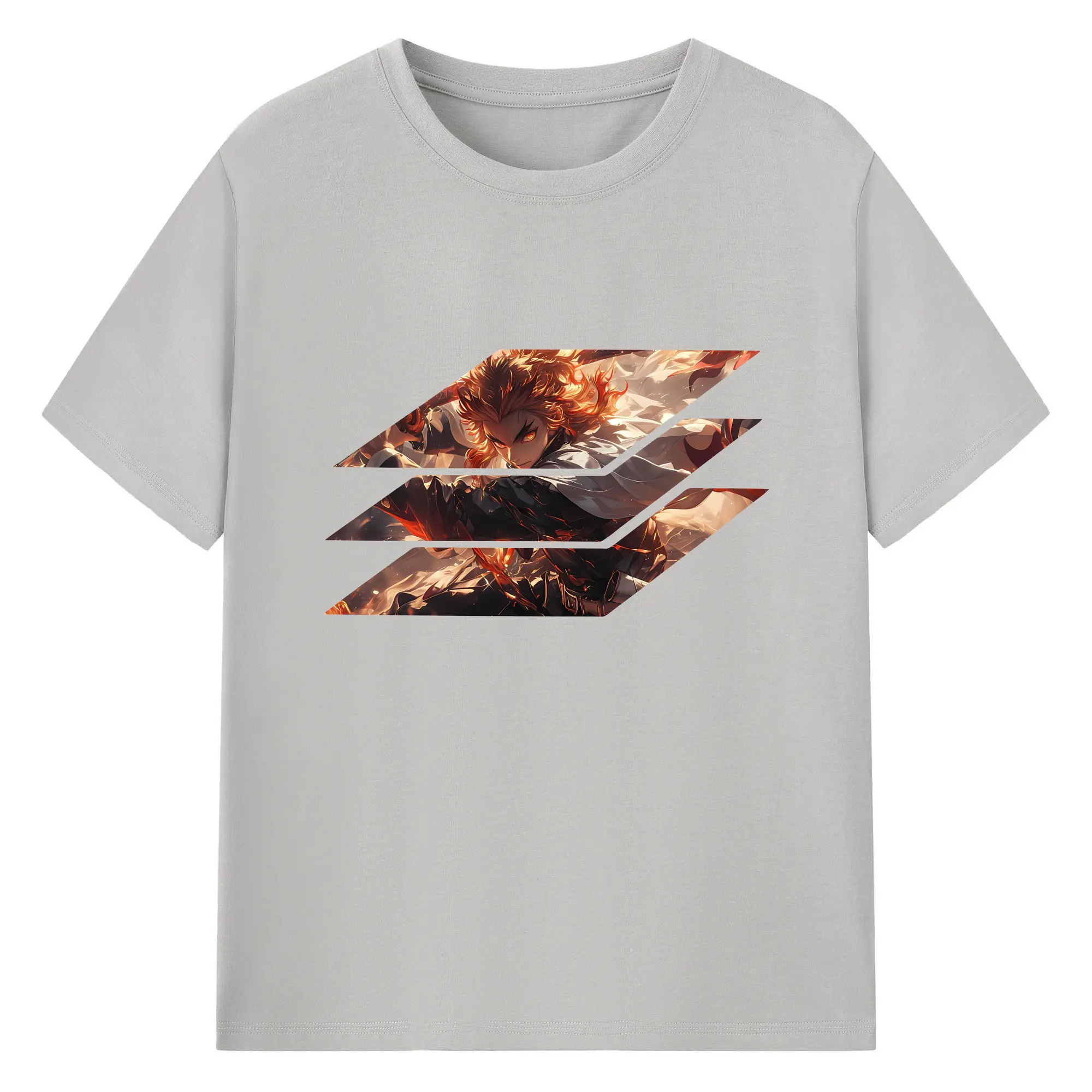 鬼滅の刃 グッズ,煉獄 杏寿郎 - 綿100% 半袖Tシャツ ・ バックプリント ・ 快適 通気性 ・ 日常使い 散歩 スポーツ用