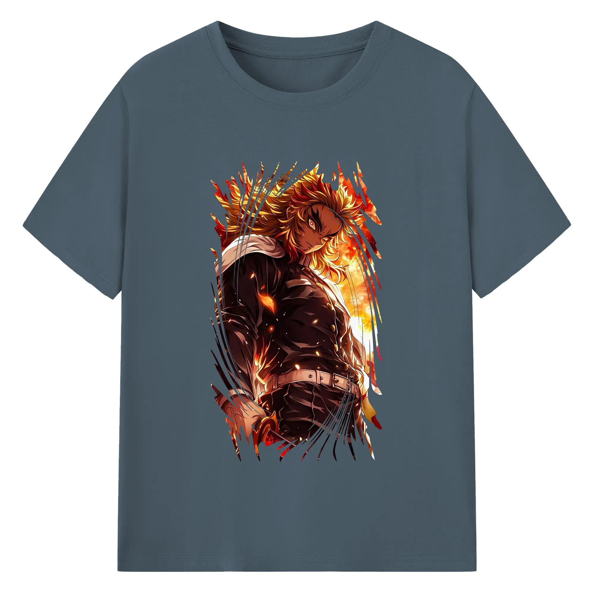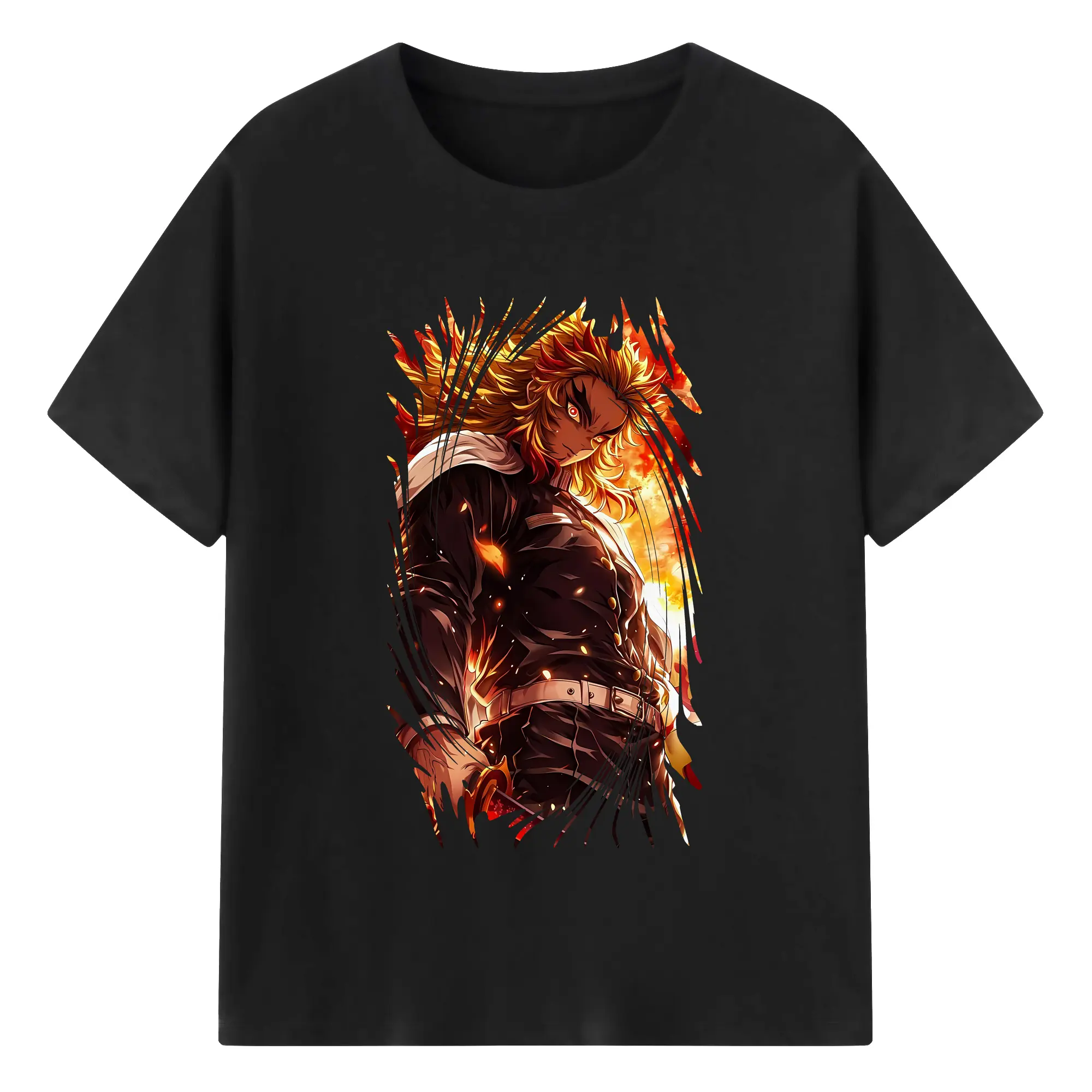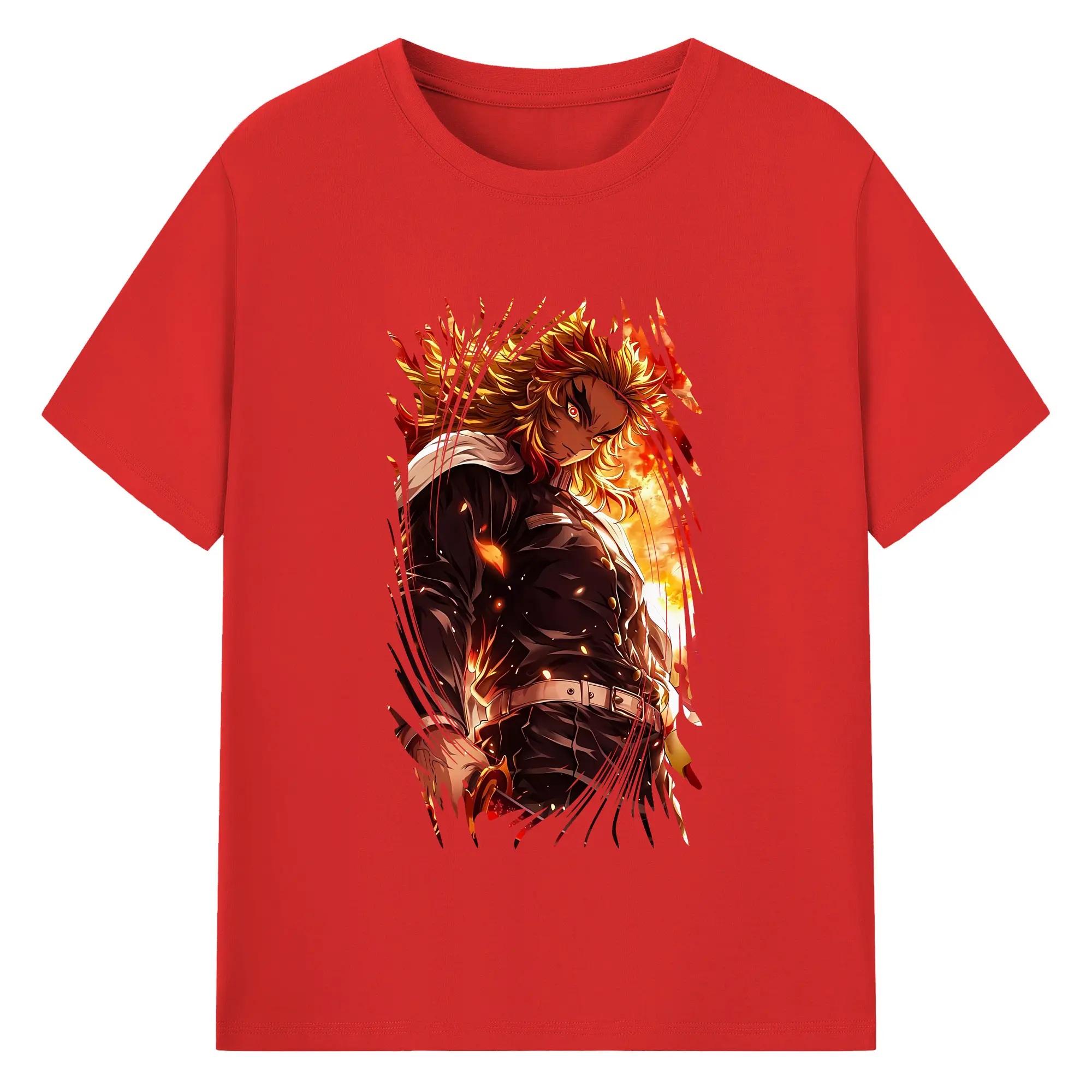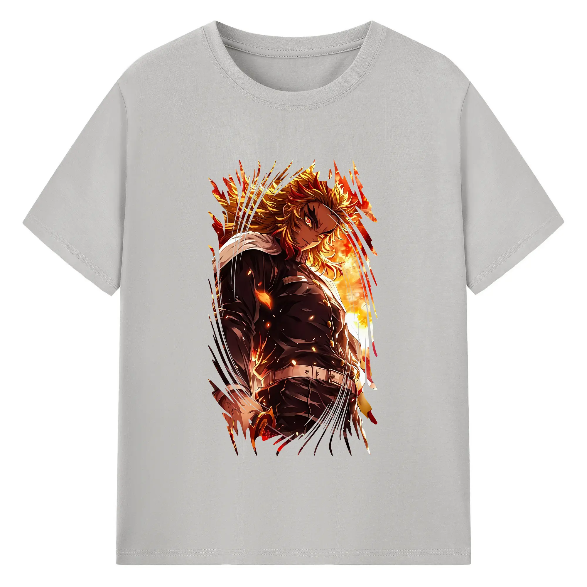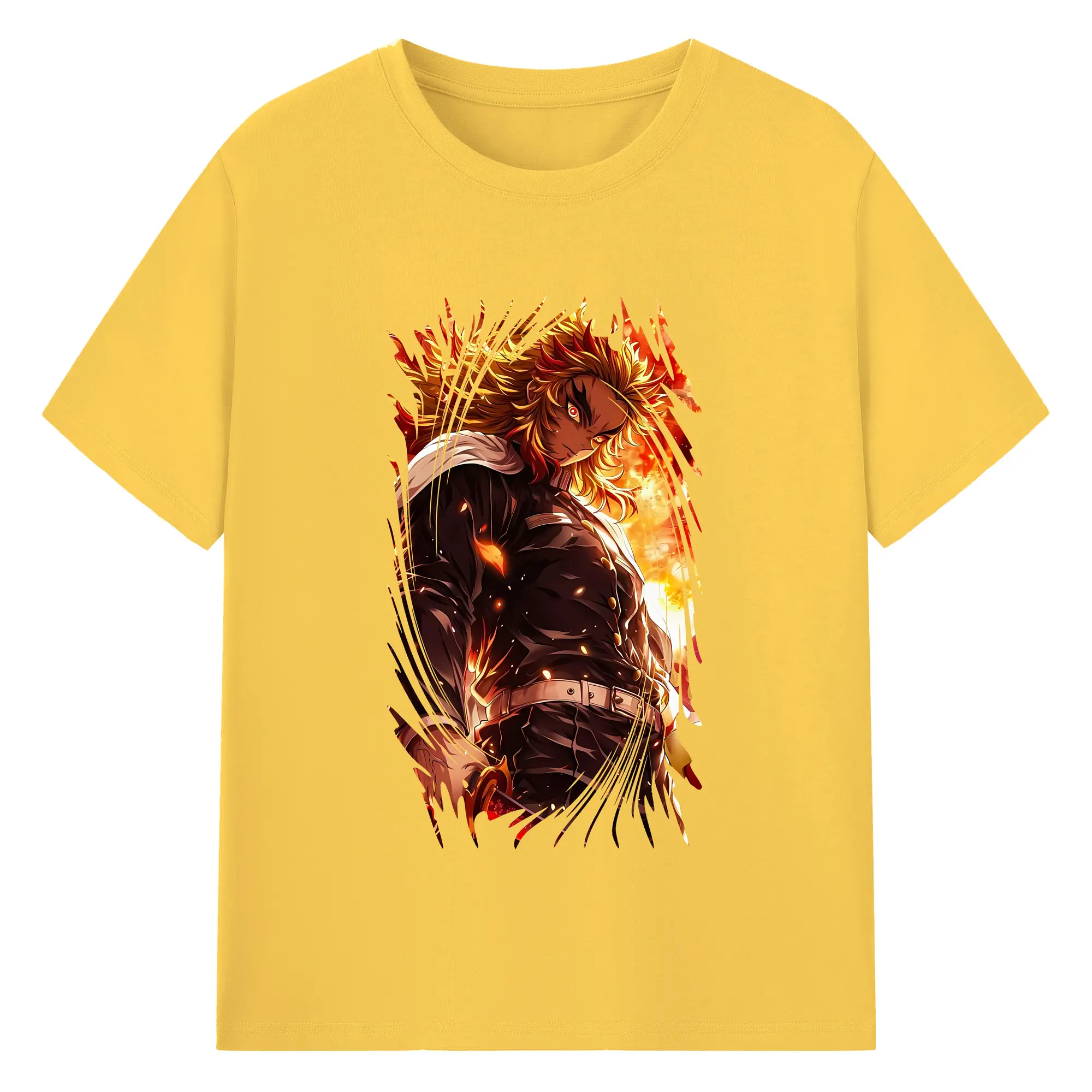 鬼滅の刃 グッズ,煉獄 杏寿郎 - 綿100% 半袖Tシャツ ・ バックプリント ・ 快適 通気性 ・ 日常使い 散歩 スポーツ用