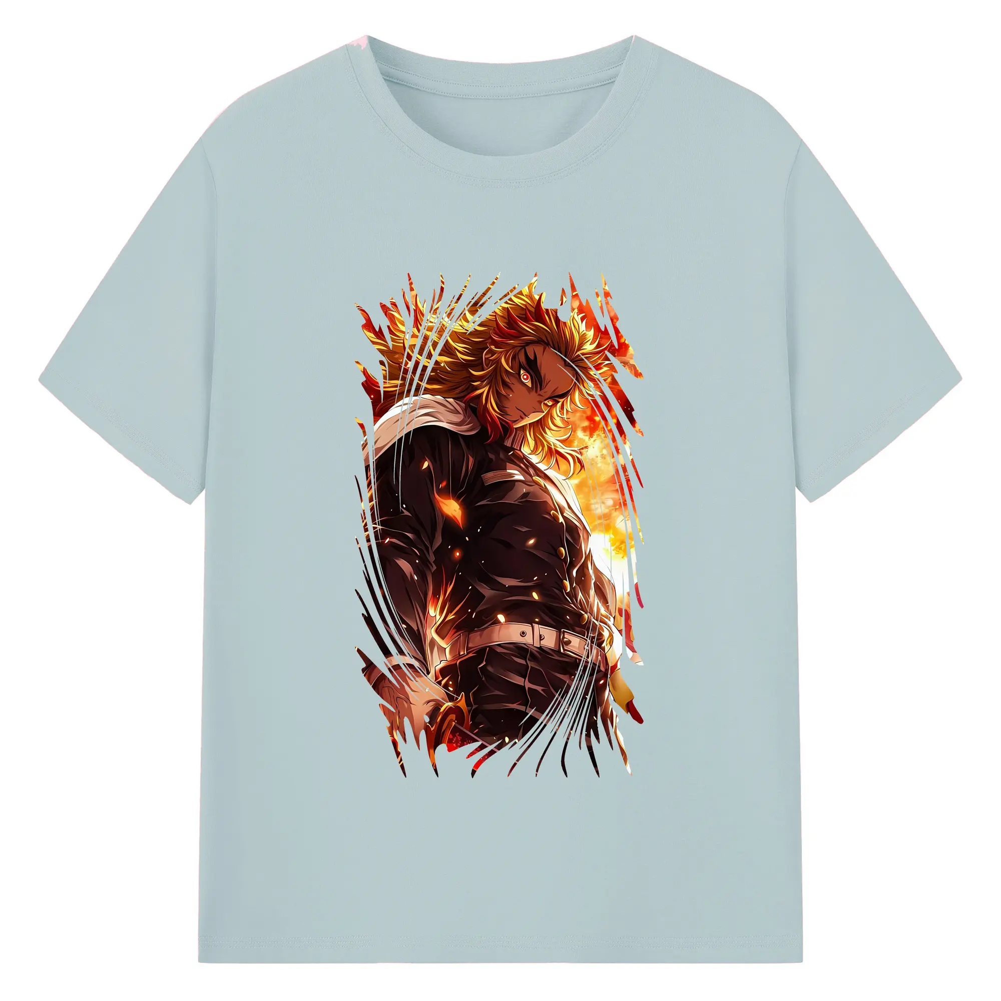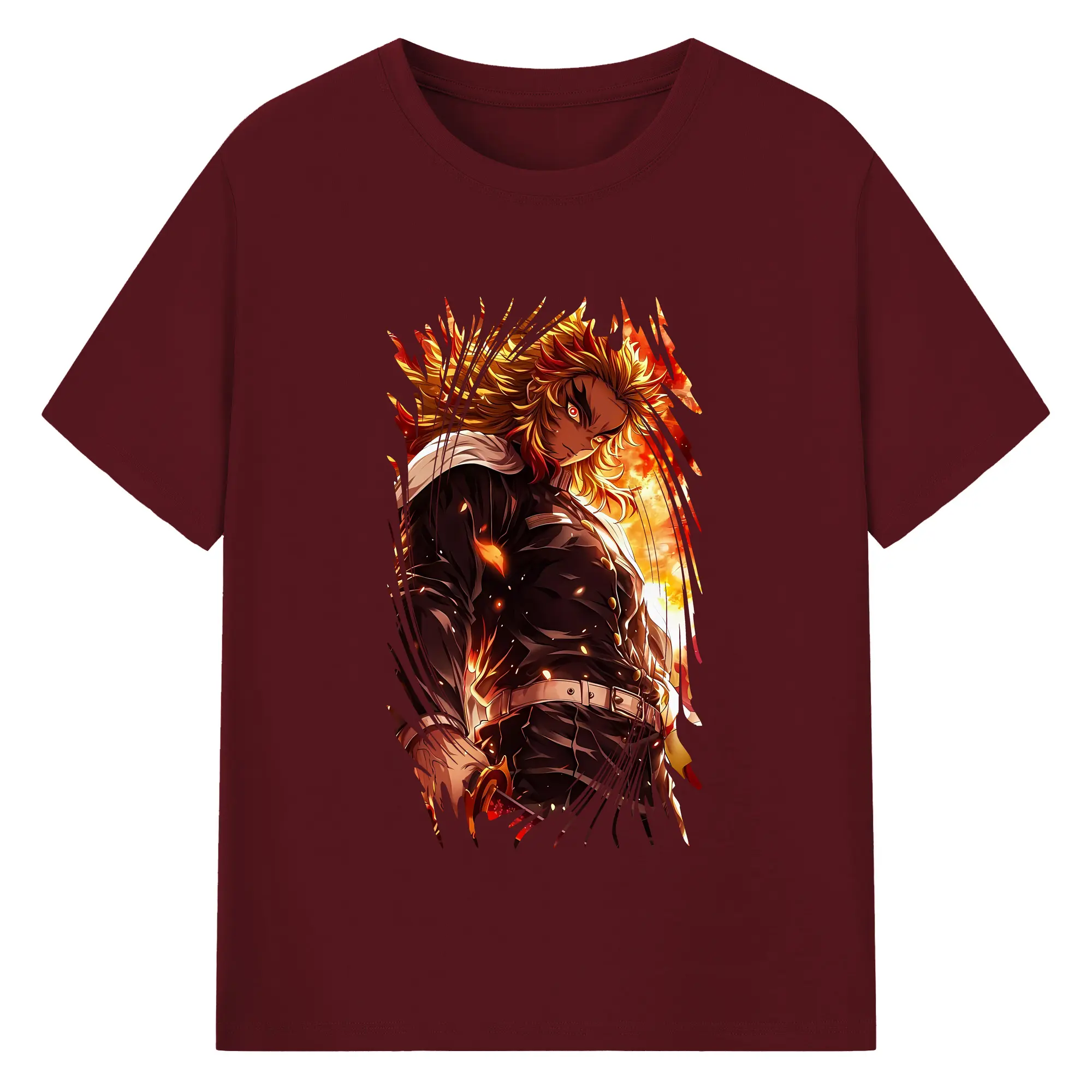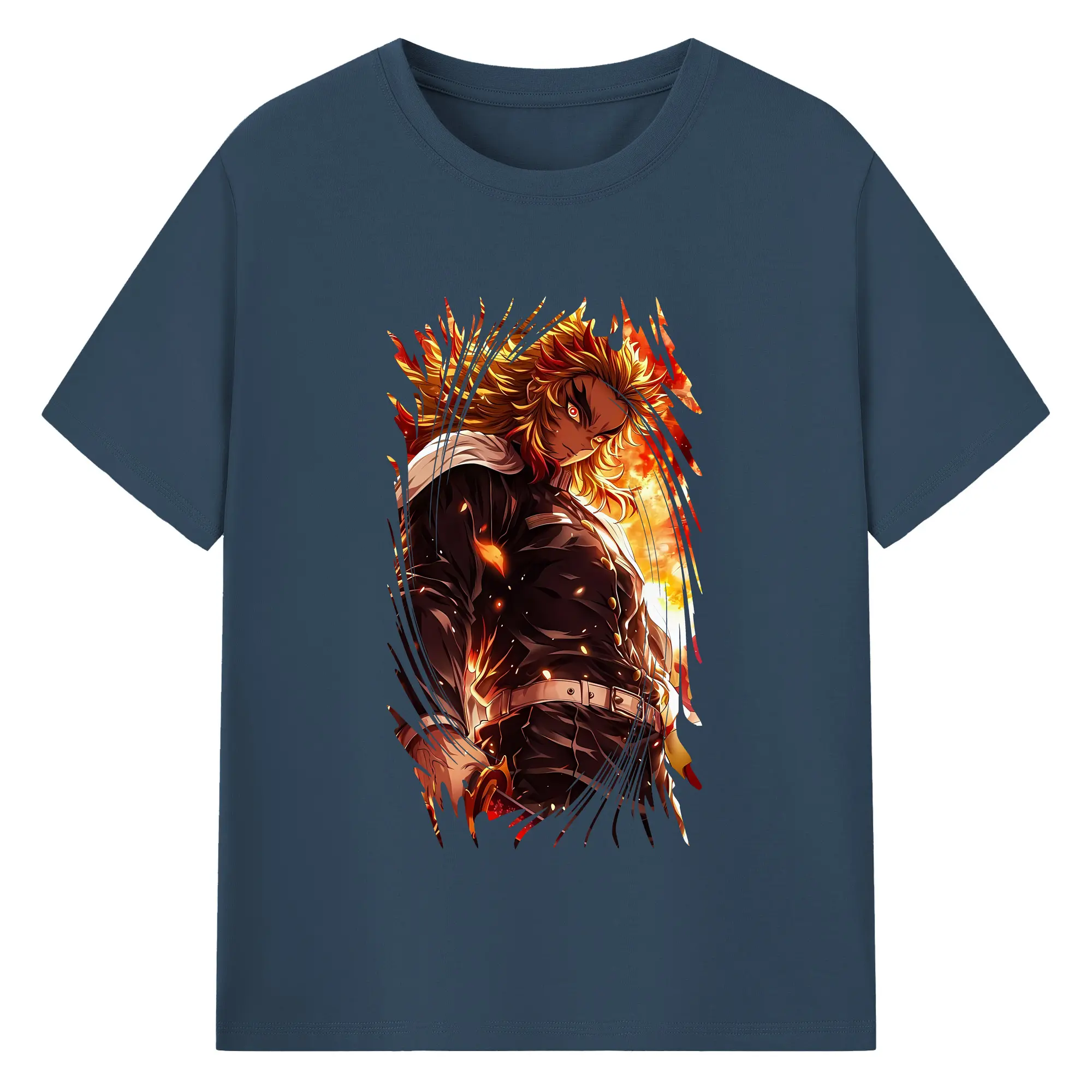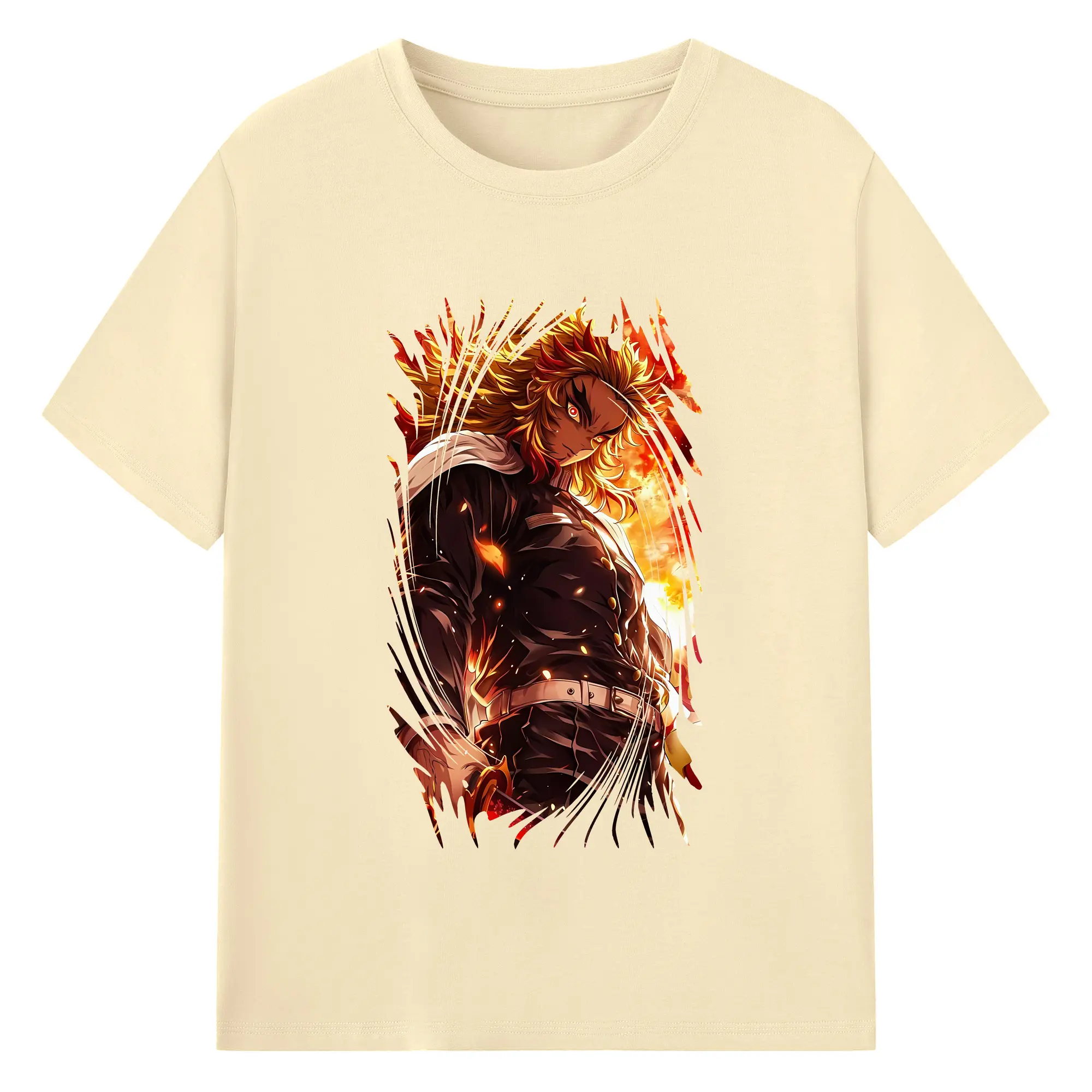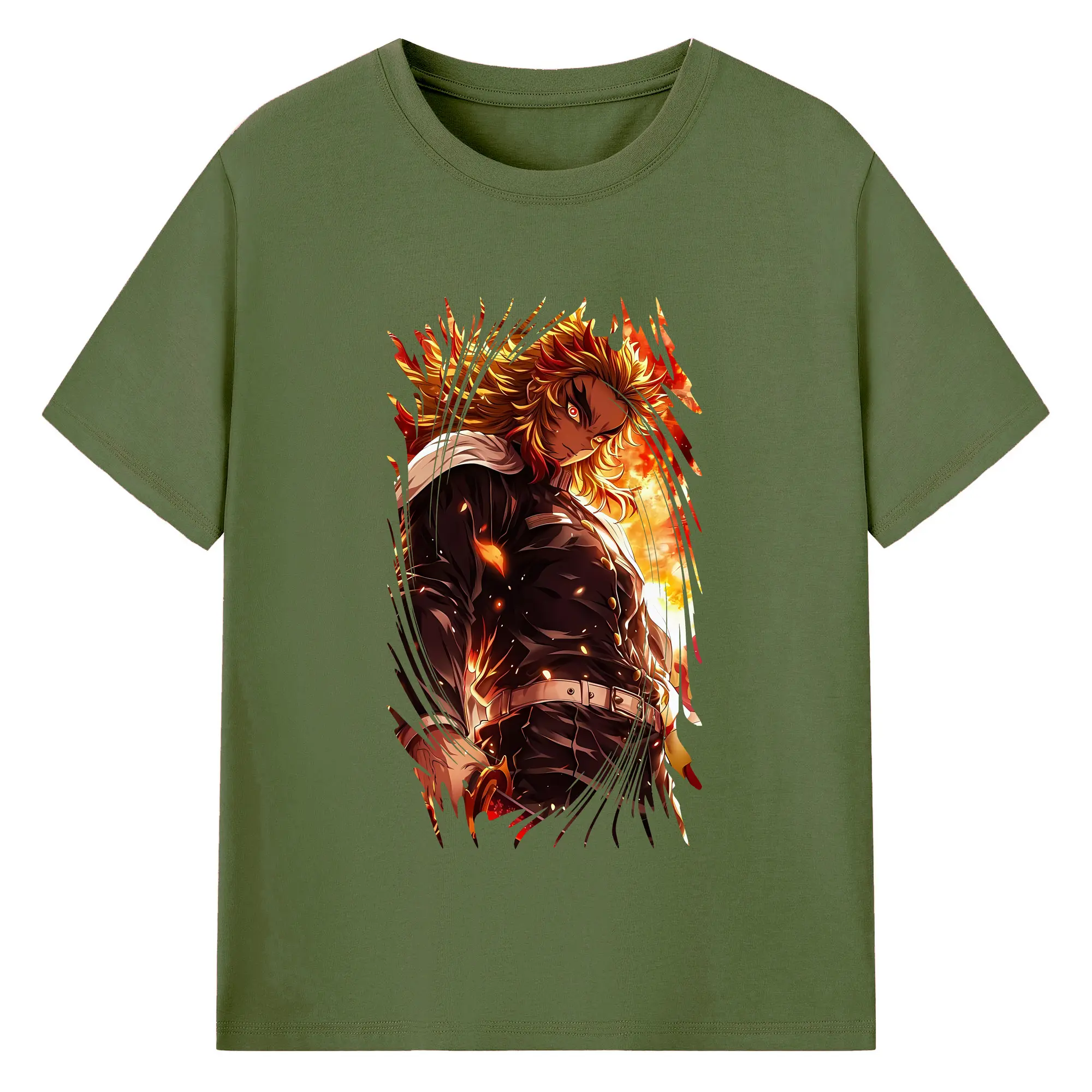 鬼滅の刃 グッズ,煉獄 杏寿郎 - 綿100% 半袖Tシャツ ・ バックプリント ・ 快適 通気性 ・ 日常使い 散歩 スポーツ用