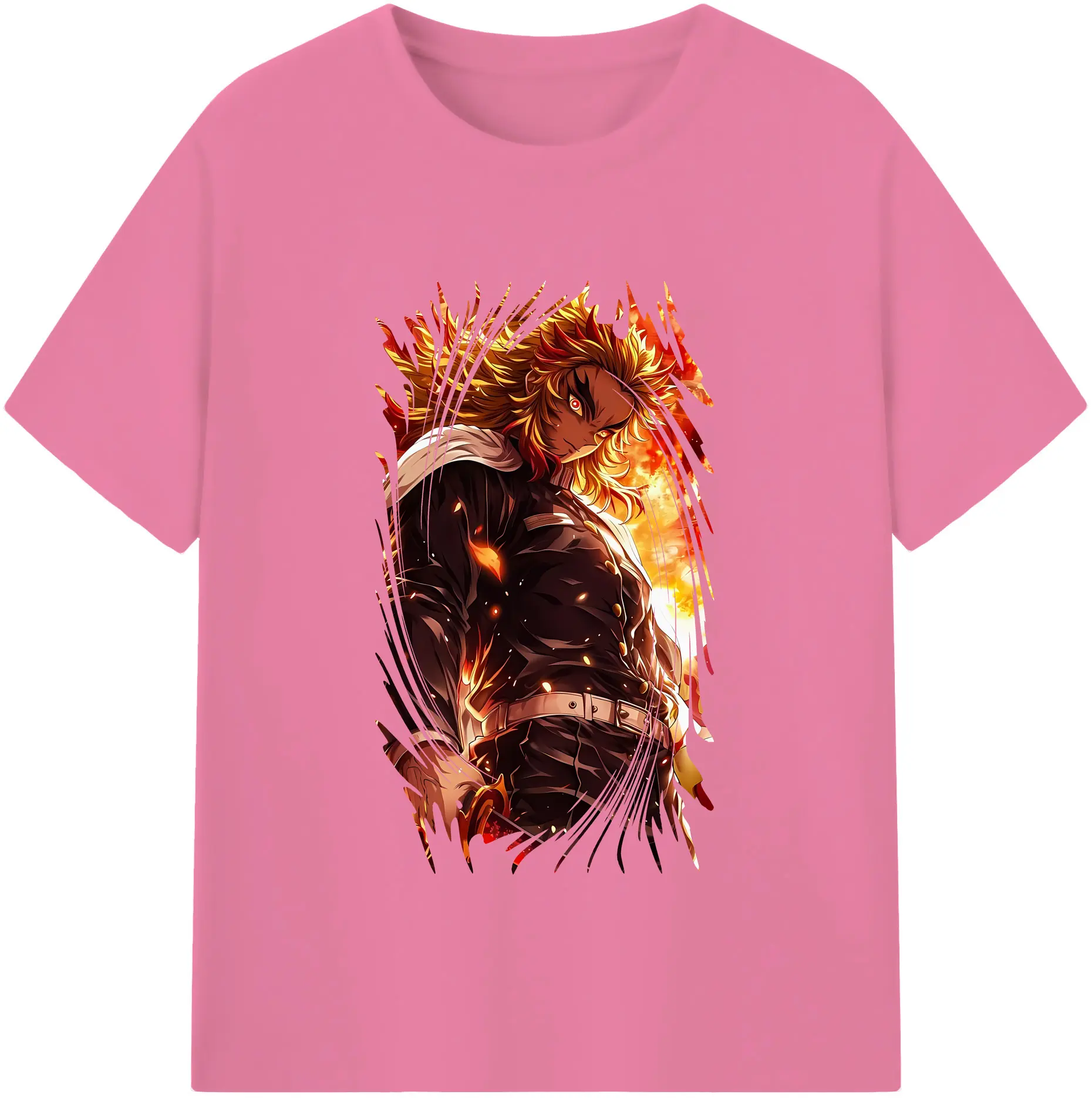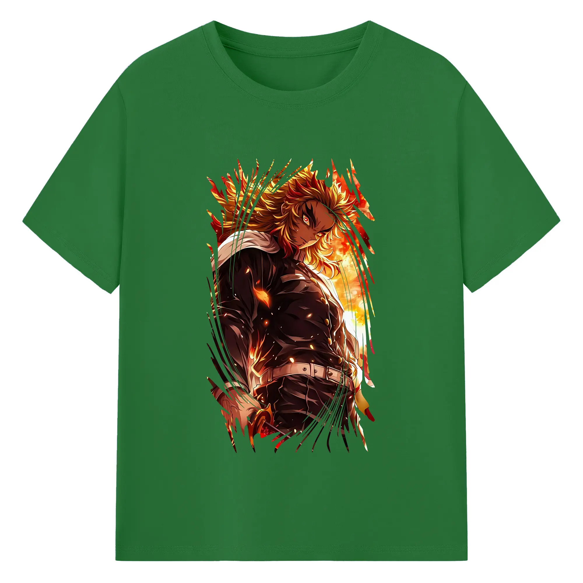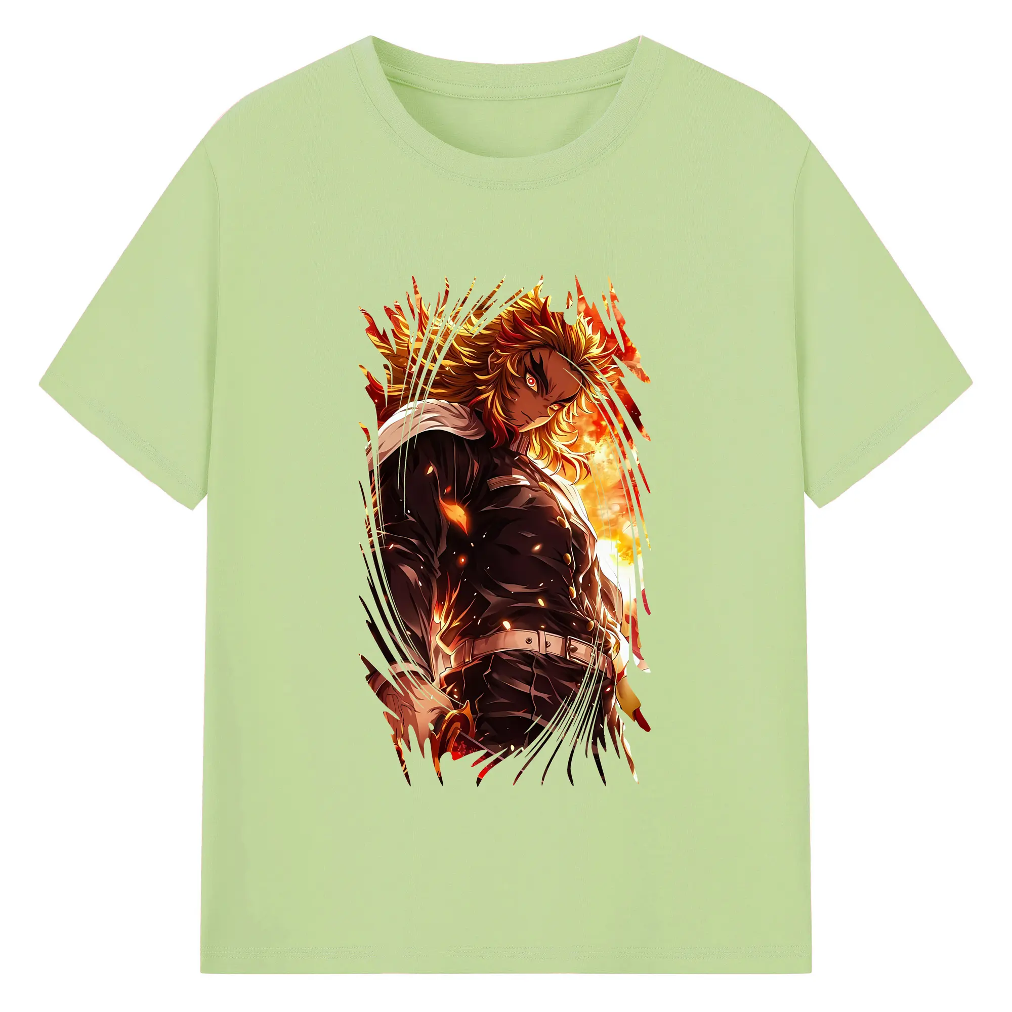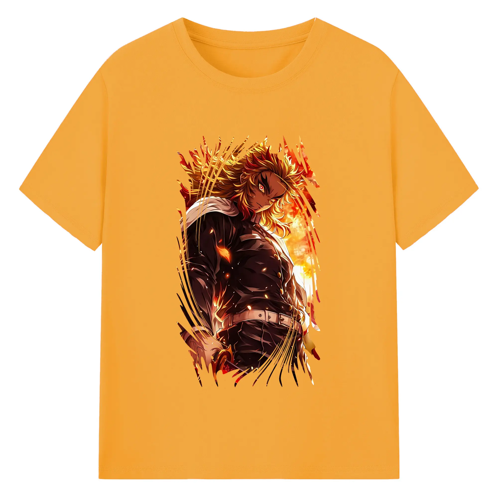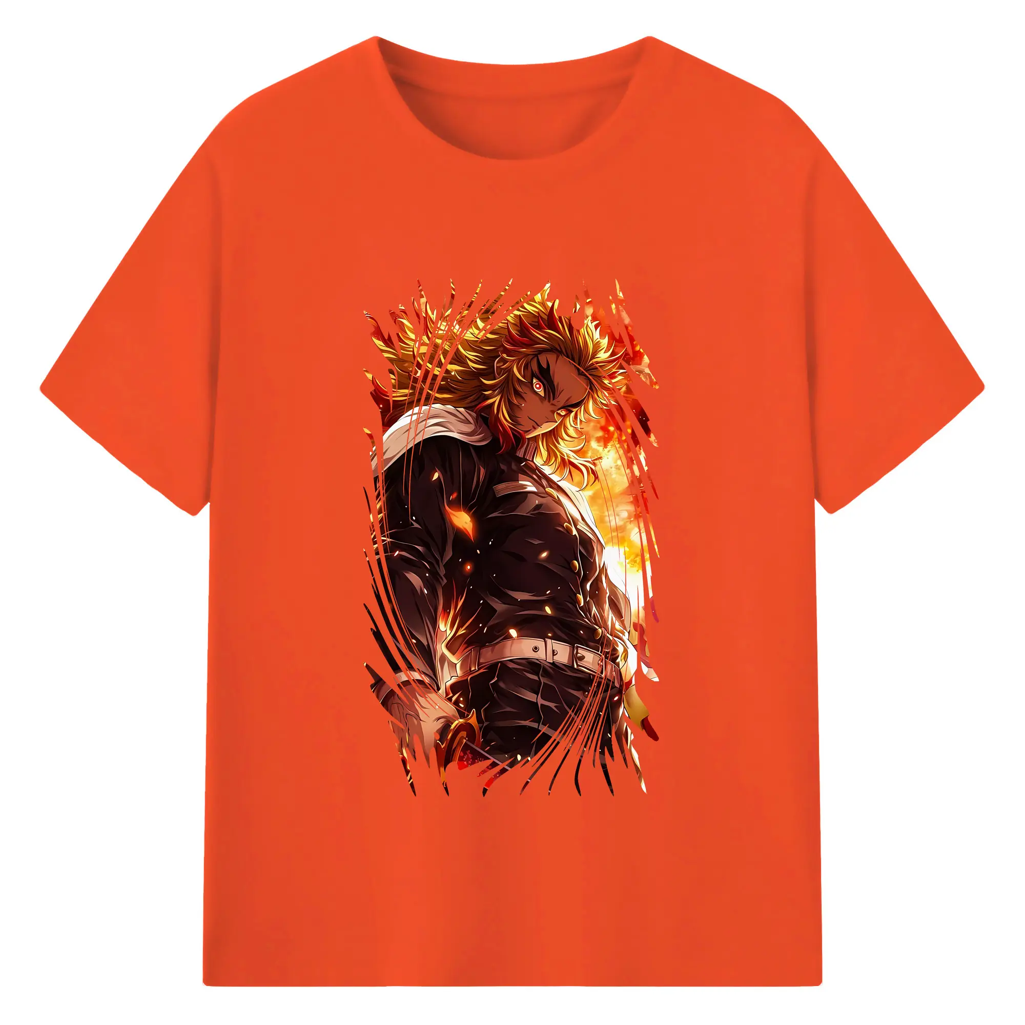 鬼滅の刃 グッズ,煉獄 杏寿郎 - 綿100% キッズTシャツ ・ フロントプリント ・ 快適 通気性 ・ スポーツ カジュアル 散歩用