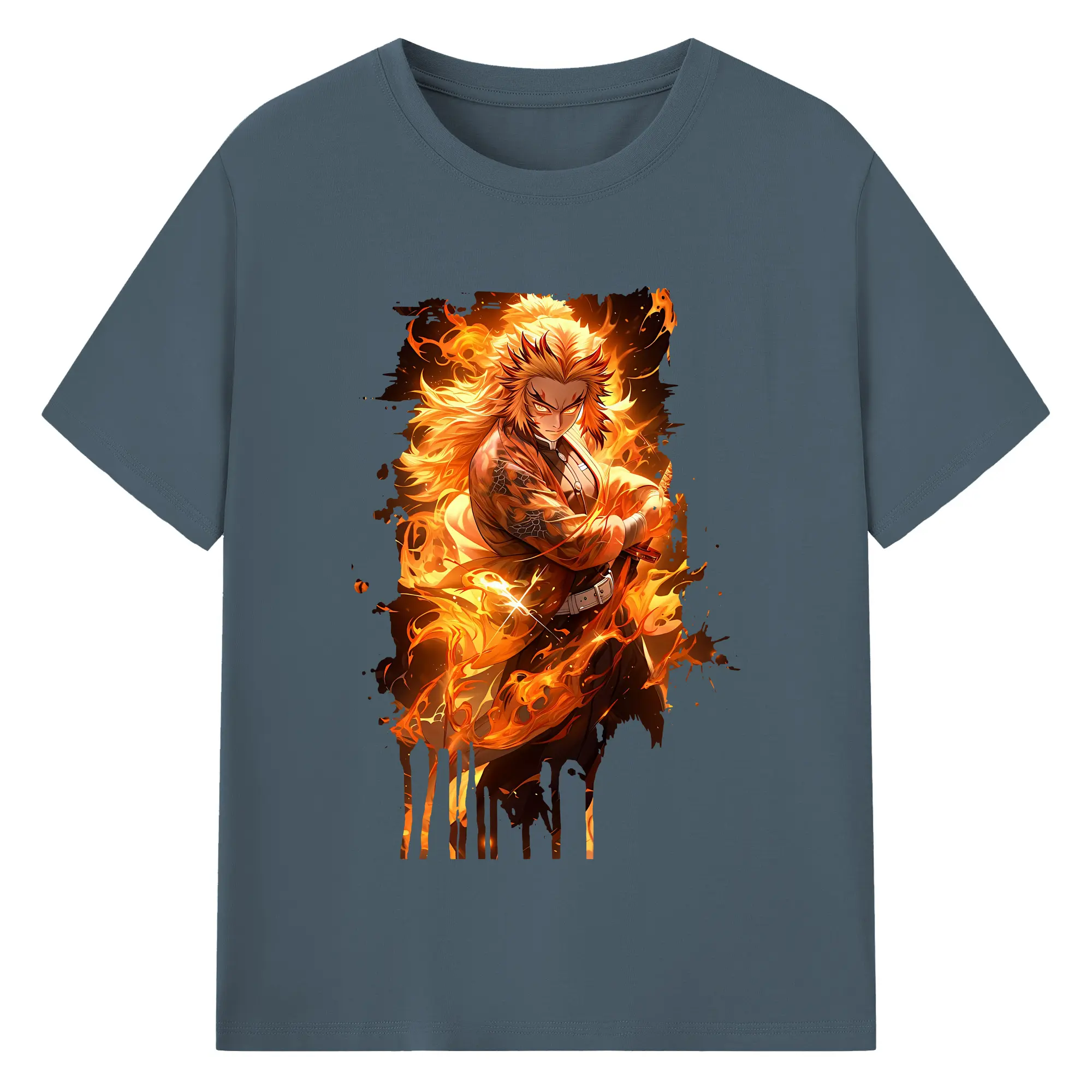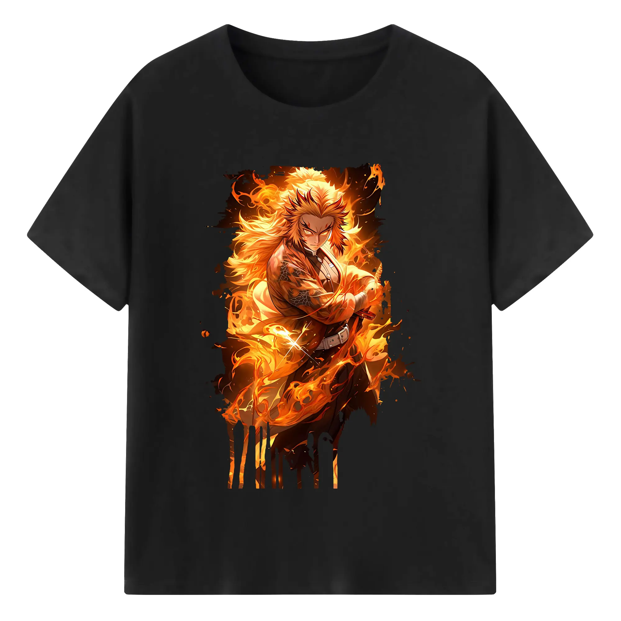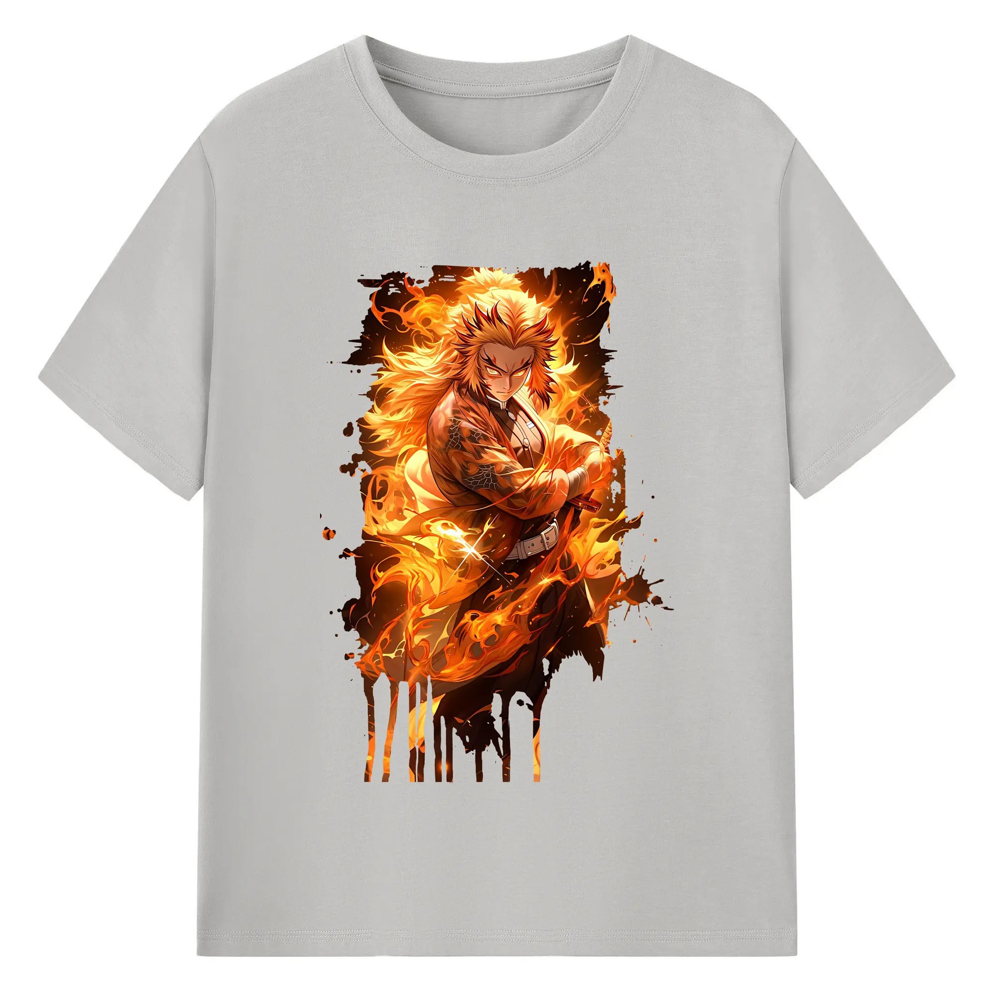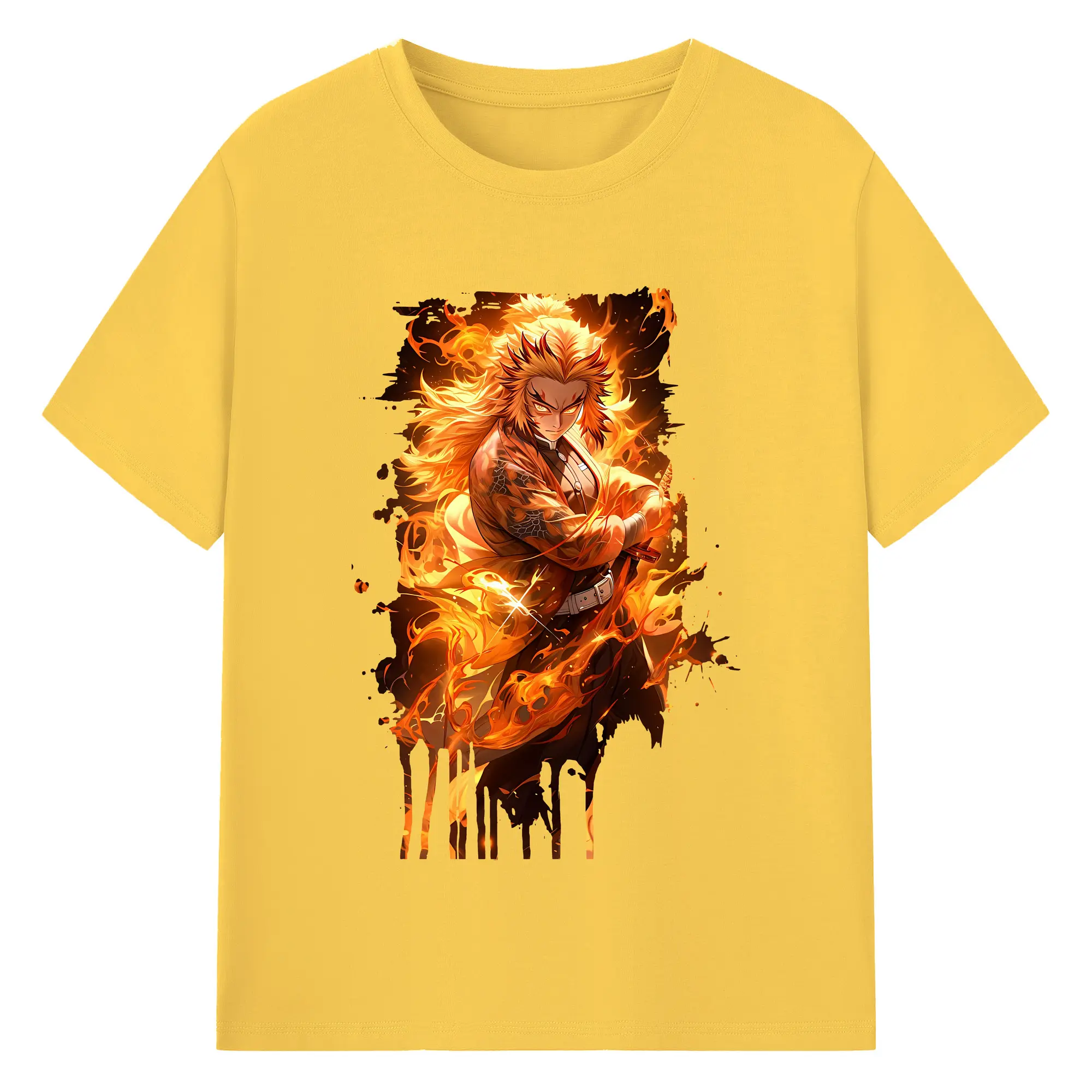鬼滅の刃 グッズ,煉獄 杏寿郎 - 綿100% 半袖Tシャツ ・ バックプリント ・ 快適 通気性 ・ 日常使い 散歩 スポーツ用