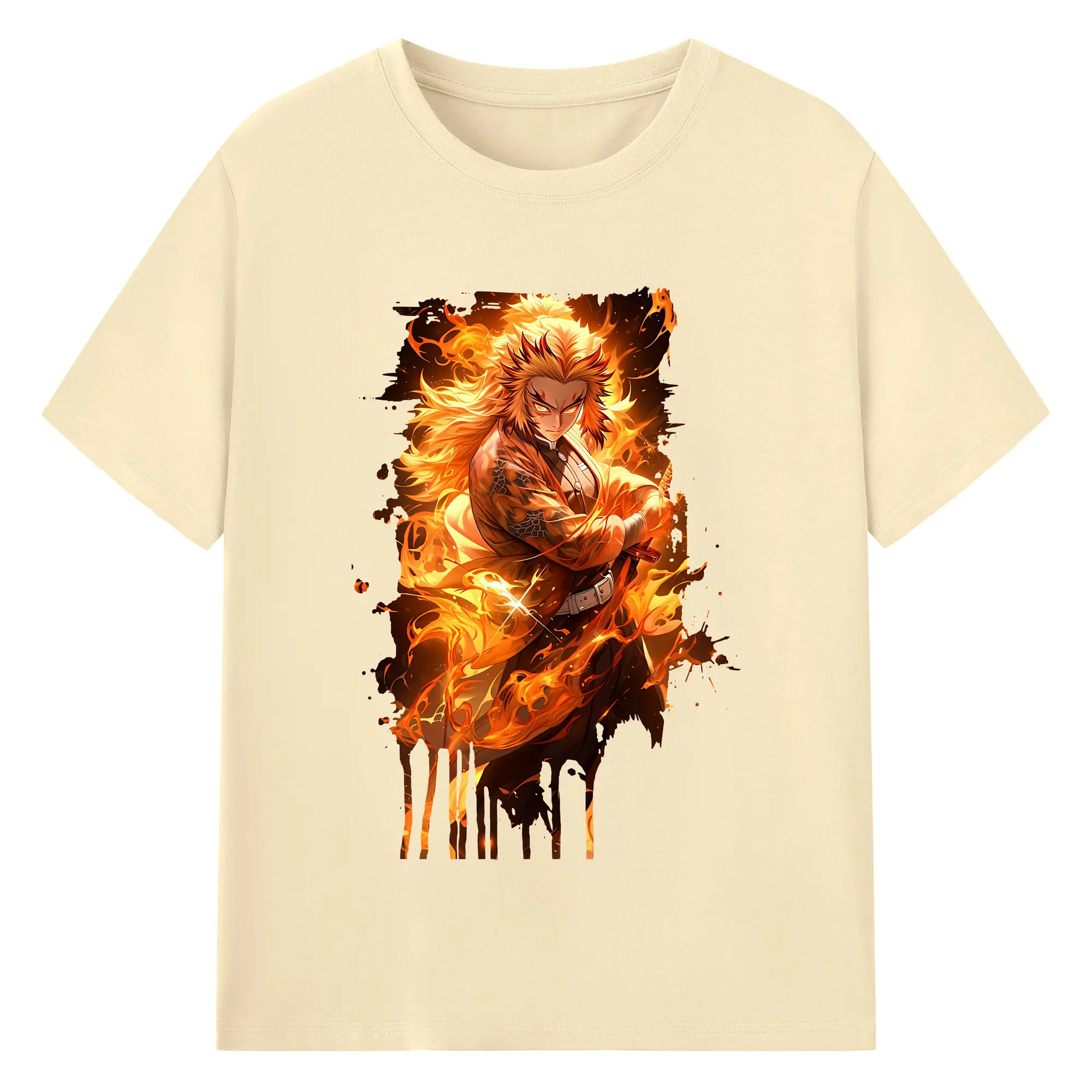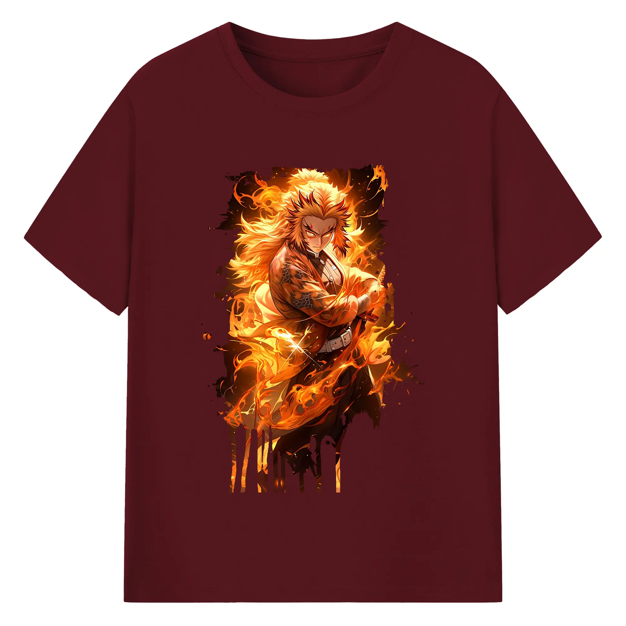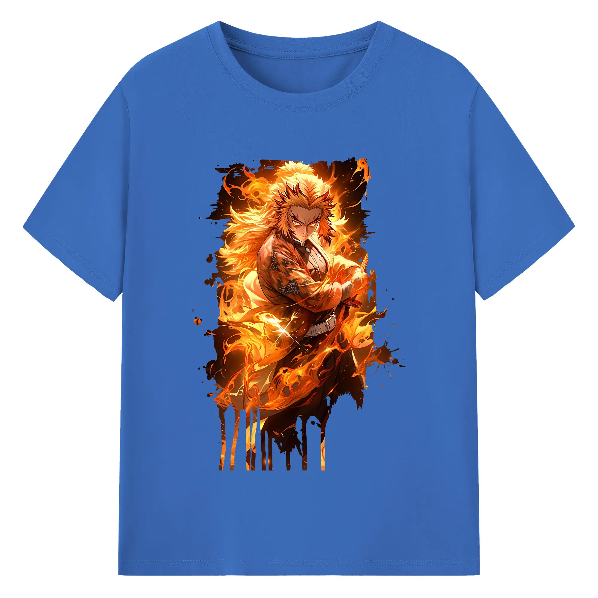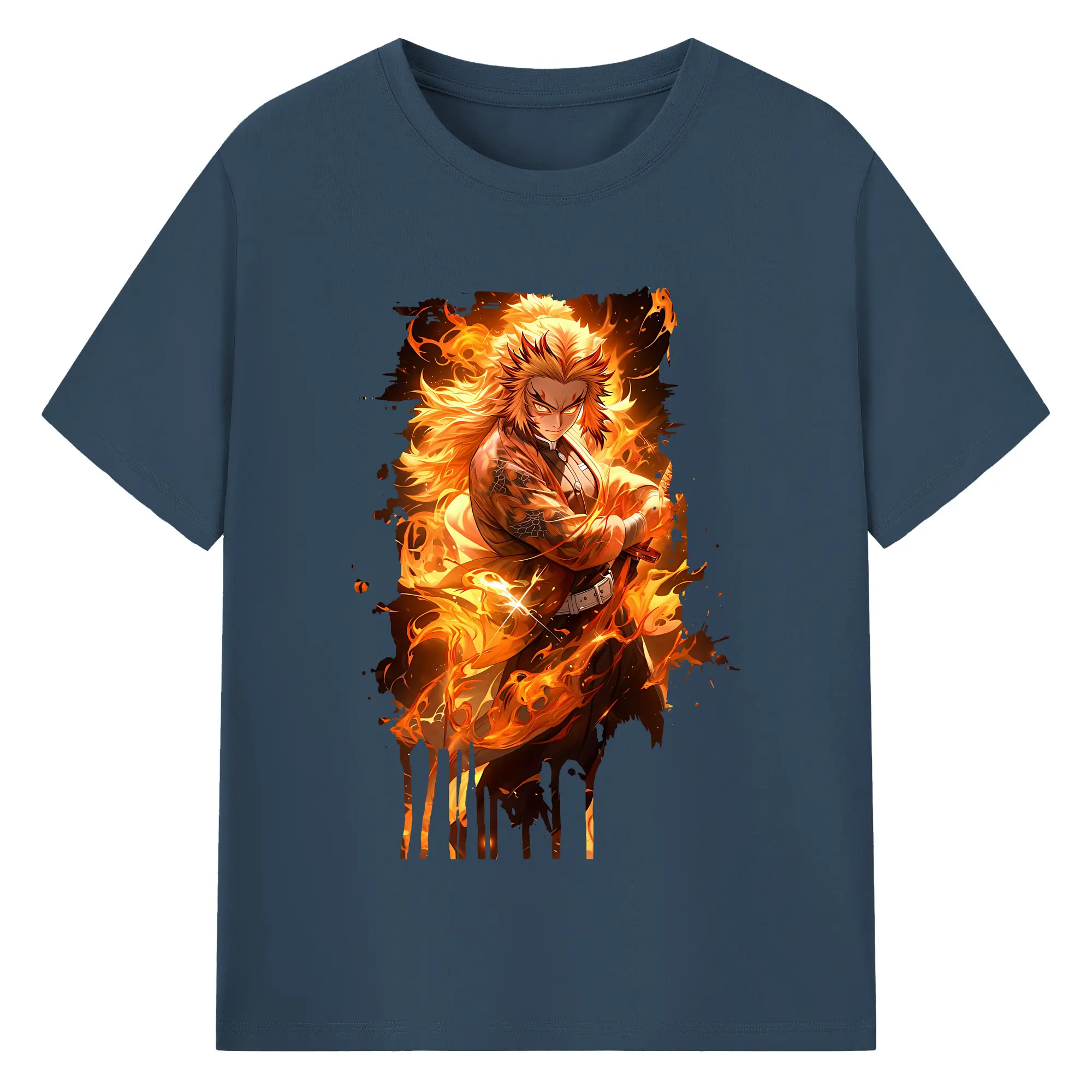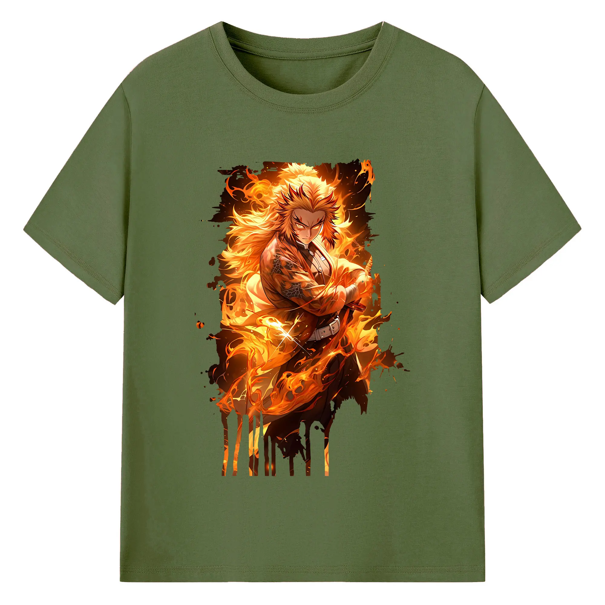 鬼滅の刃 グッズ,煉獄 杏寿郎 - 綿100% 半袖Tシャツ ・ バックプリント ・ 快適 通気性 ・ 日常使い 散歩 スポーツ用