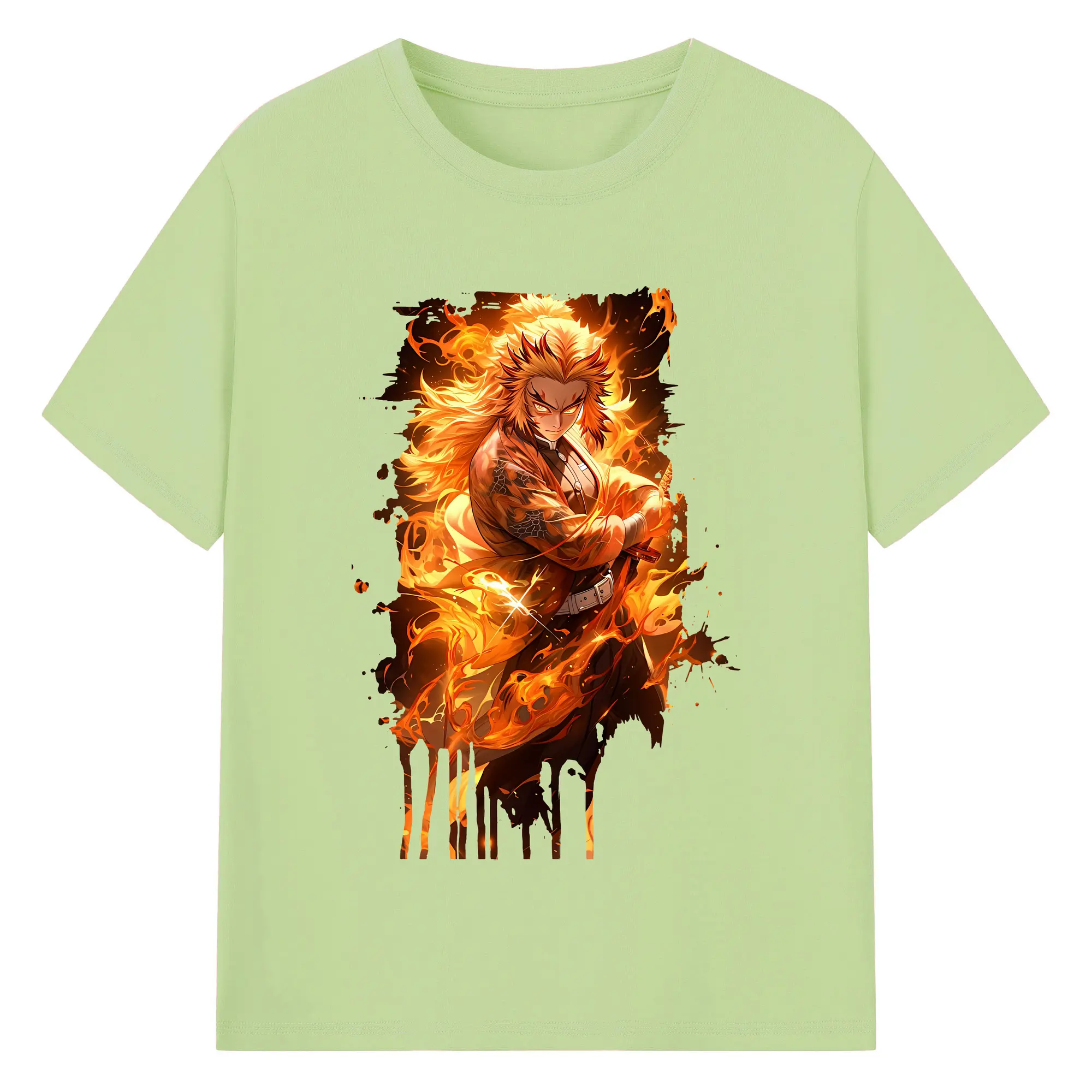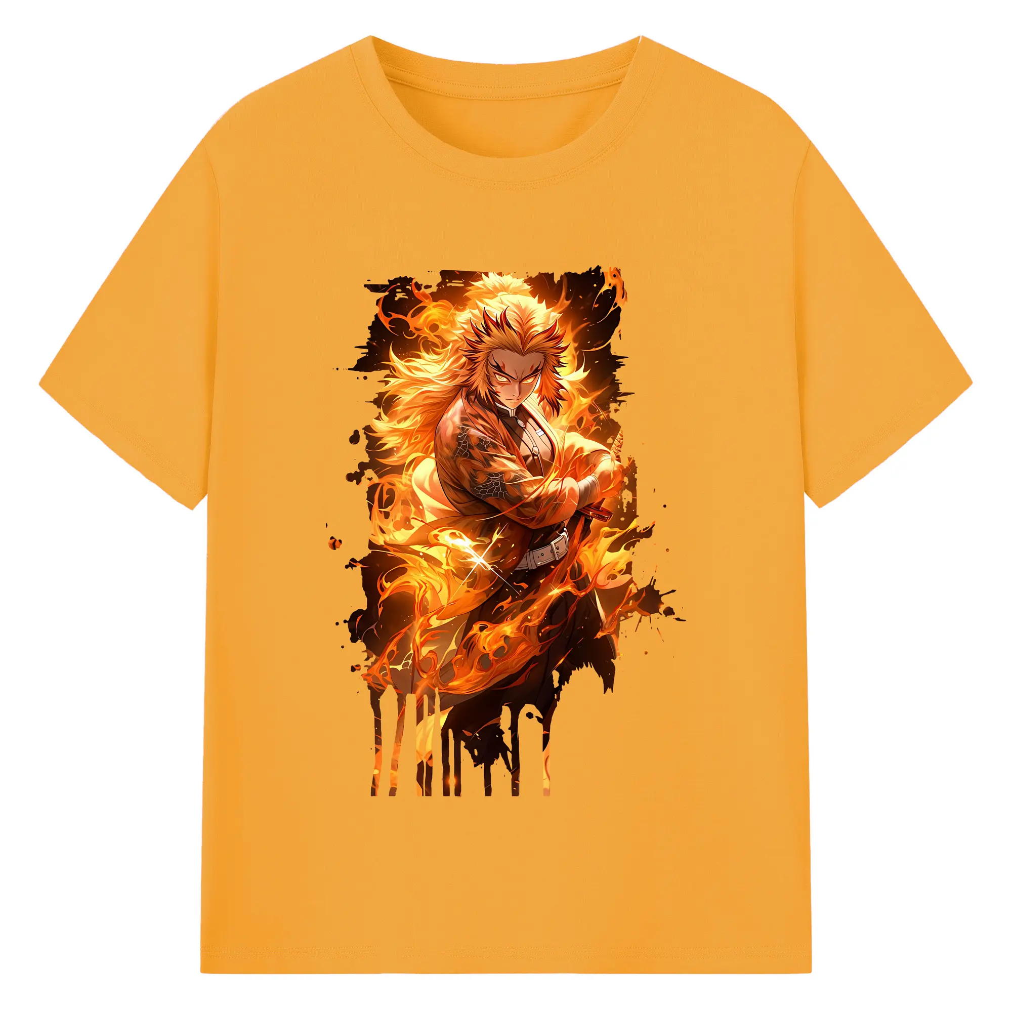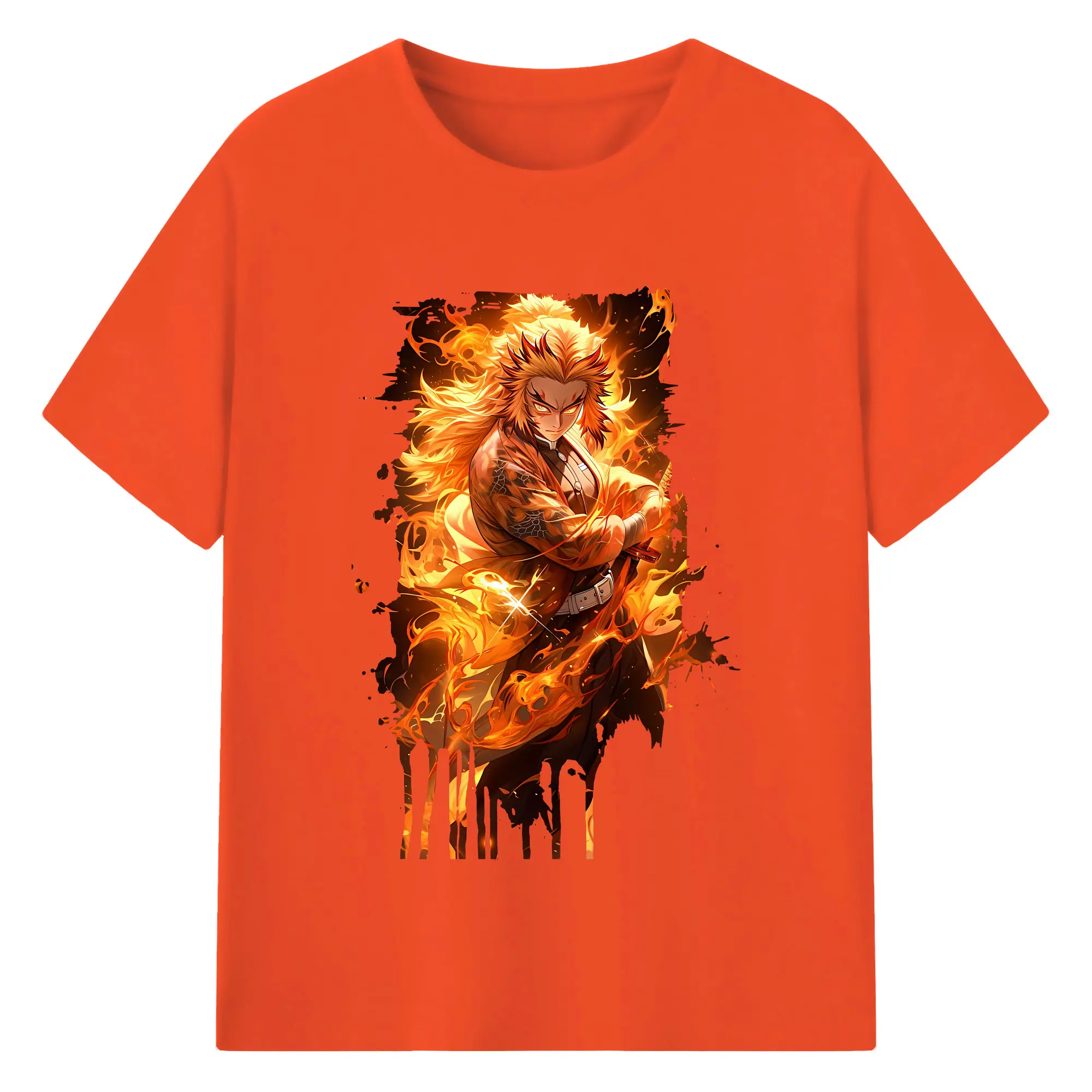 鬼滅の刃 グッズ,煉獄 杏寿郎 - 綿100% キッズTシャツ ・ フロントプリント ・ 快適 通気性 ・ スポーツ カジュアル 散歩用