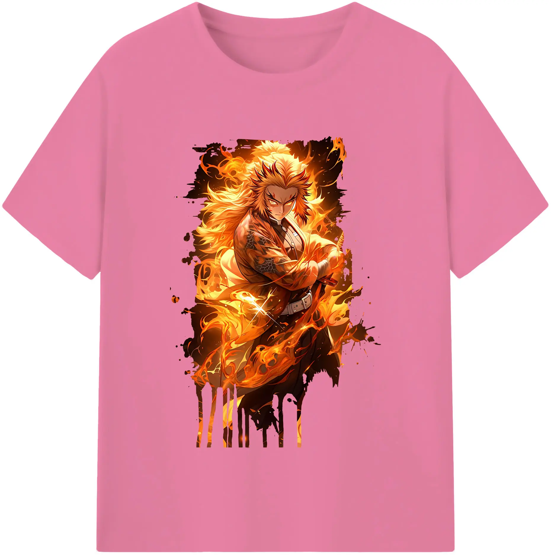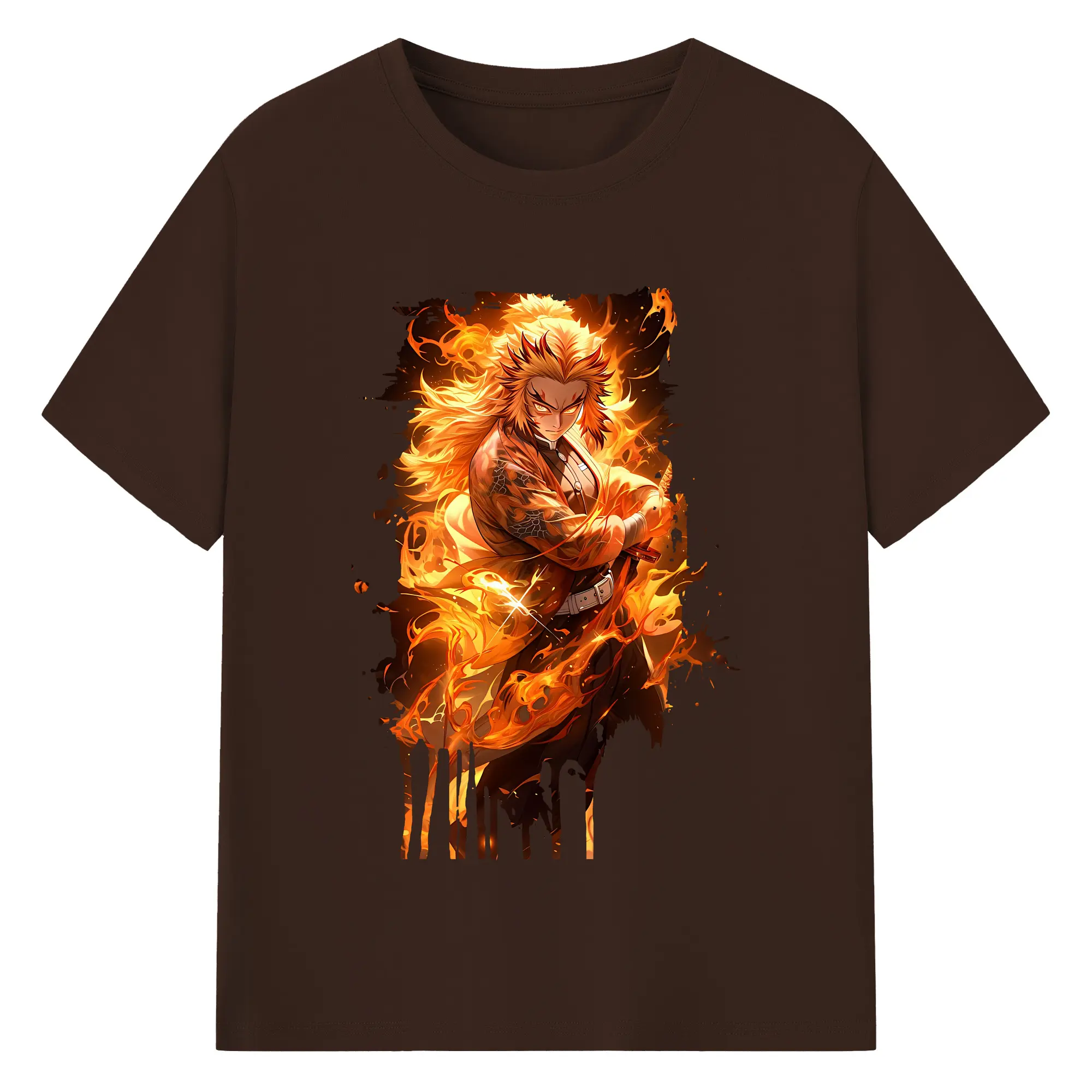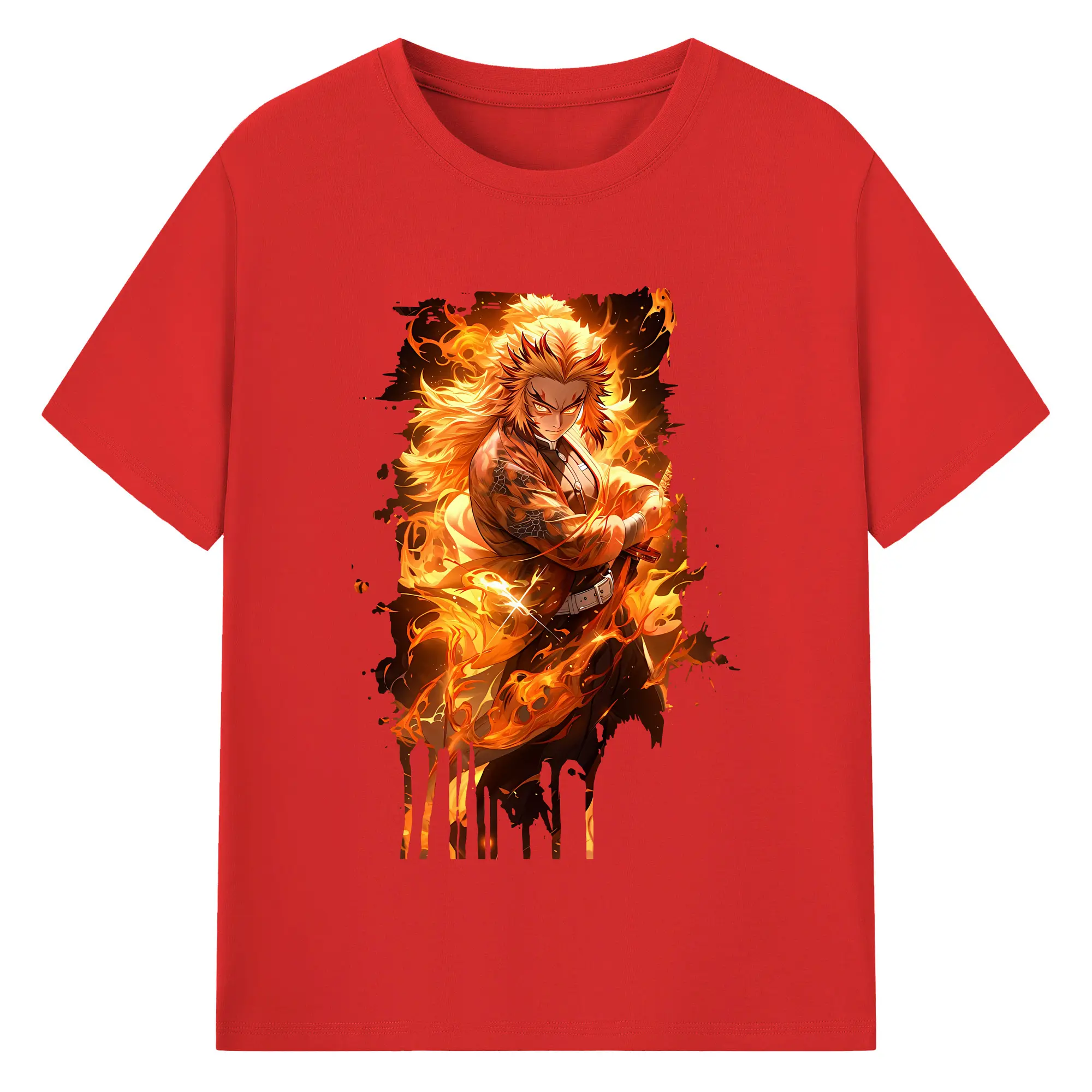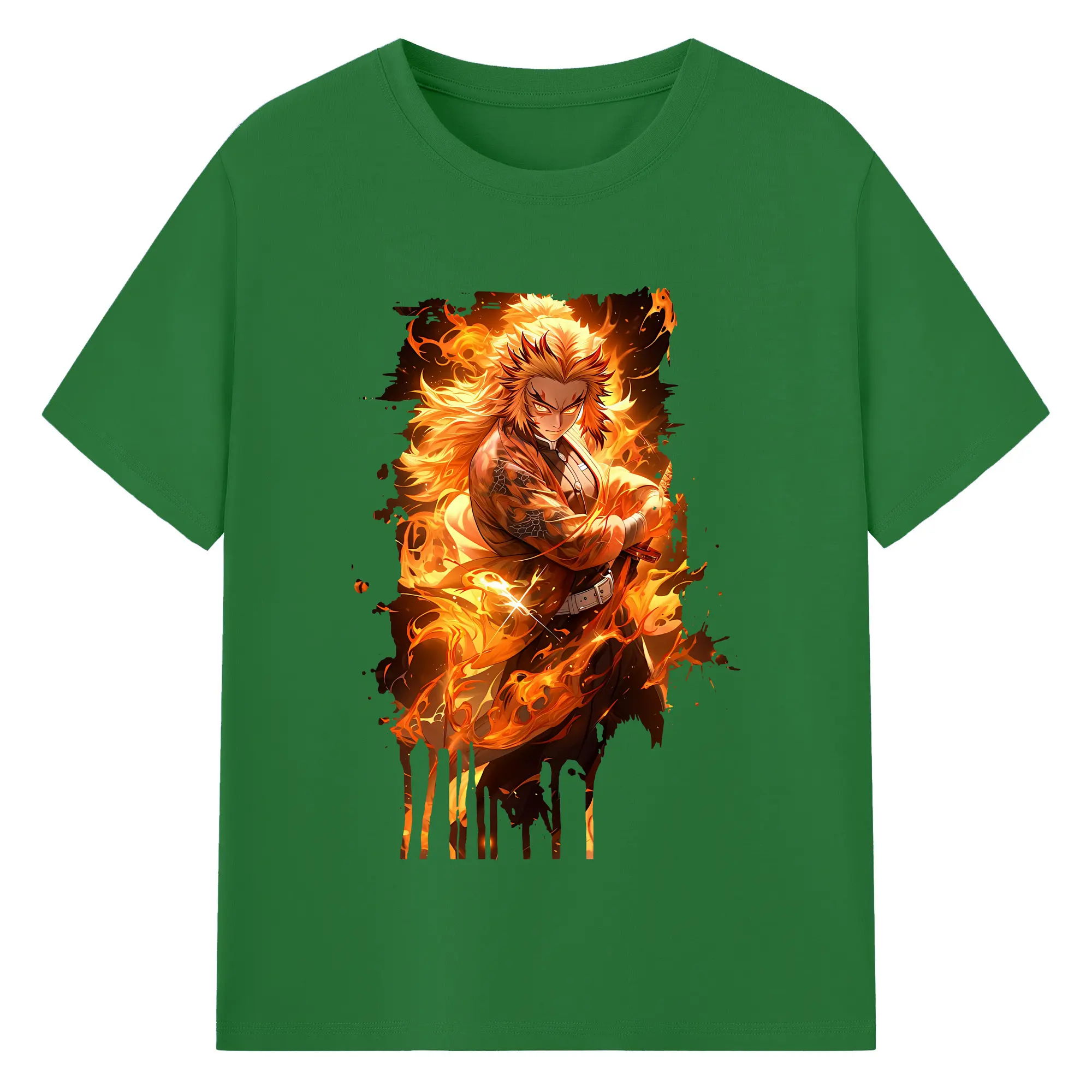 鬼滅の刃 グッズ,煉獄 杏寿郎 - 綿100% キッズTシャツ ・ フロントプリント ・ 快適 通気性 ・ スポーツ カジュアル 散歩用