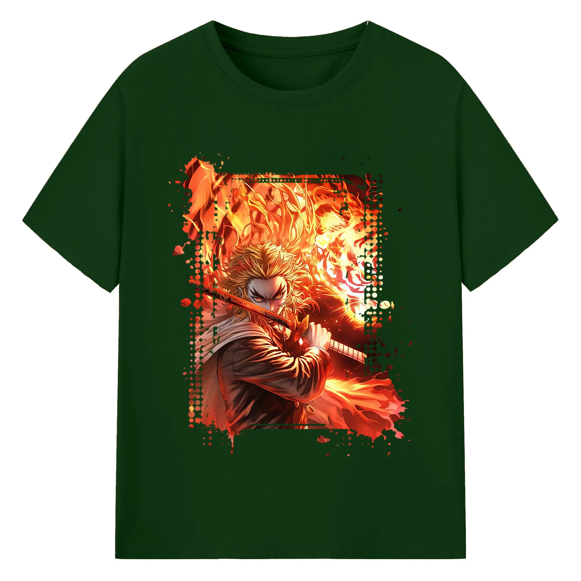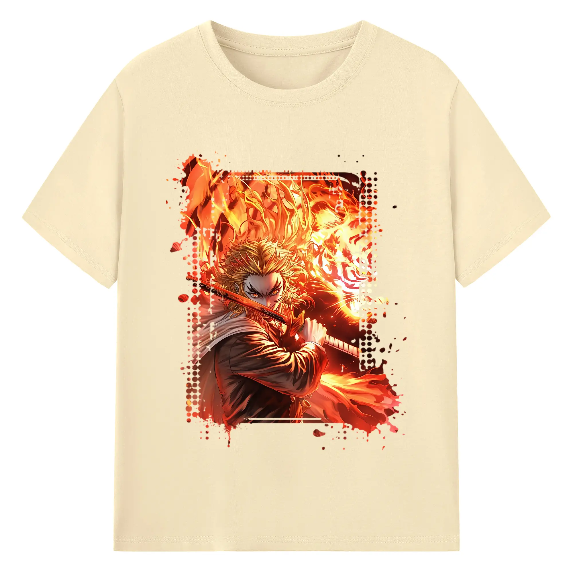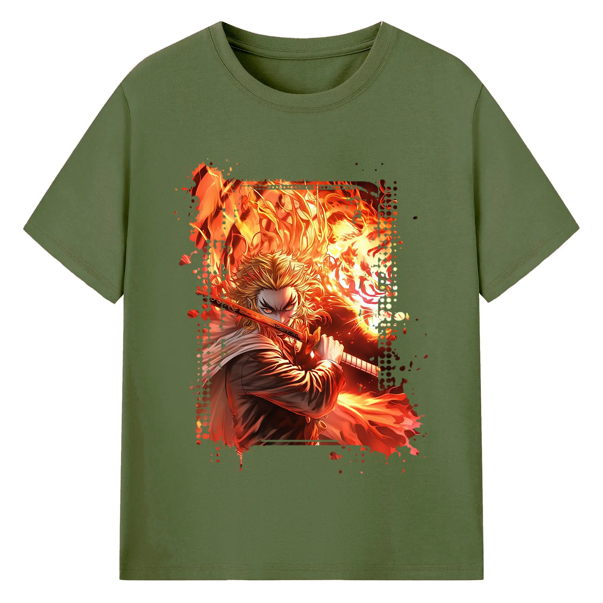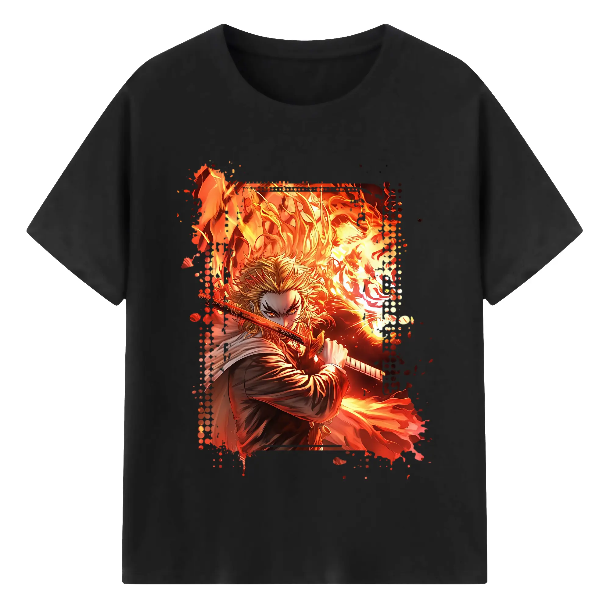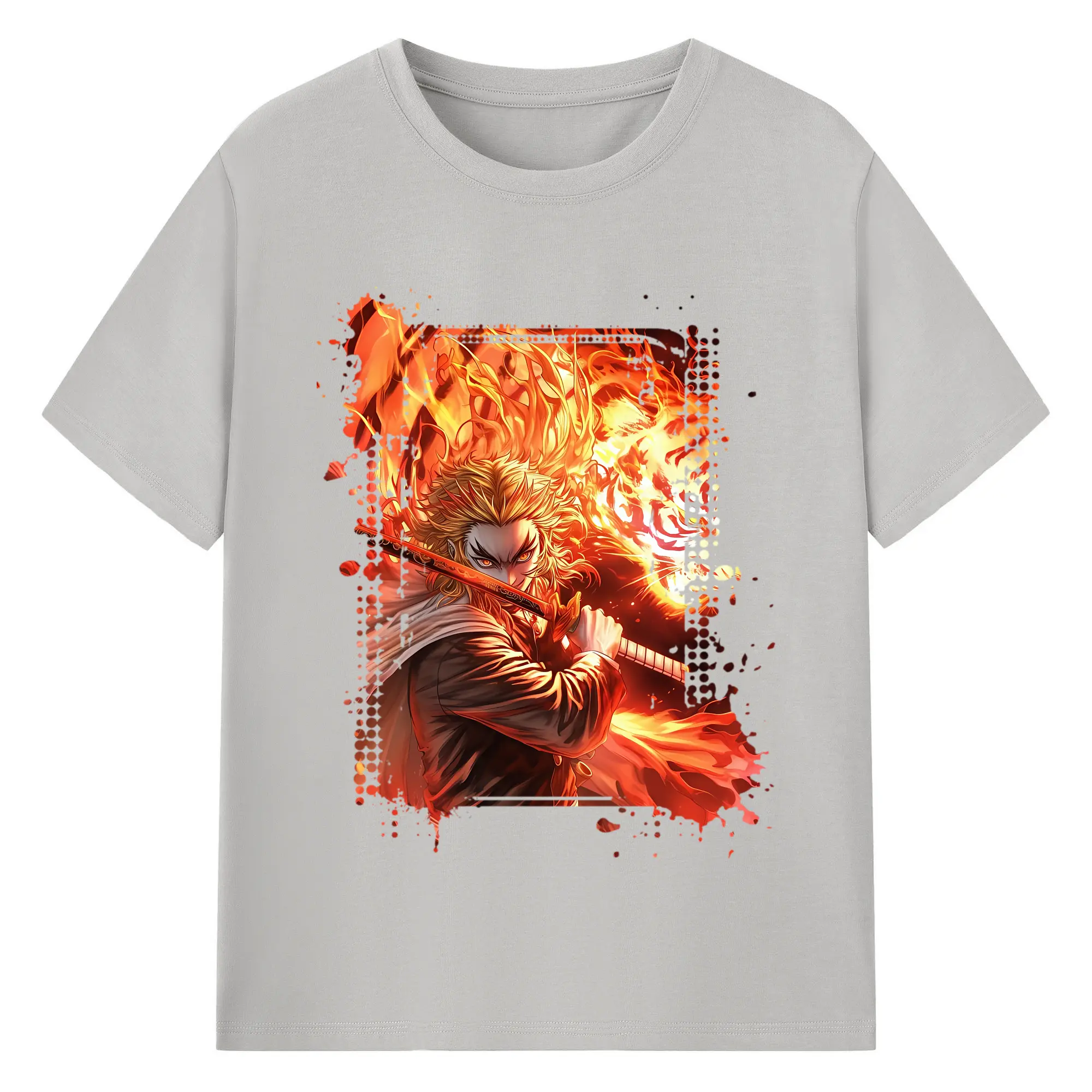鬼滅の刃 グッズ,煉獄 杏寿郎 - 綿100% 半袖Tシャツ ・ バックプリント ・ 快適 通気性 ・ 日常使い 散歩 スポーツ用
