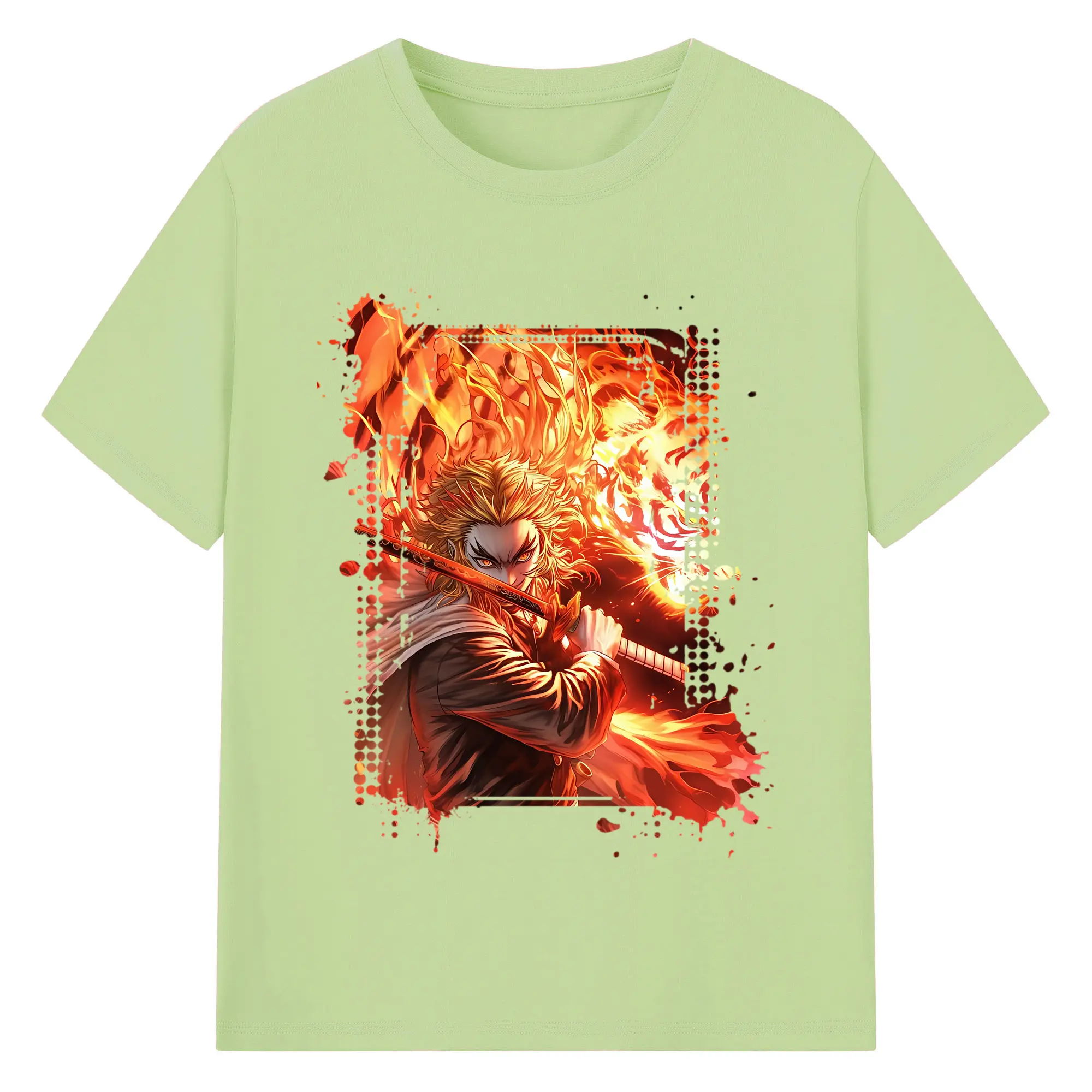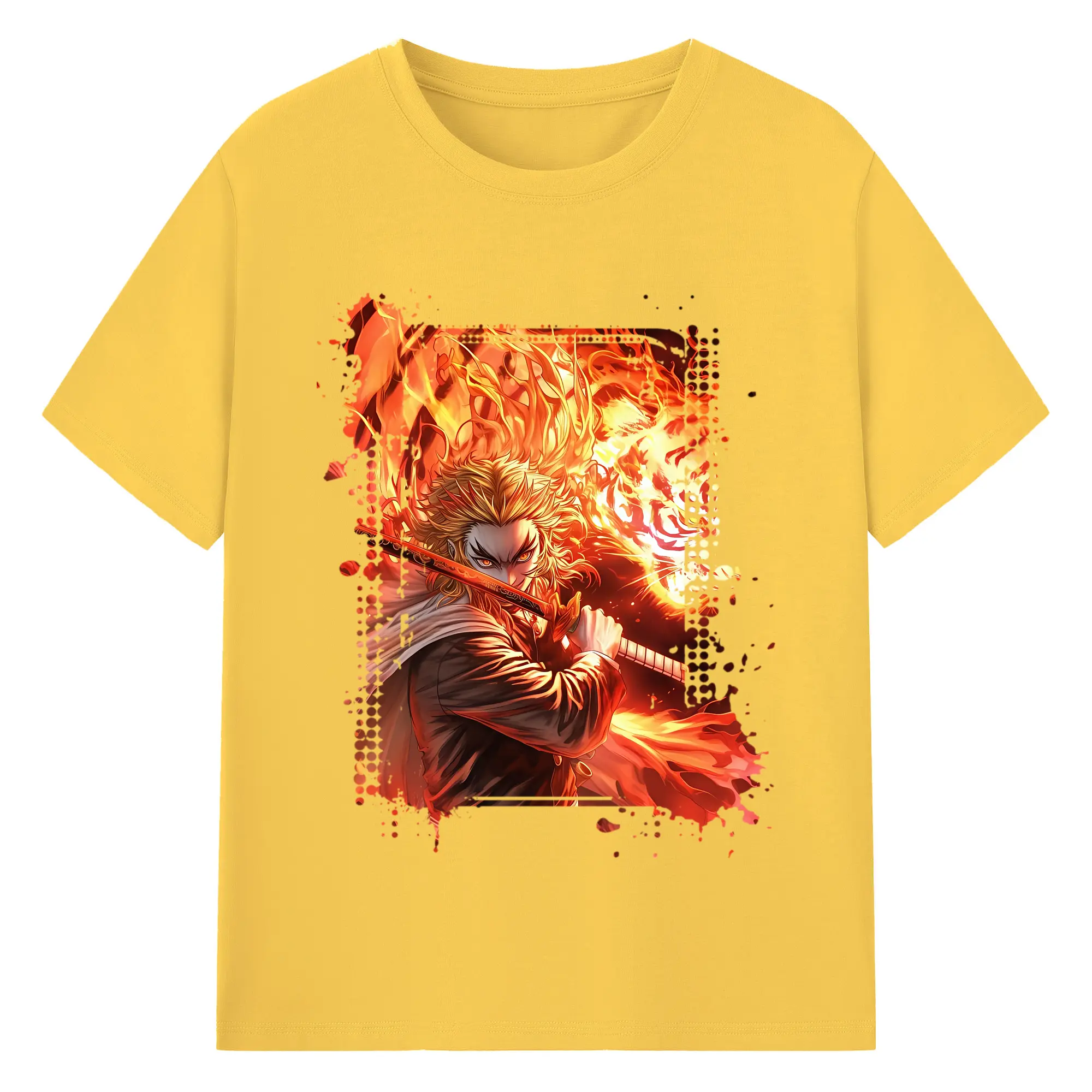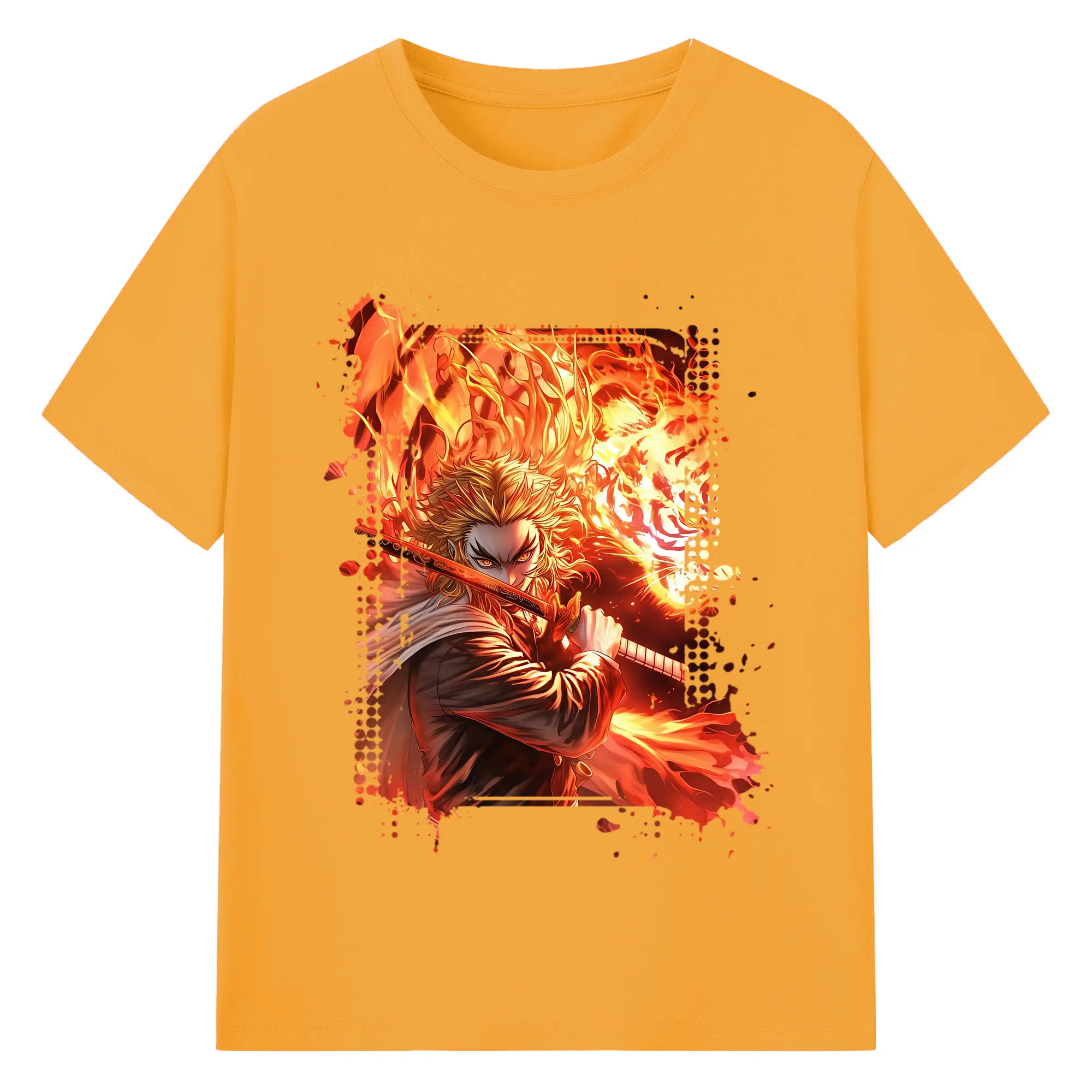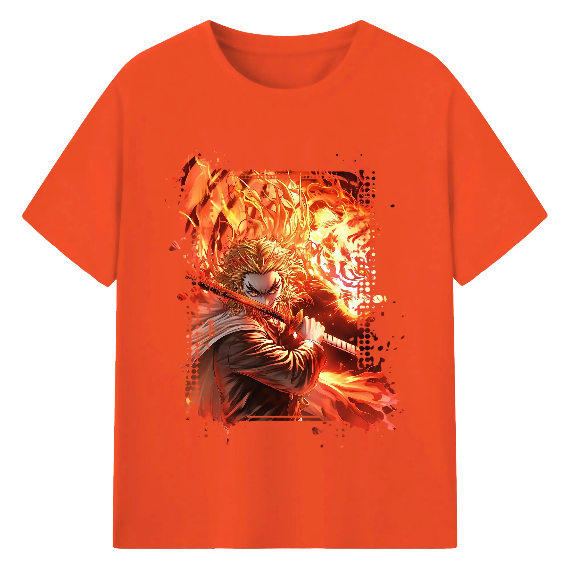 鬼滅の刃 グッズ,煉獄 杏寿郎 - 綿100% キッズTシャツ ・ フロントプリント ・ 快適 通気性 ・ スポーツ カジュアル 散歩用