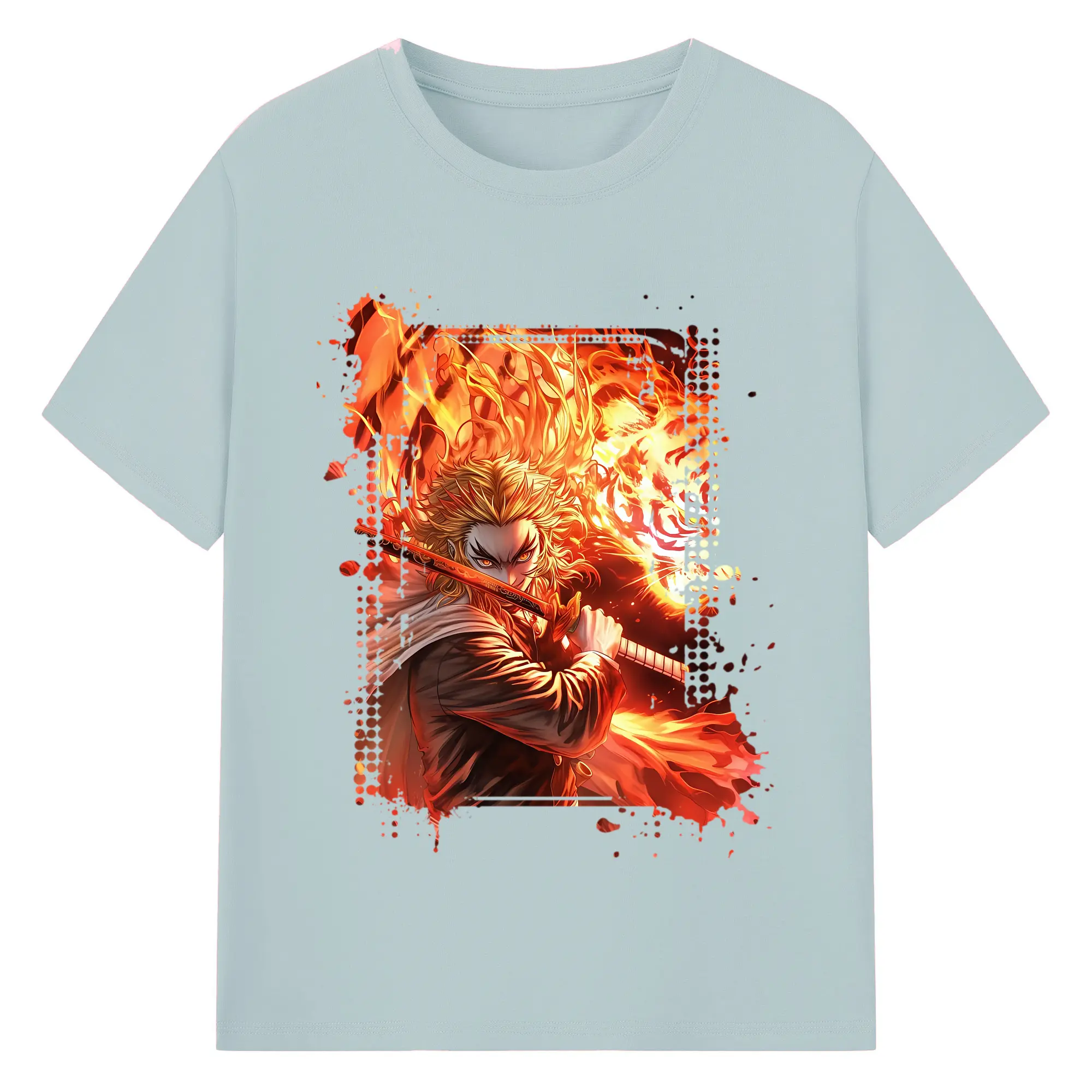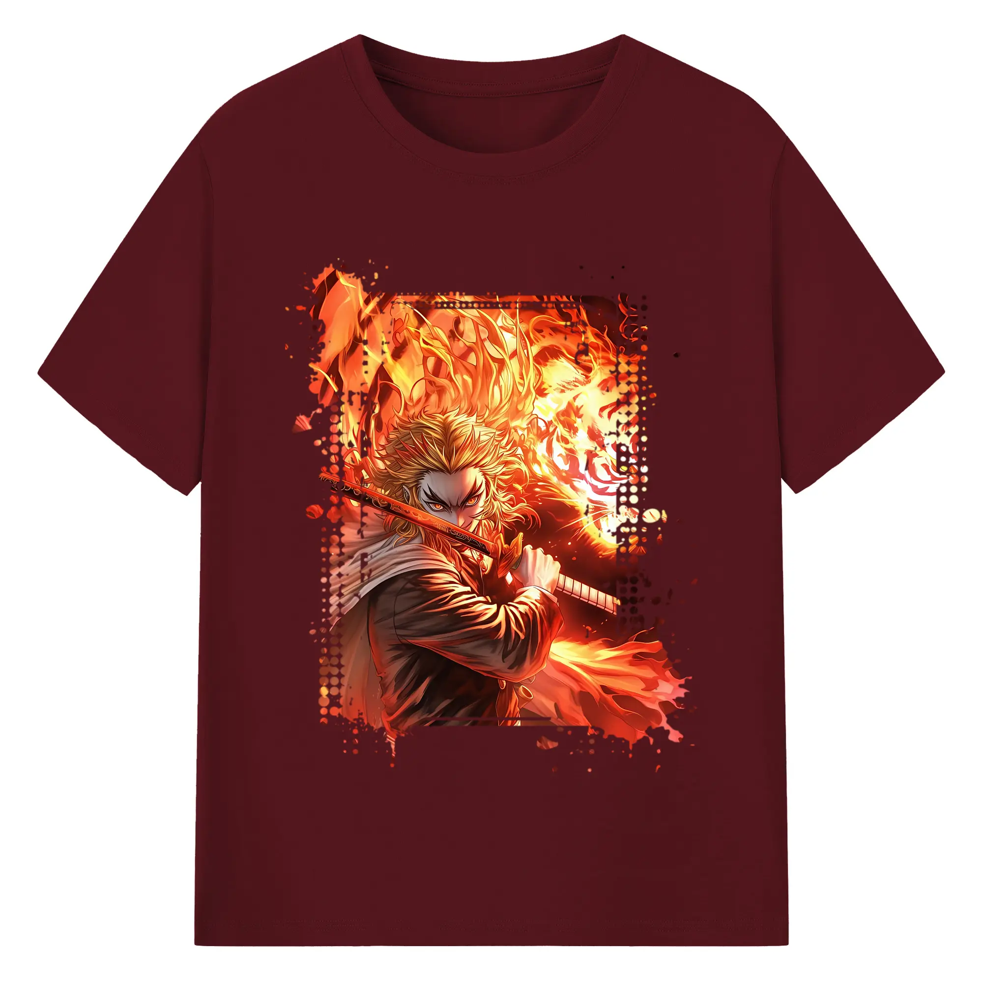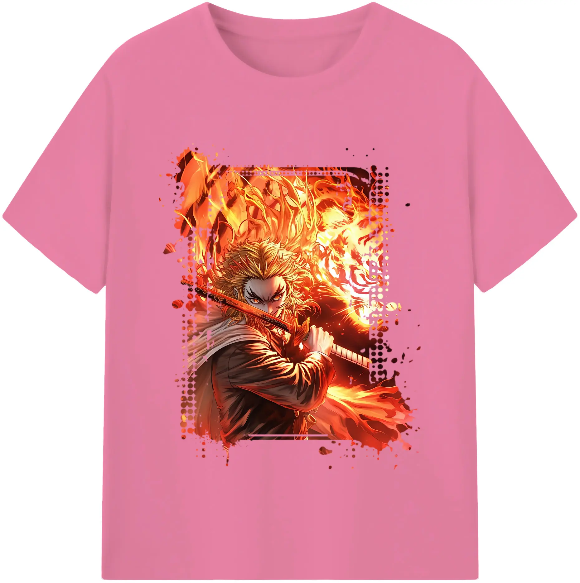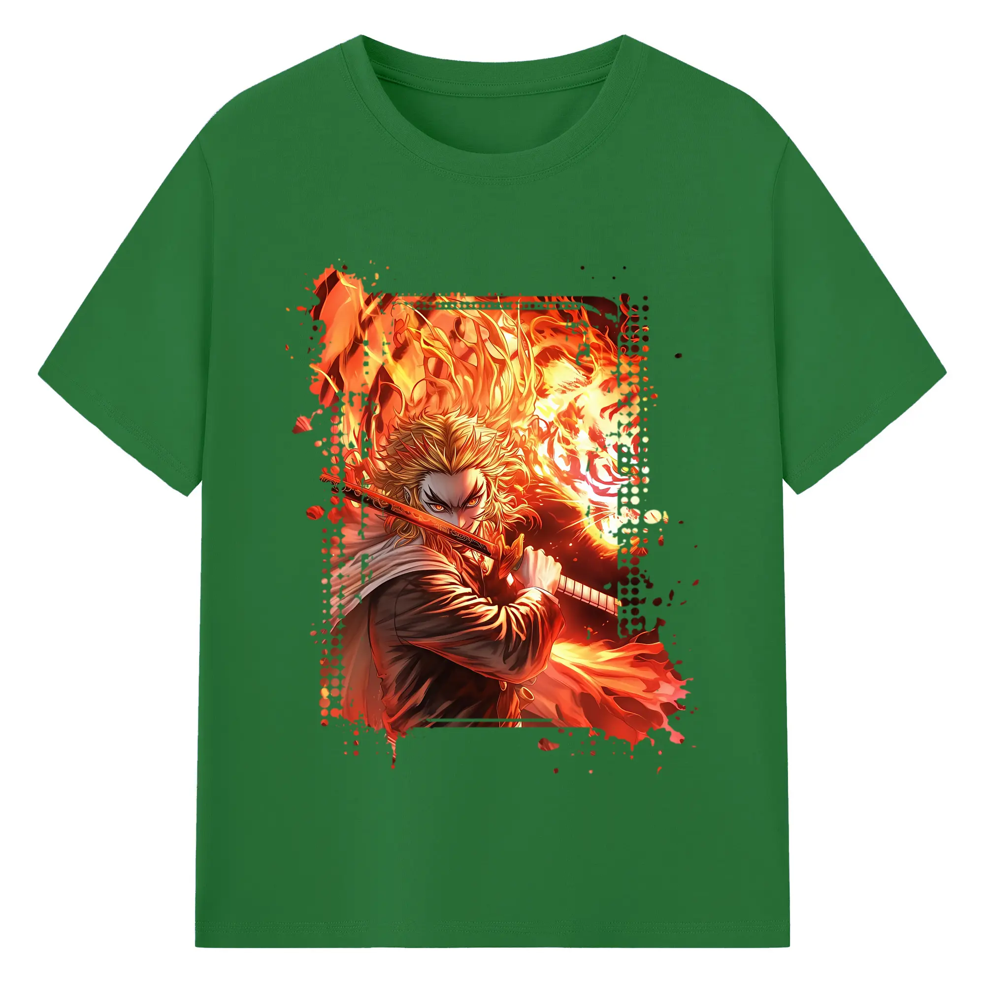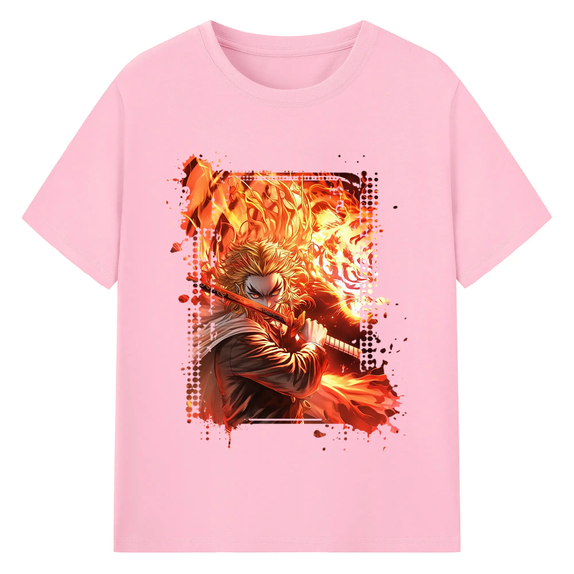 鬼滅の刃 グッズ,煉獄 杏寿郎 - 綿100% キッズTシャツ ・ フロントプリント ・ 快適 通気性 ・ スポーツ カジュアル 散歩用