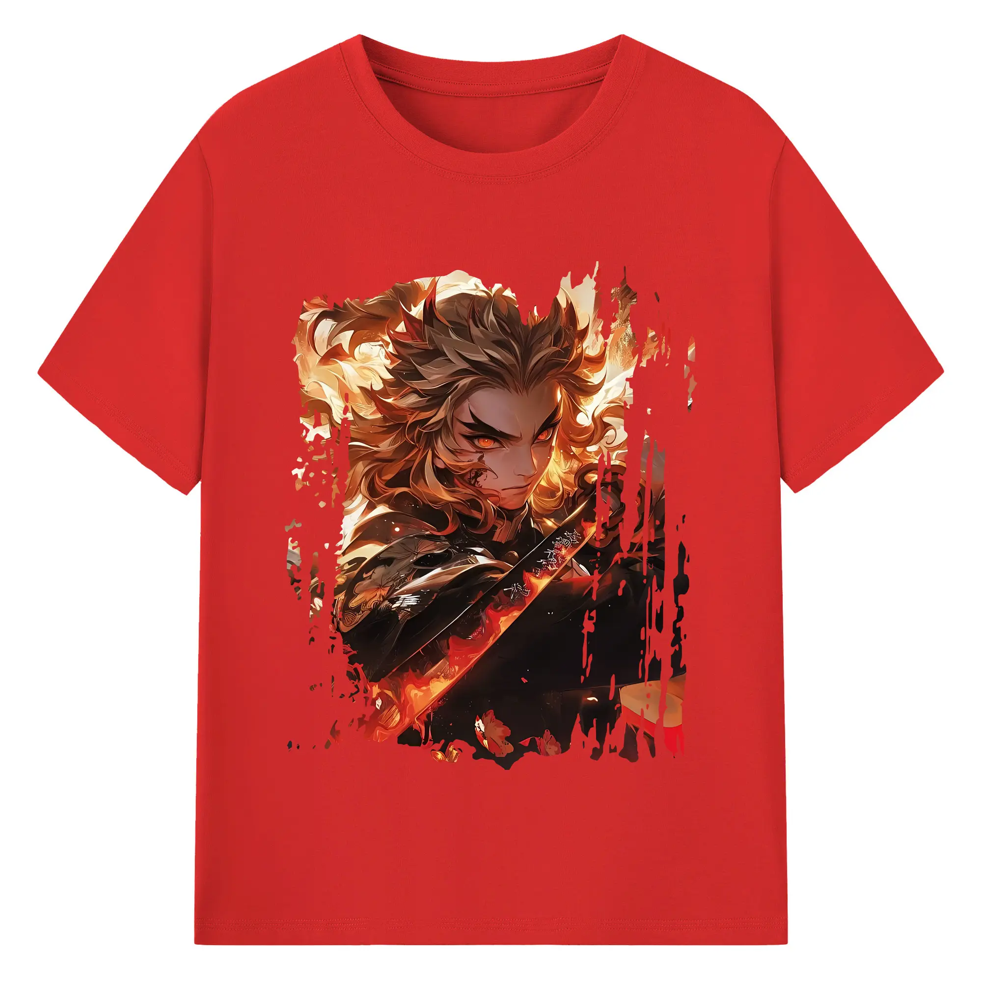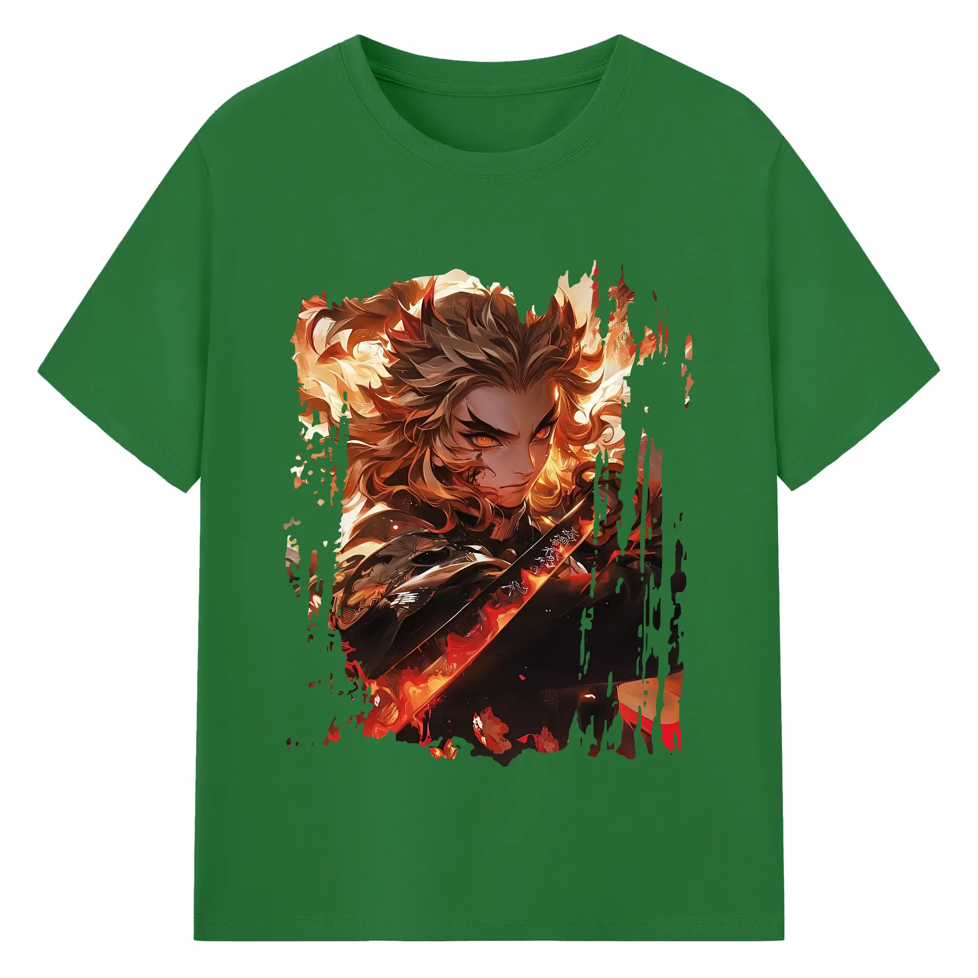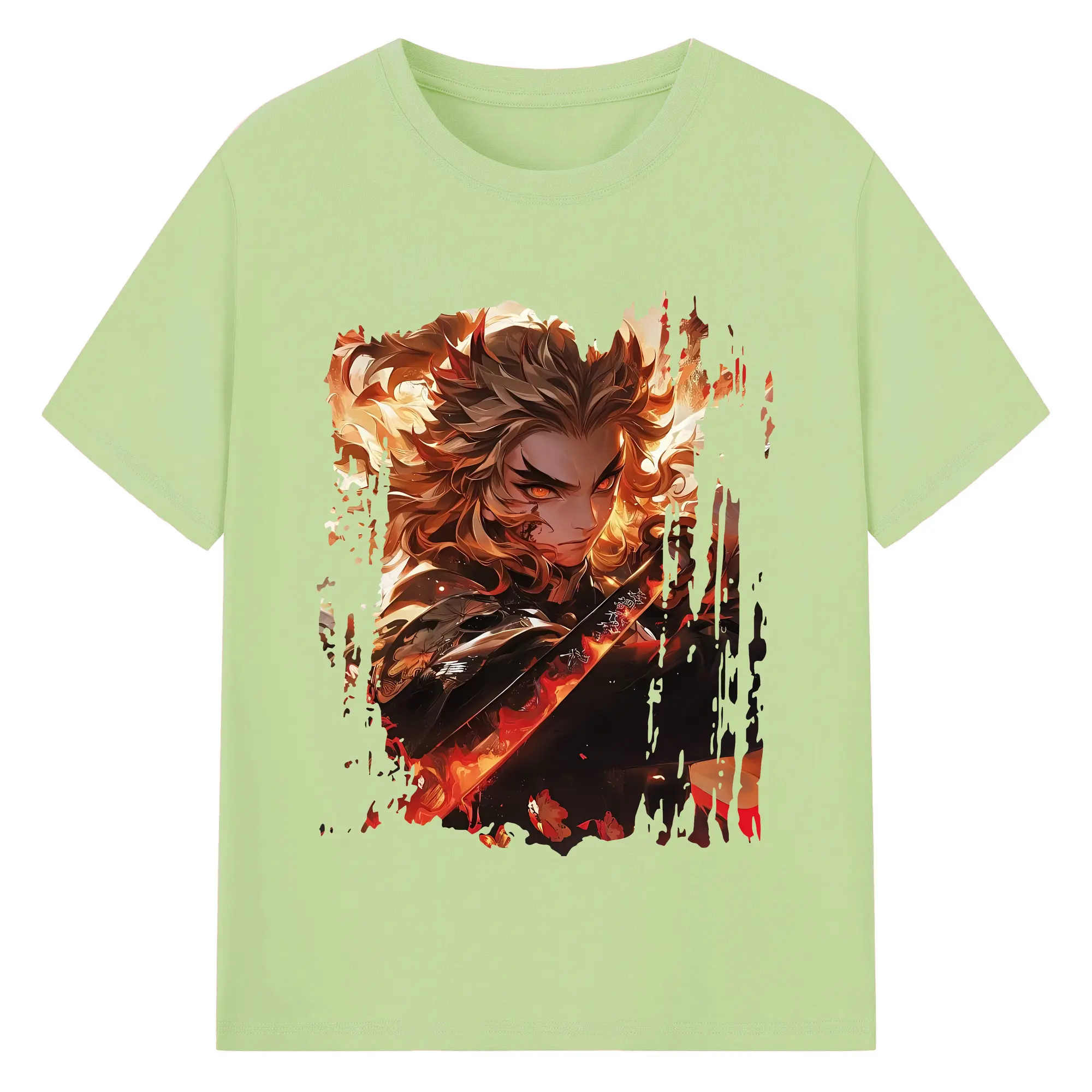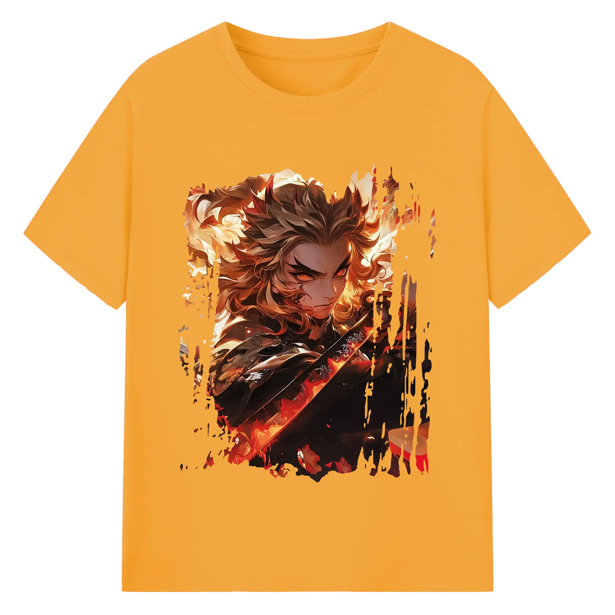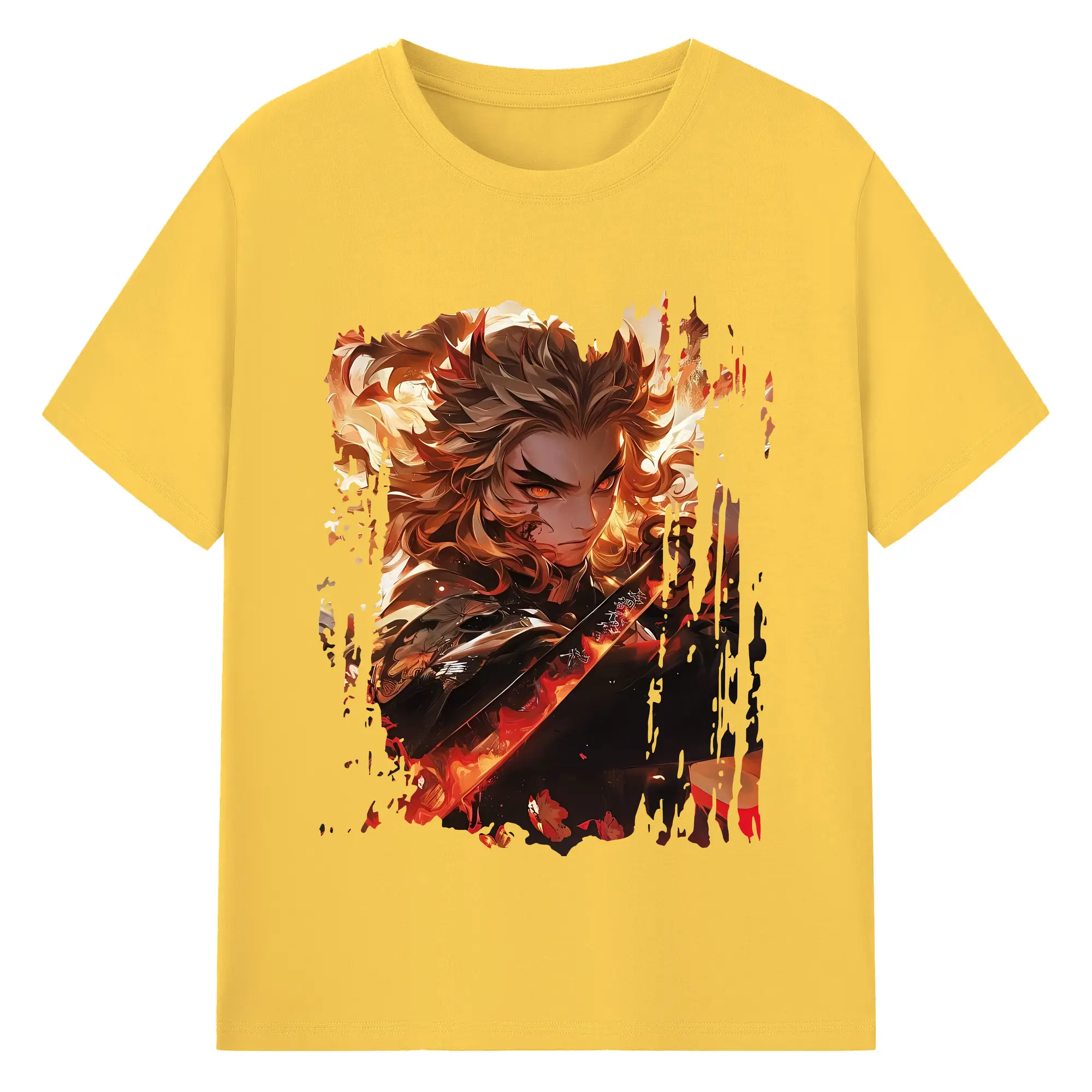 鬼滅の刃 グッズ,煉獄 杏寿郎 - 綿100% キッズTシャツ ・ フロントプリント ・ 快適 通気性 ・ スポーツ カジュアル 散歩用