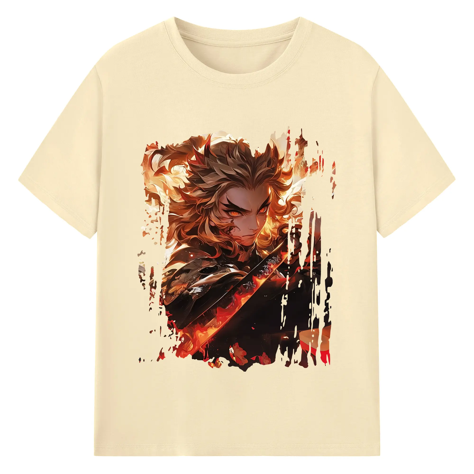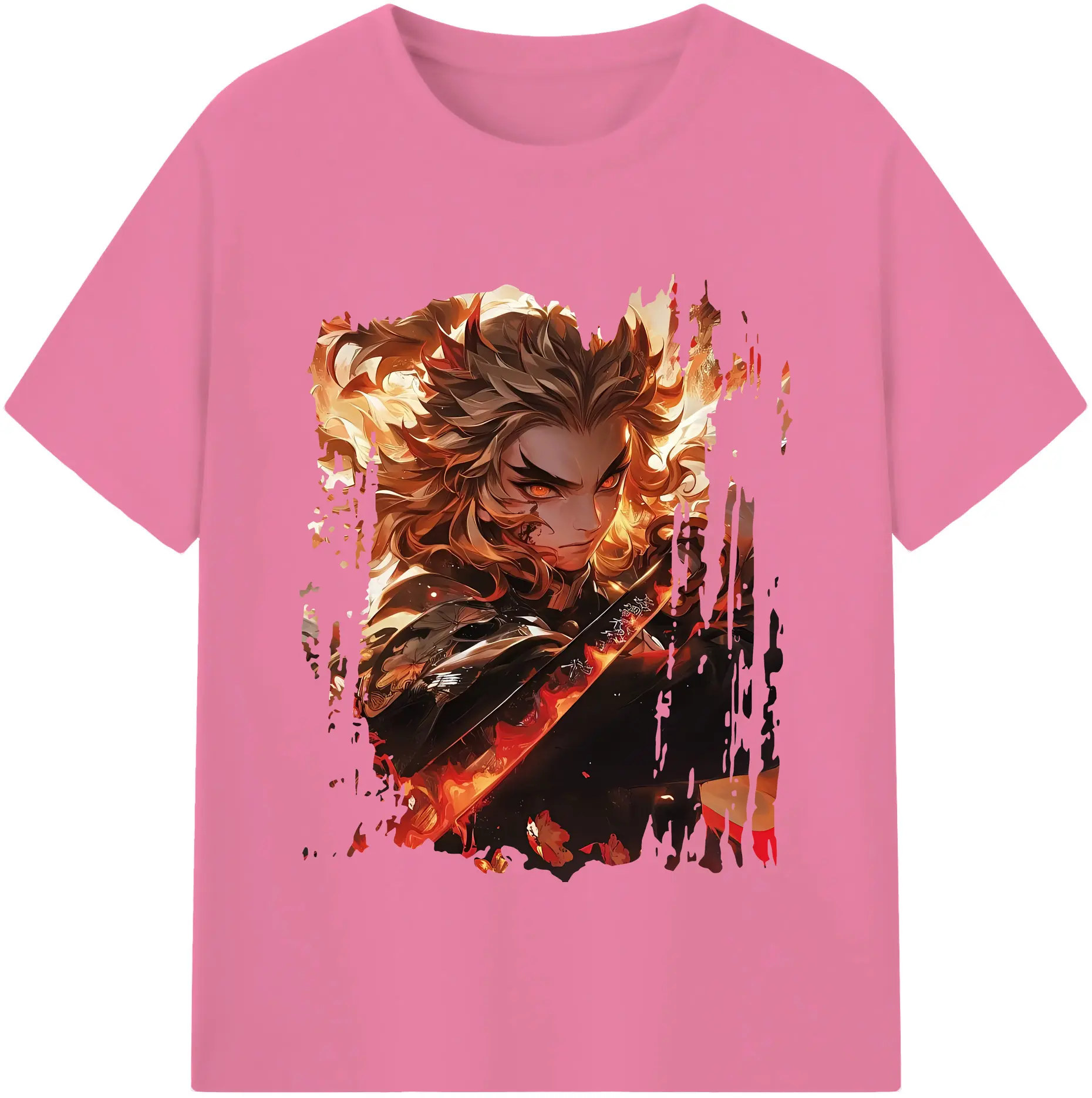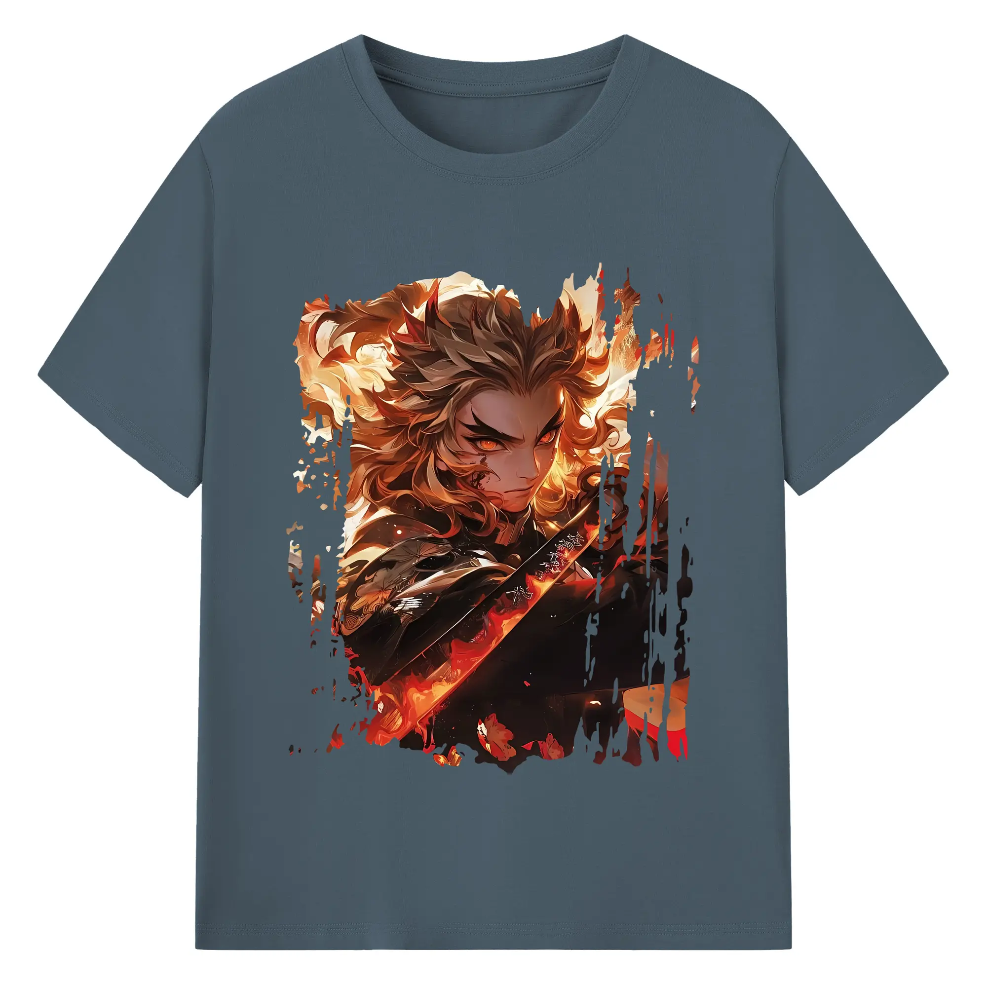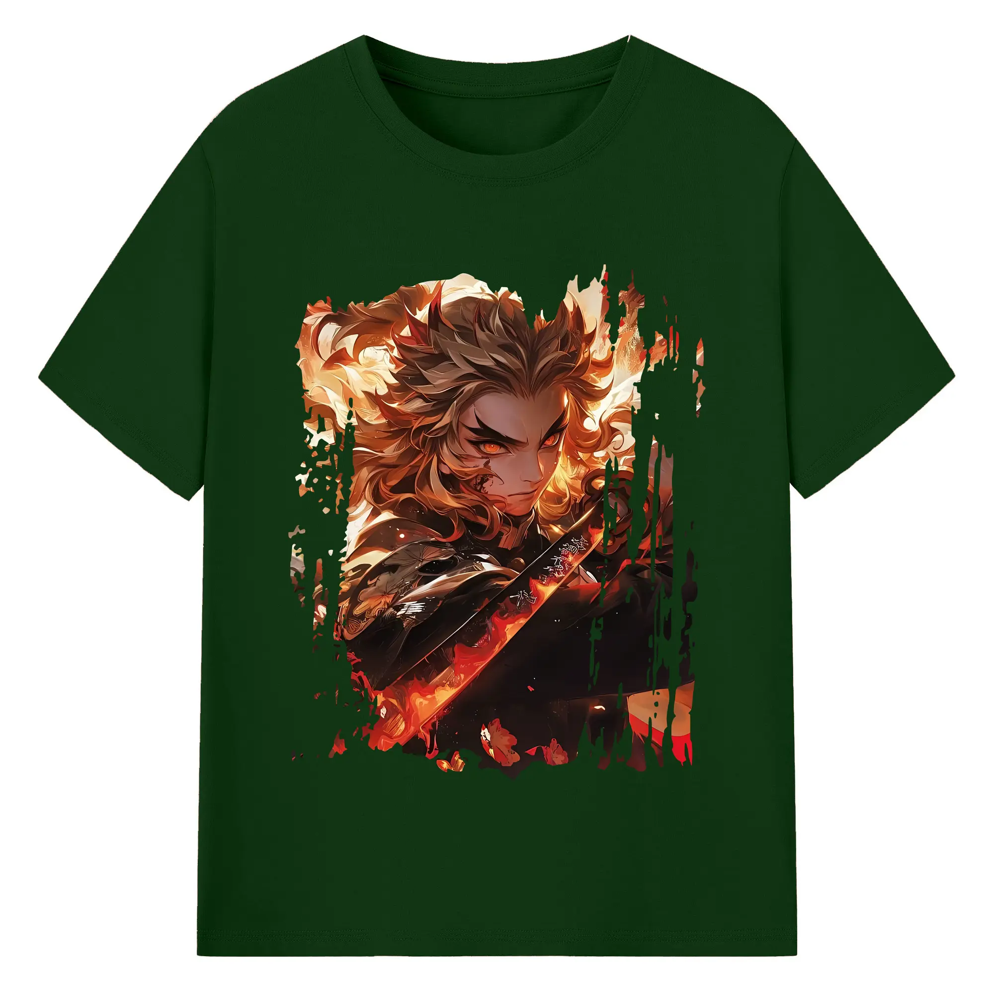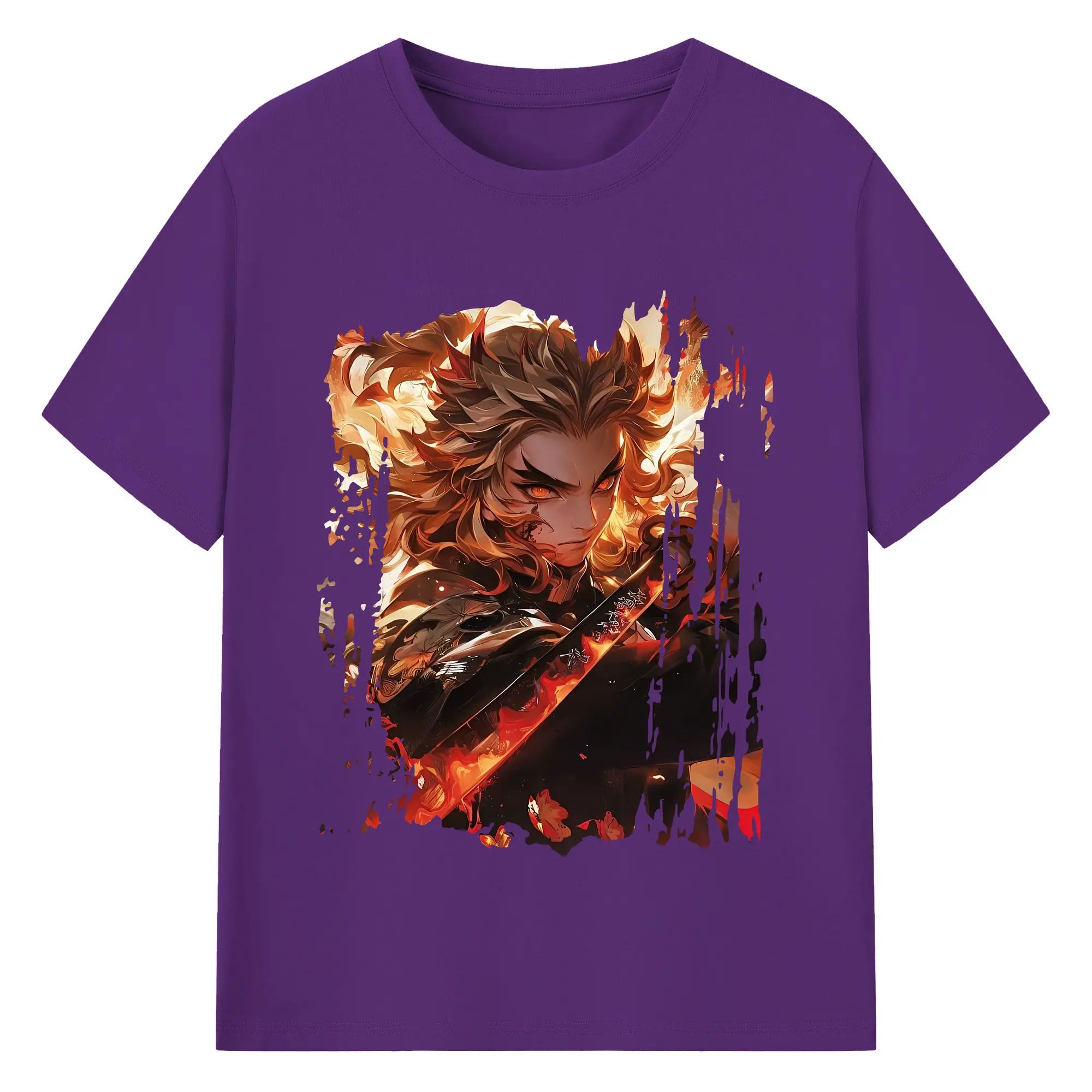 鬼滅の刃 グッズ,煉獄 杏寿郎 - 綿100% キッズTシャツ ・ フロントプリント ・ 快適 通気性 ・ スポーツ カジュアル 散歩用