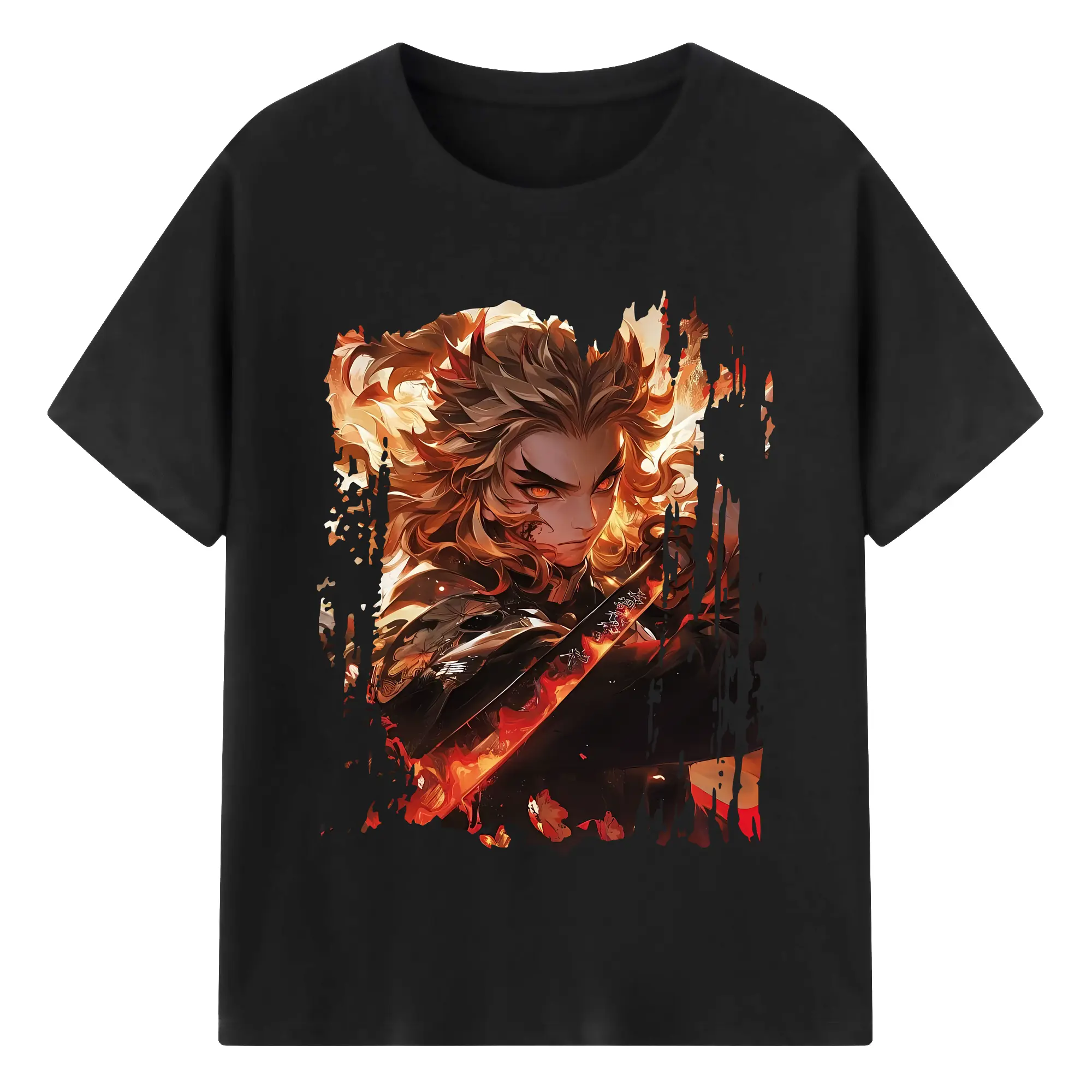 鬼滅の刃 グッズ,煉獄 杏寿郎 - 綿100% 半袖Tシャツ ・ バックプリント ・ 快適 通気性 ・ 日常使い 散歩 スポーツ用