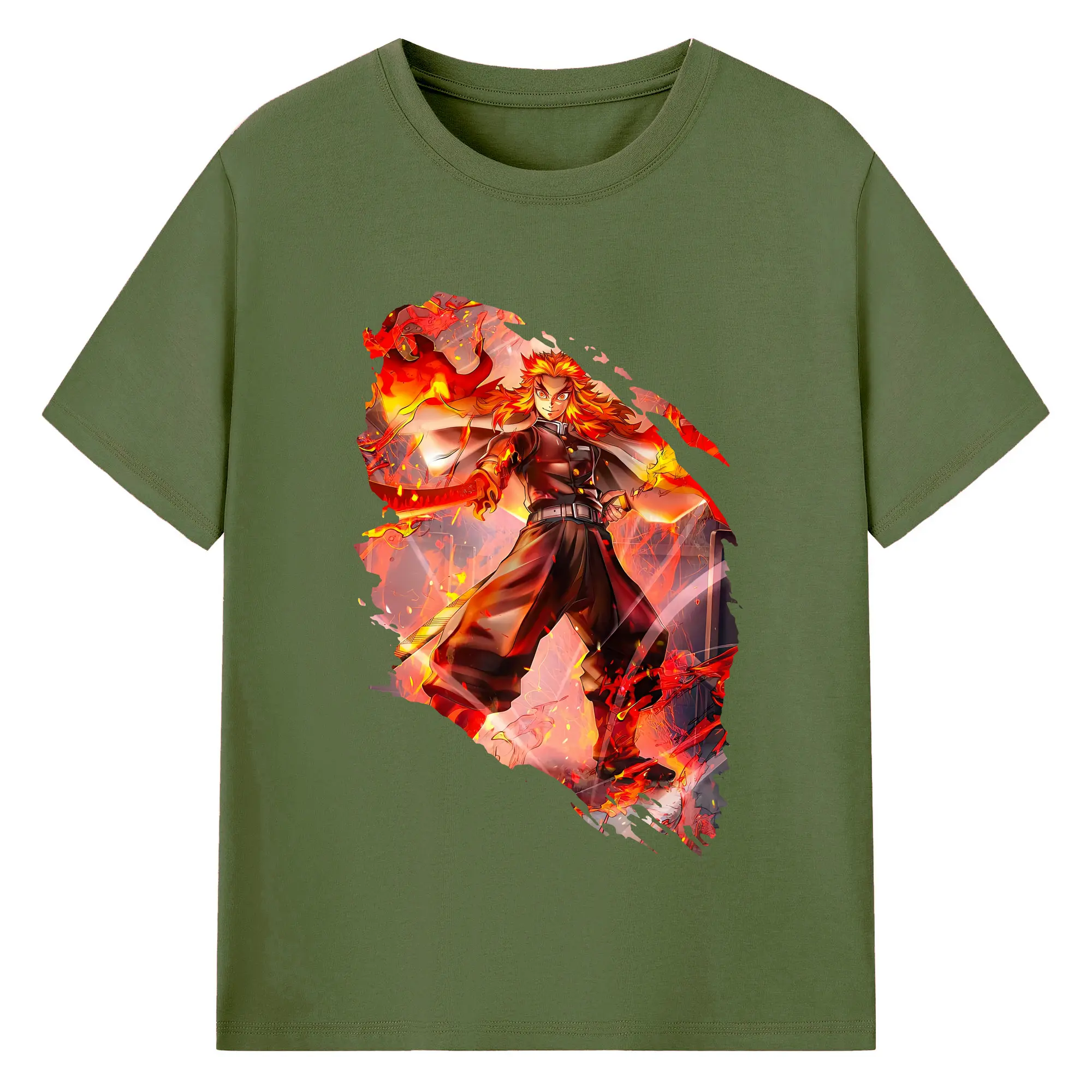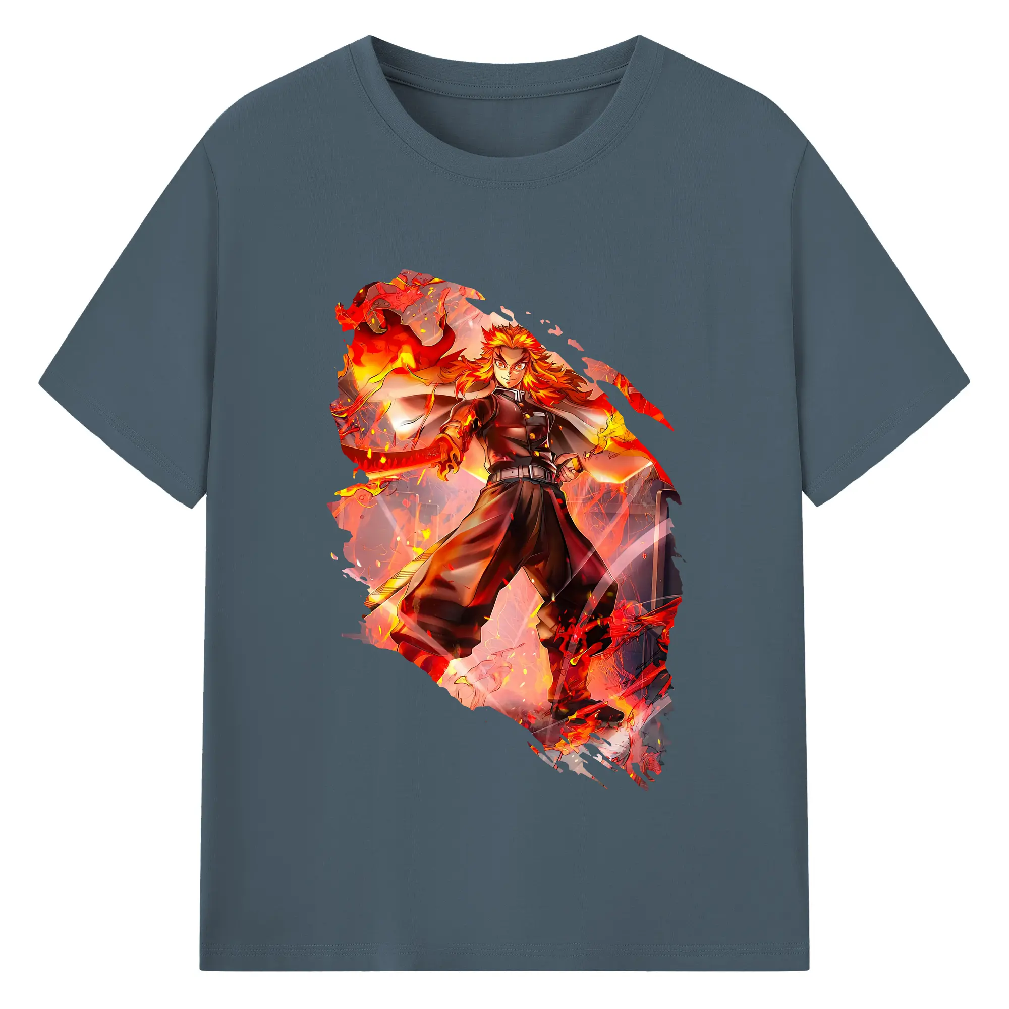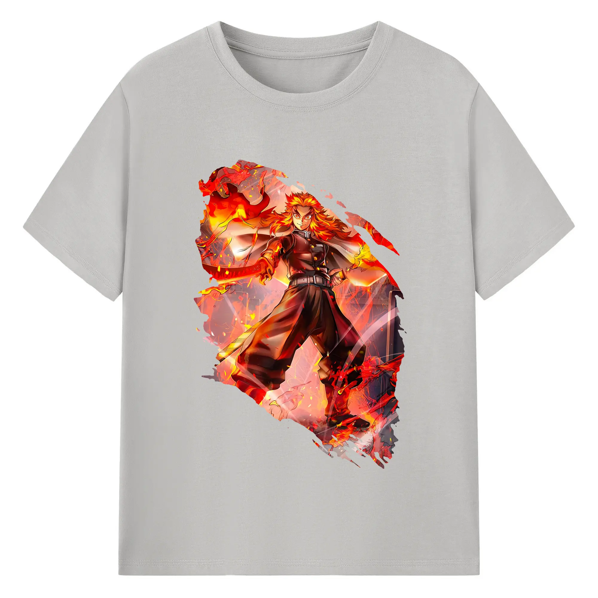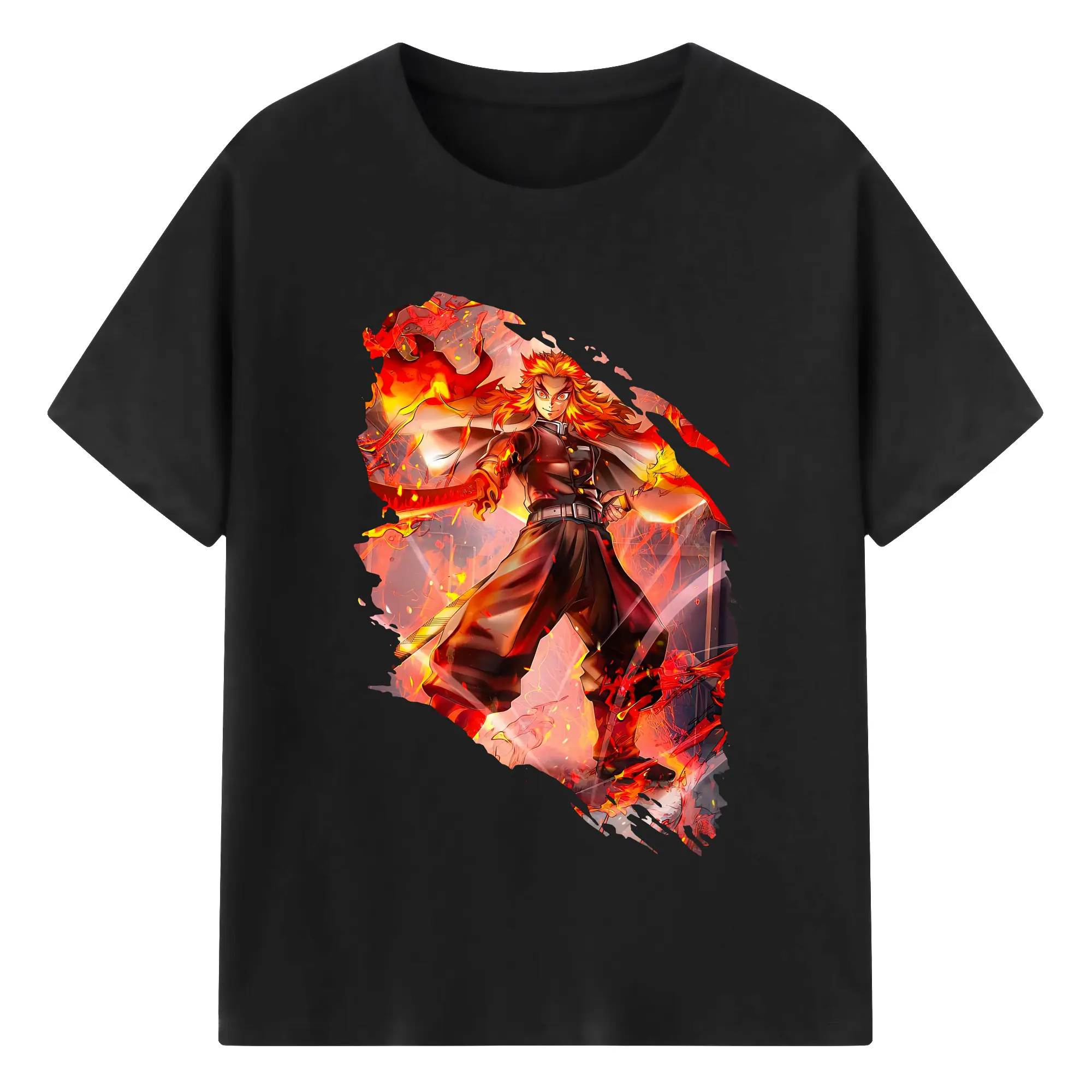 鬼滅の刃 グッズ,煉獄 杏寿郎 - 綿100% 半袖Tシャツ ・ バックプリント ・ 快適 通気性 ・ 日常使い 散歩 スポーツ用