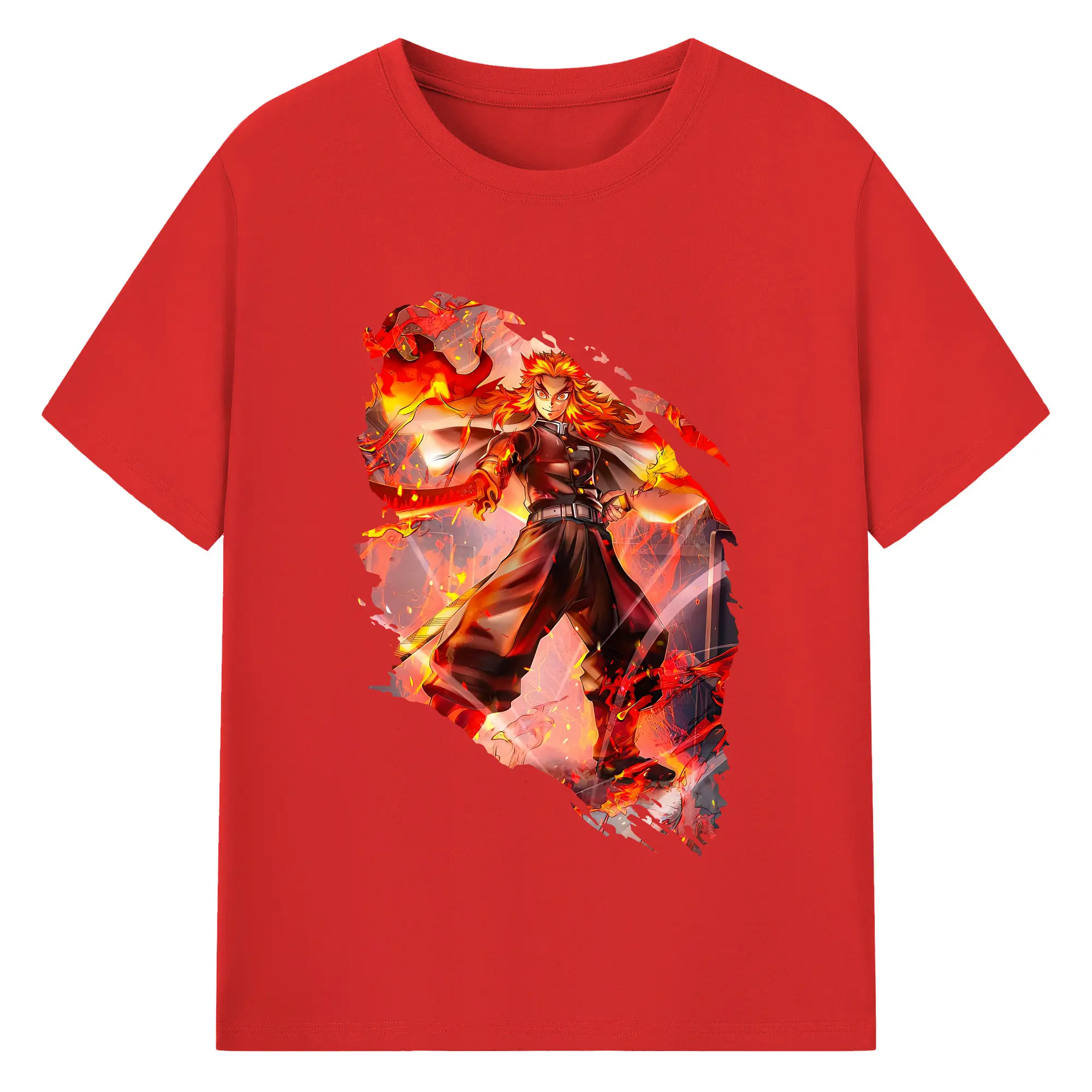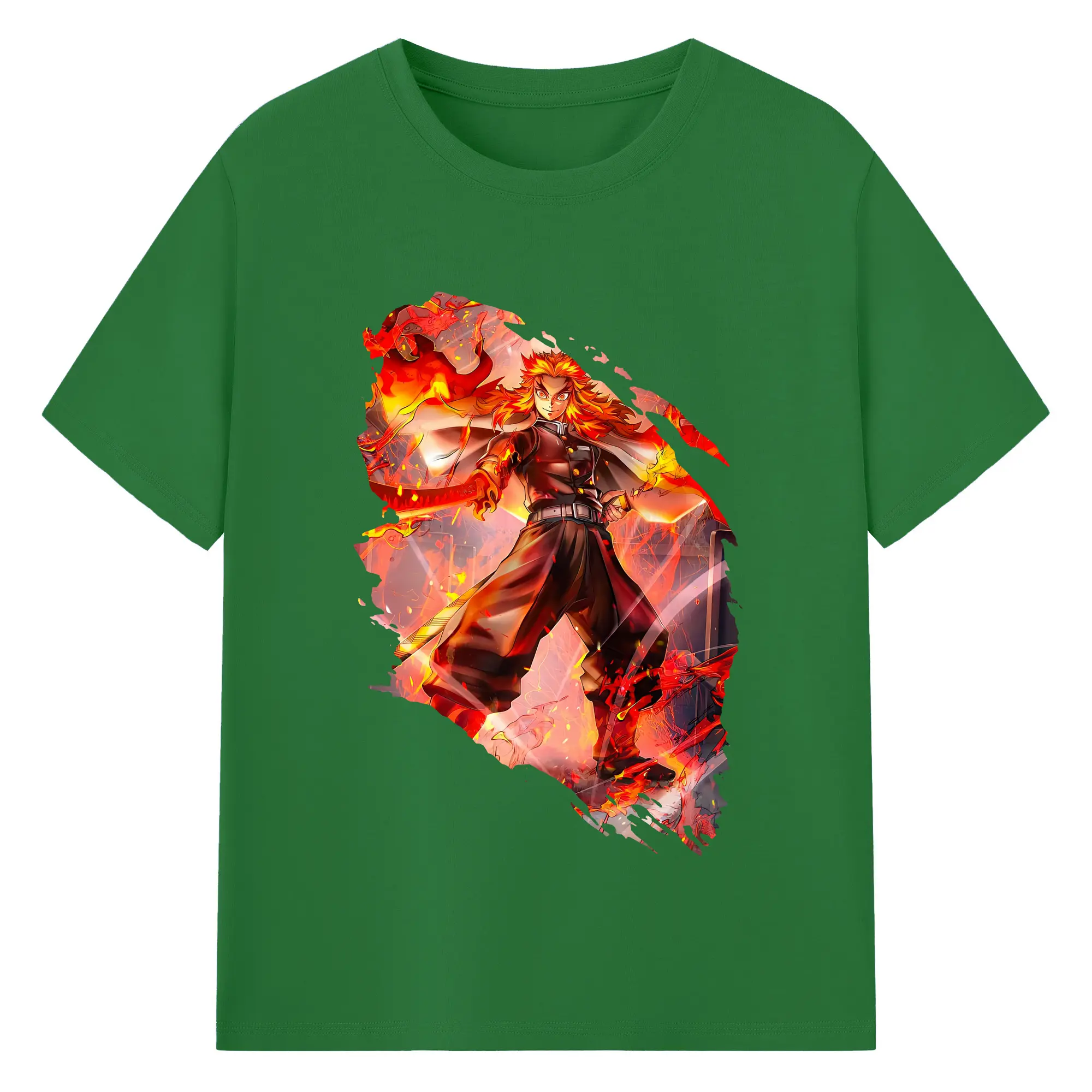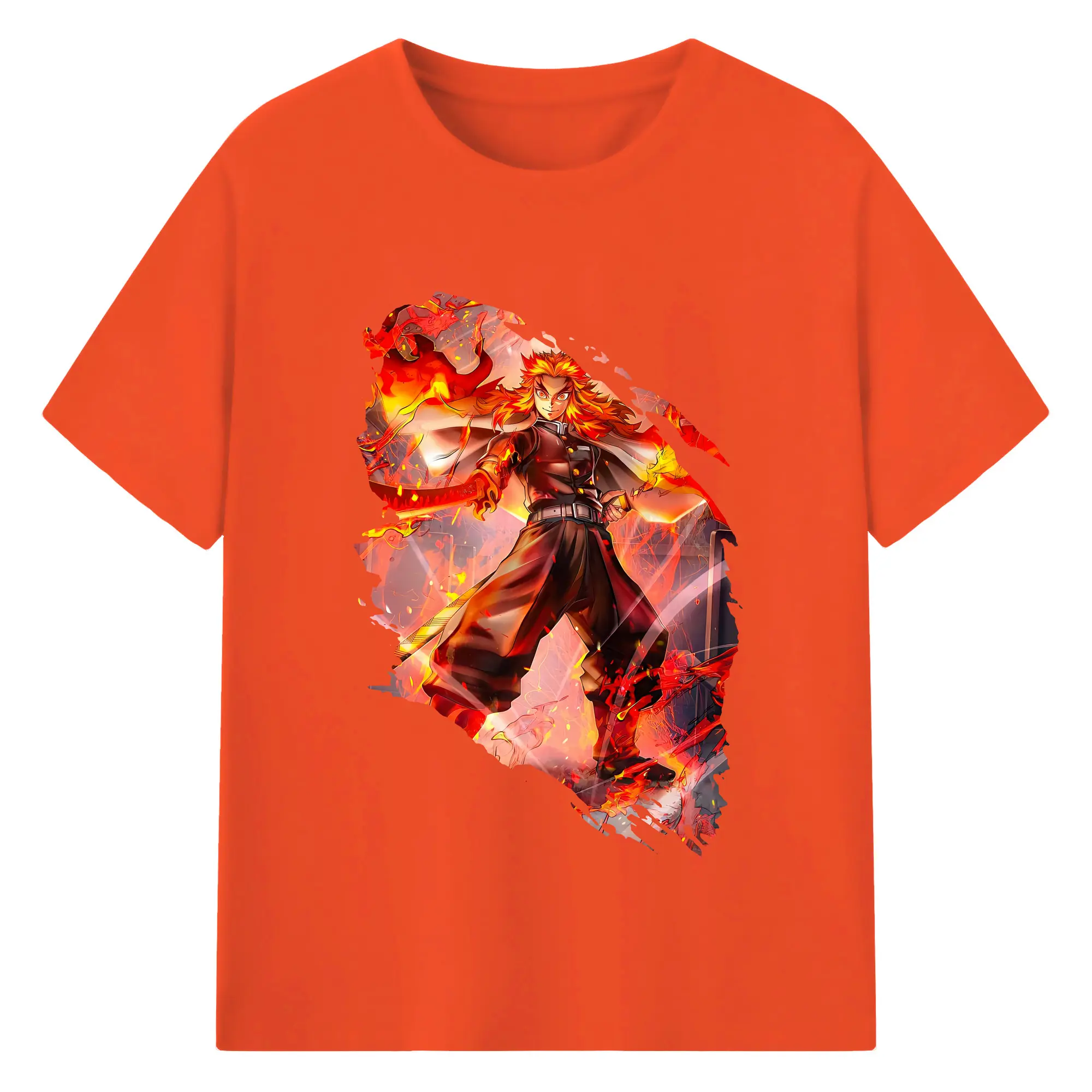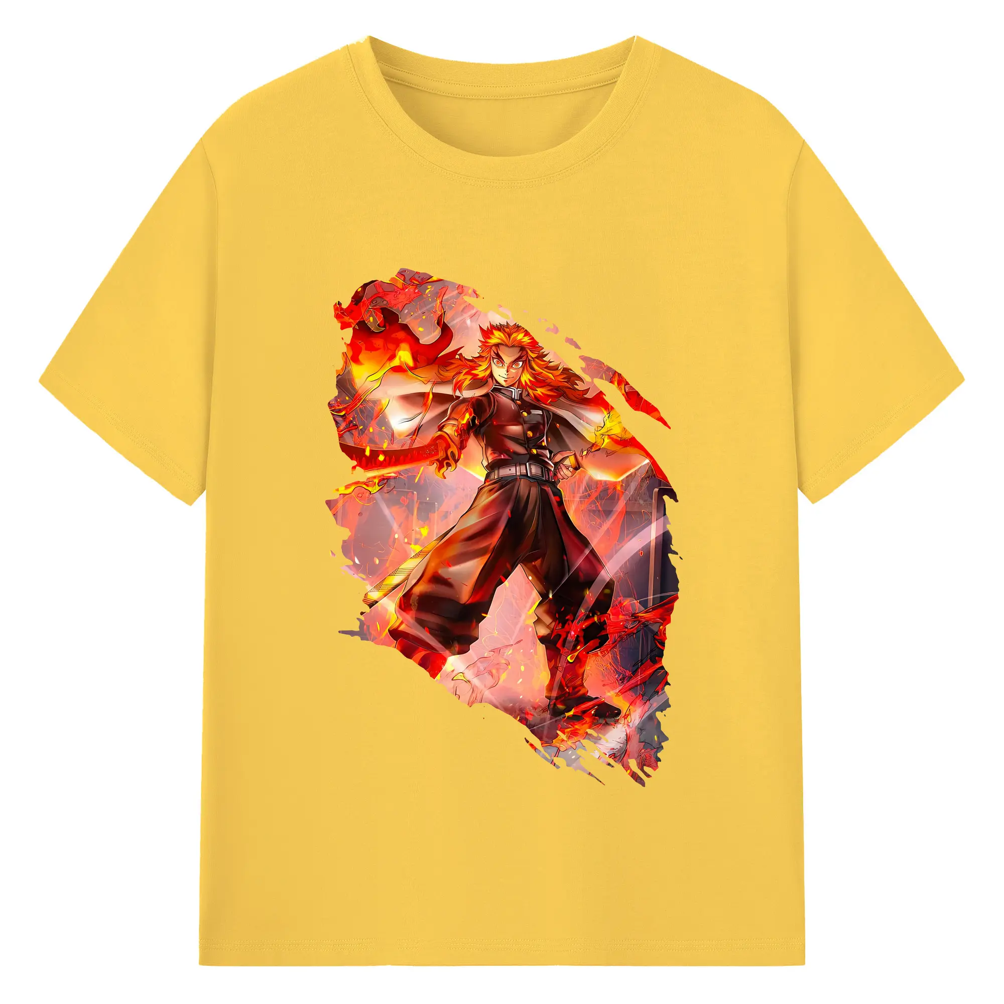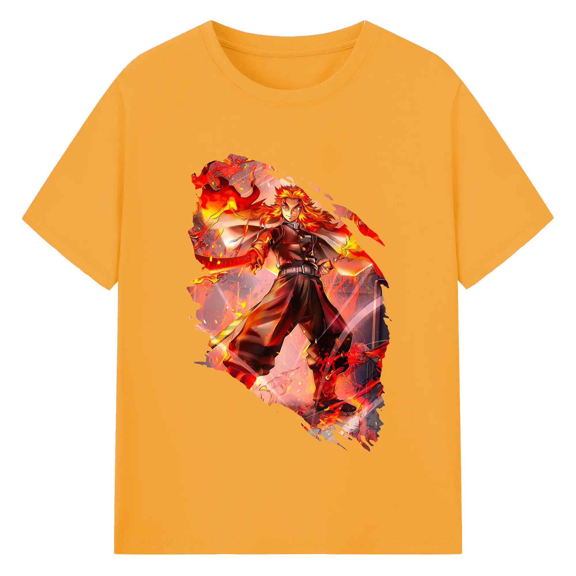 鬼滅の刃 グッズ,煉獄 杏寿郎 - 綿100% キッズTシャツ ・ フロントプリント ・ 快適 通気性 ・ スポーツ カジュアル 散歩用