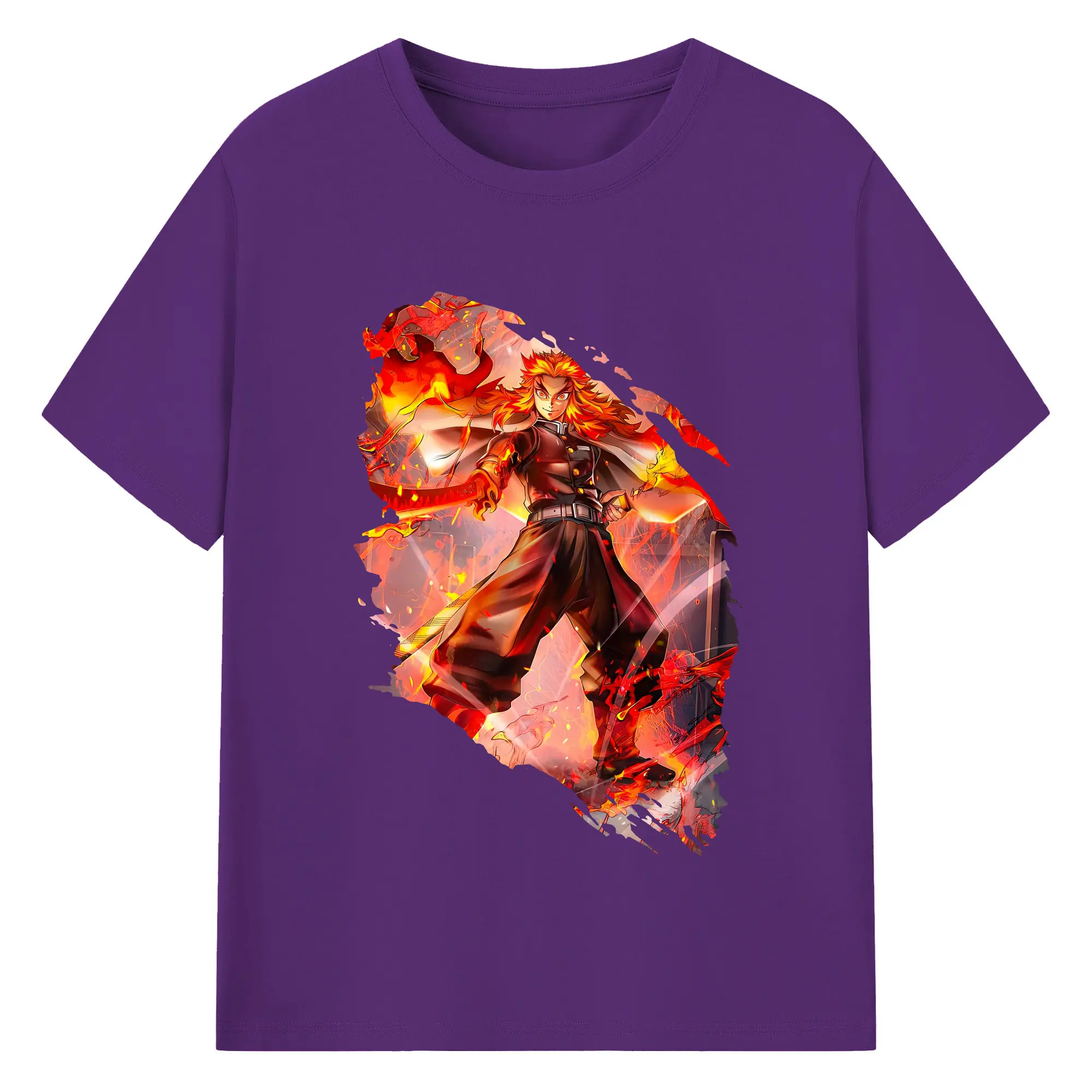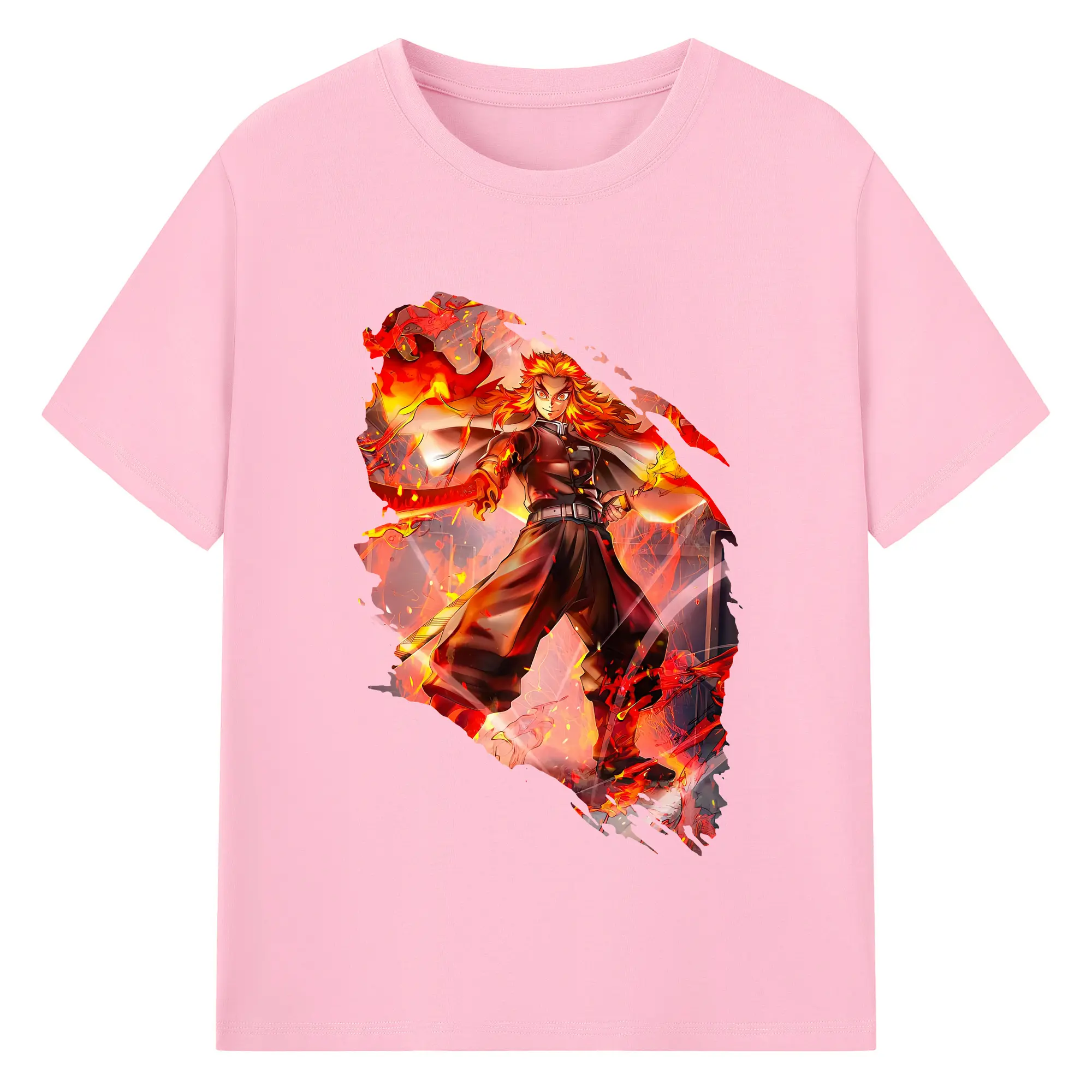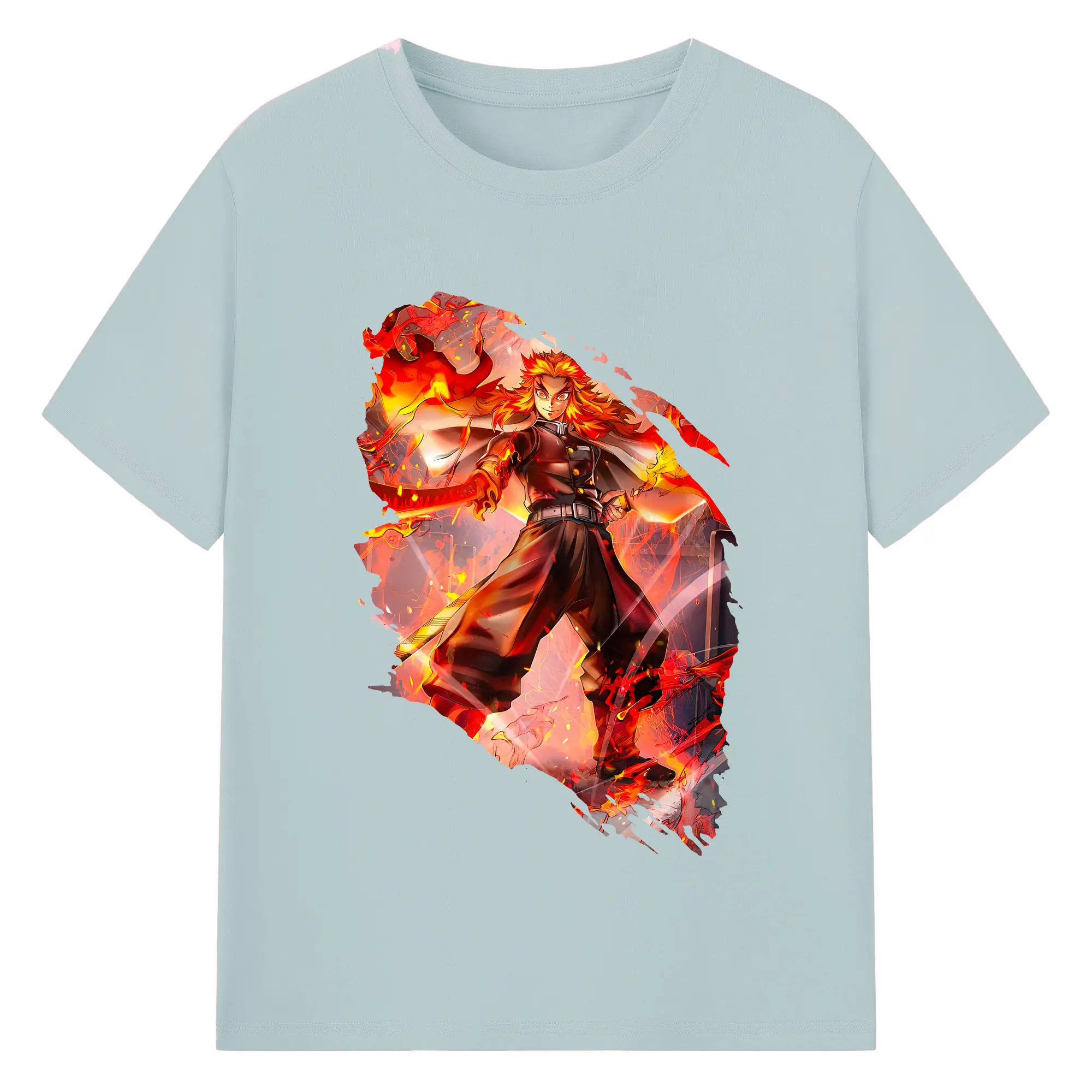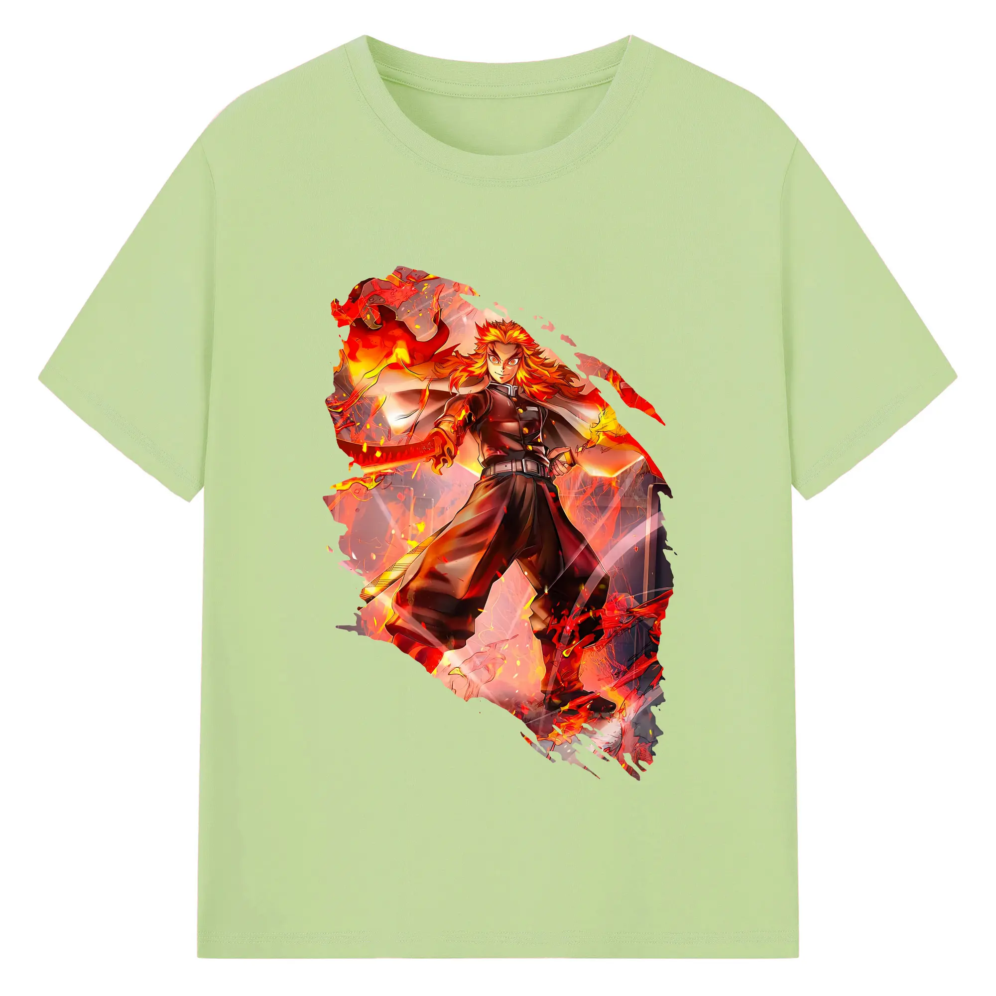 鬼滅の刃 グッズ,煉獄 杏寿郎 - 綿100% キッズTシャツ ・ フロントプリント ・ 快適 通気性 ・ スポーツ カジュアル 散歩用